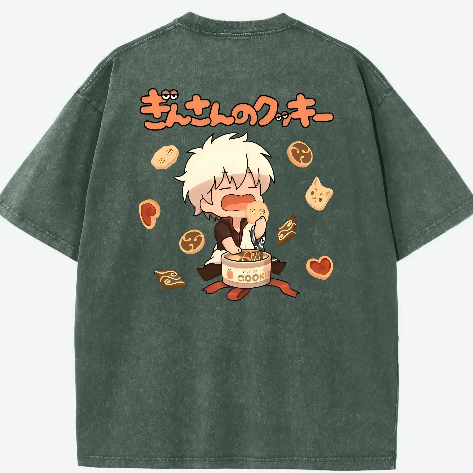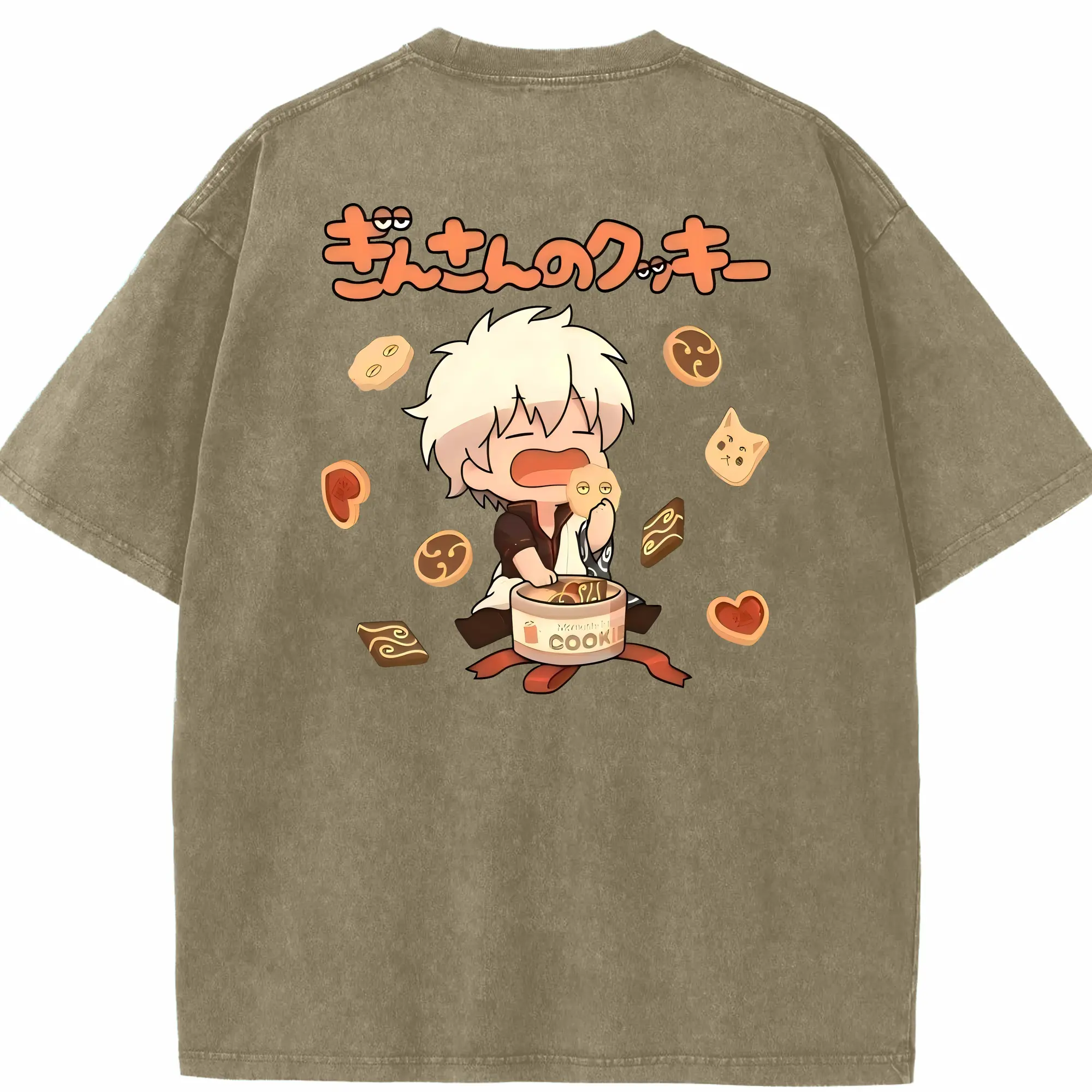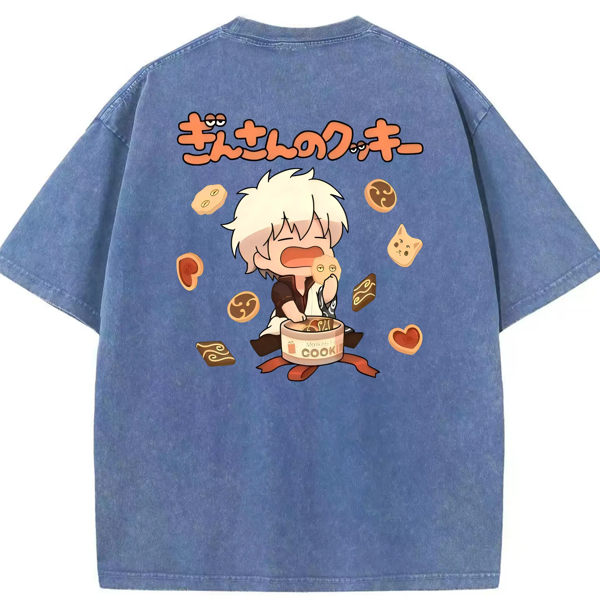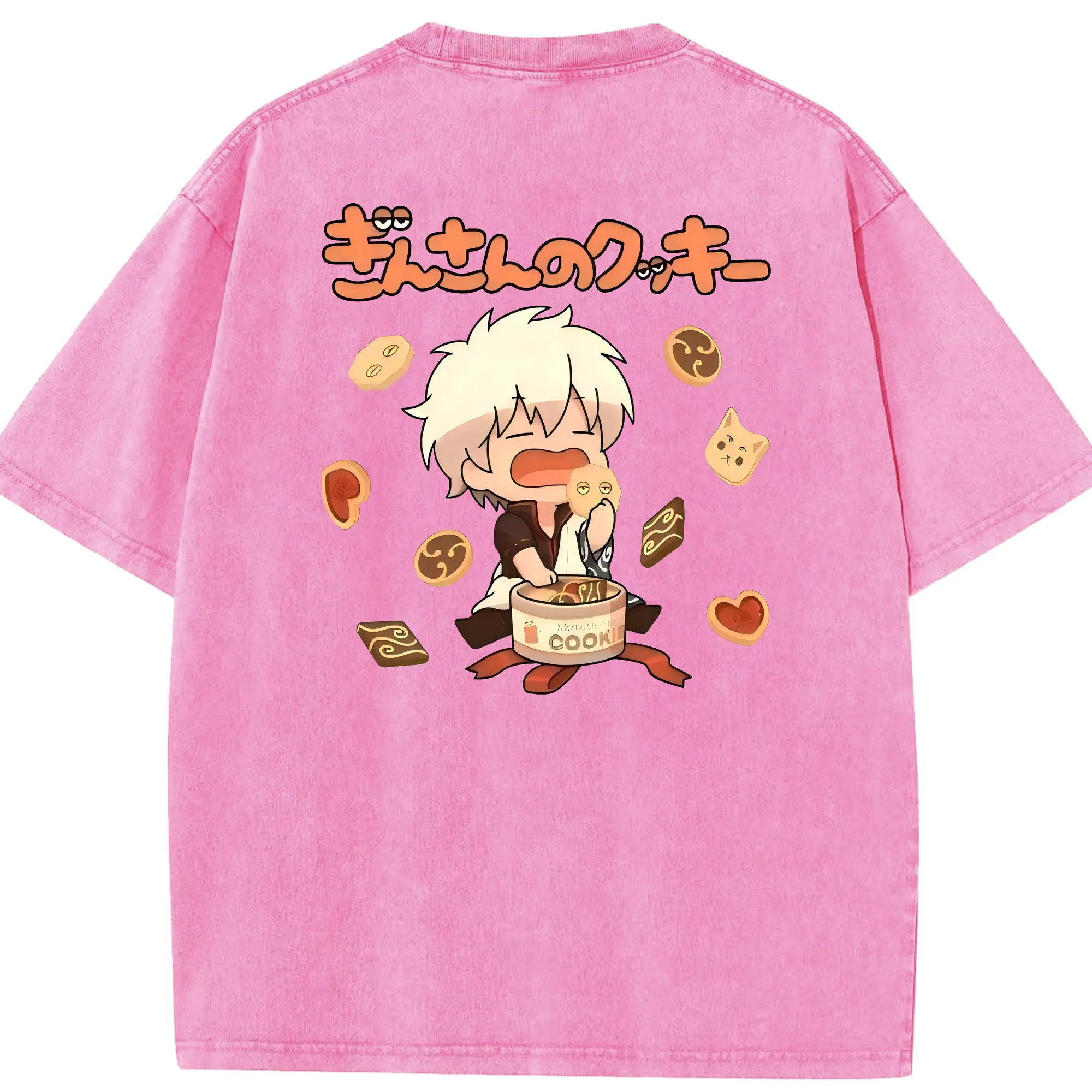 銀魂 グッズ 坂田 銀時 - 綿100% ヴィンテージ風 半袖Tシャツ ・ フロントプリント ・ 柔らか肌触り ・ 通気性 快適 ・ スポーツ カジュアル 外出用