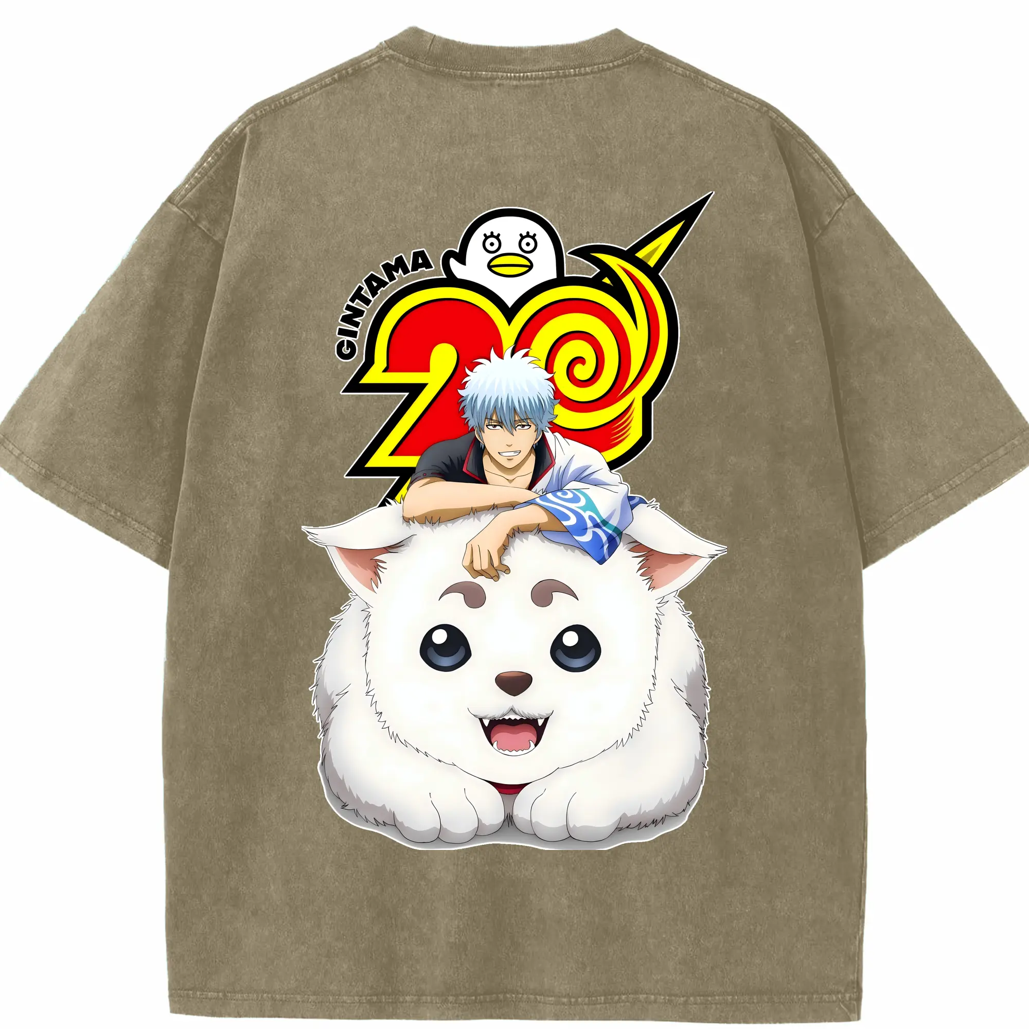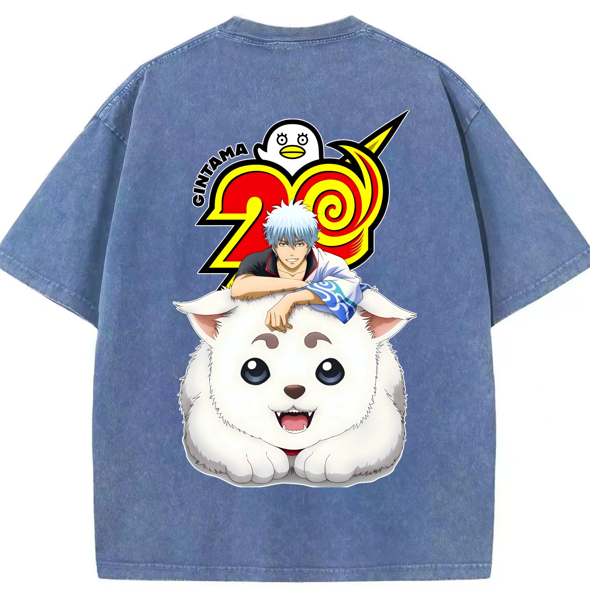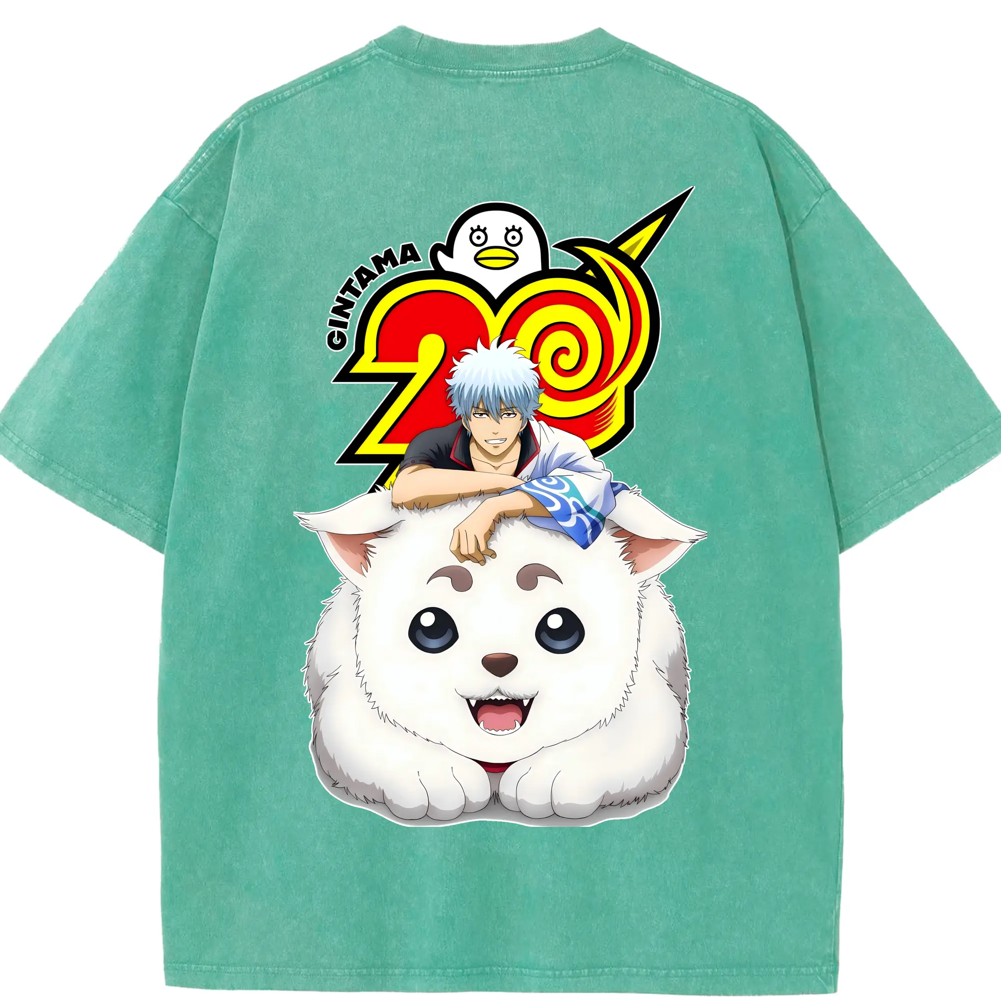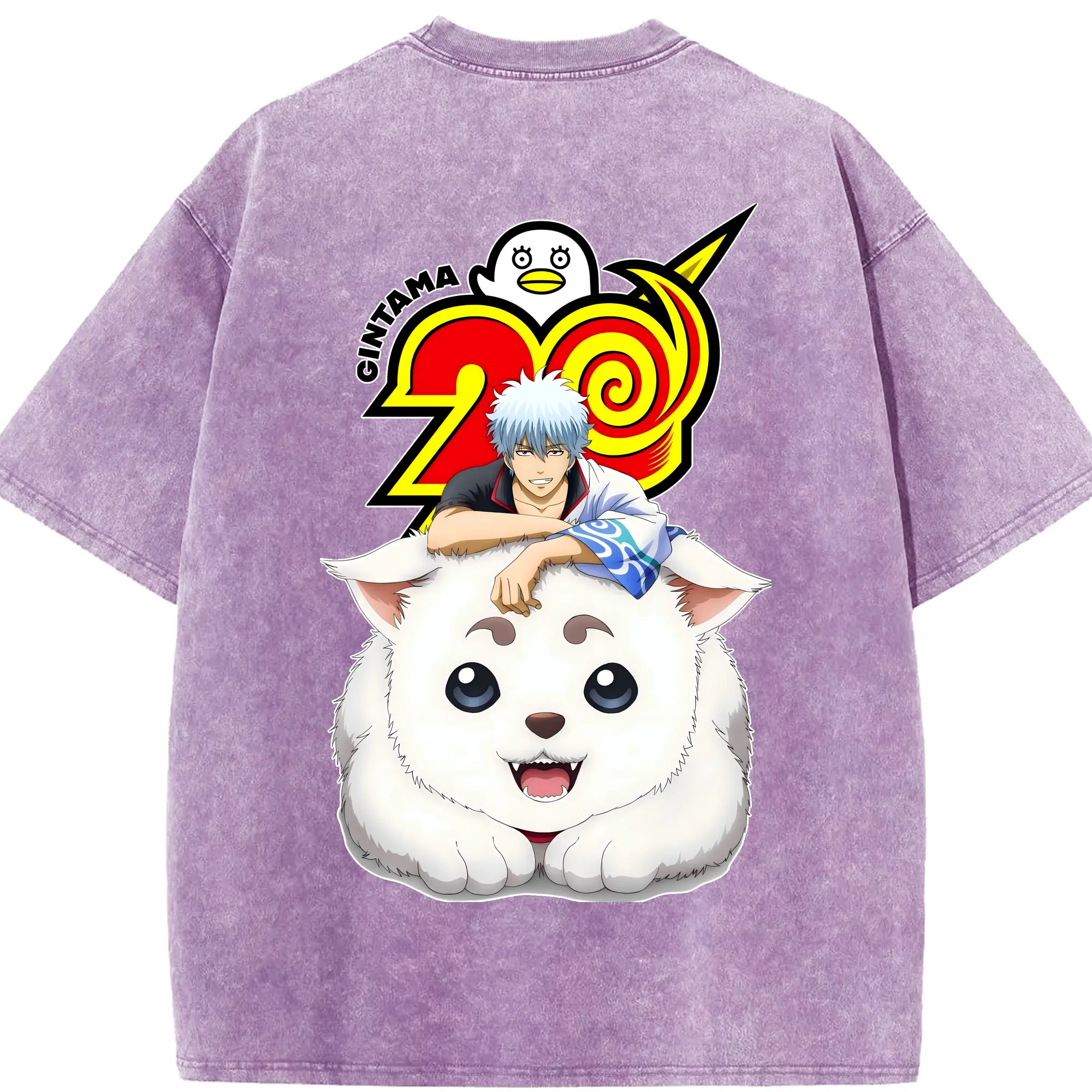 銀魂 グッズ 坂田 銀時 - 綿100% ヴィンテージ風 半袖Tシャツ ・ フロントプリント ・ 柔らか肌触り ・ 通気性 快適 ・ スポーツ カジュアル 外出用