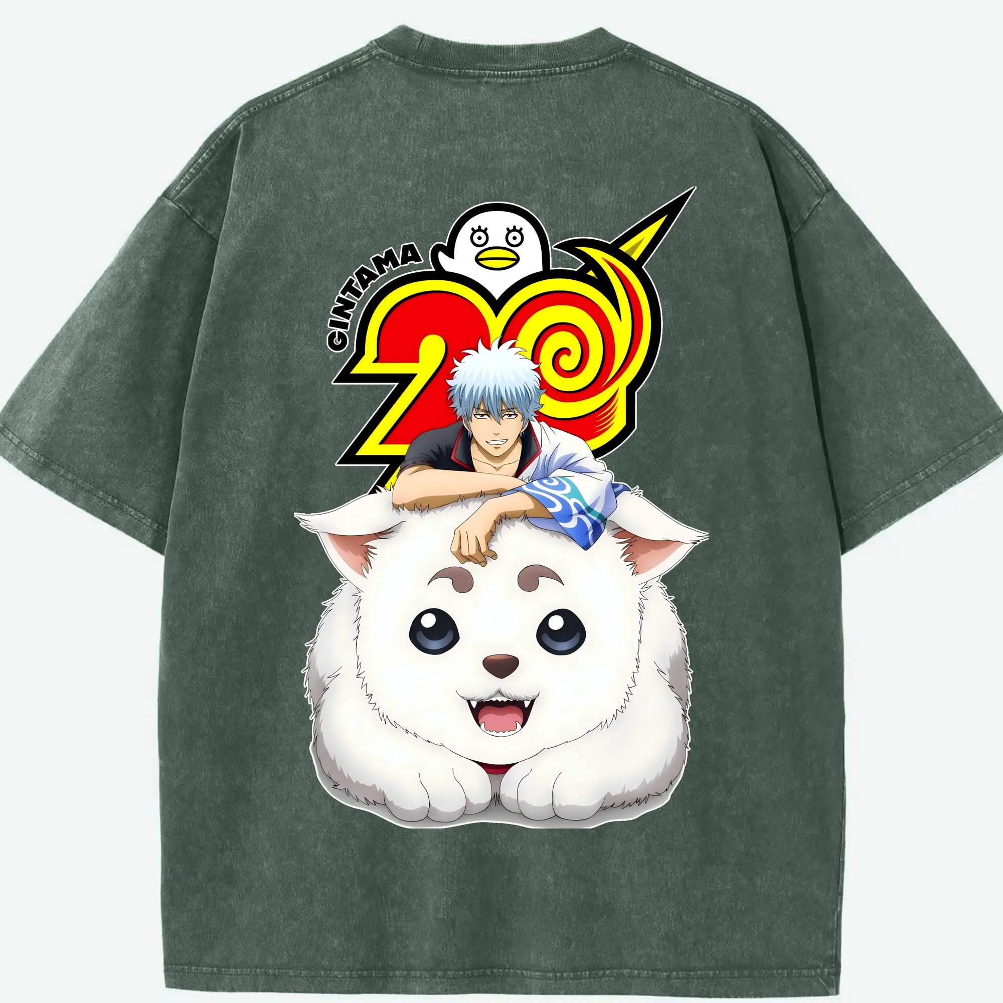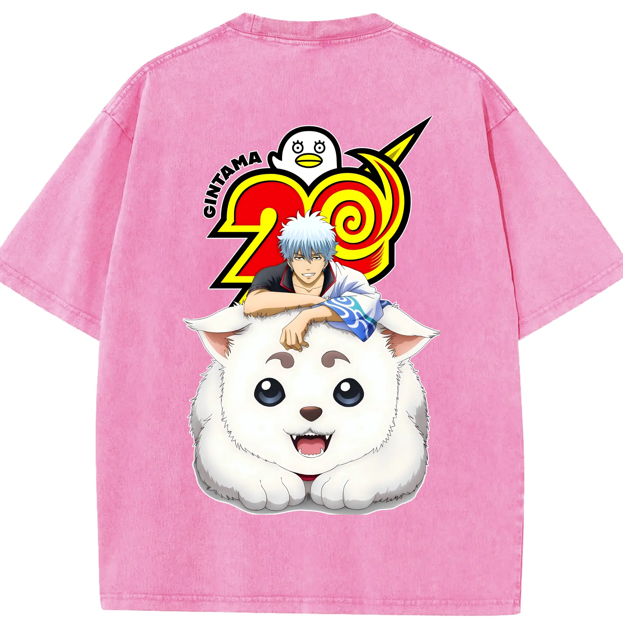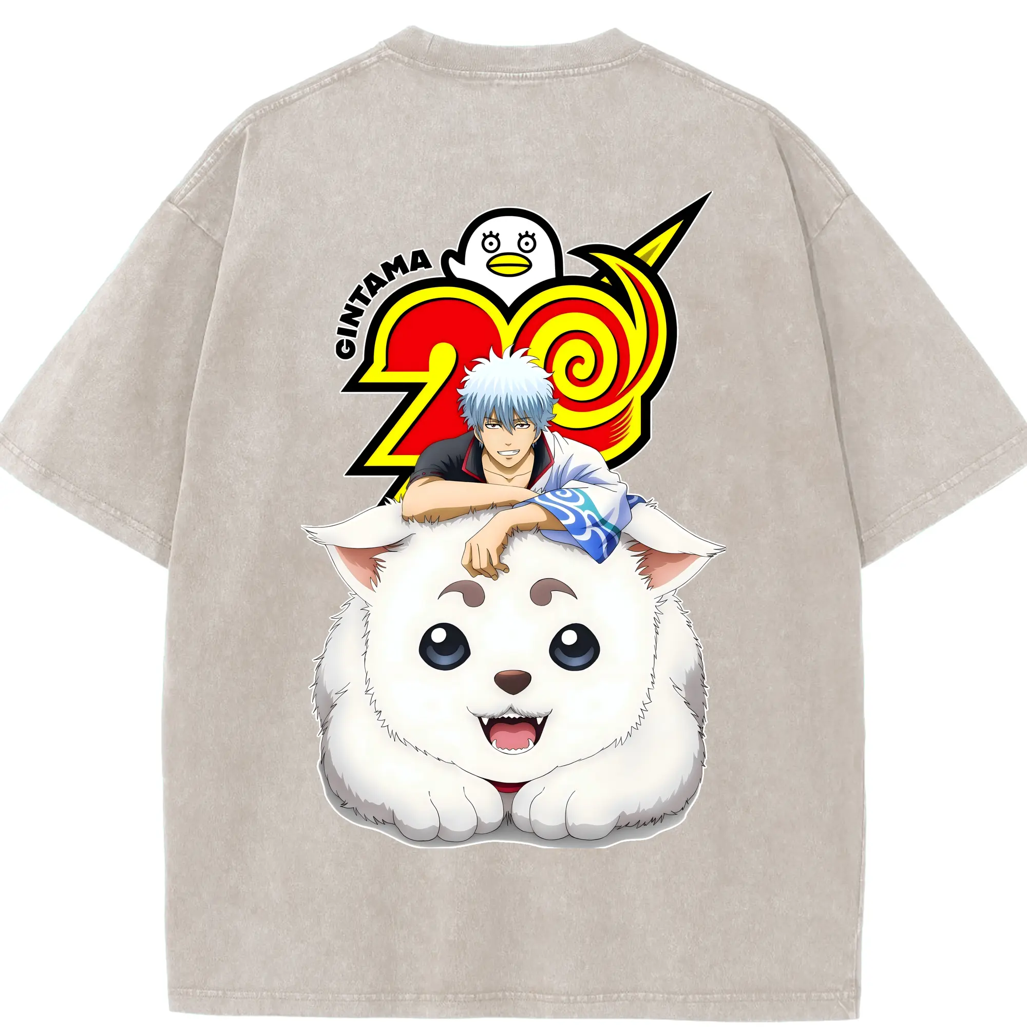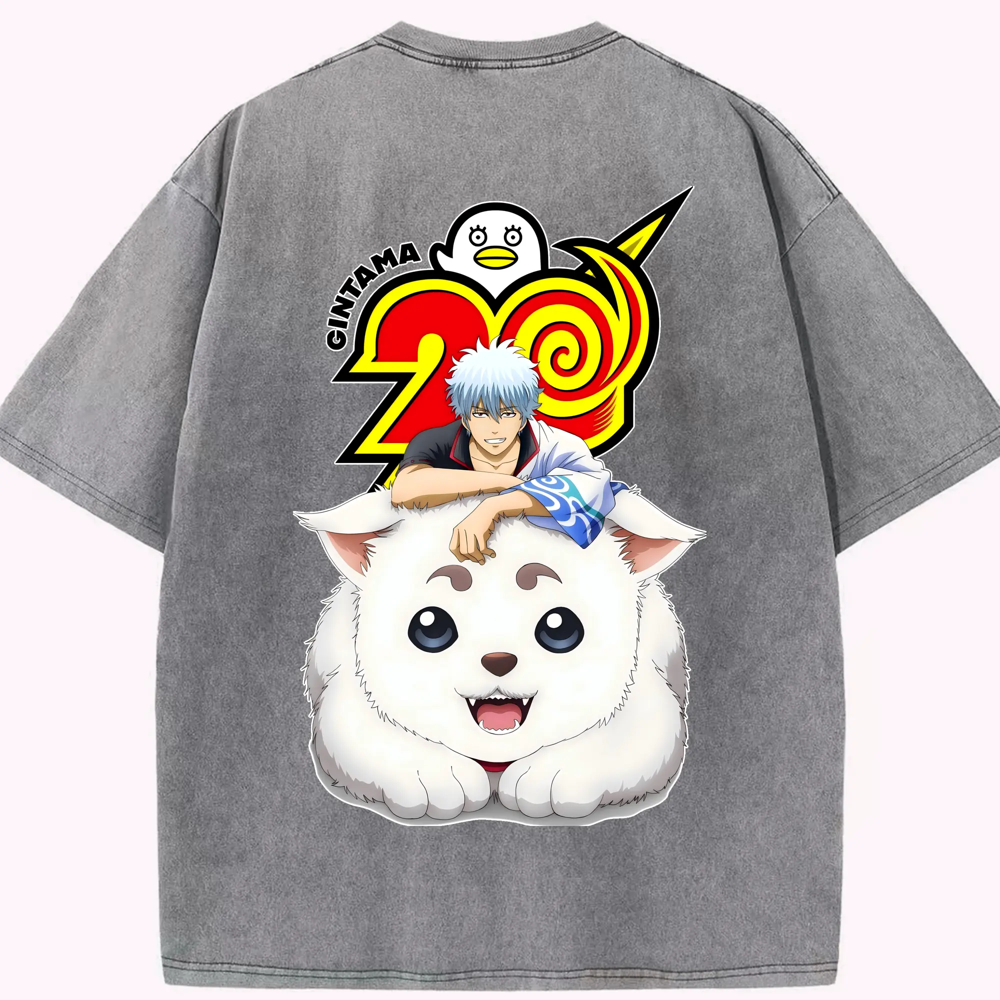 銀魂 グッズ 坂田 銀時 - 綿100% ヴィンテージ風 半袖Tシャツ ・ フロントプリント ・ 柔らか肌触り ・ 通気性 快適 ・ スポーツ カジュアル 外出用