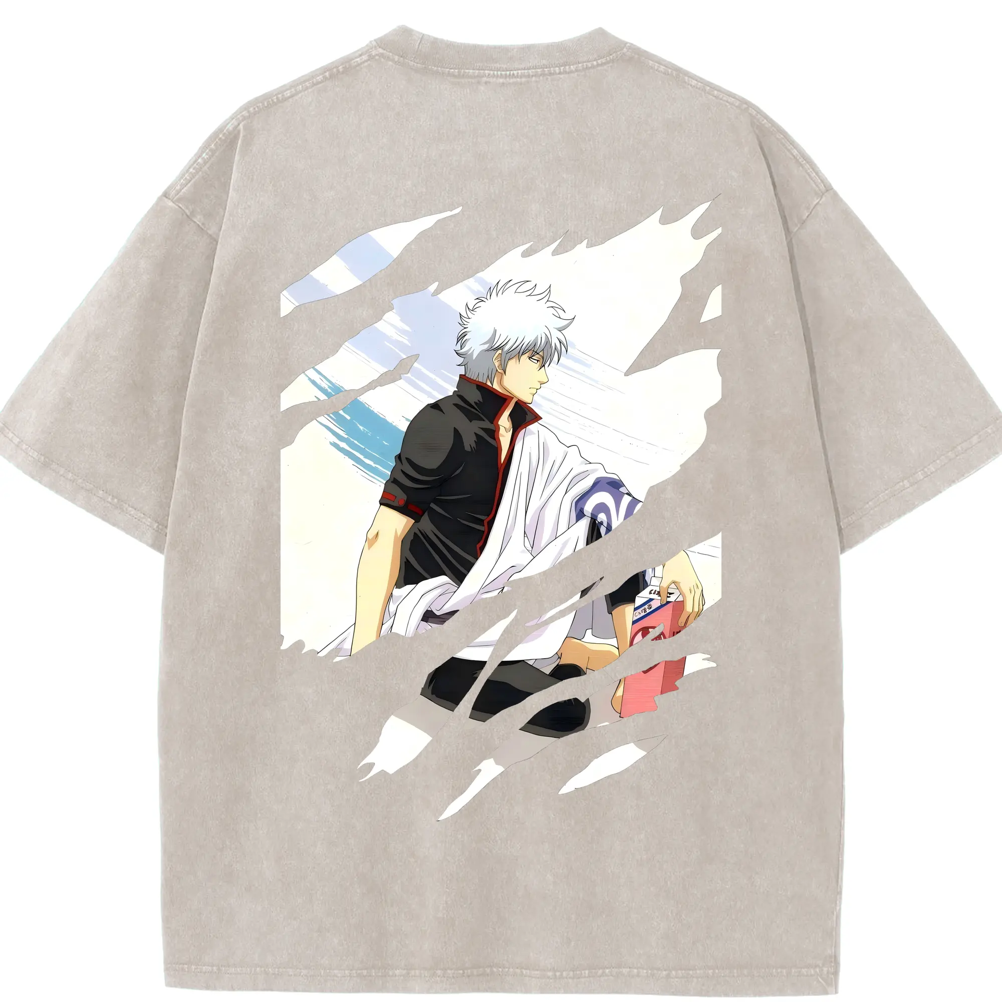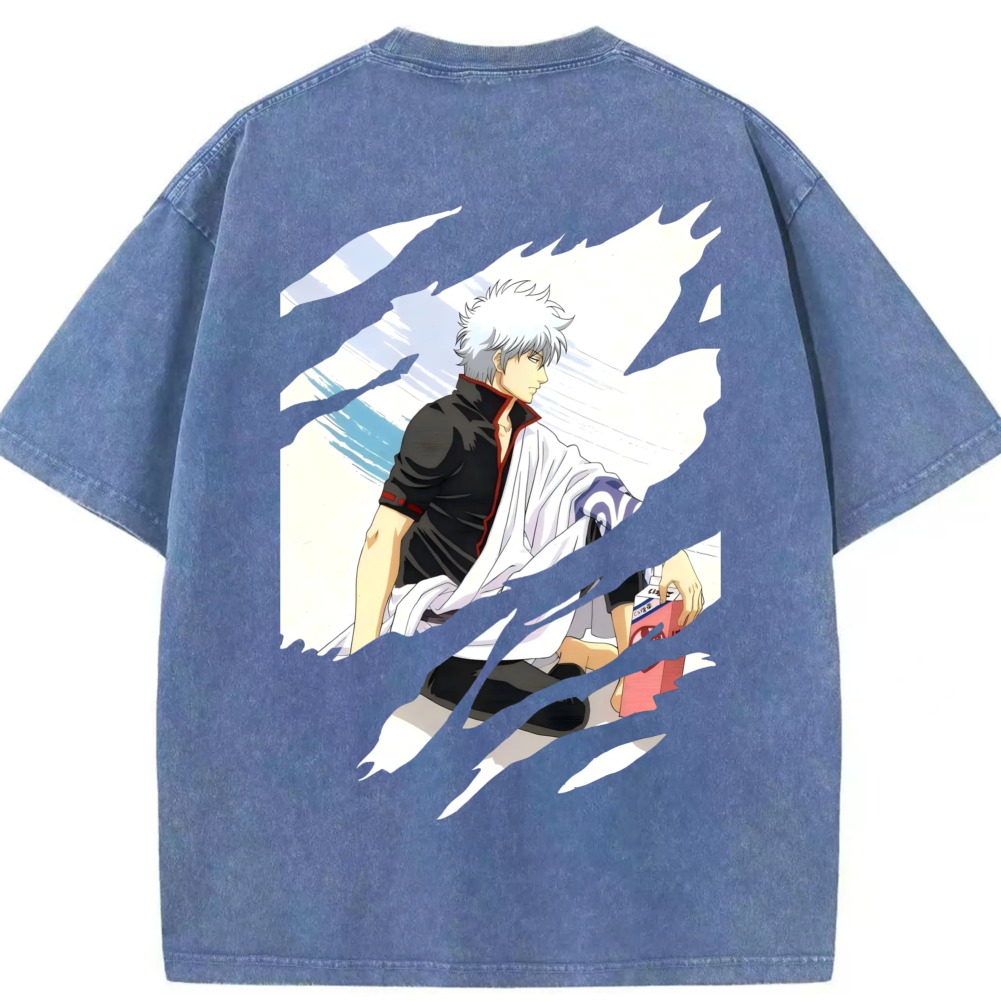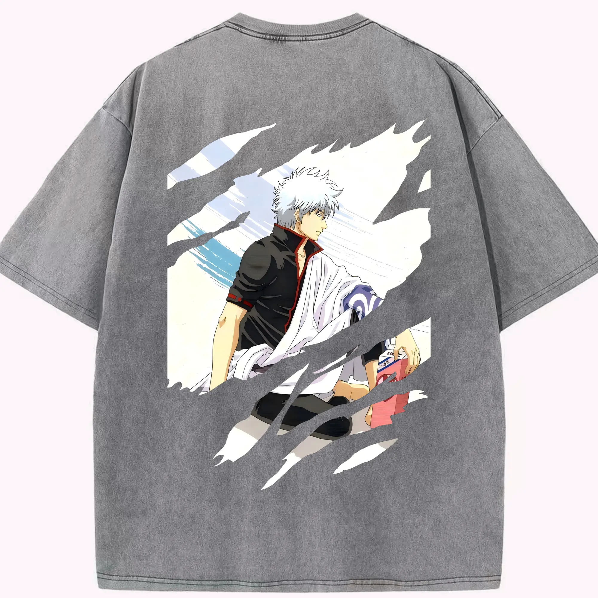 銀魂 グッズ 坂田 銀時 - 綿100% ヴィンテージ風 半袖Tシャツ ・ フロントプリント ・ 柔らか肌触り ・ 通気性 快適 ・ スポーツ カジュアル 外出用