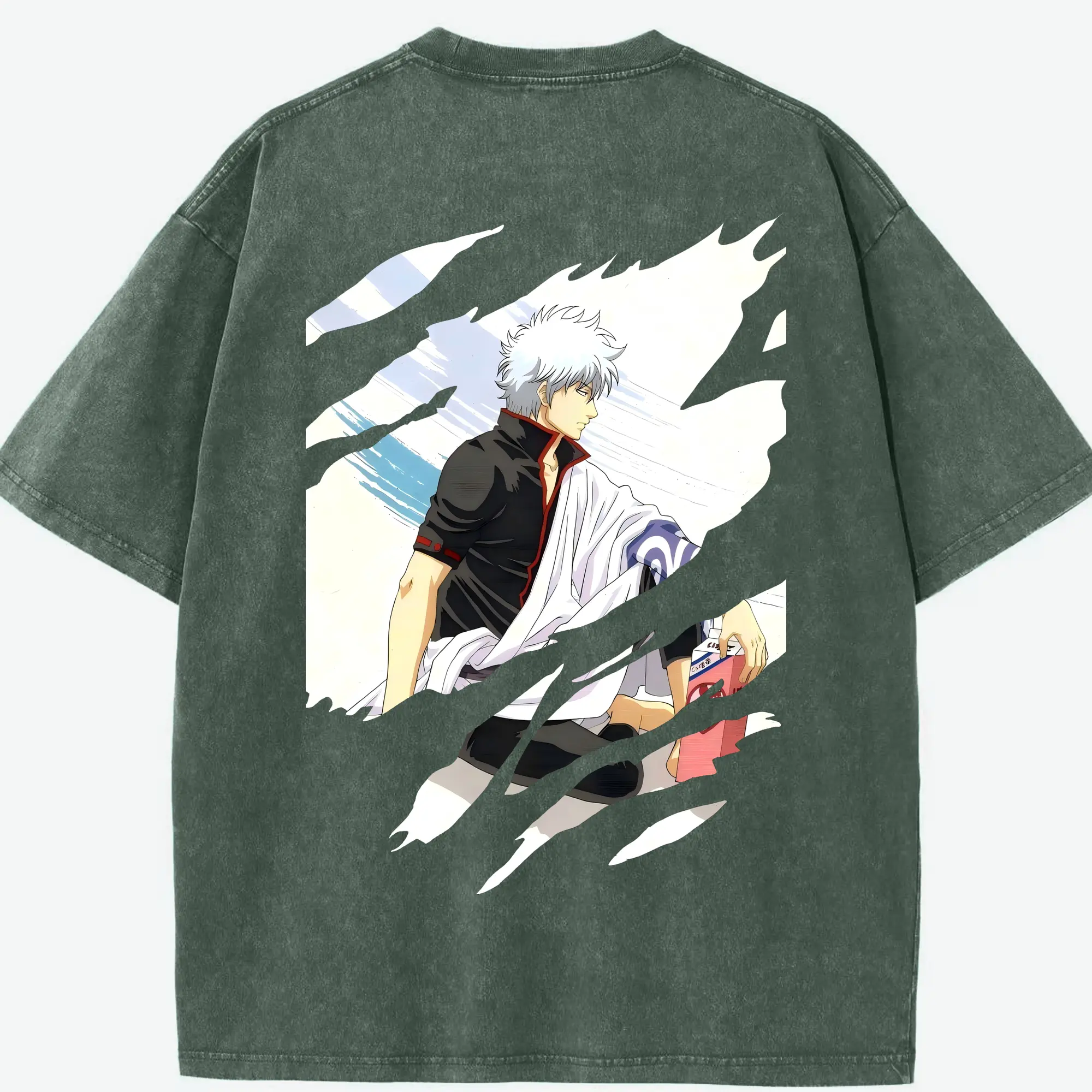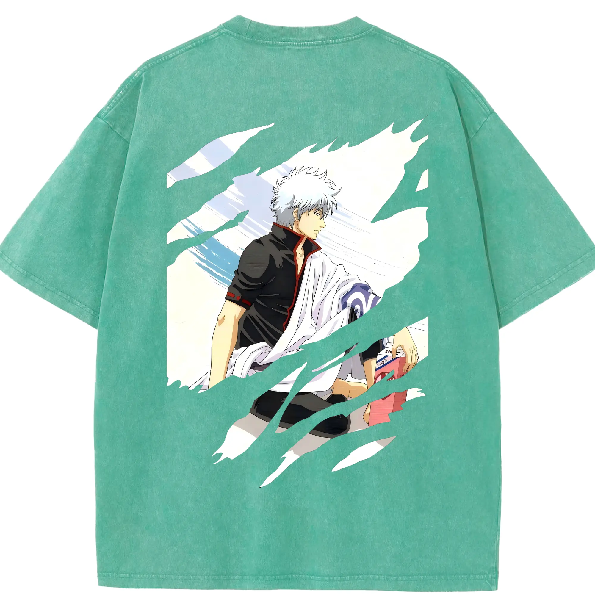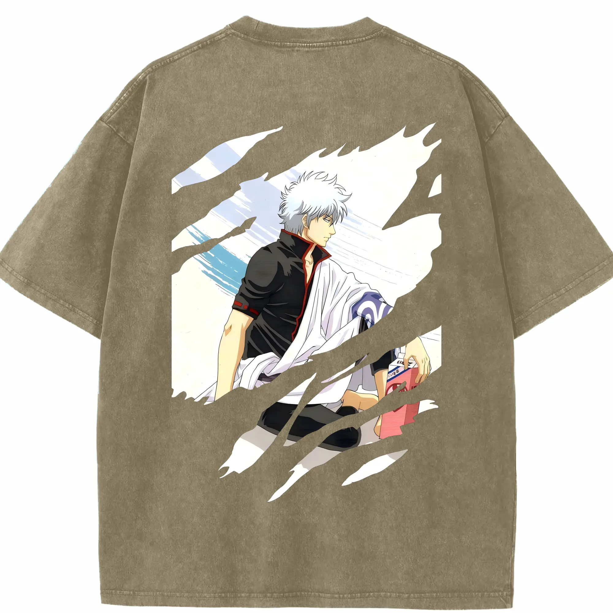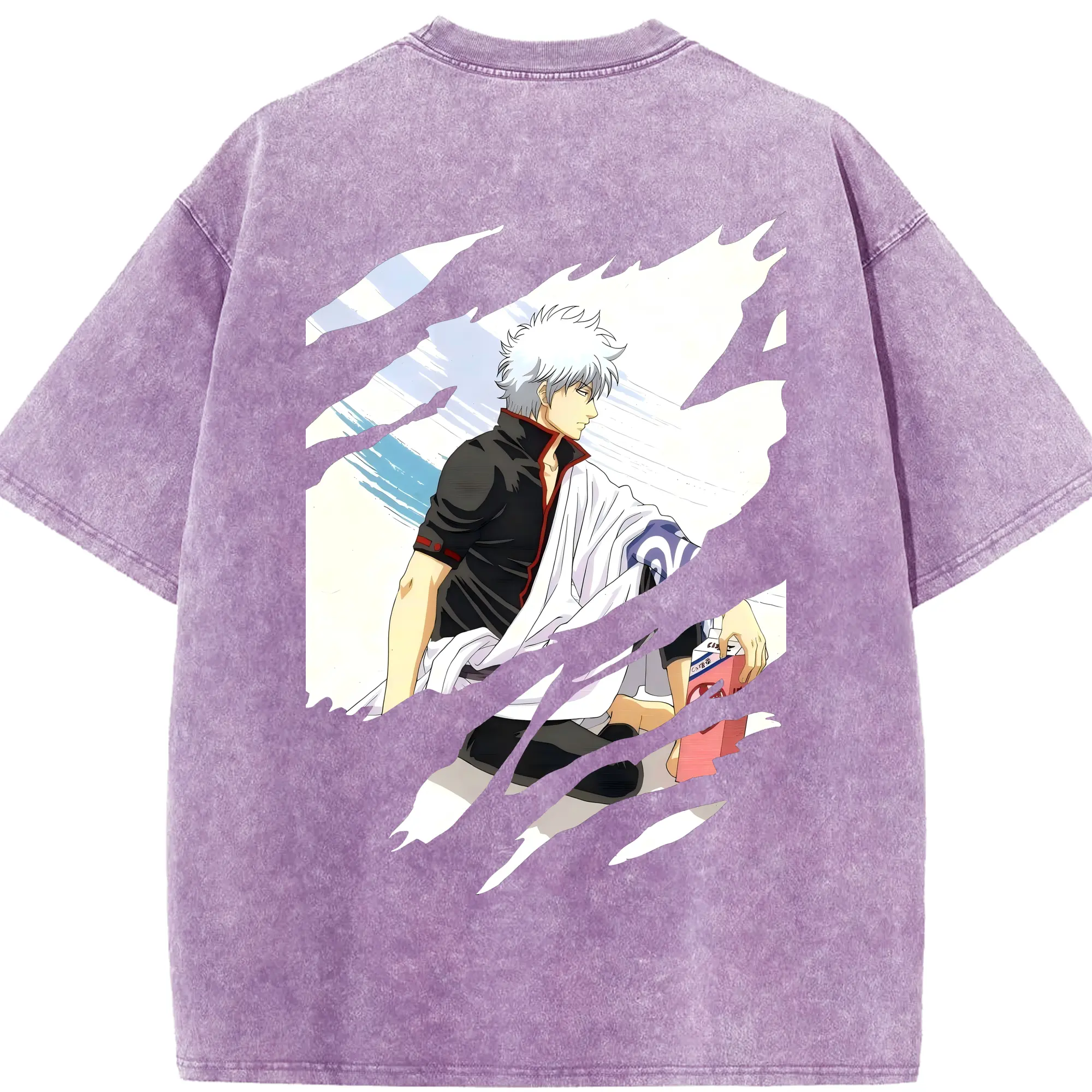 銀魂 グッズ 坂田 銀時 - 綿100% ヴィンテージ風 半袖Tシャツ ・ フロントプリント ・ 柔らか肌触り ・ 通気性 快適 ・ スポーツ カジュアル 外出用