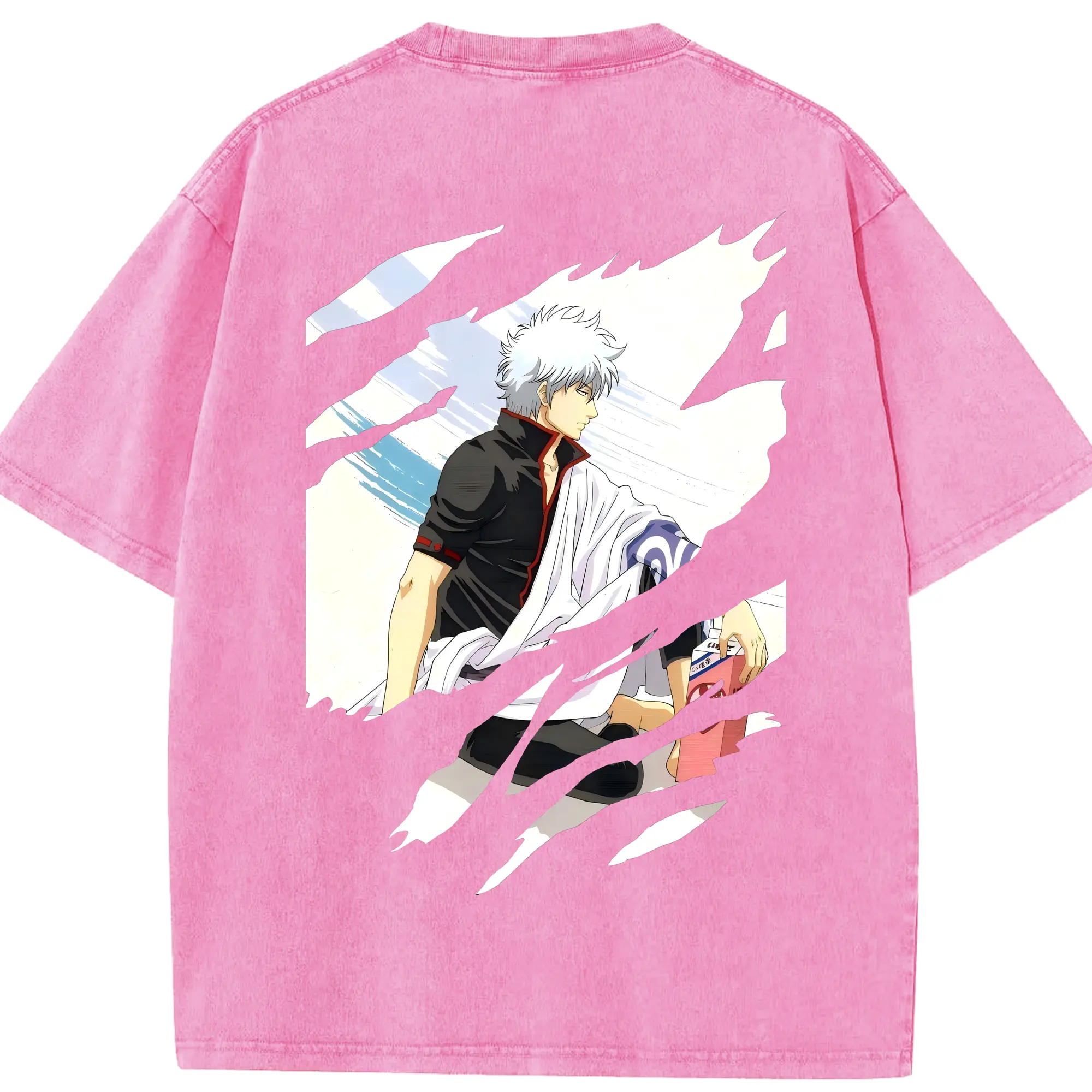 銀魂 グッズ 坂田 銀時 - 綿100% 半袖Tシャツ ・ バックプリント ・ 快適 通気性 ・ 日常使い 散歩 スポーツ用