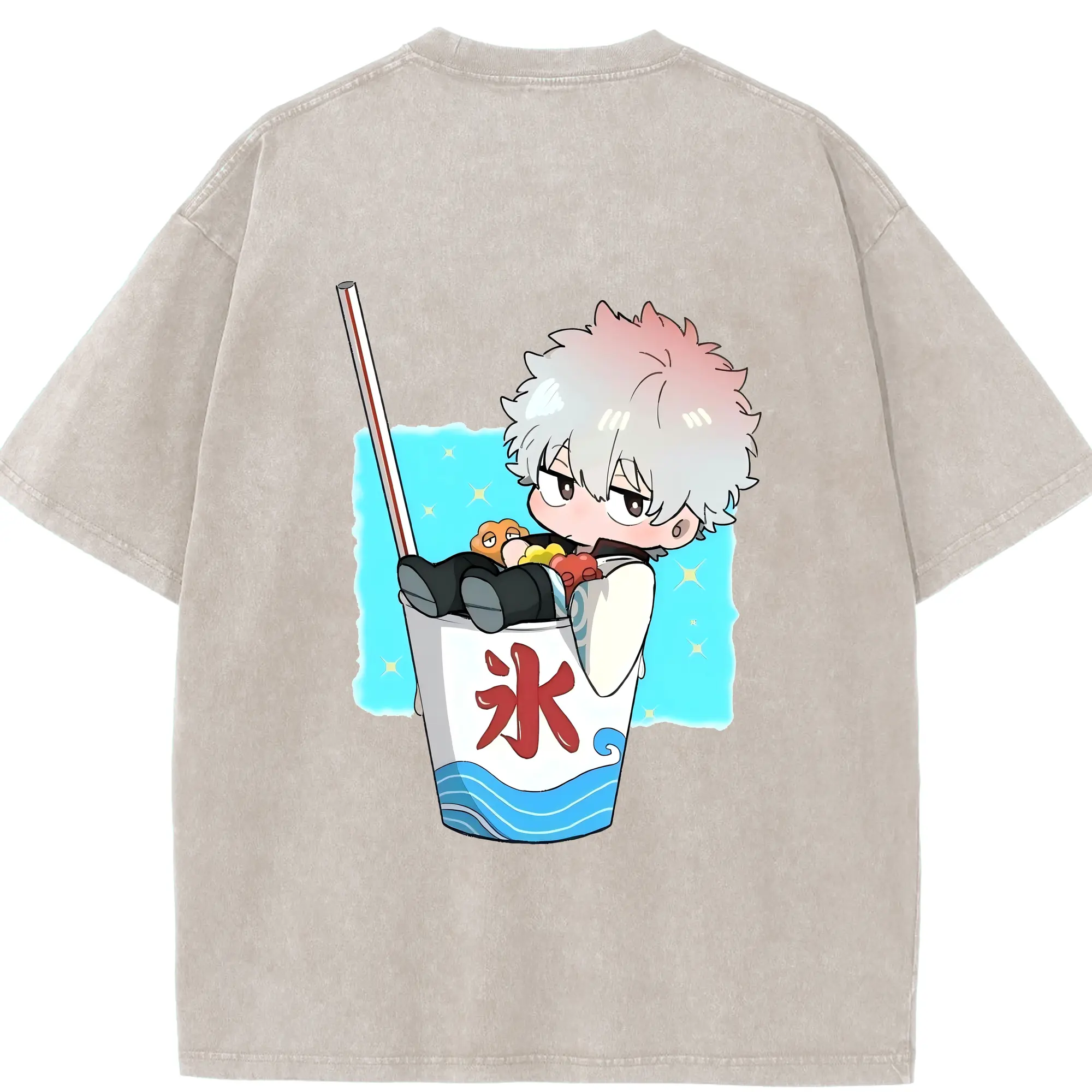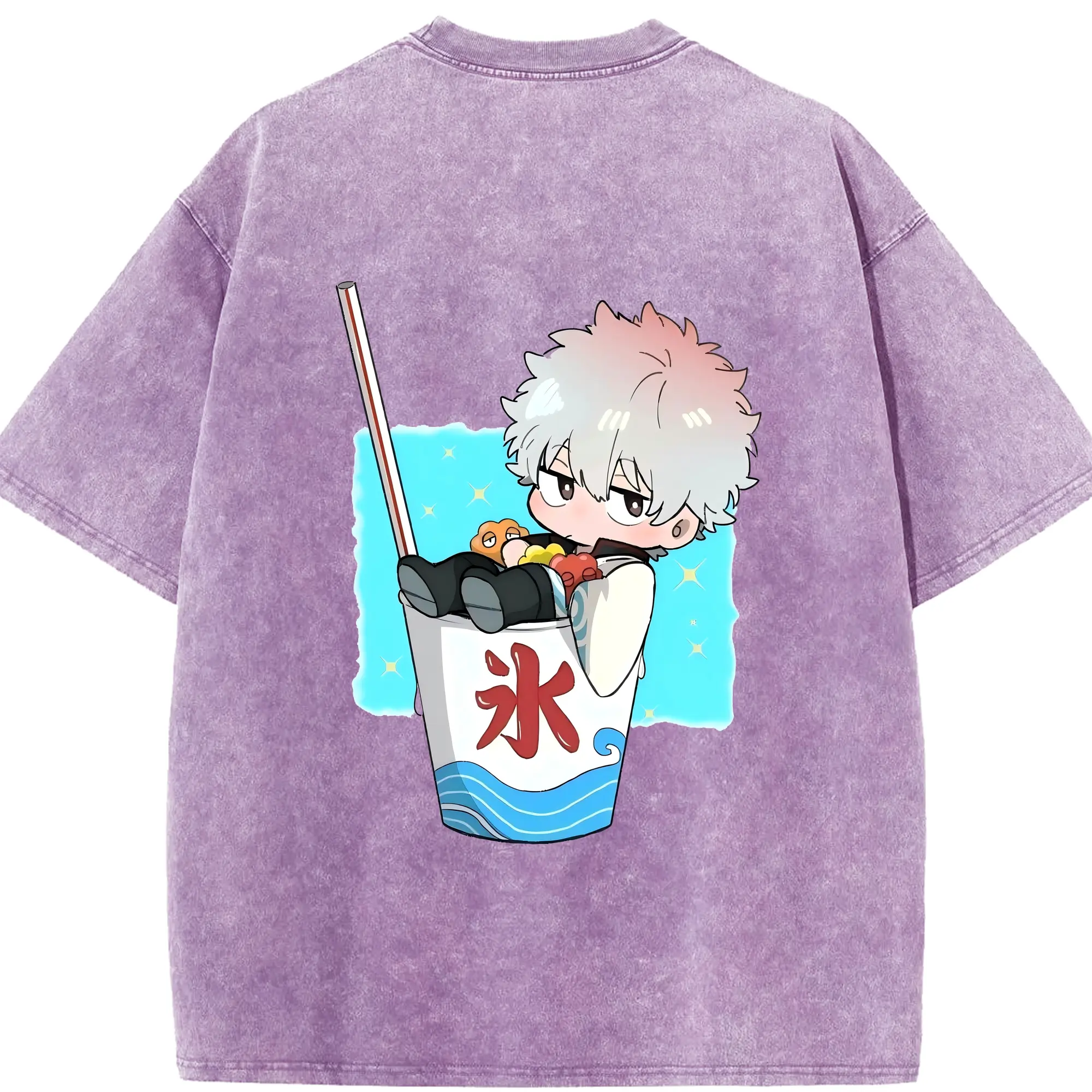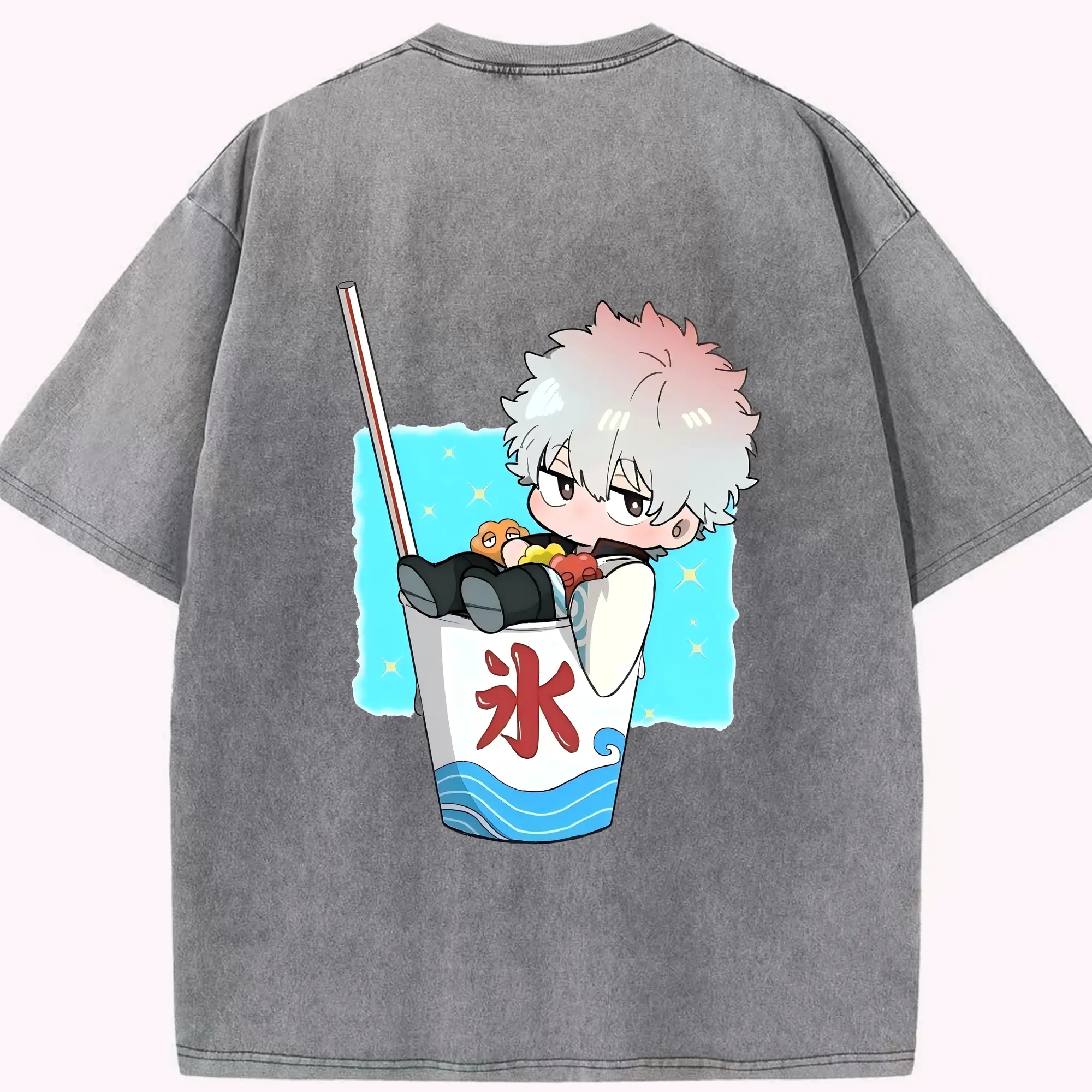 銀魂 グッズ 坂田 銀時 - 綿100% ヴィンテージ風 半袖Tシャツ ・ フロントプリント ・ 柔らか肌触り ・ 通気性 快適 ・ スポーツ カジュアル 外出用