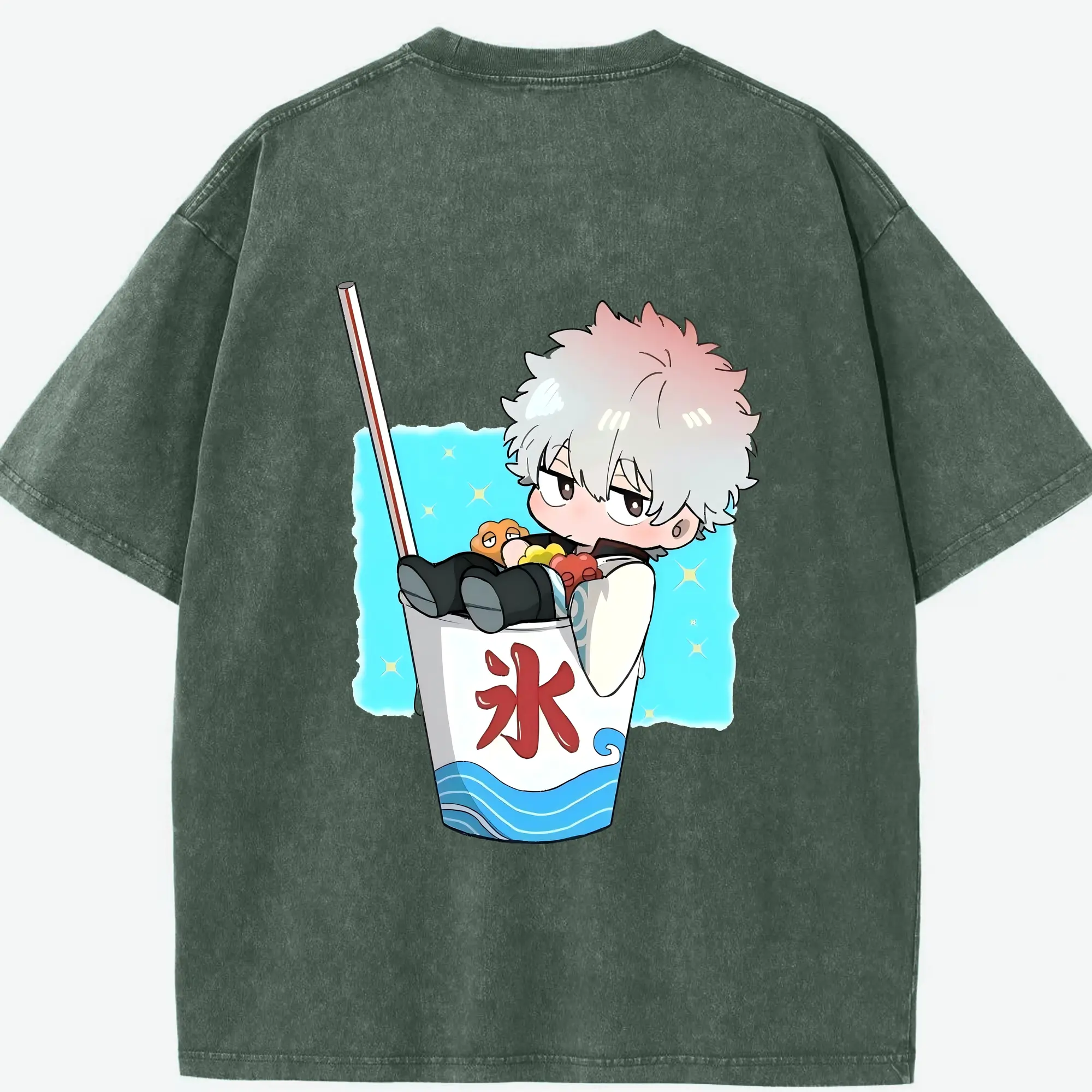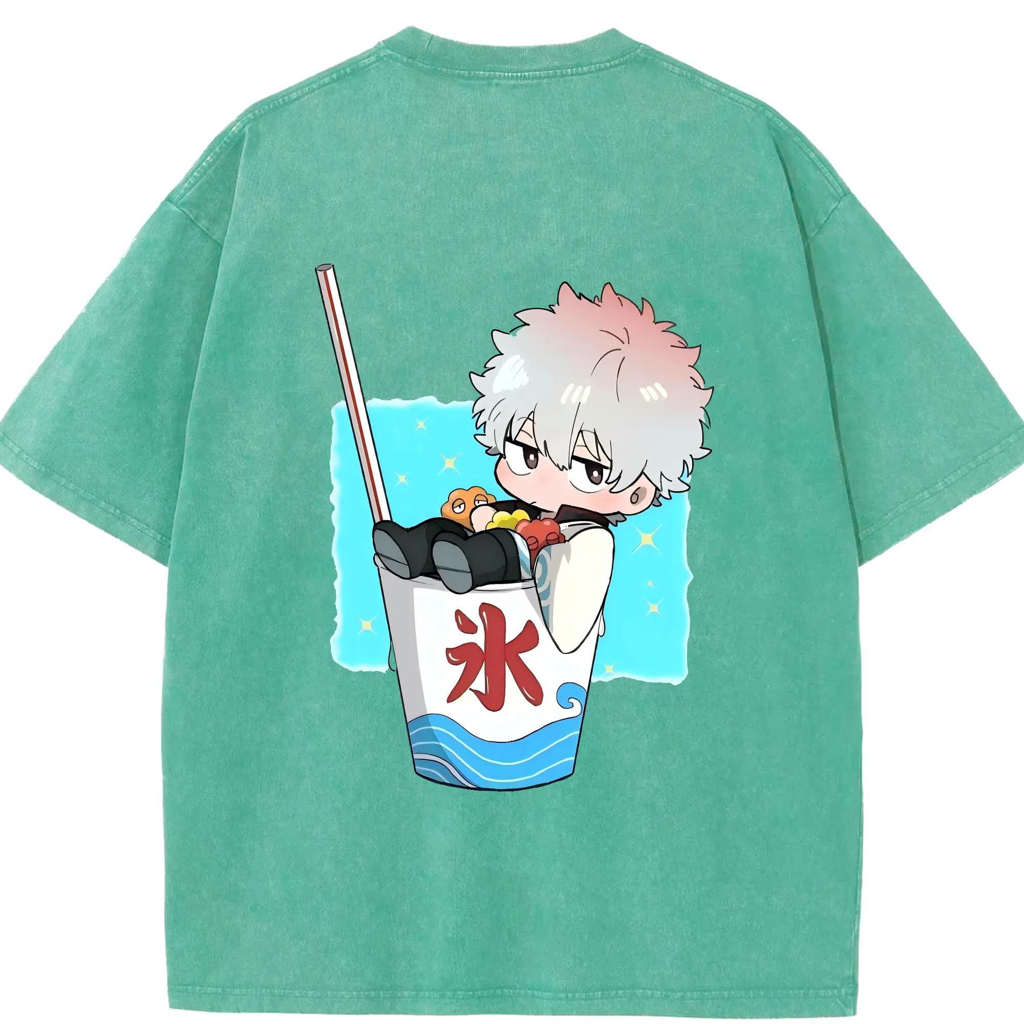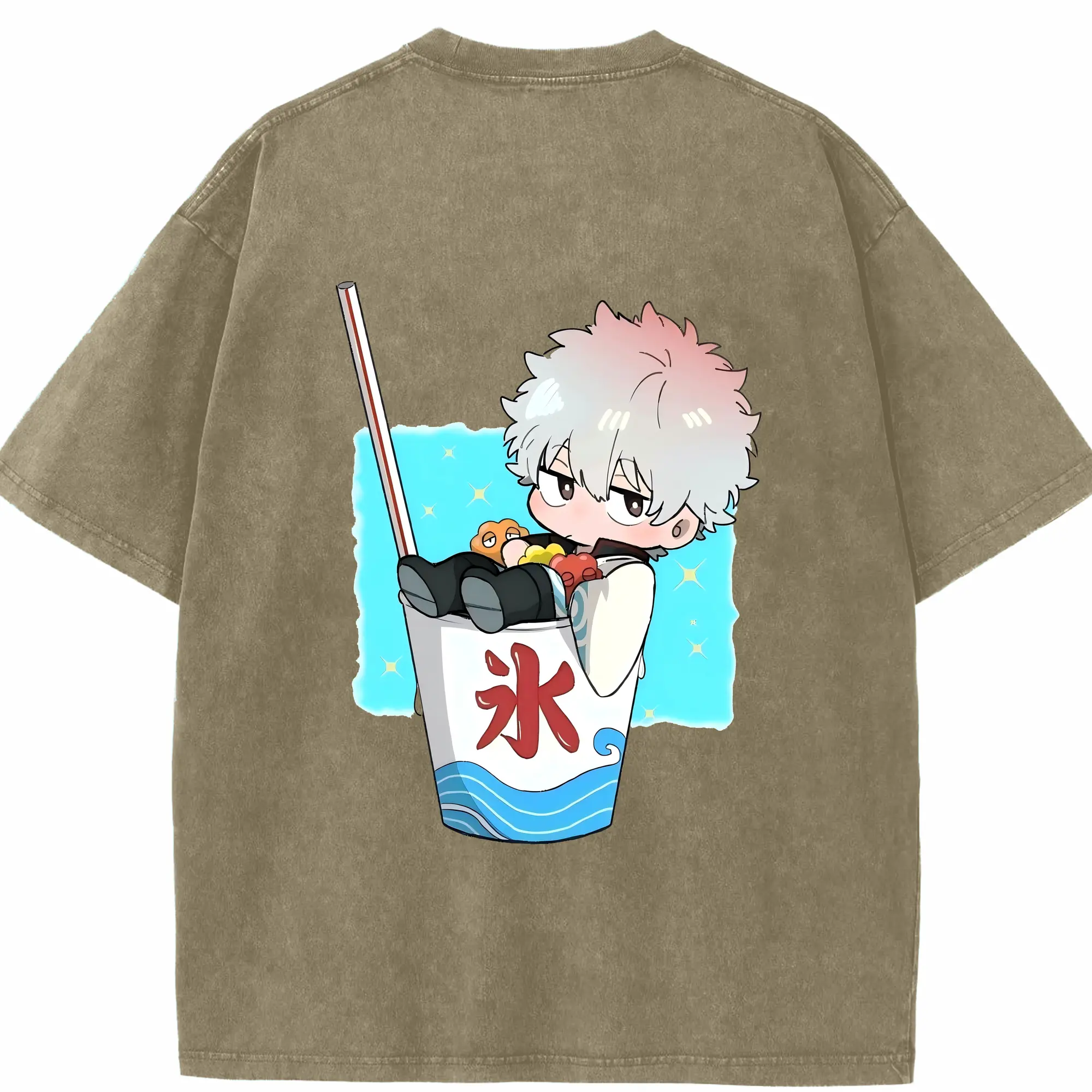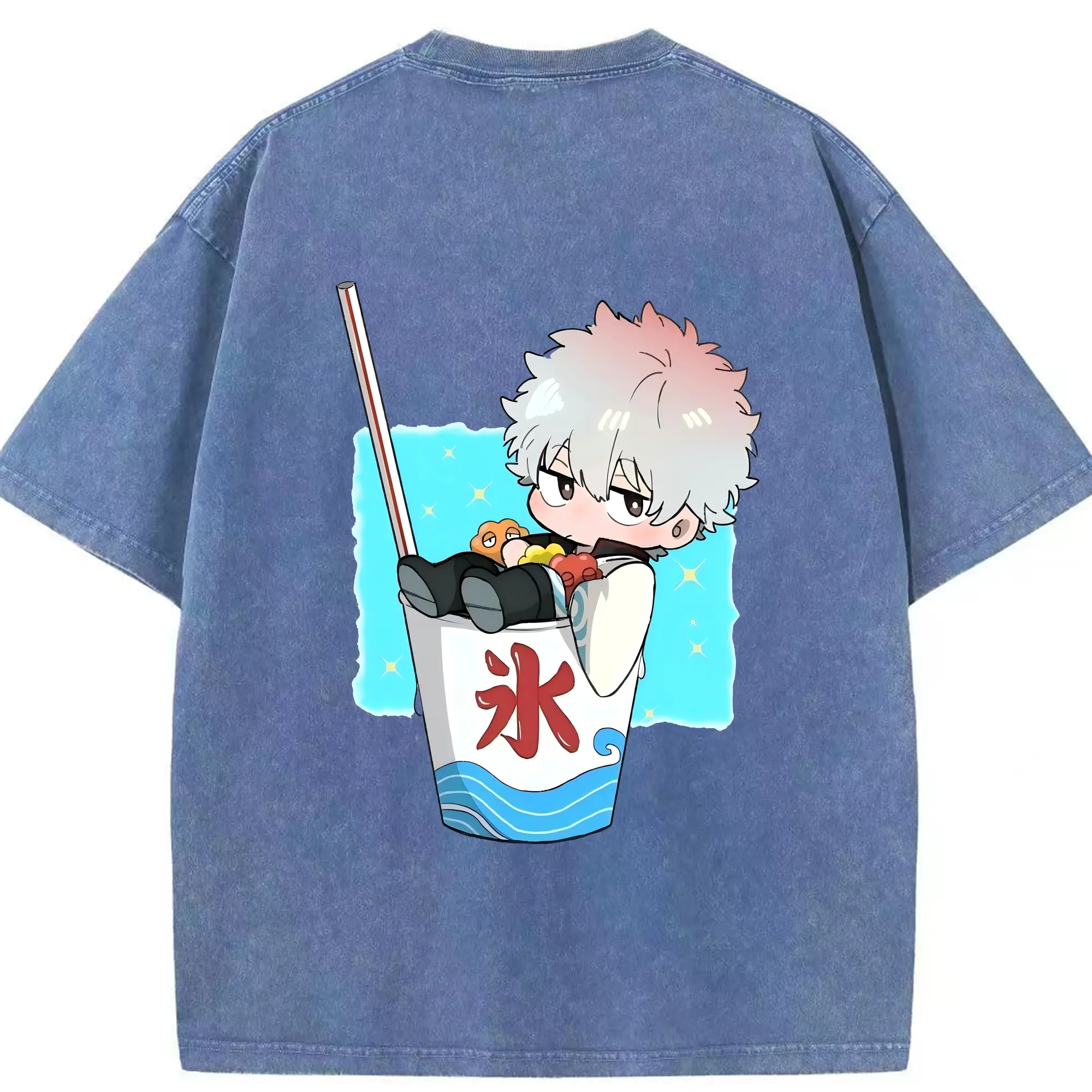 銀魂 グッズ 坂田 銀時 - 綿100% ヴィンテージ風 半袖Tシャツ ・ フロントプリント ・ 柔らか肌触り ・ 通気性 快適 ・ スポーツ カジュアル 外出用