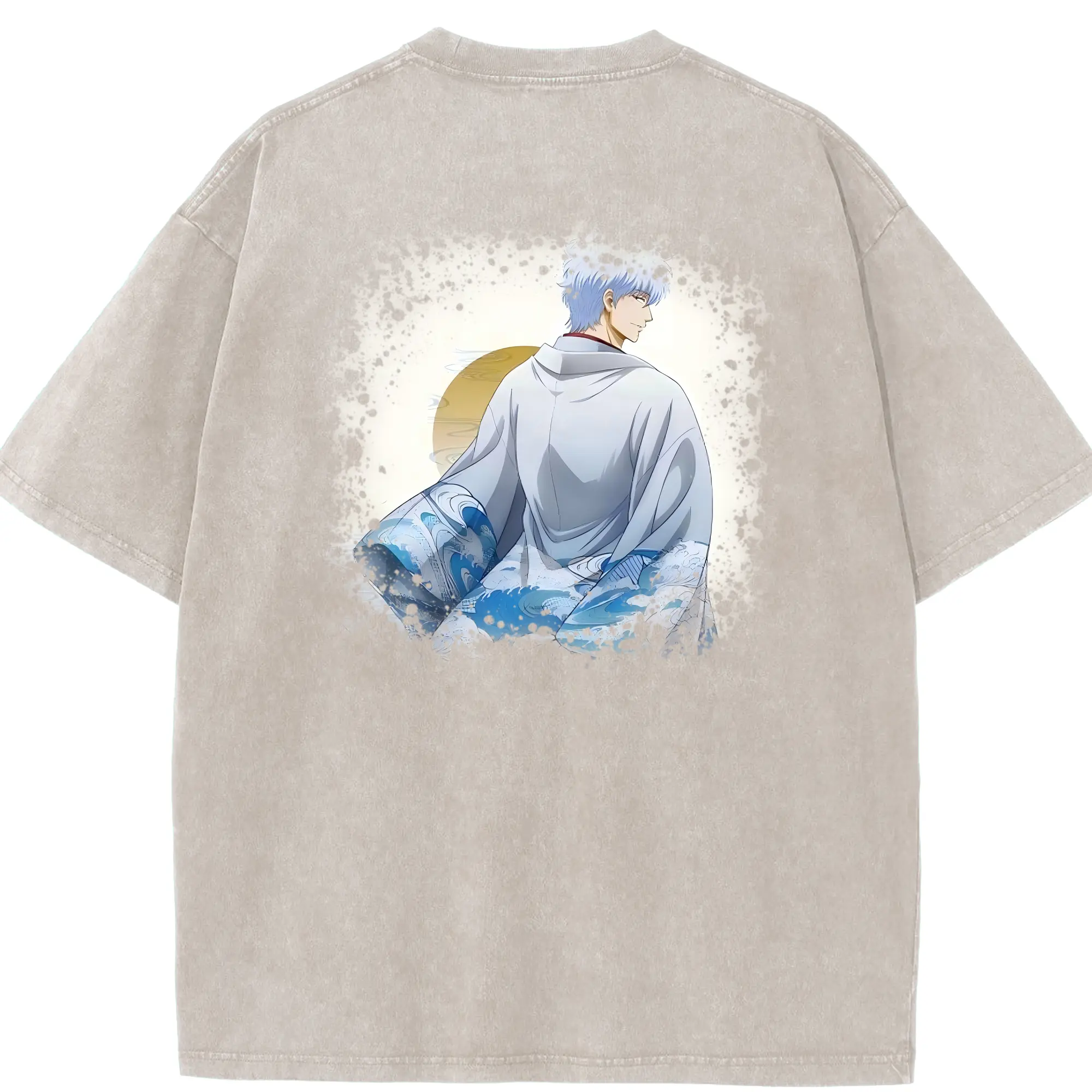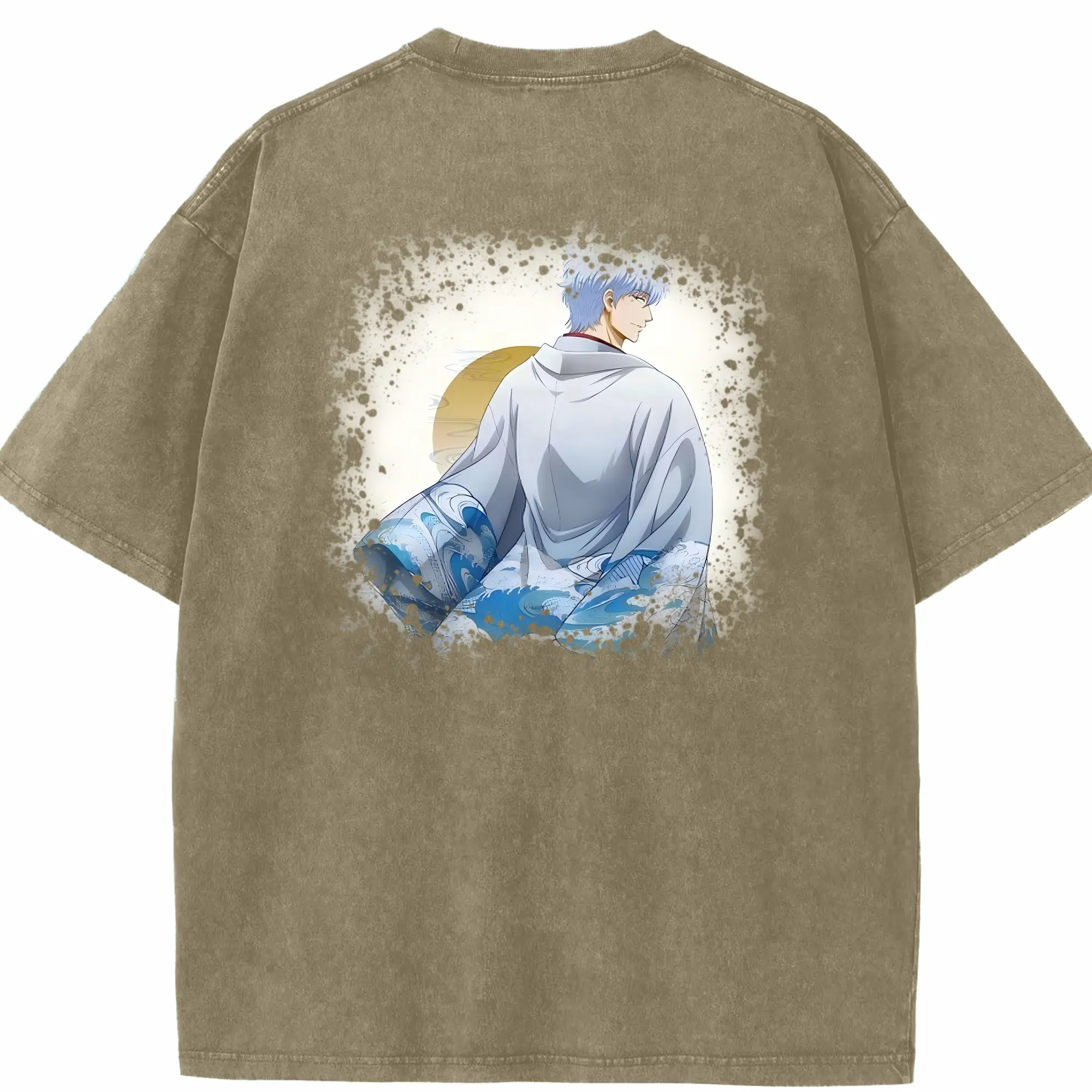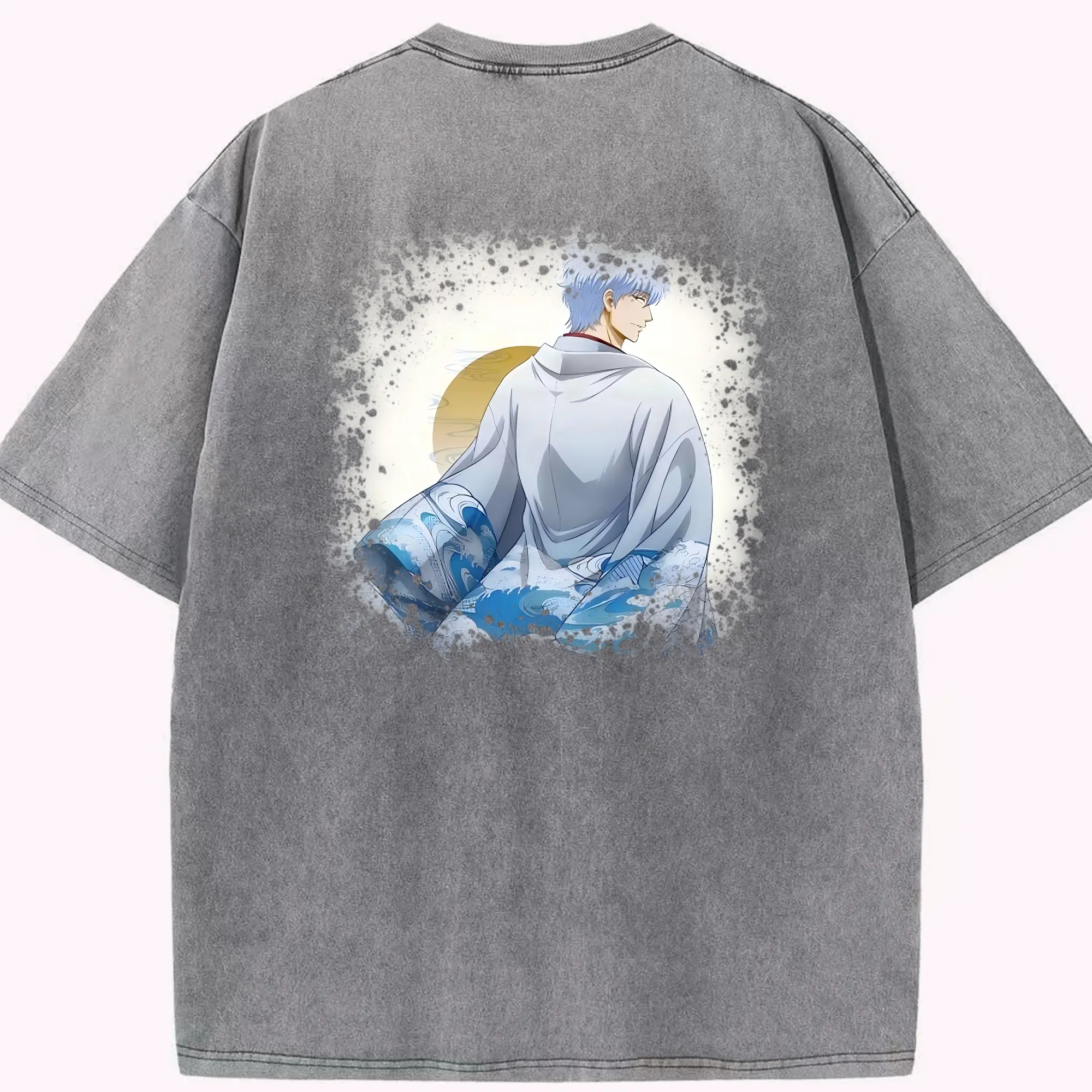 銀魂 グッズ 坂田 銀時 - 綿100% ヴィンテージ風 半袖Tシャツ ・ フロントプリント ・ 柔らか肌触り ・ 通気性 快適 ・ スポーツ カジュアル 外出用