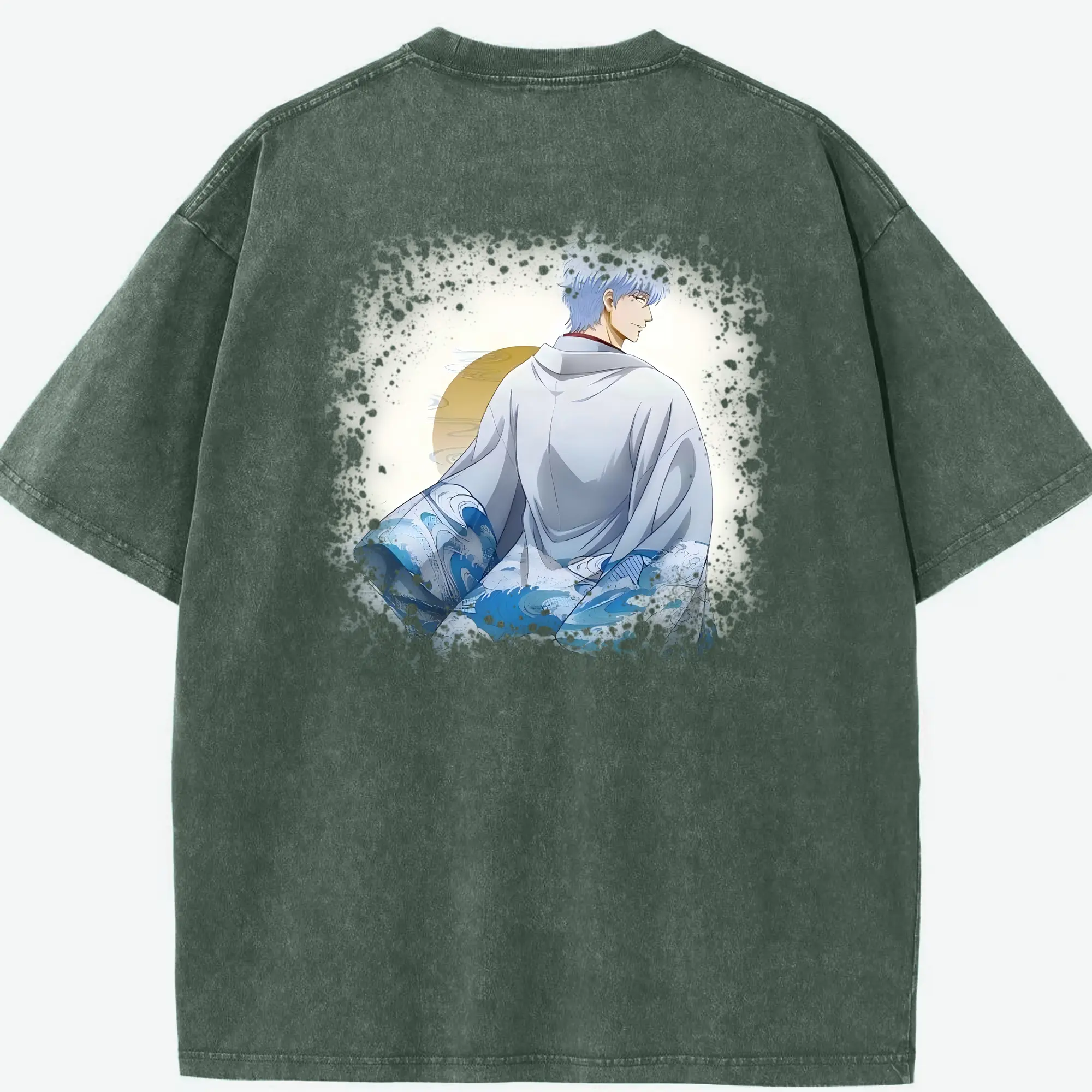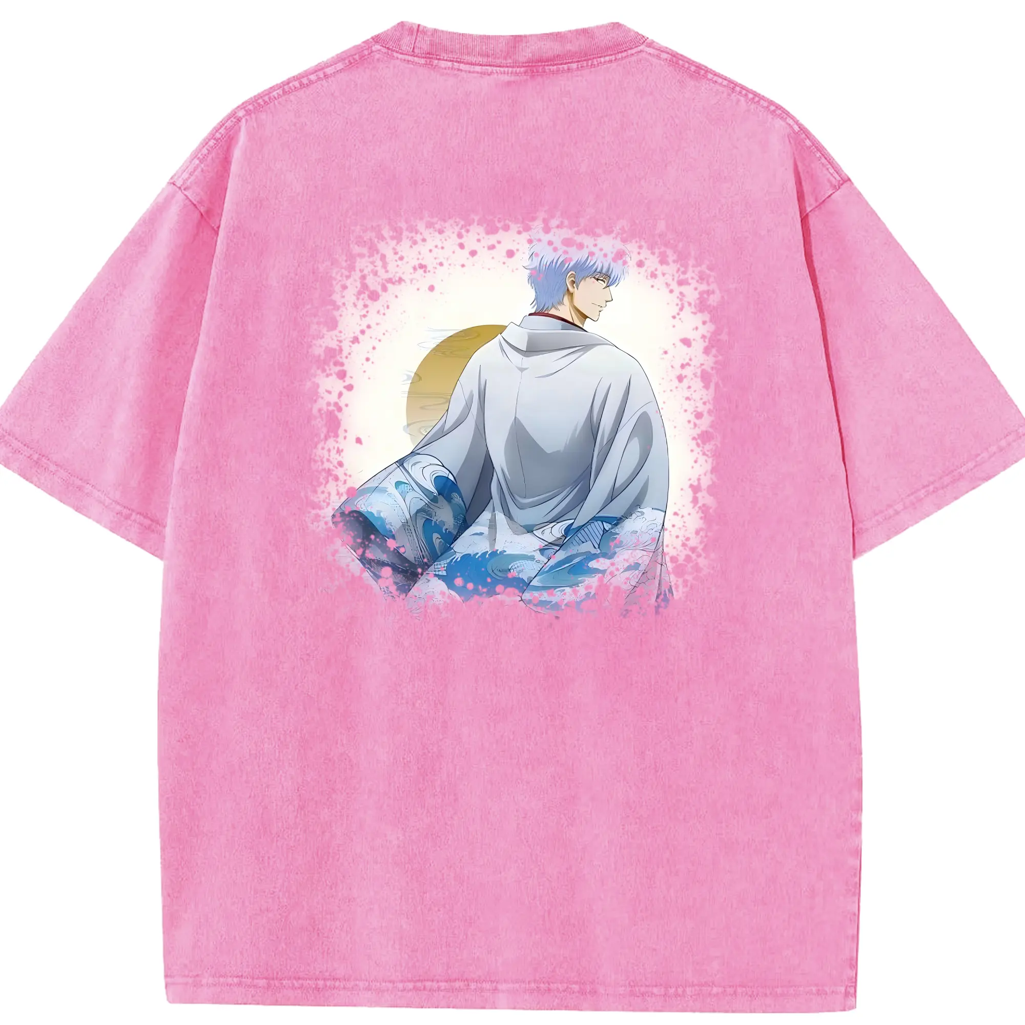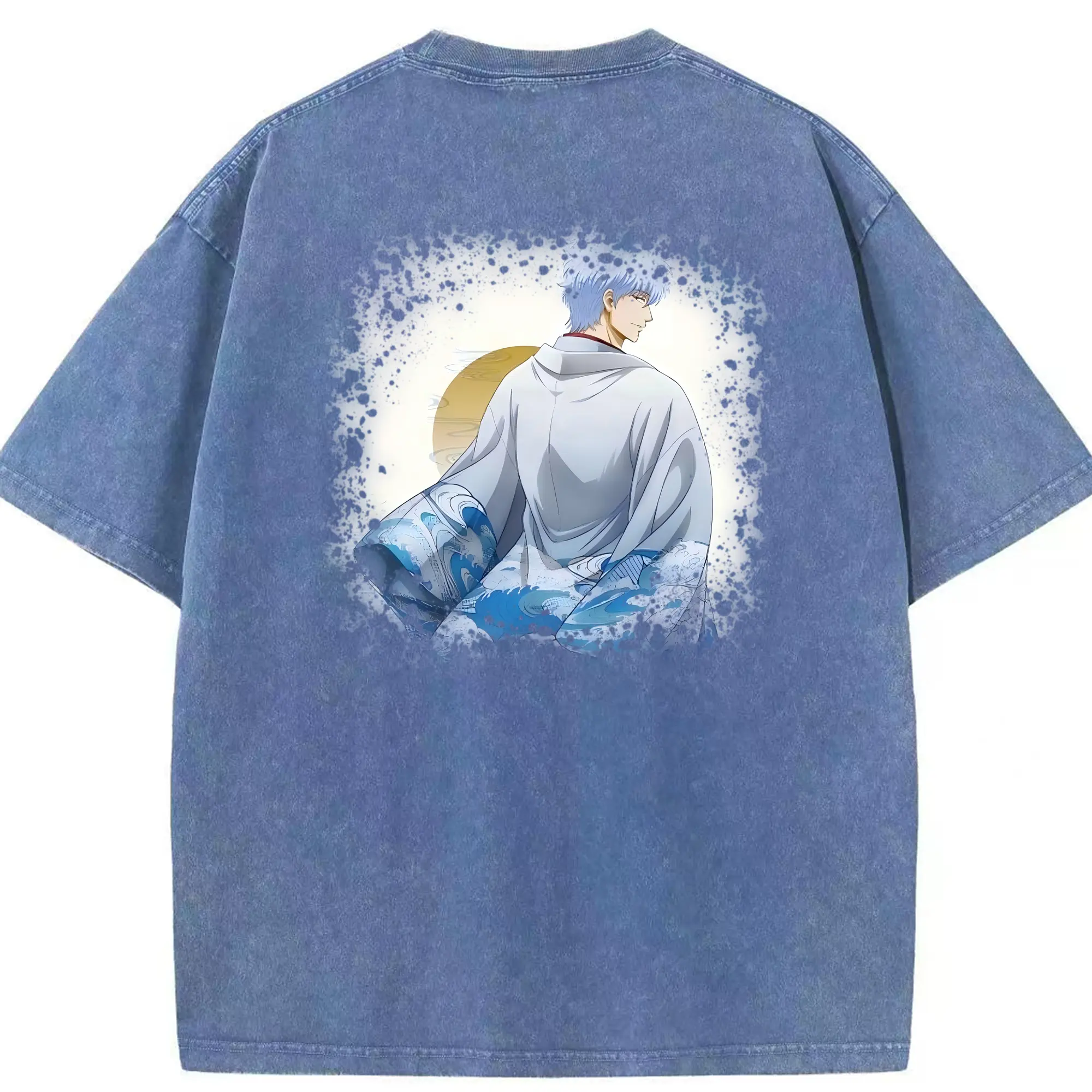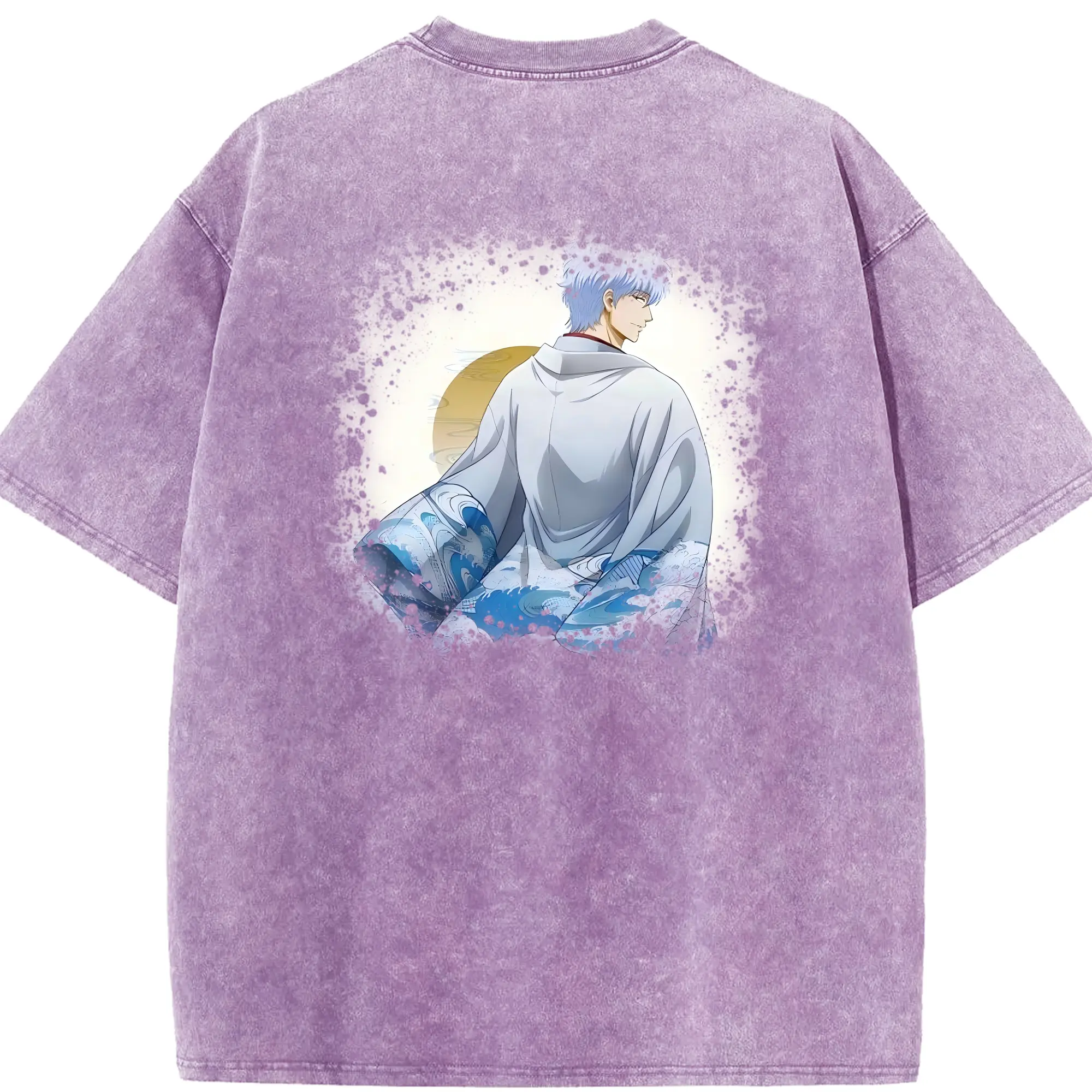 銀魂 グッズ 坂田 銀時 - 綿100% ヴィンテージ風 半袖Tシャツ ・ フロントプリント ・ 柔らか肌触り ・ 通気性 快適 ・ スポーツ カジュアル 外出用