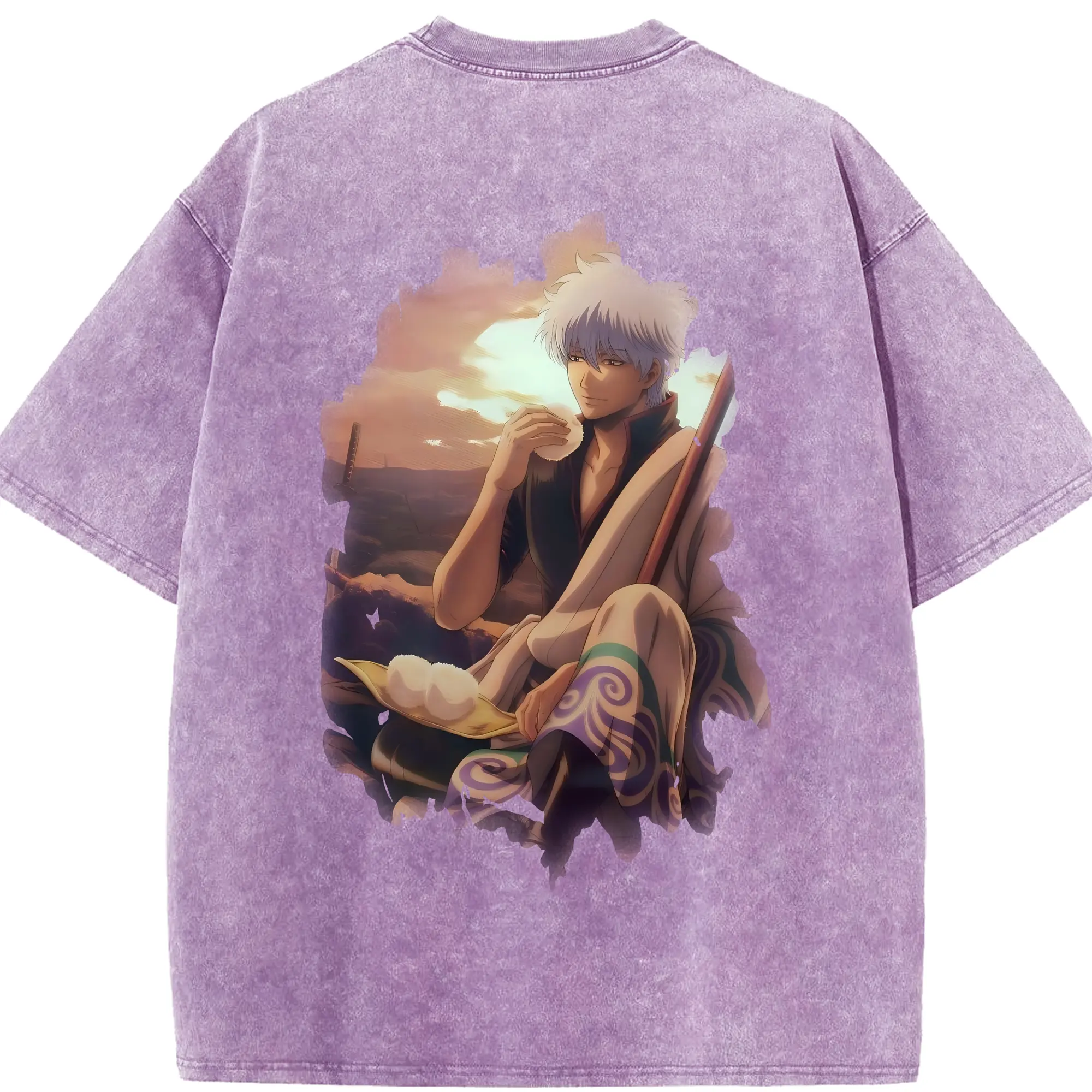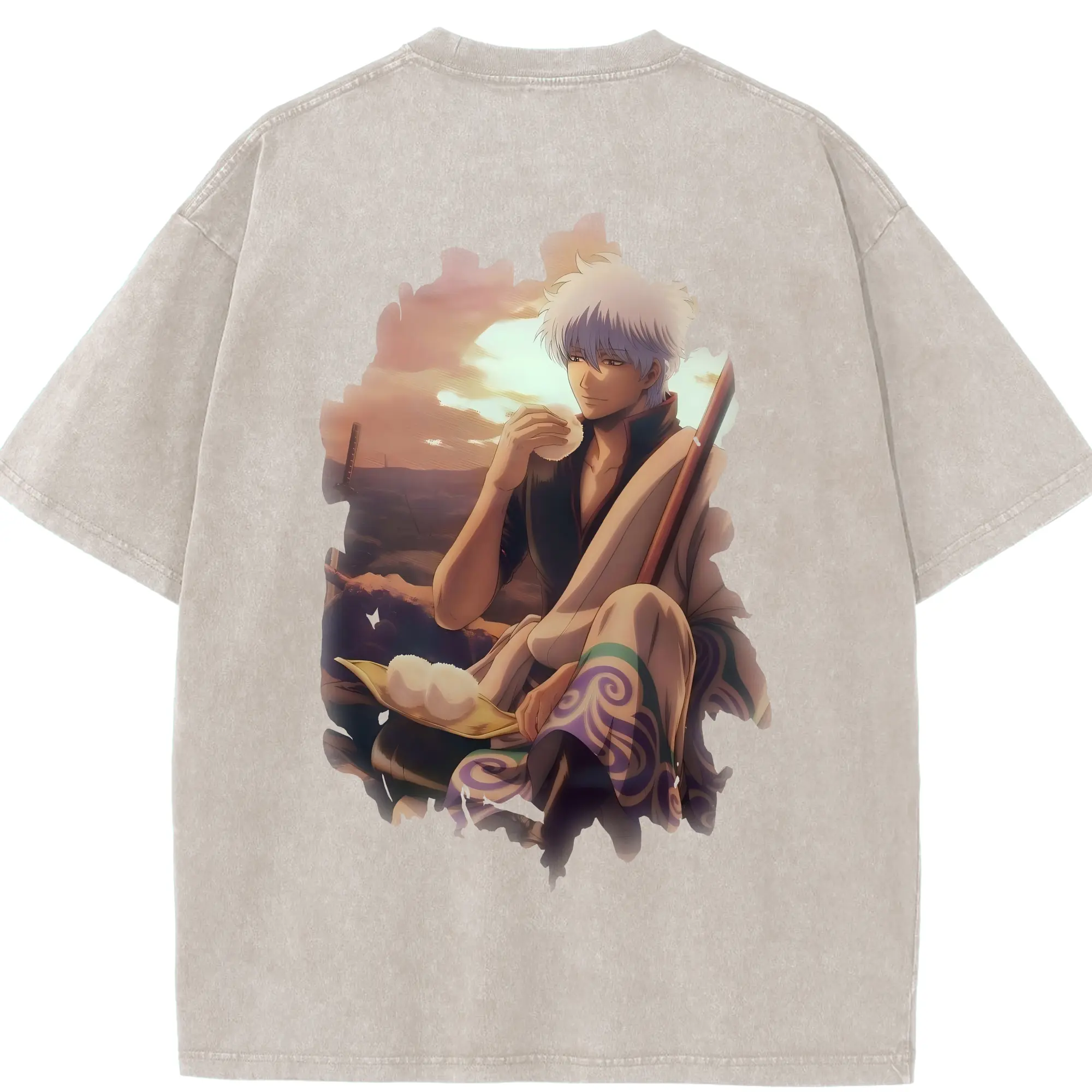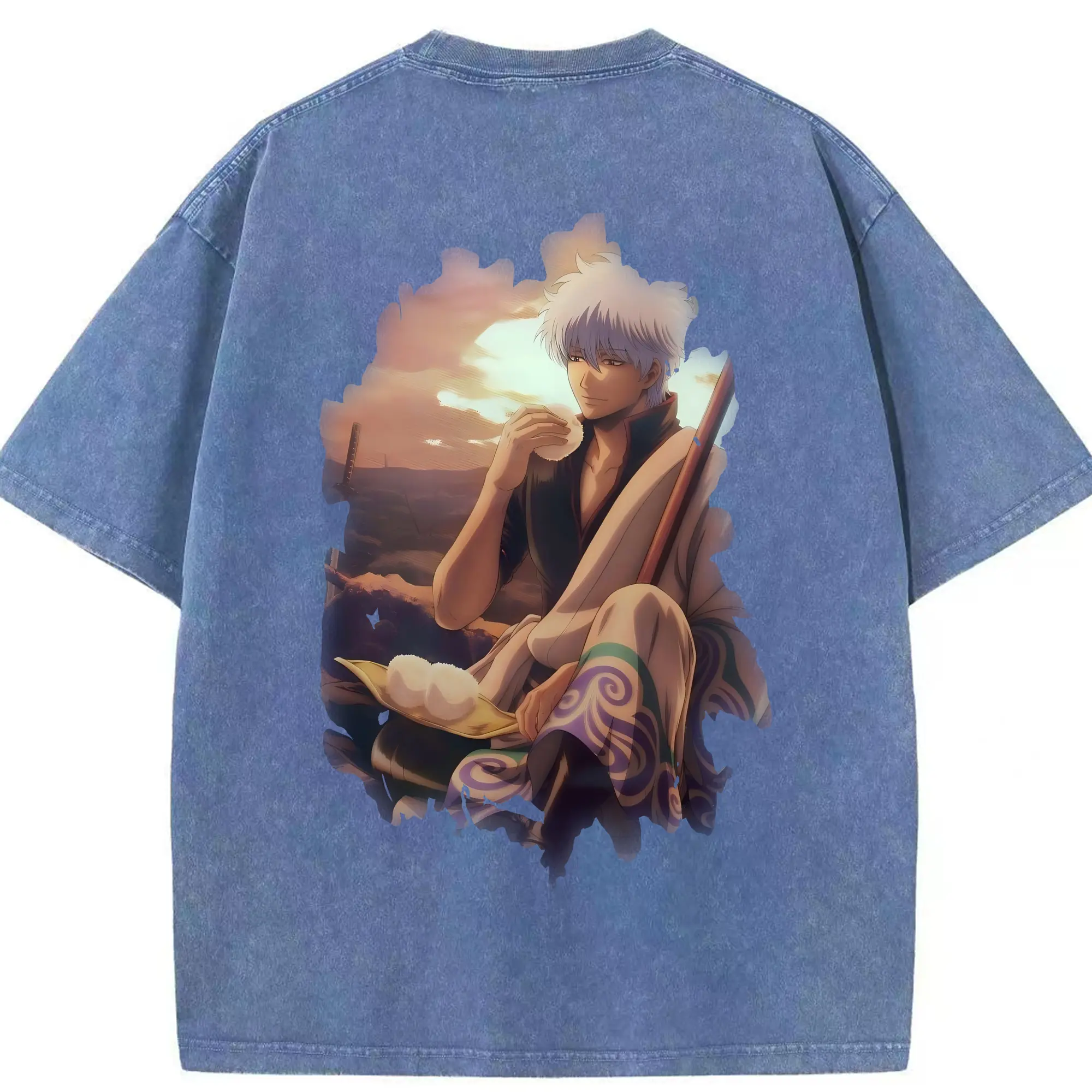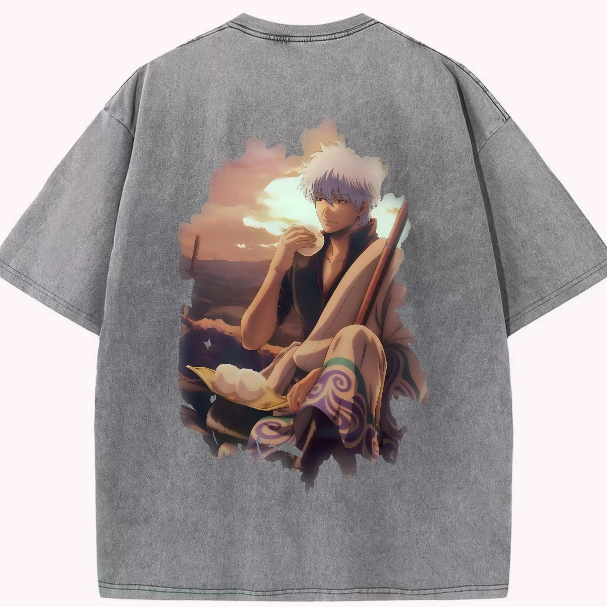 銀魂 グッズ 坂田 銀時 - 綿100% ヴィンテージ風 半袖Tシャツ ・ フロントプリント ・ 柔らか肌触り ・ 通気性 快適 ・ スポーツ カジュアル 外出用
