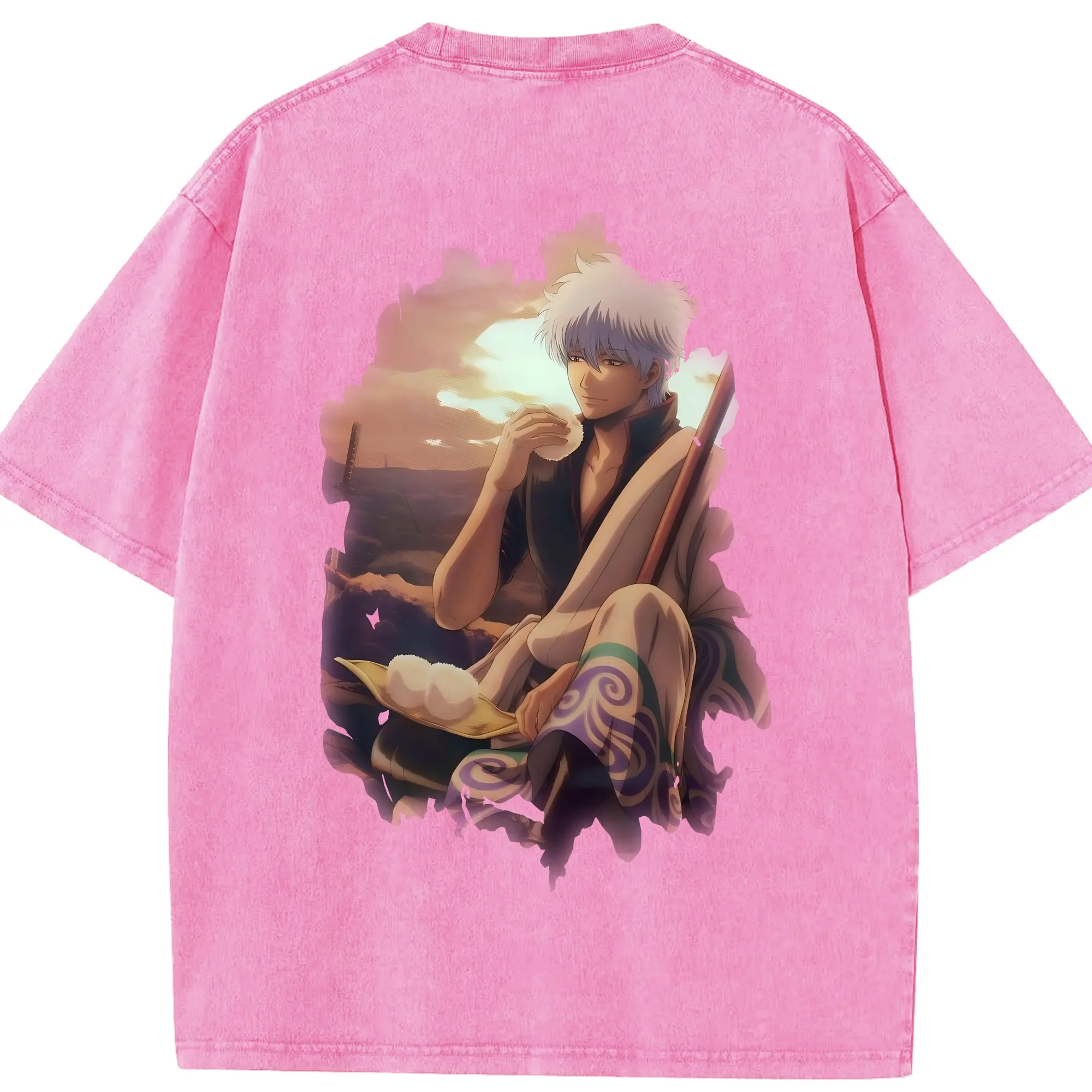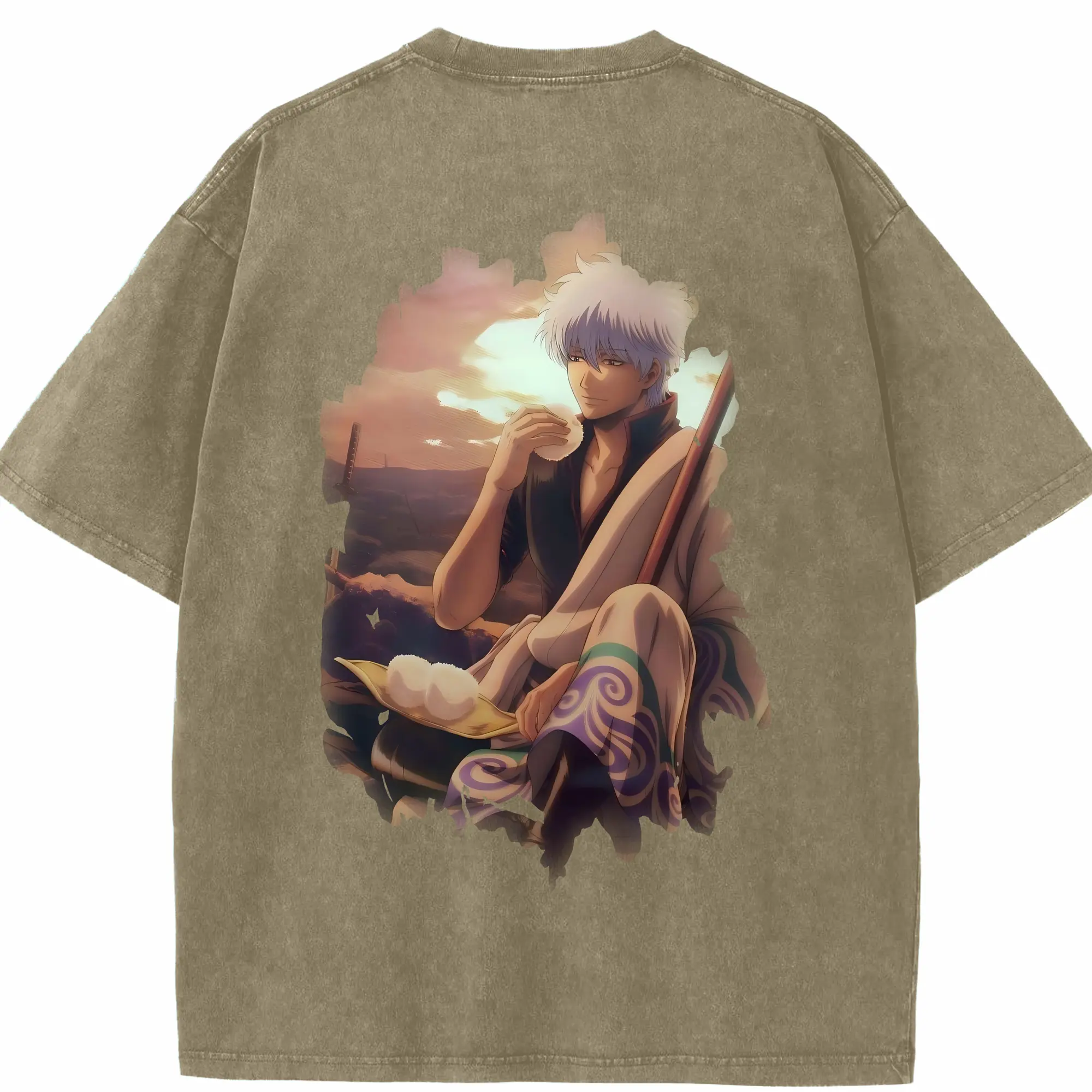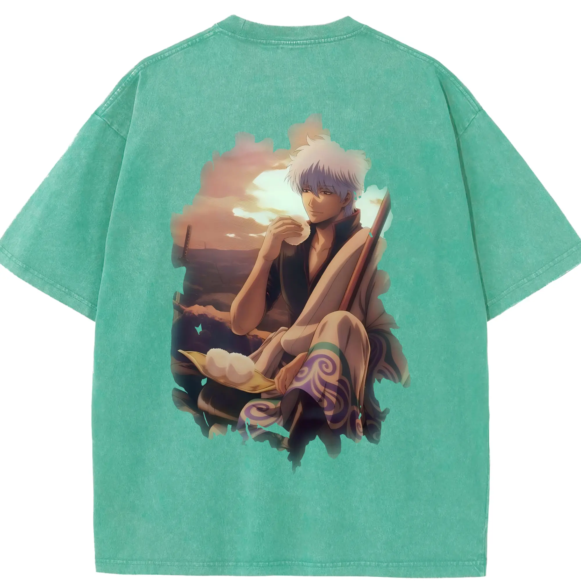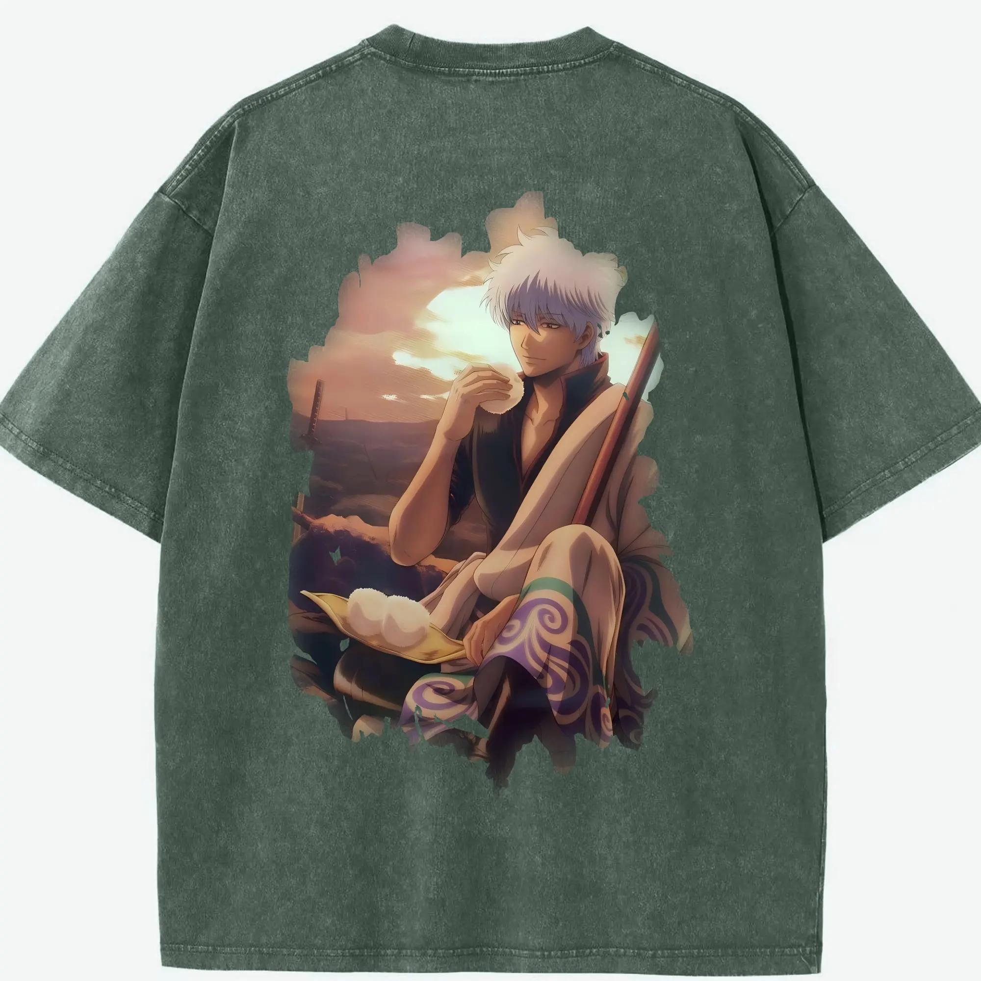 銀魂 グッズ 坂田 銀時 - 綿100% ヴィンテージ風 半袖Tシャツ ・ フロントプリント ・ 柔らか肌触り ・ 通気性 快適 ・ スポーツ カジュアル 外出用