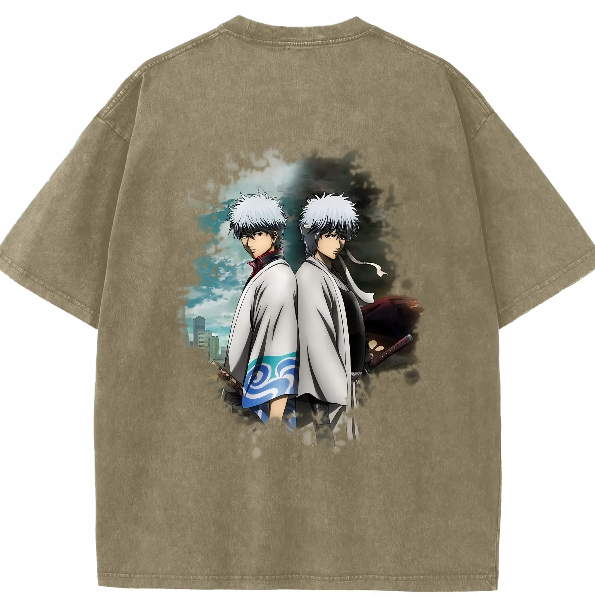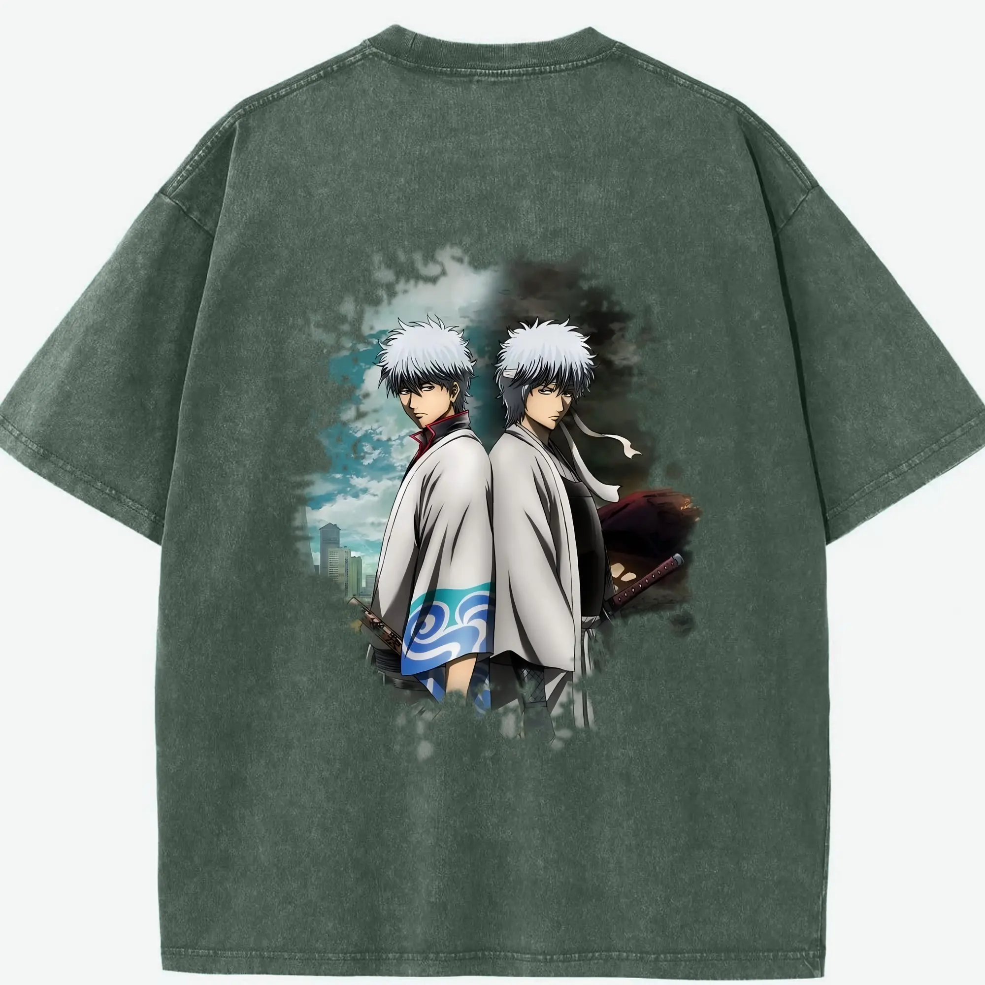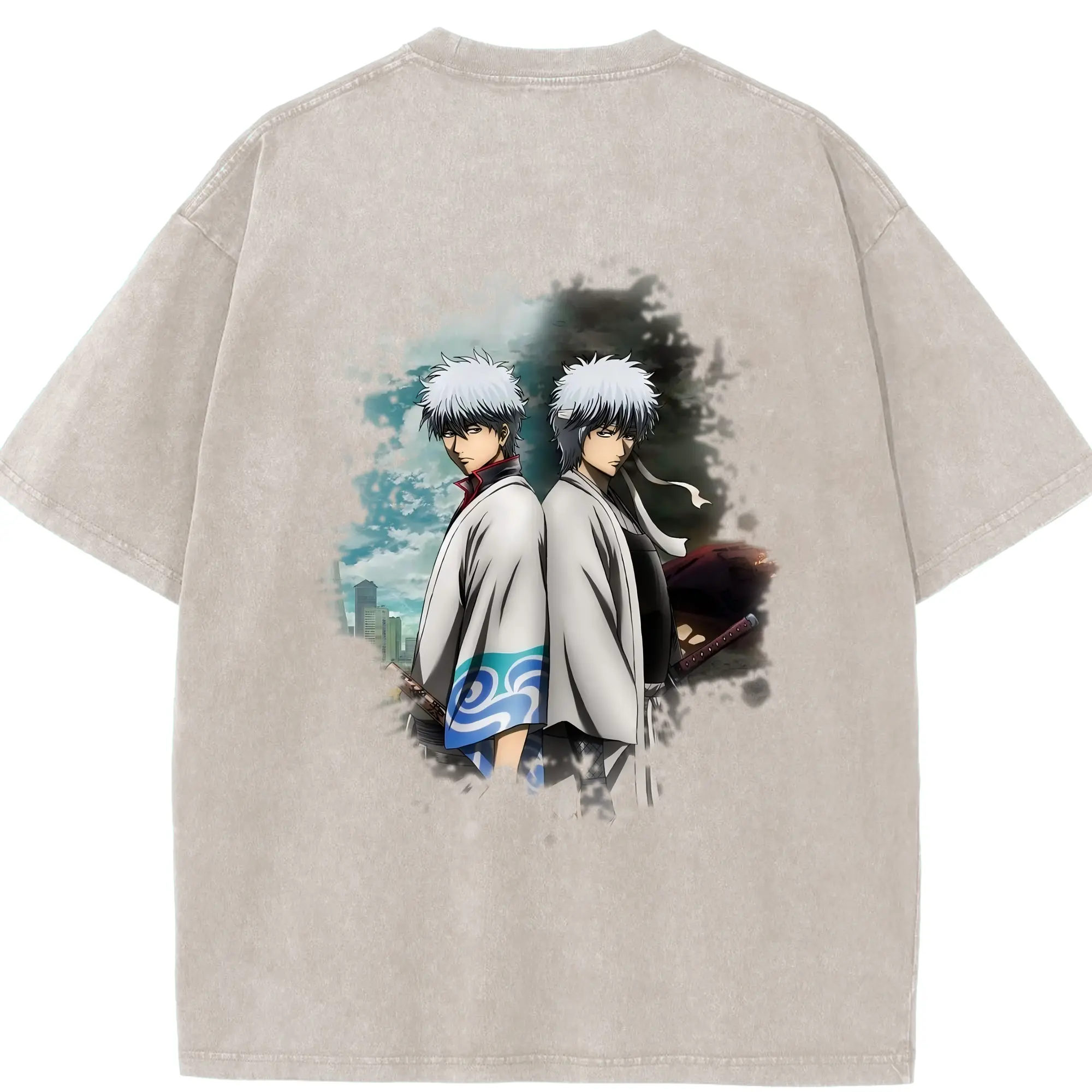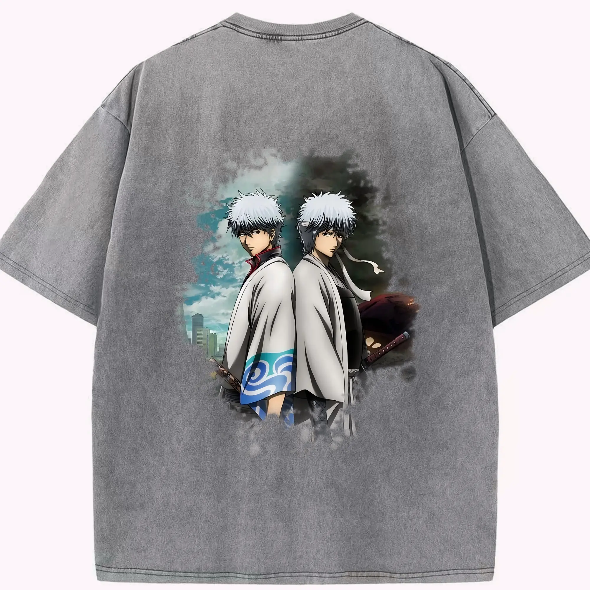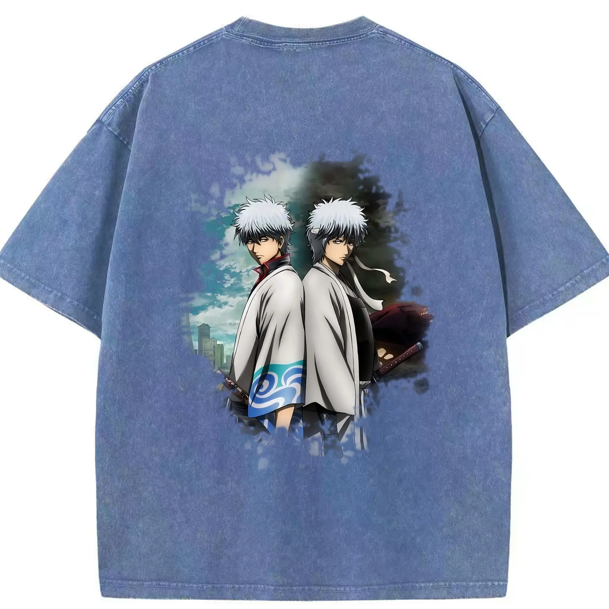 銀魂 グッズ 坂田 銀時 - 綿100% ヴィンテージ風 半袖Tシャツ ・ フロントプリント ・ 柔らか肌触り ・ 通気性 快適 ・ スポーツ カジュアル 外出用