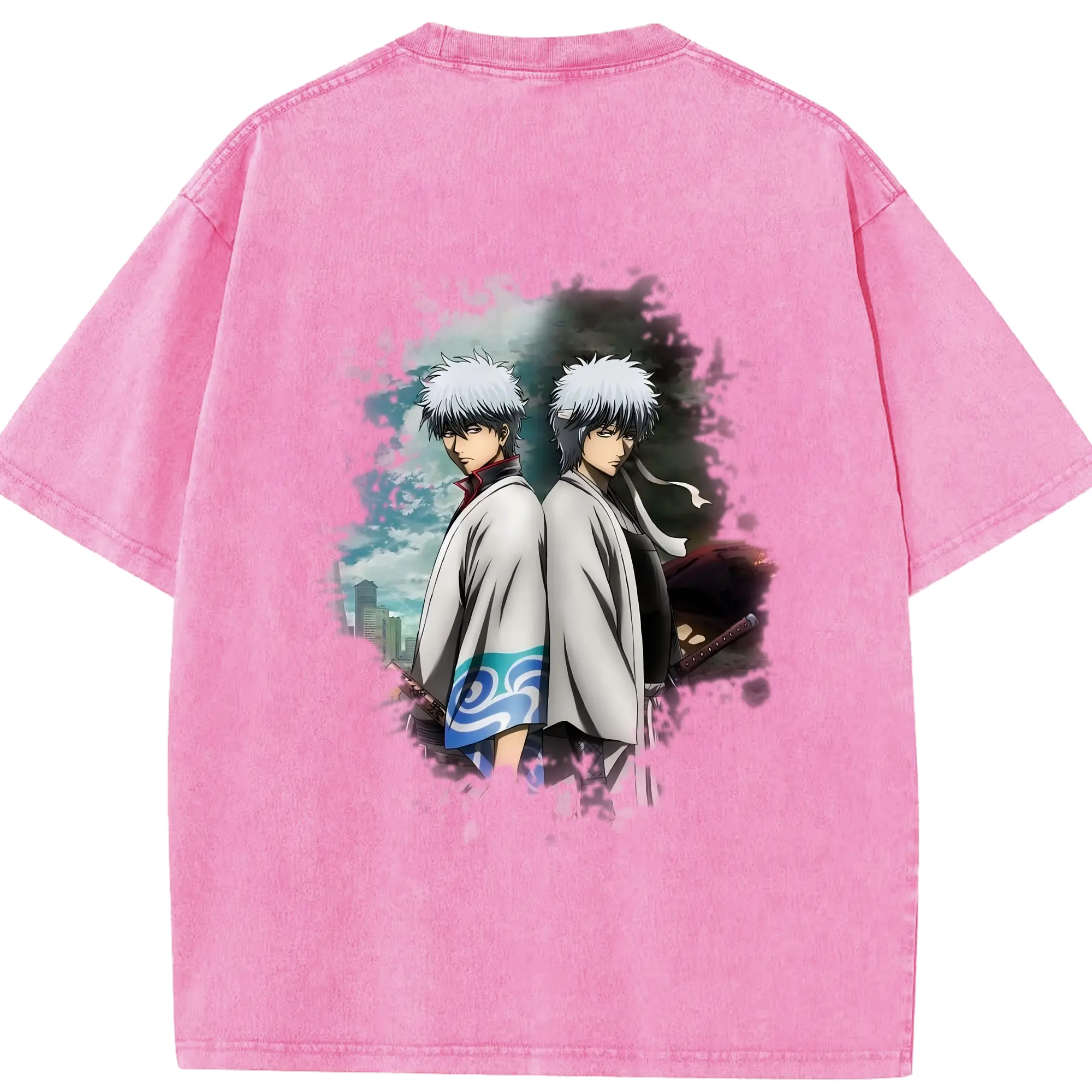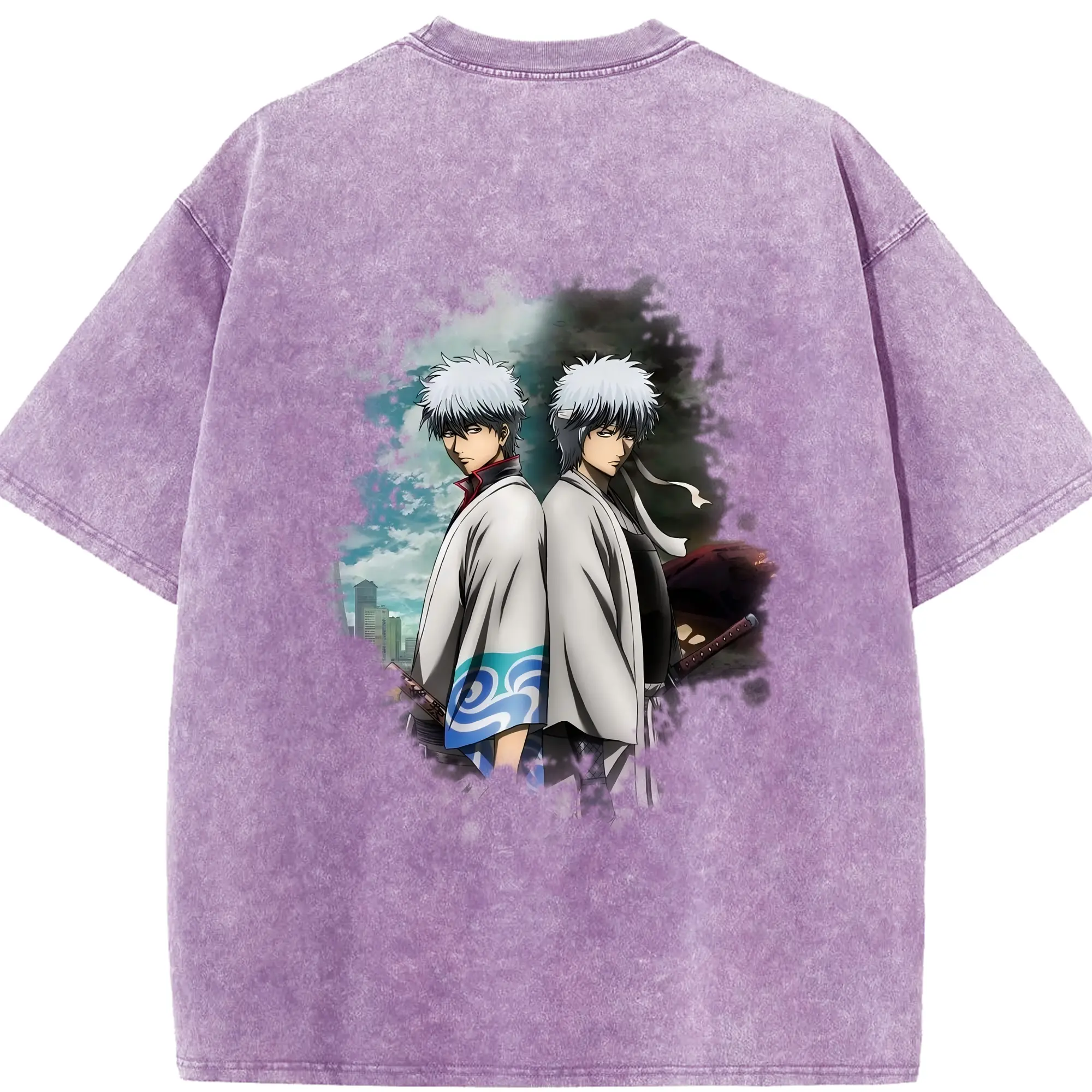 銀魂 グッズ 坂田 銀時 - 綿100% 半袖Tシャツ ・ バックプリント ・ 快適 通気性 ・ 日常使い 散歩 スポーツ用