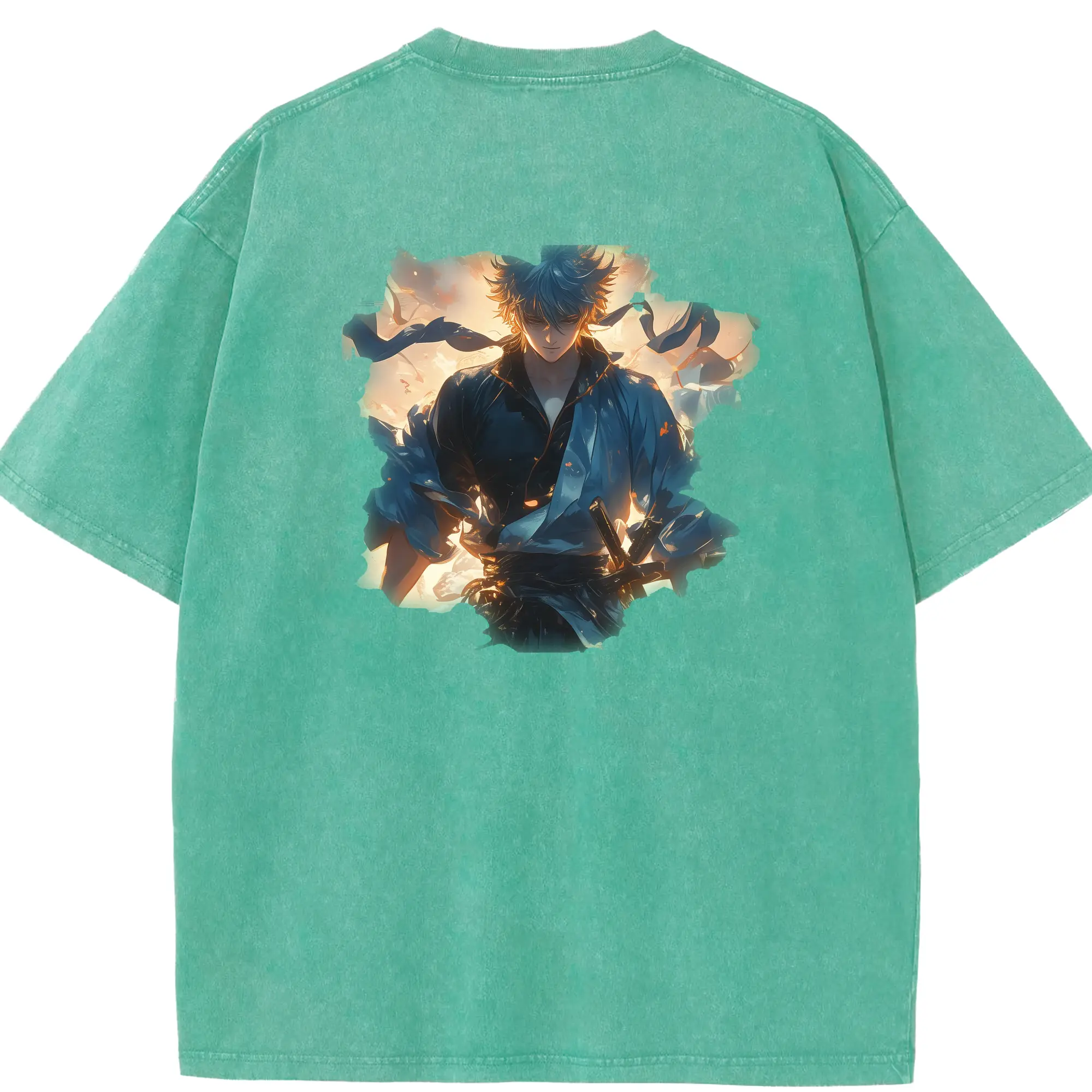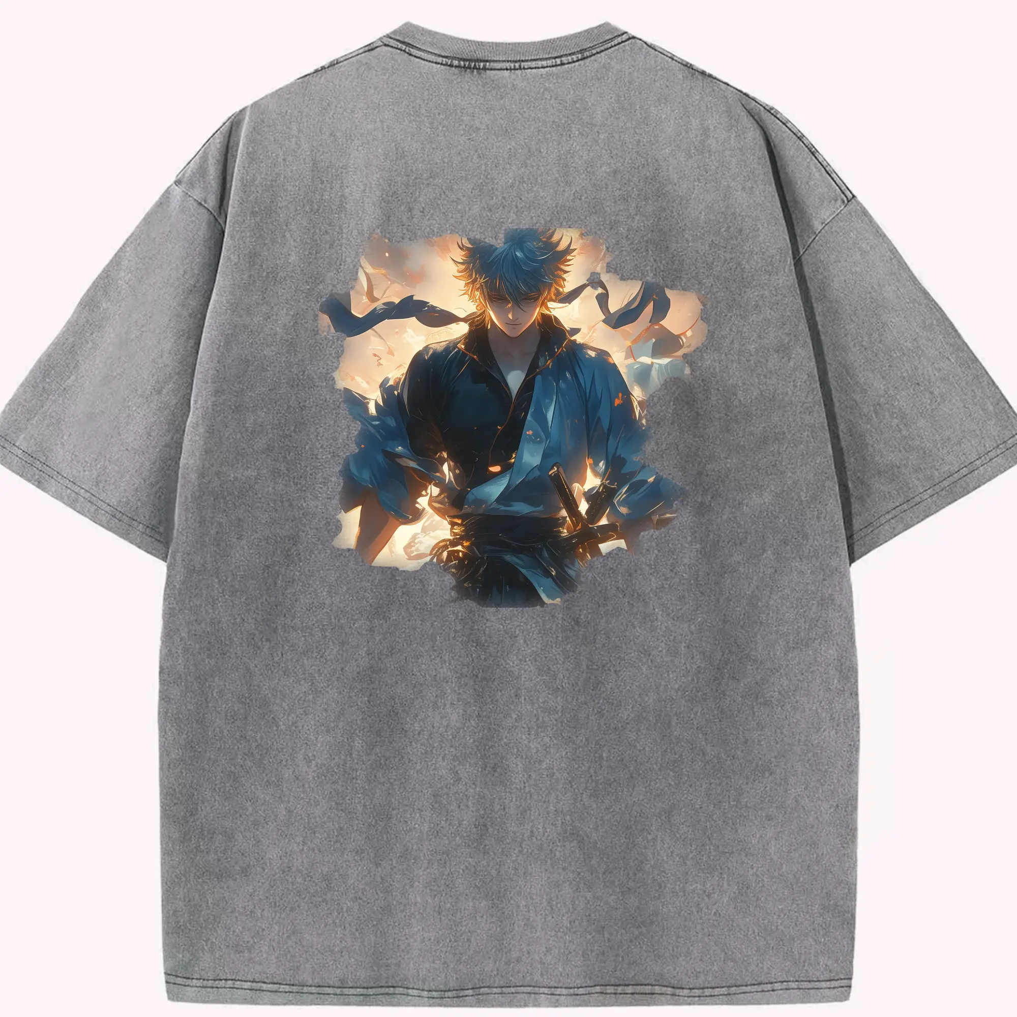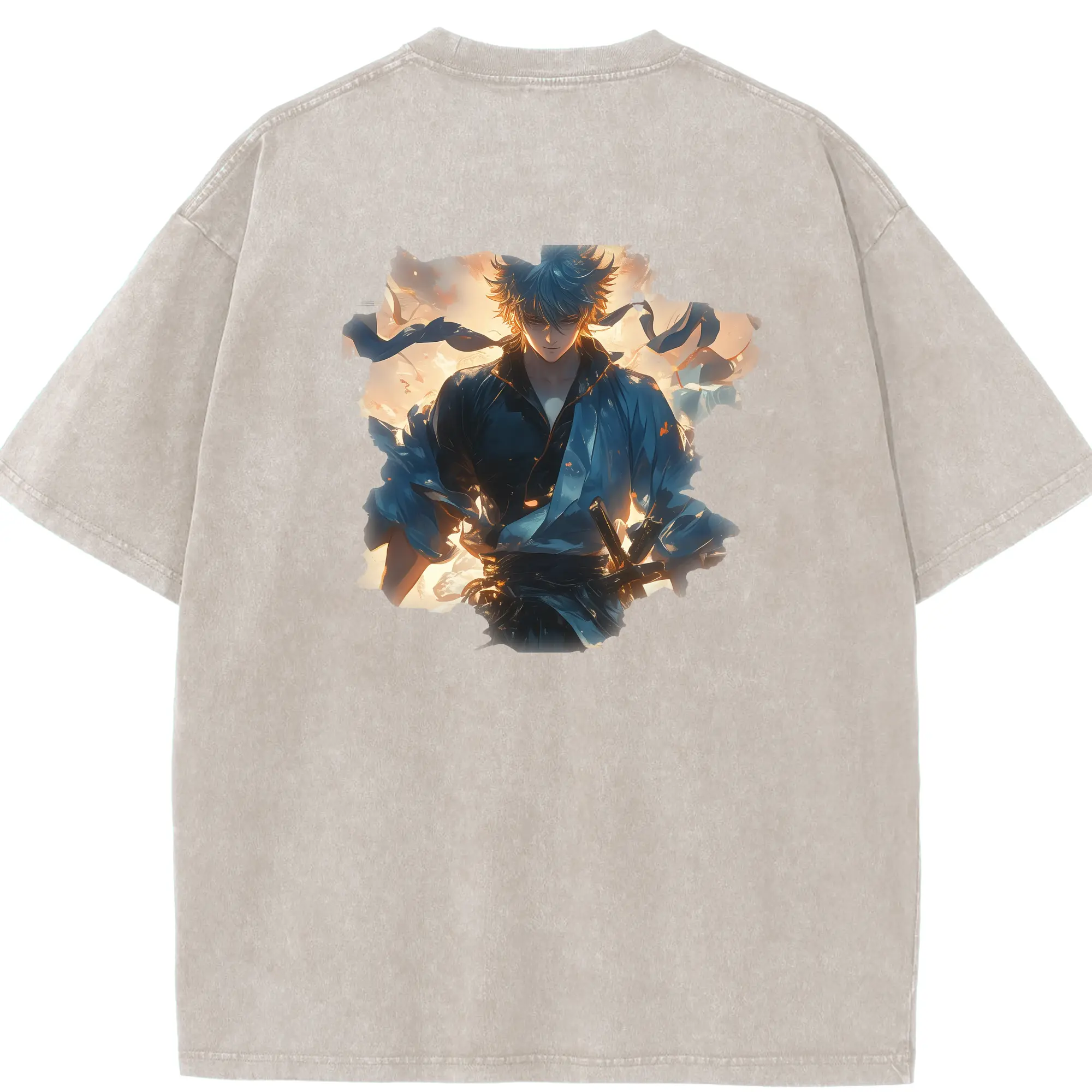 銀魂 グッズ 坂田 銀時 - 綿100% ヴィンテージ風 半袖Tシャツ ・ フロントプリント ・ 柔らか肌触り ・ 通気性 快適 ・ スポーツ カジュアル 外出用