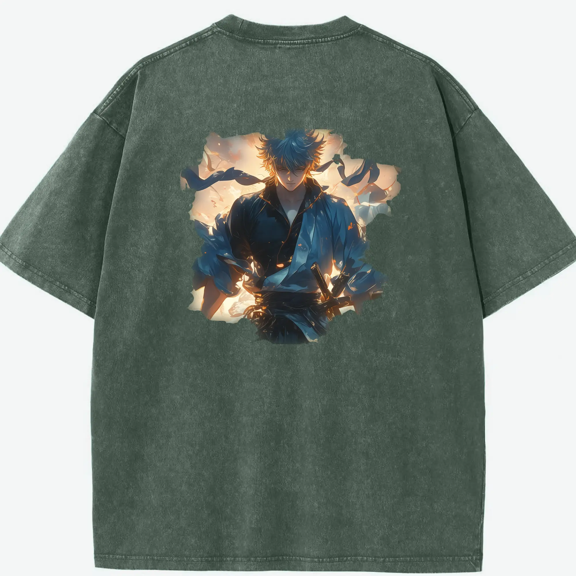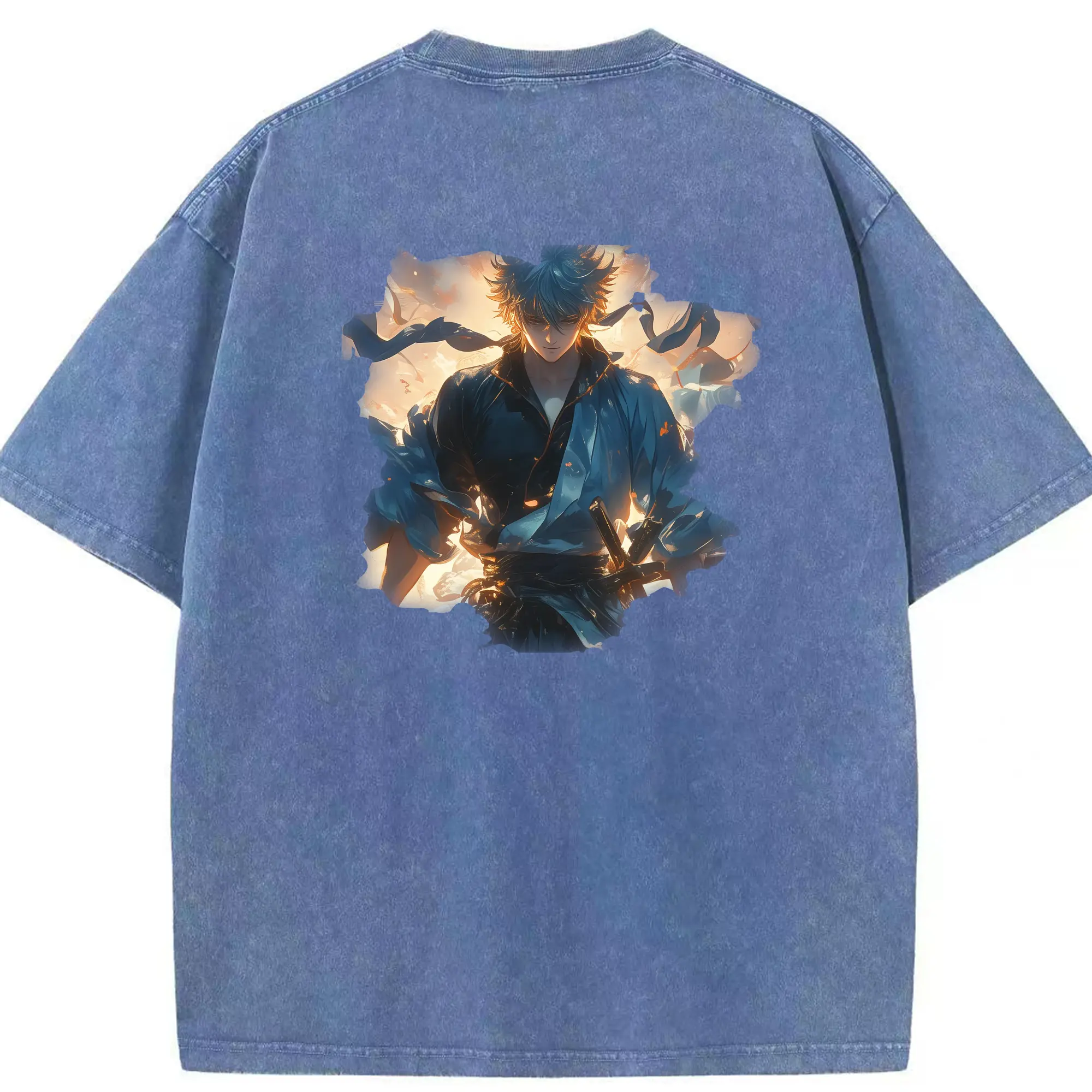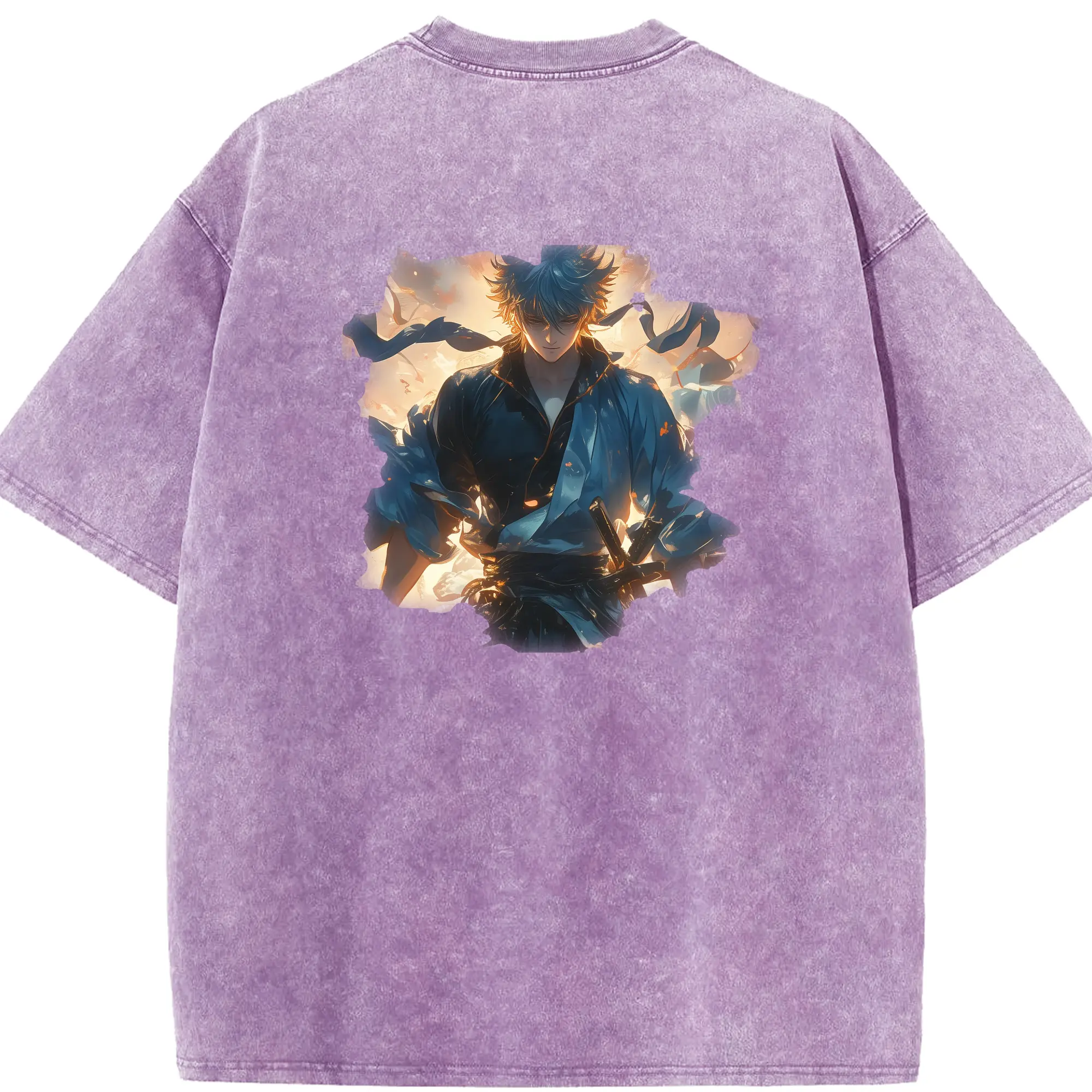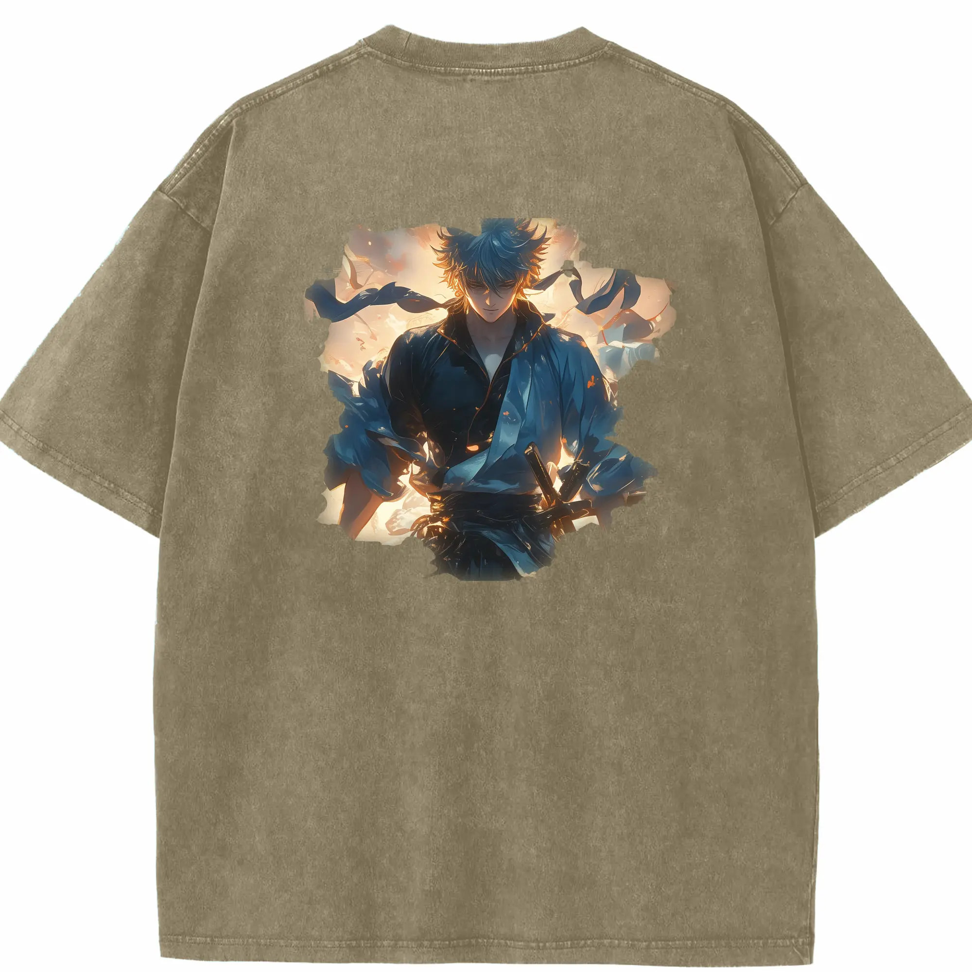 銀魂 グッズ 坂田 銀時 - 綿100% ヴィンテージ風 半袖Tシャツ ・ フロントプリント ・ 柔らか肌触り ・ 通気性 快適 ・ スポーツ カジュアル 外出用