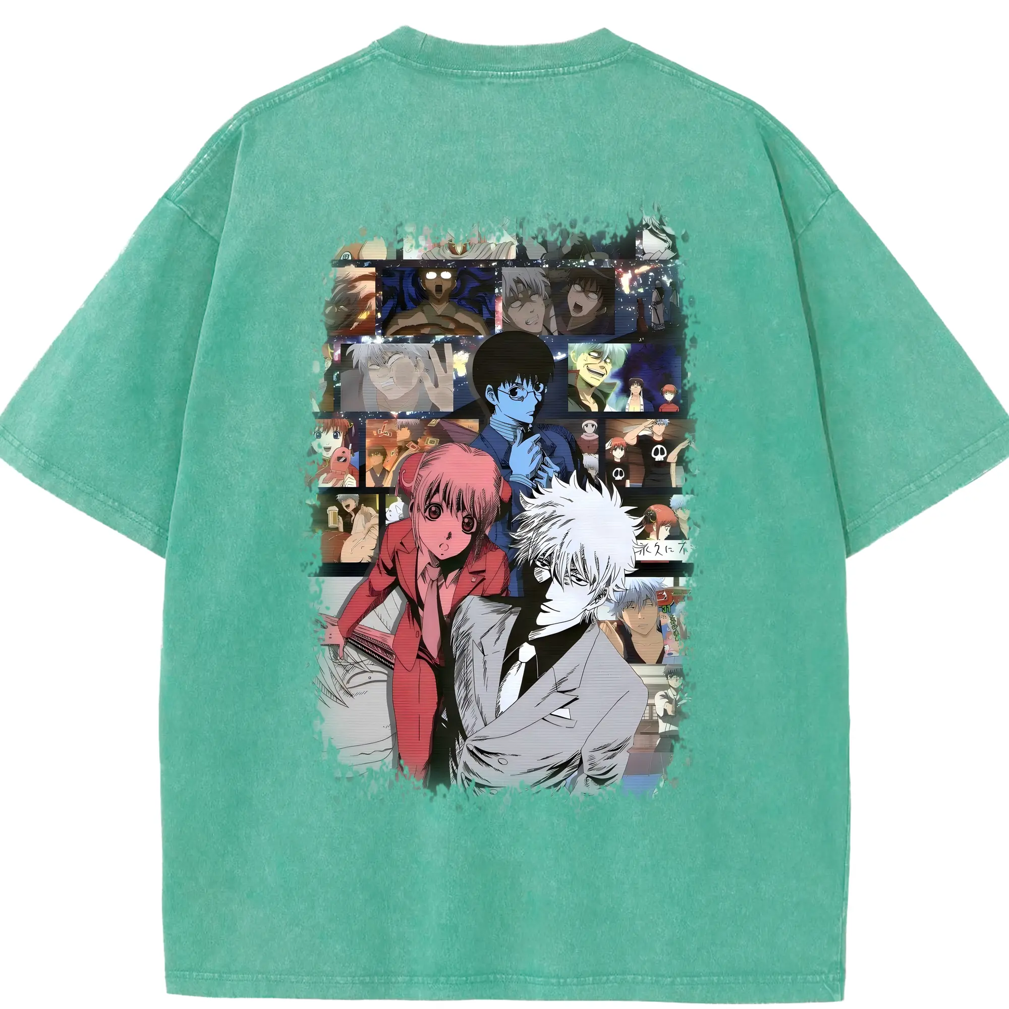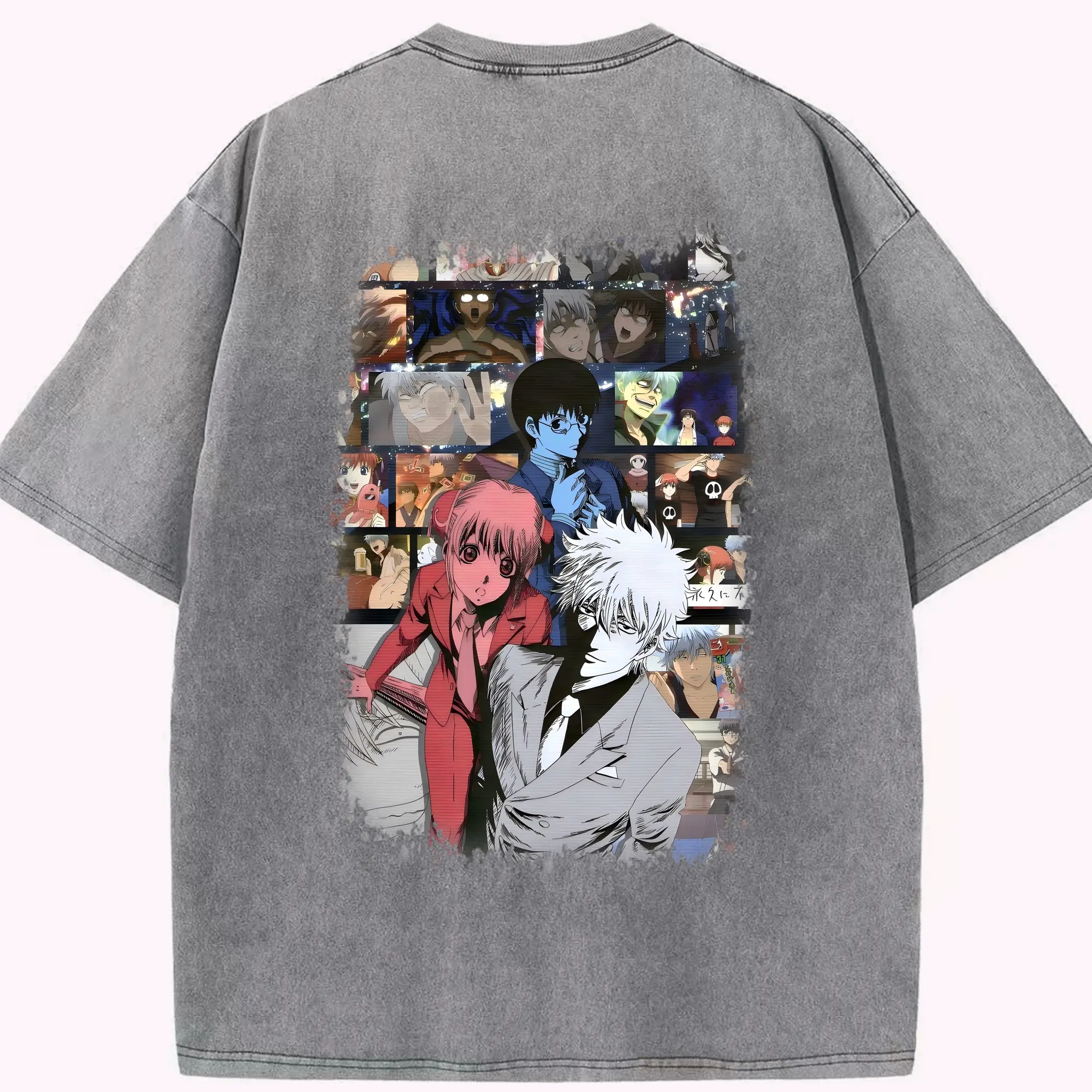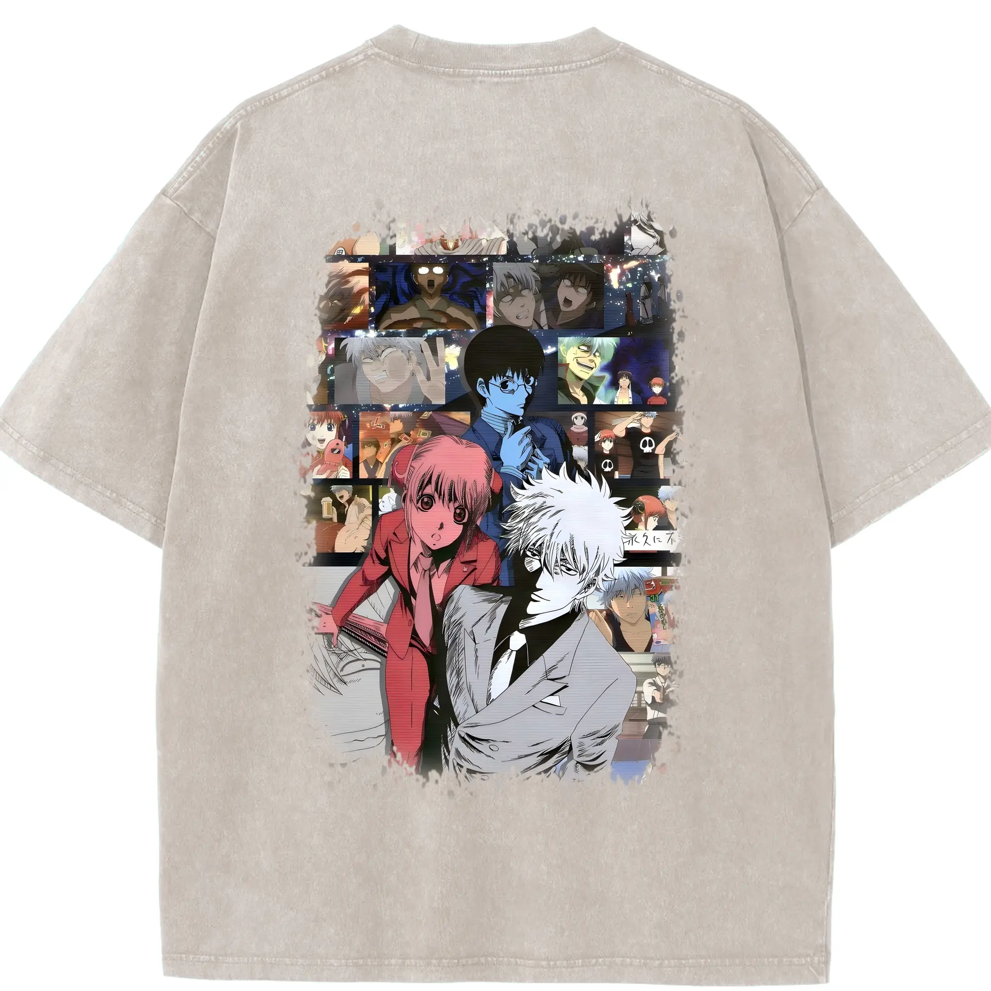 銀魂 グッズ 坂田 銀時 - 綿100% ヴィンテージ風 半袖Tシャツ ・ フロントプリント ・ 柔らか肌触り ・ 通気性 快適 ・ スポーツ カジュアル 外出用