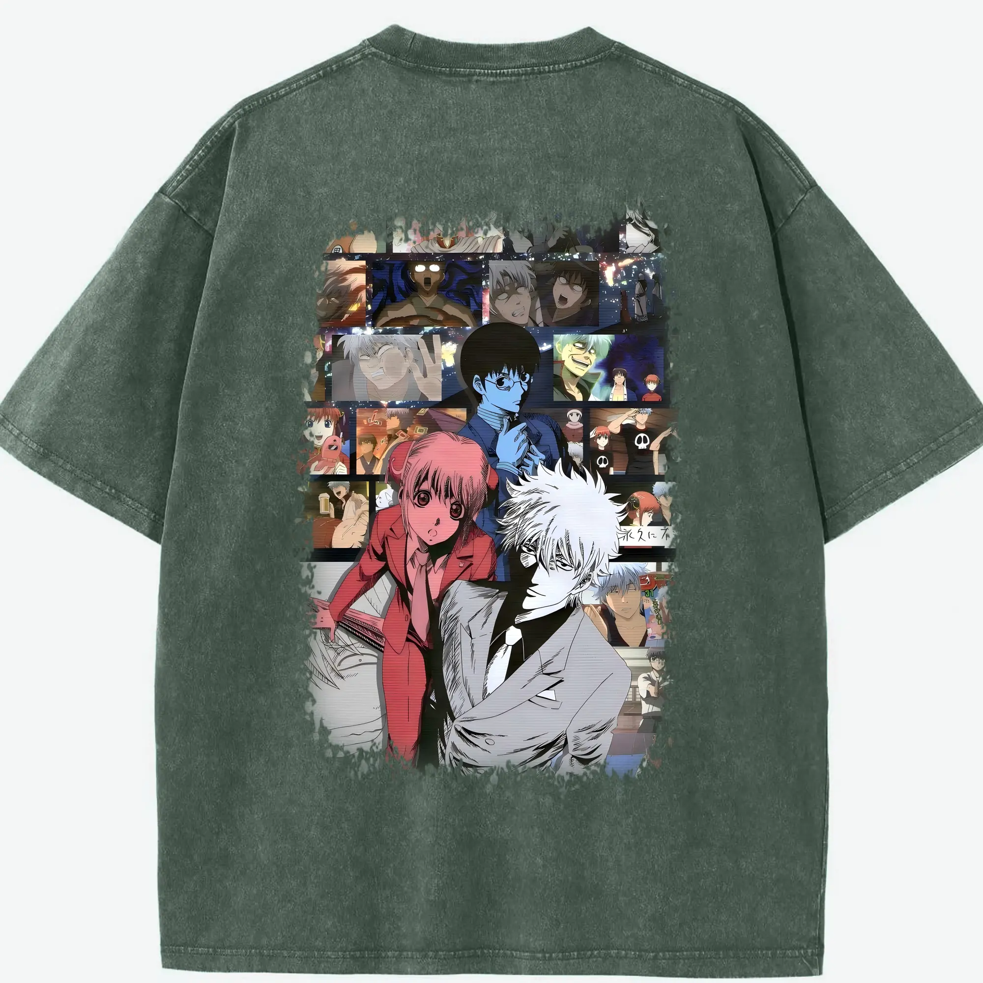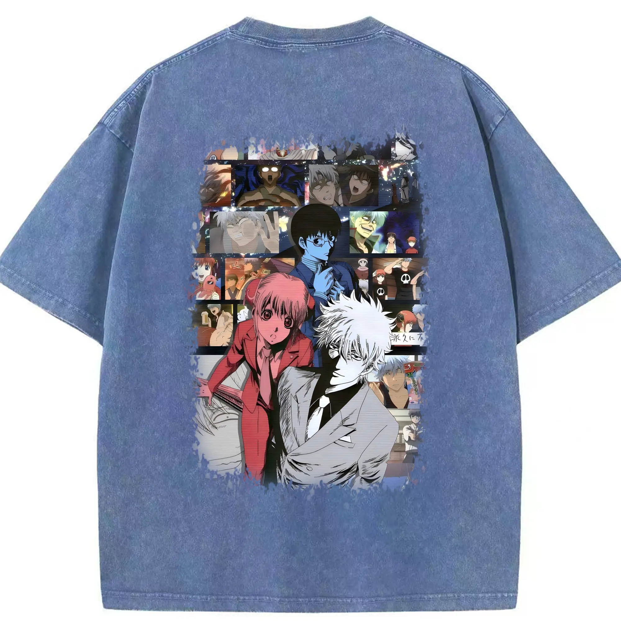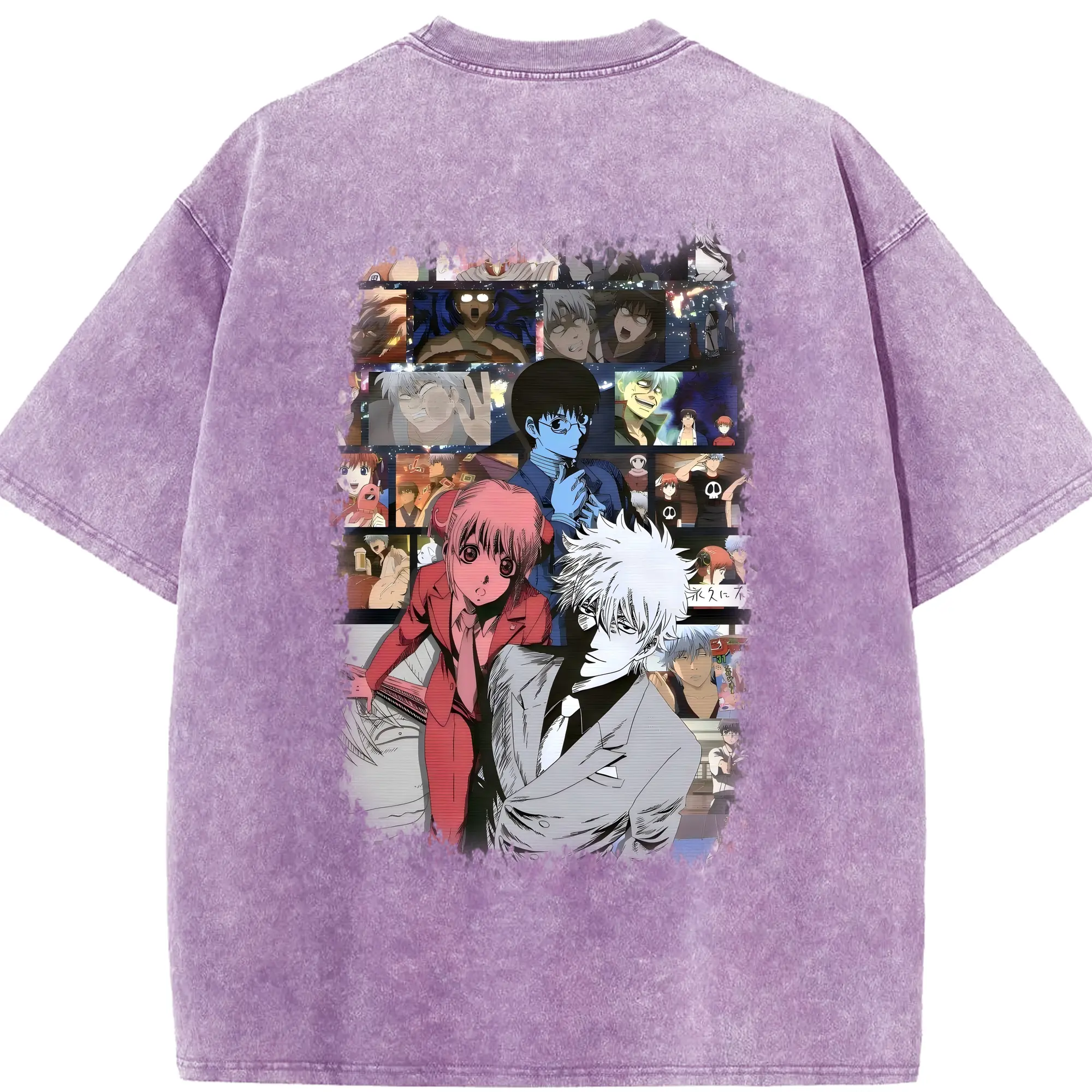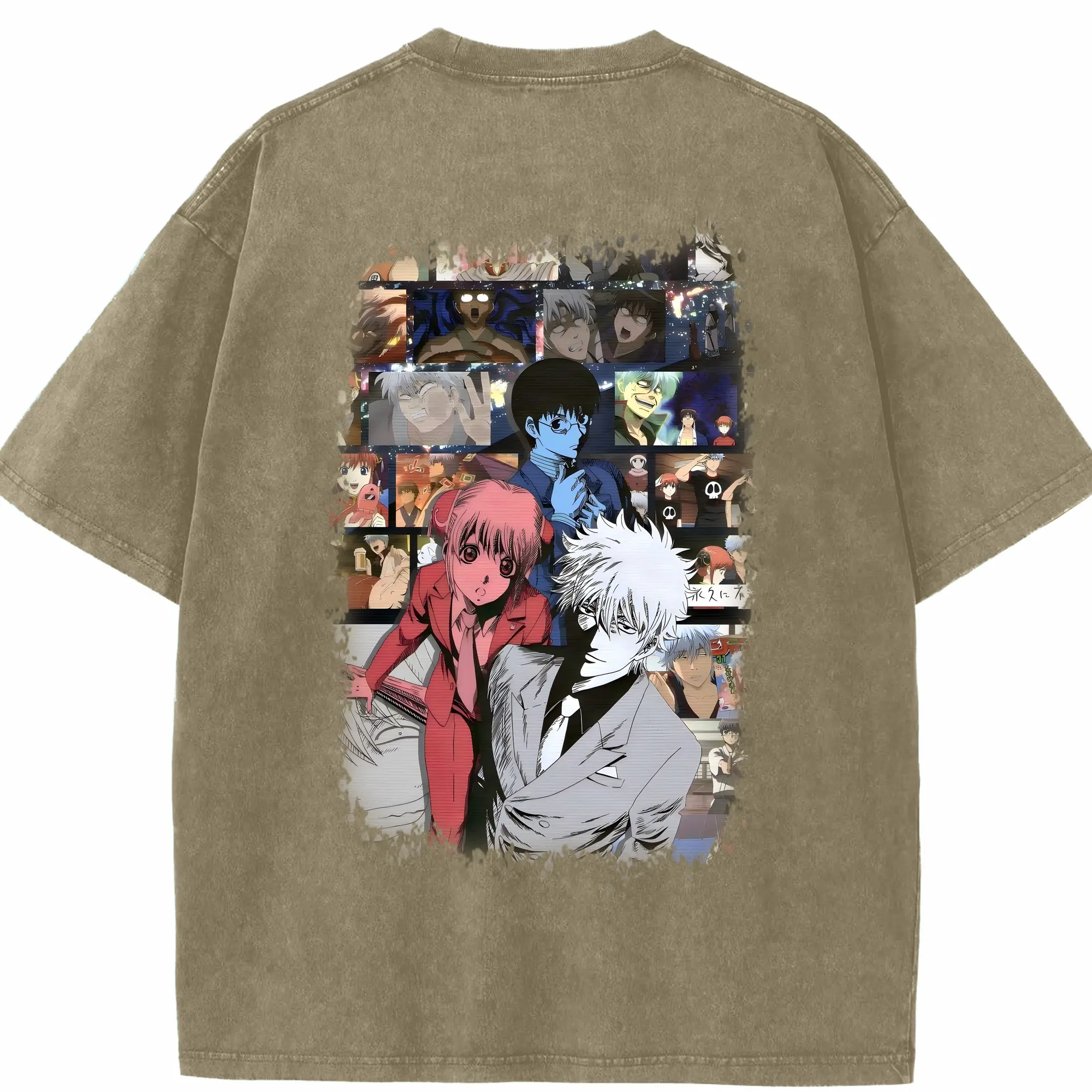 銀魂 グッズ 坂田 銀時 - 綿100% ヴィンテージ風 半袖Tシャツ ・ フロントプリント ・ 柔らか肌触り ・ 通気性 快適 ・ スポーツ カジュアル 外出用