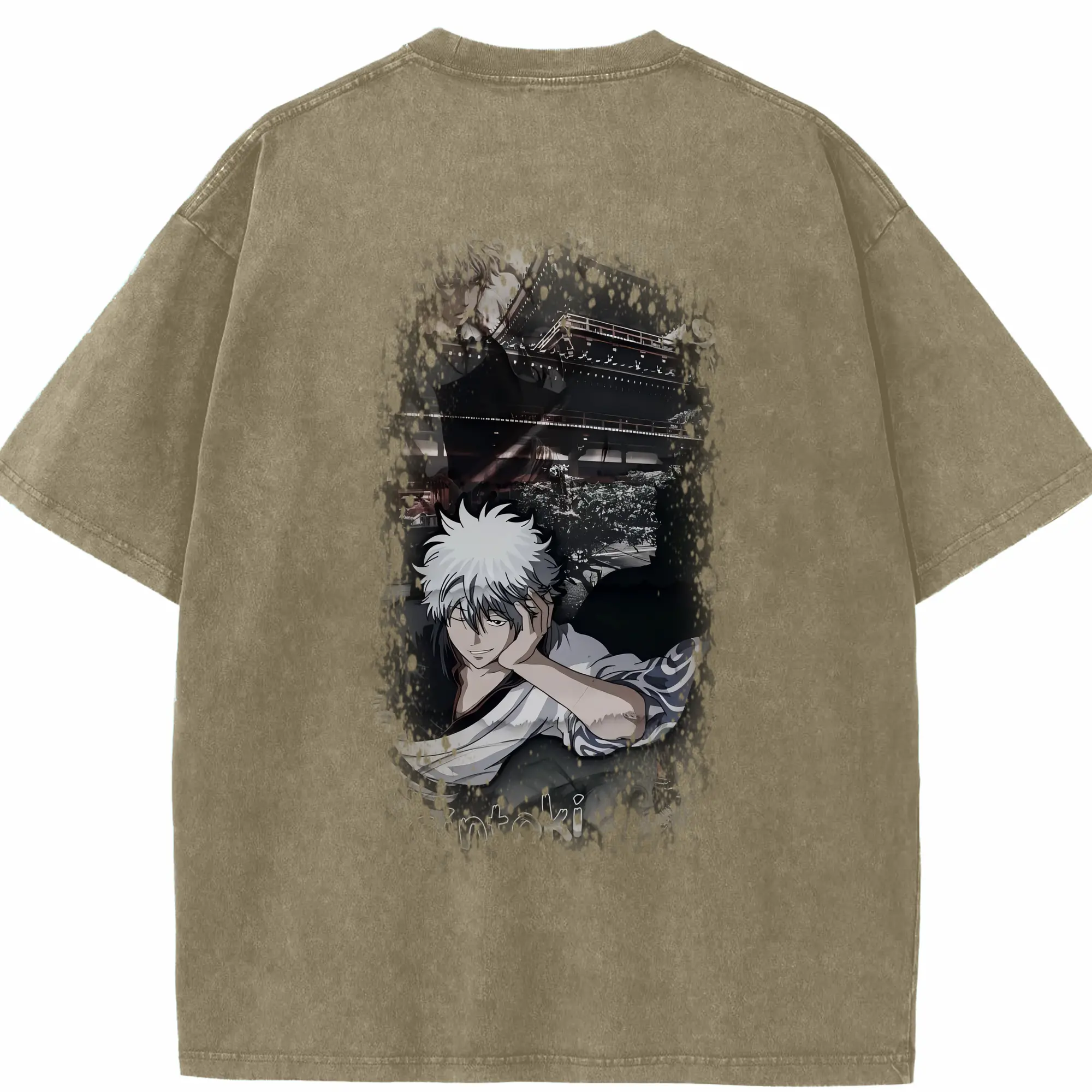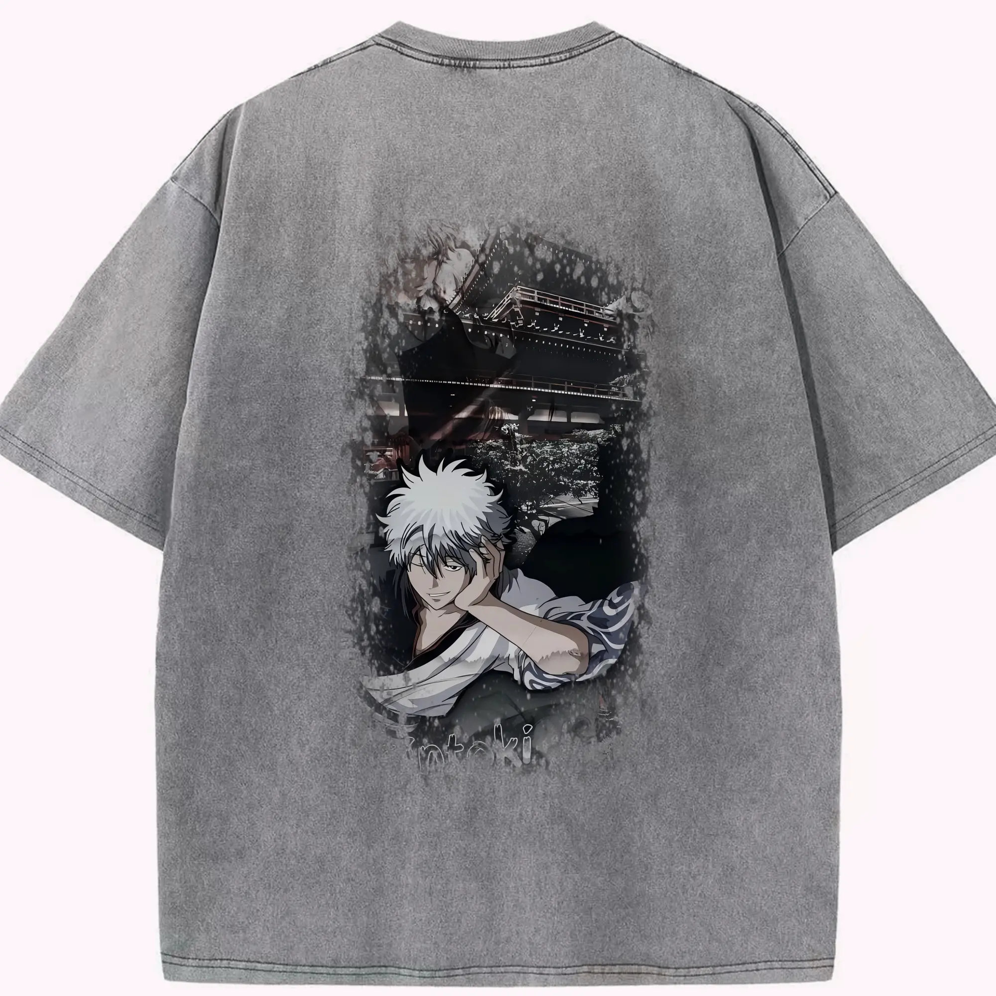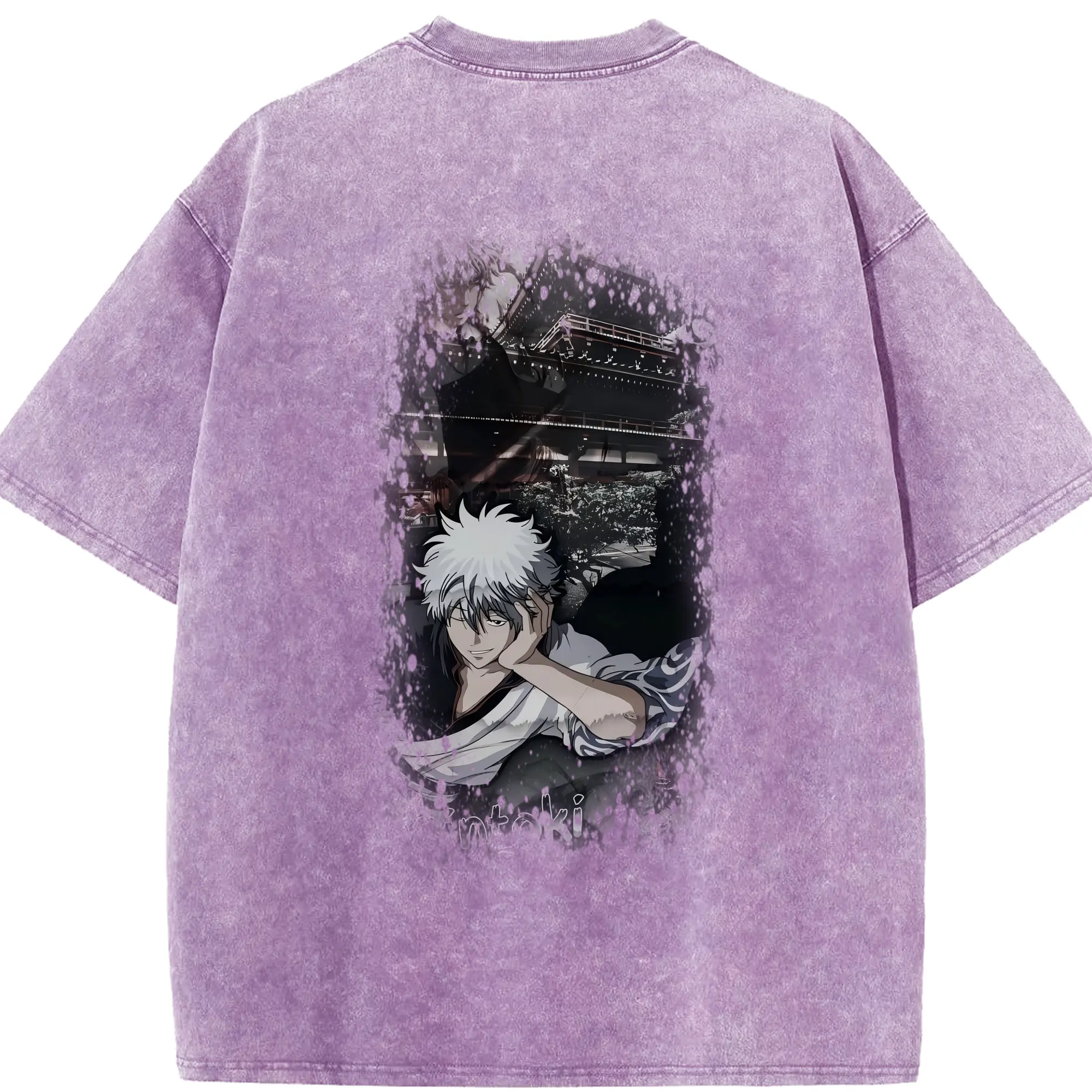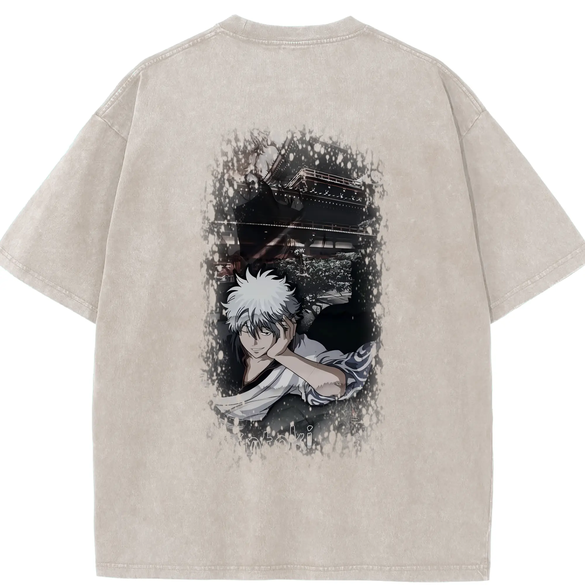銀魂 グッズ 坂田 銀時 - 綿100% ヴィンテージ風 半袖Tシャツ ・ フロントプリント ・ 柔らか肌触り ・ 通気性 快適 ・ スポーツ カジュアル 外出用