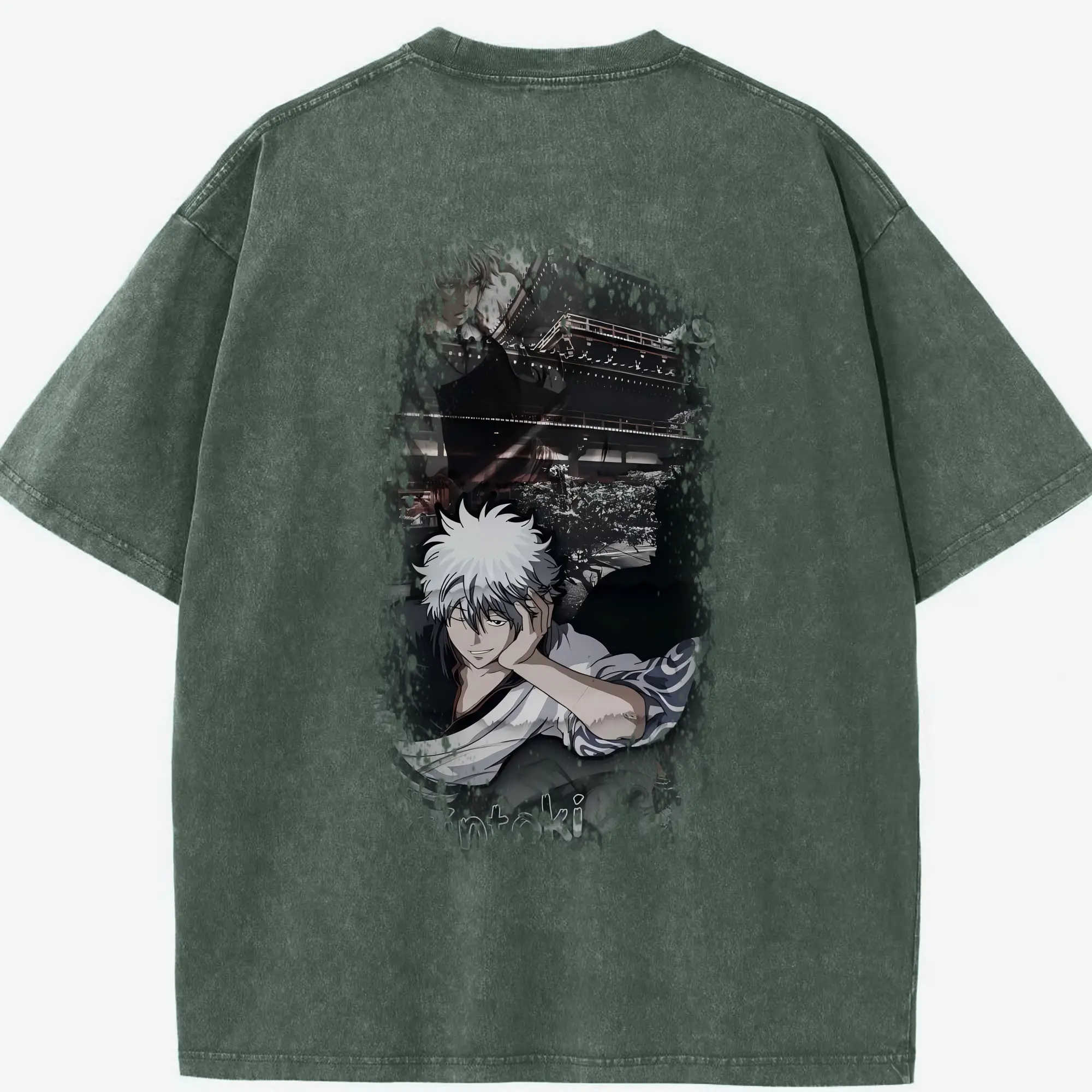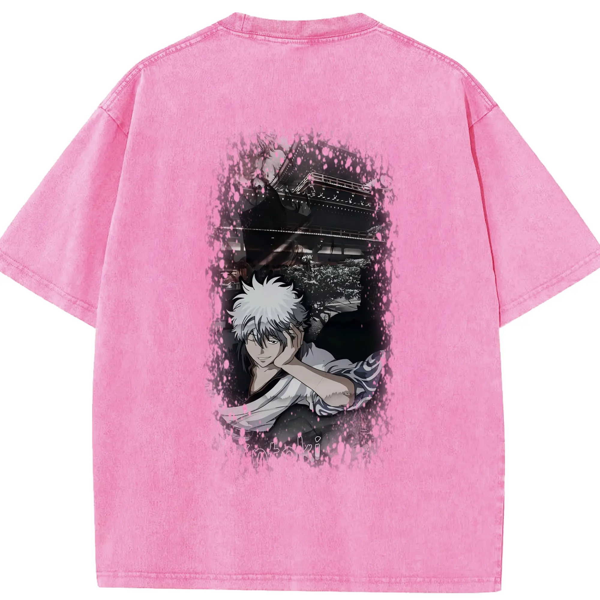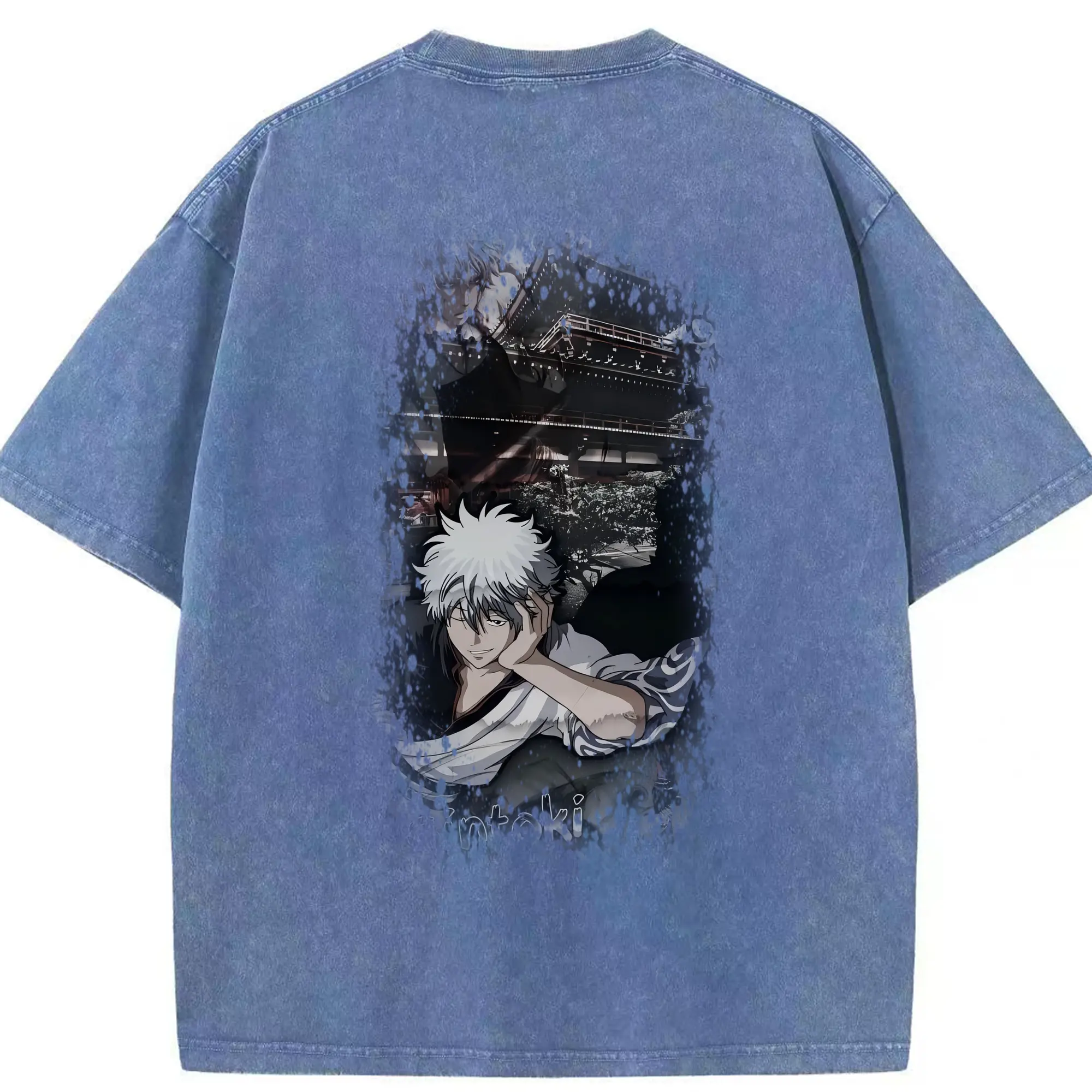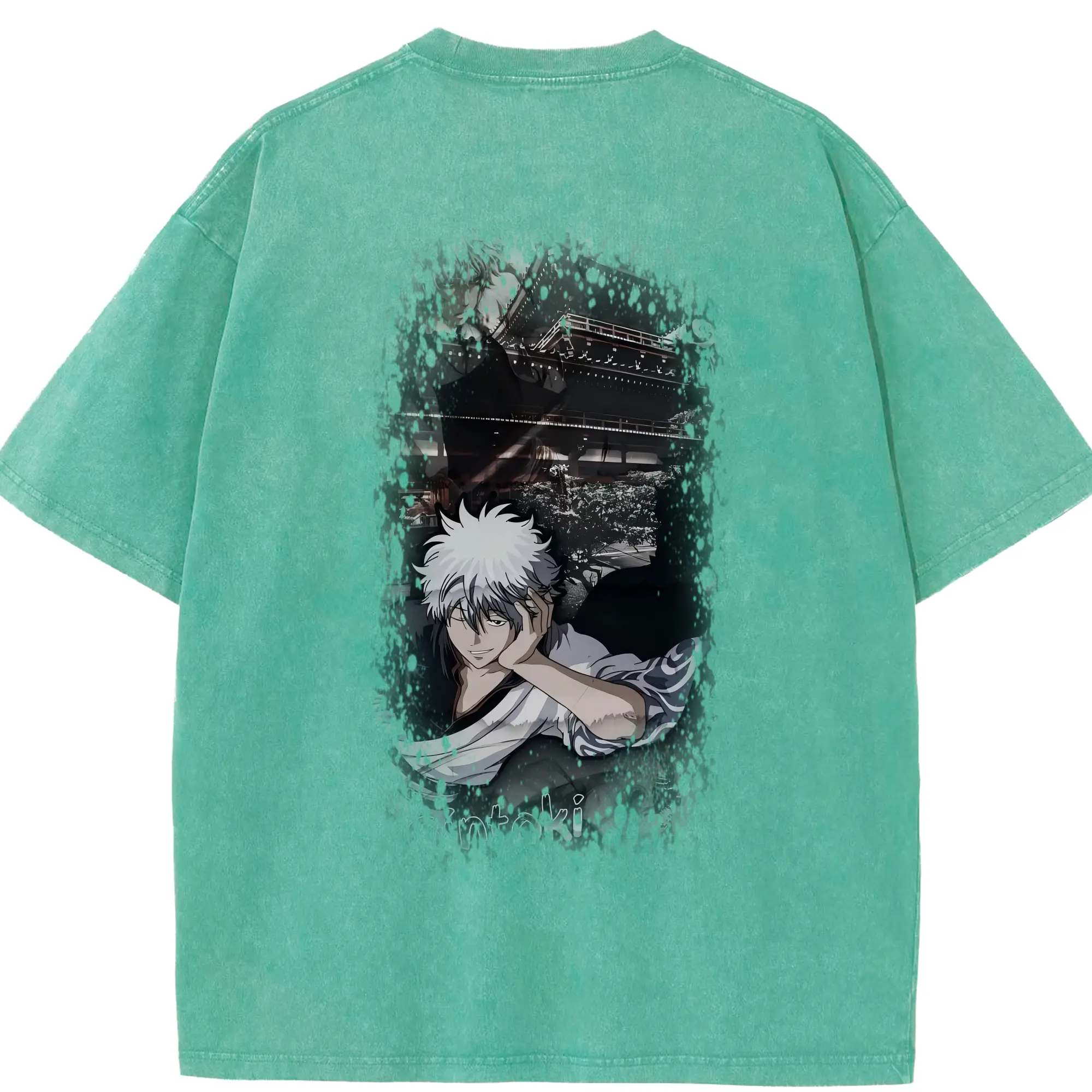 銀魂 グッズ 坂田 銀時 - 綿100% ヴィンテージ風 半袖Tシャツ ・ フロントプリント ・ 柔らか肌触り ・ 通気性 快適 ・ スポーツ カジュアル 外出用