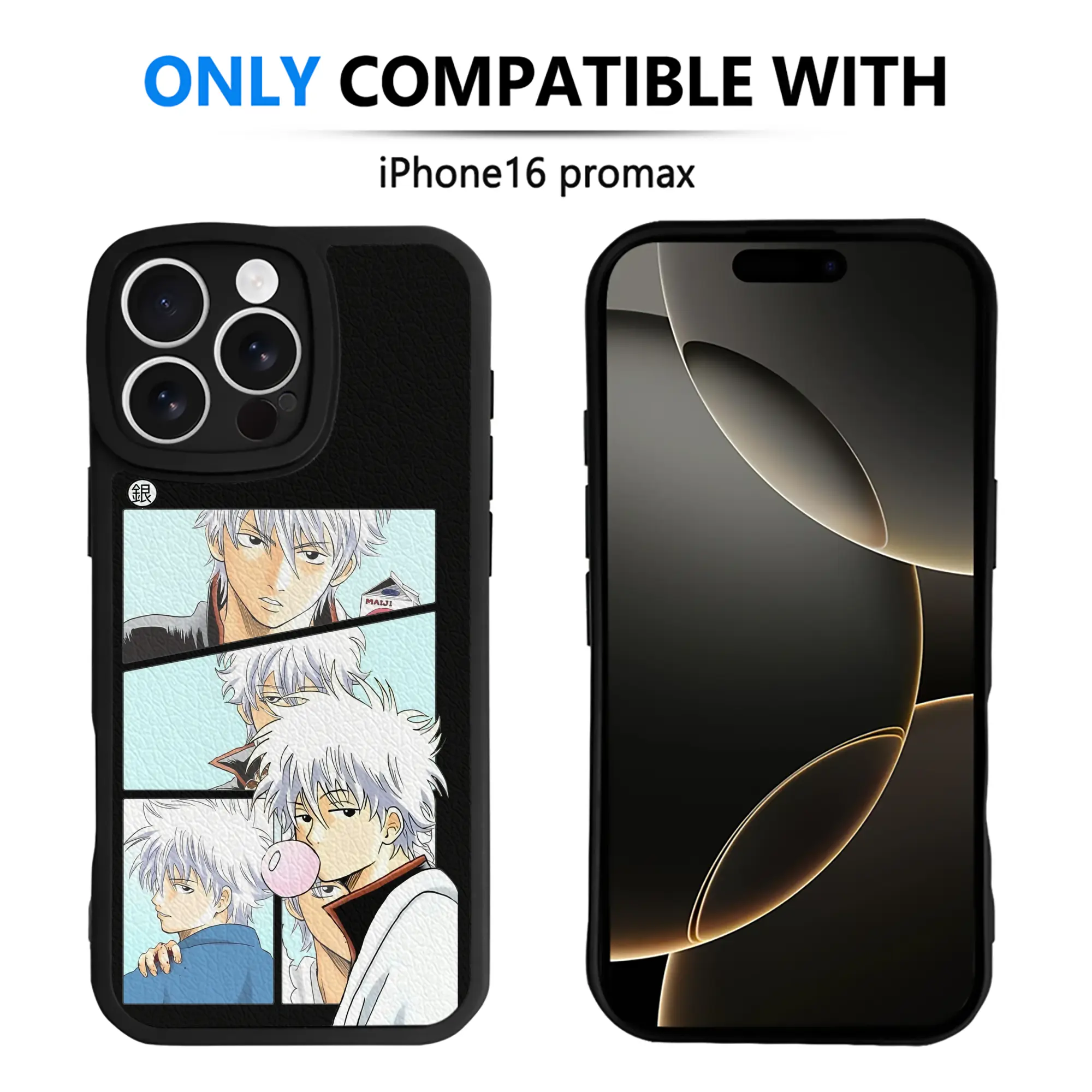 銀魂 グッズ 坂田 銀時 - IPhone 16シリーズ対応 ・ シリコンスマホケース ・ レザー調 ・ 高精度フィット ・ 耐衝撃 ・ ワイヤレス充電対応 ・ 精密カット