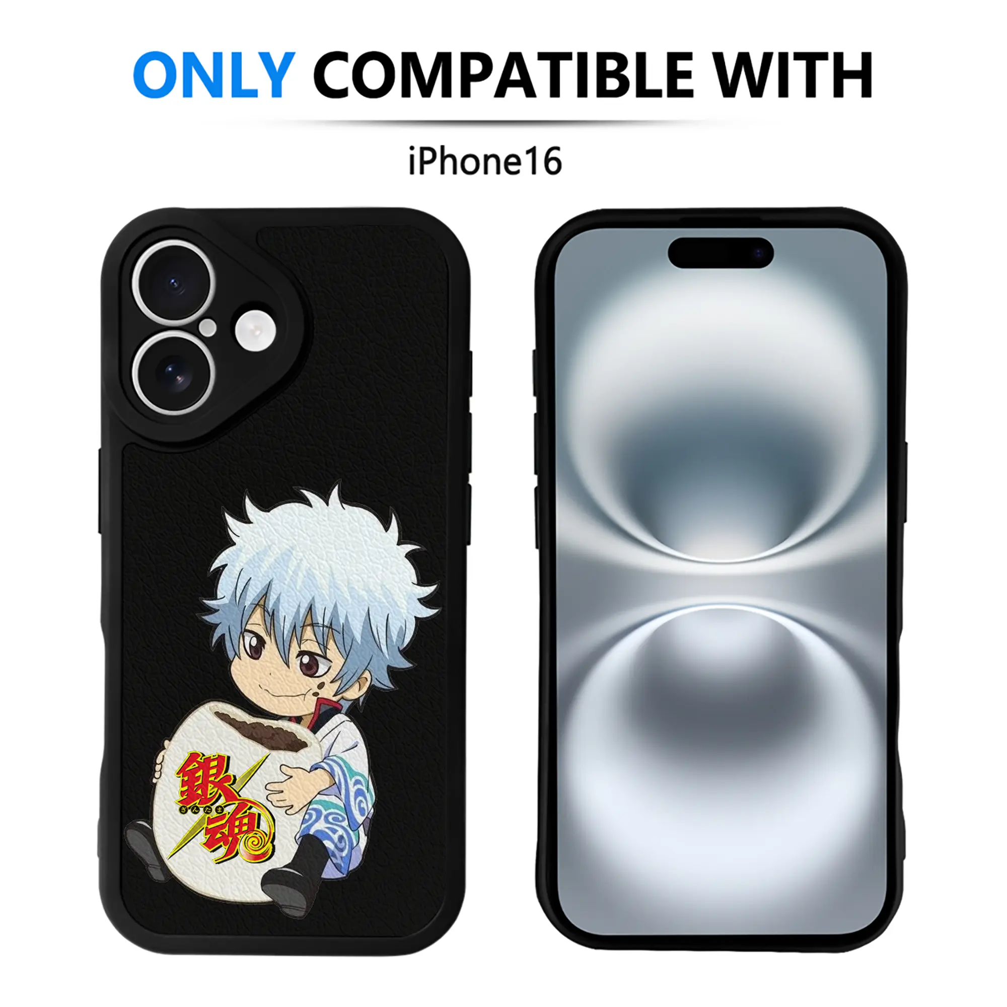 銀魂 グッズ 坂田 銀時 - IPhone 16シリーズ対応 ・ シリコンスマホケース ・ レザー調 ・ 高精度フィット ・ 耐衝撃 ・ ワイヤレス充電対応 ・ 精密カット