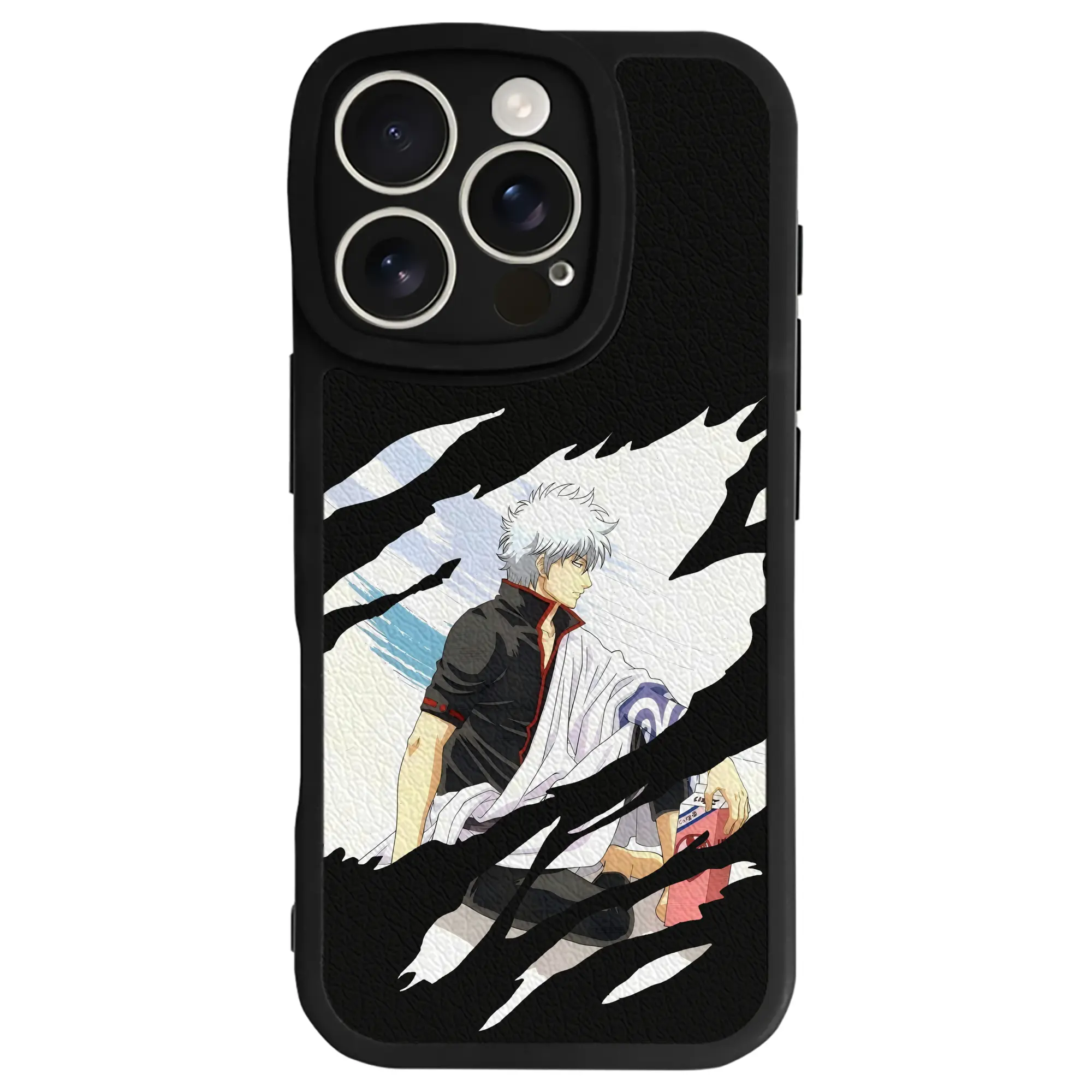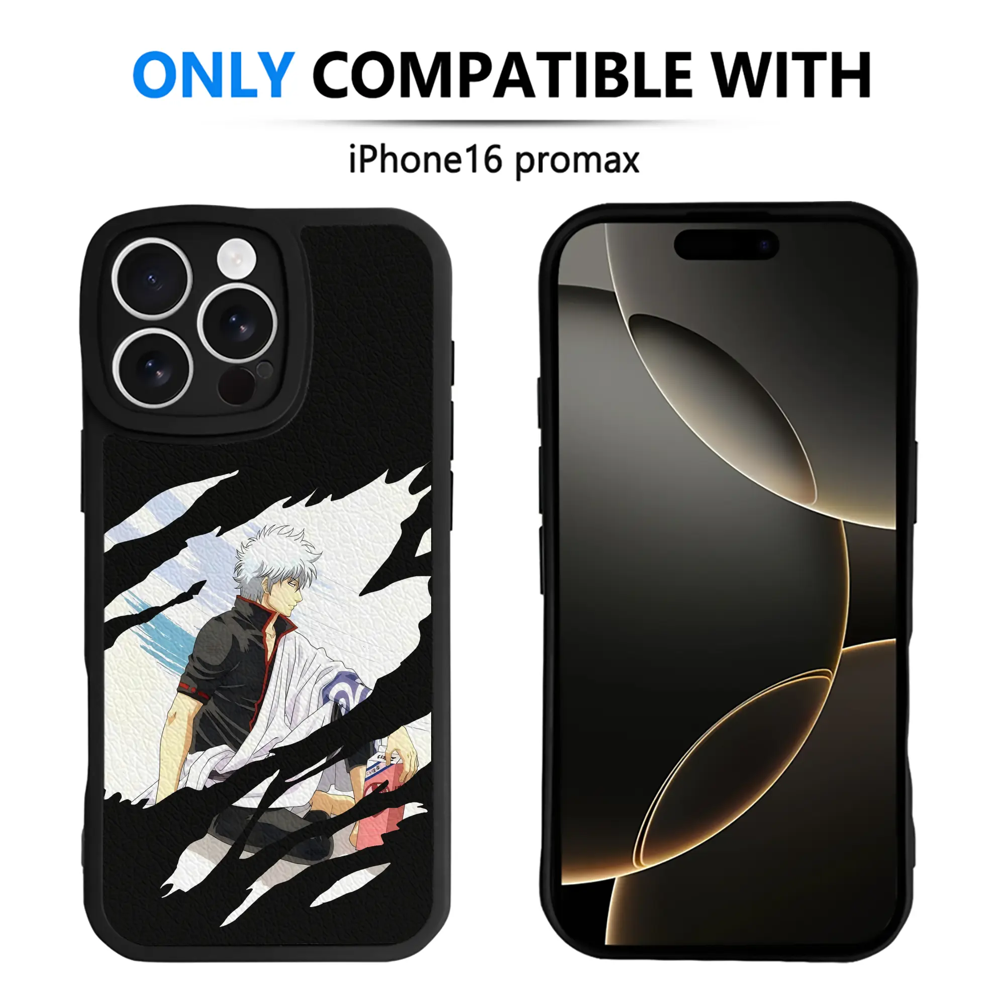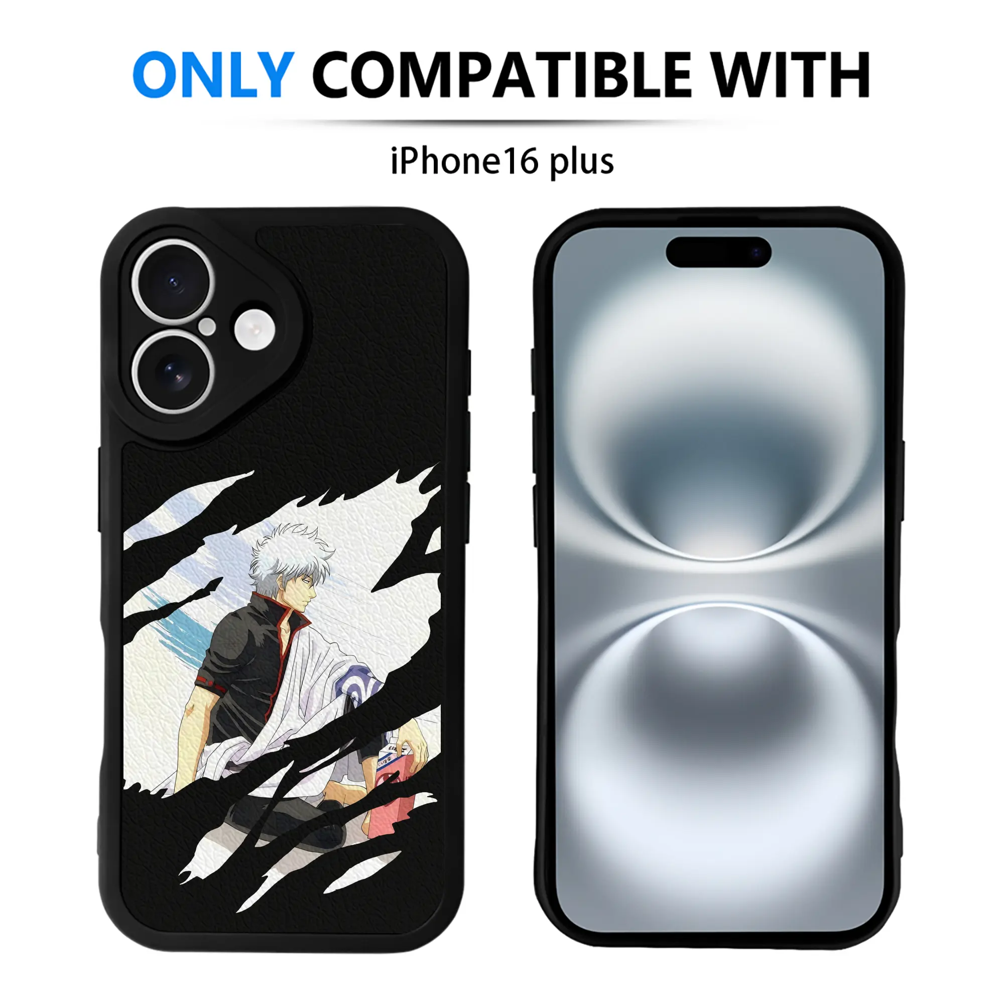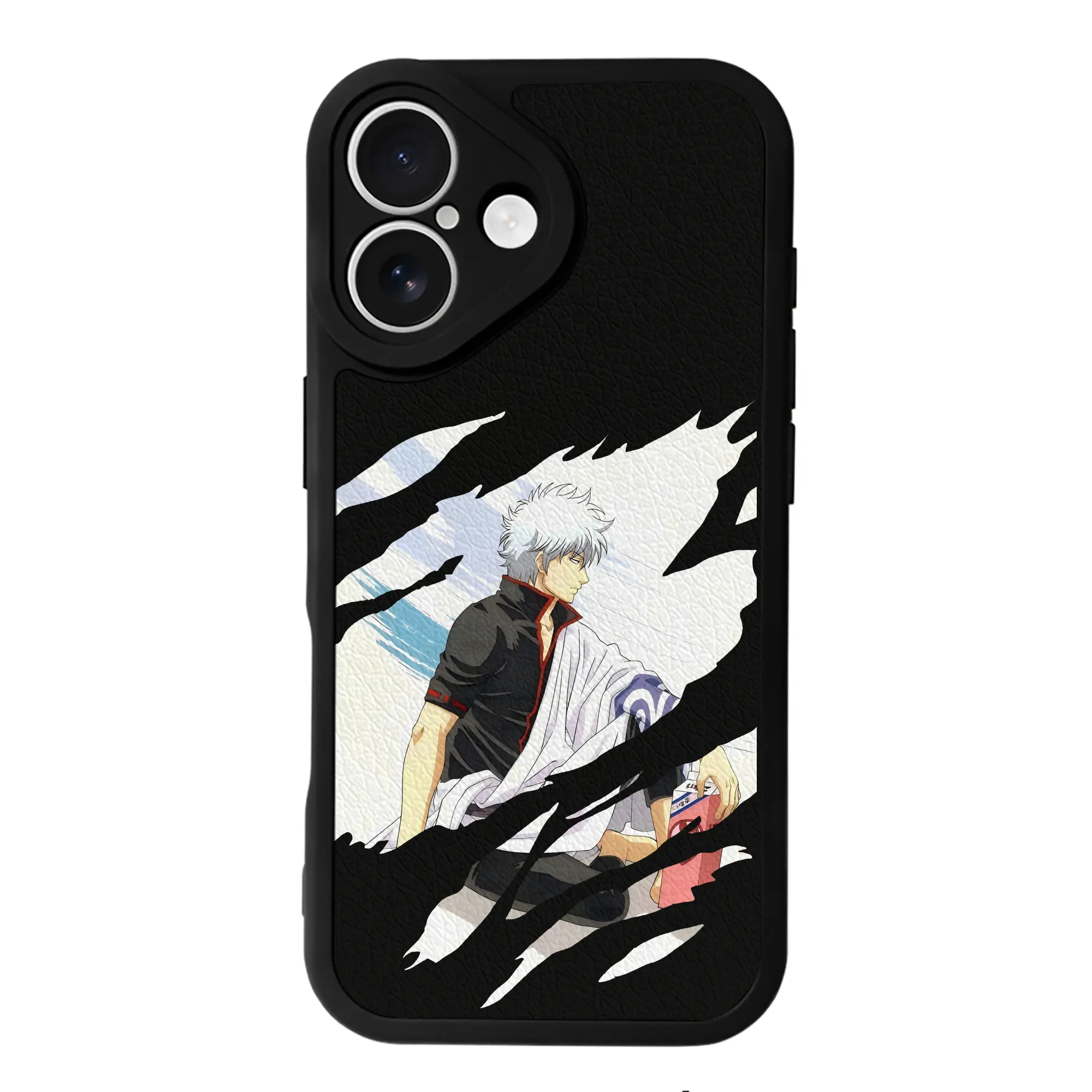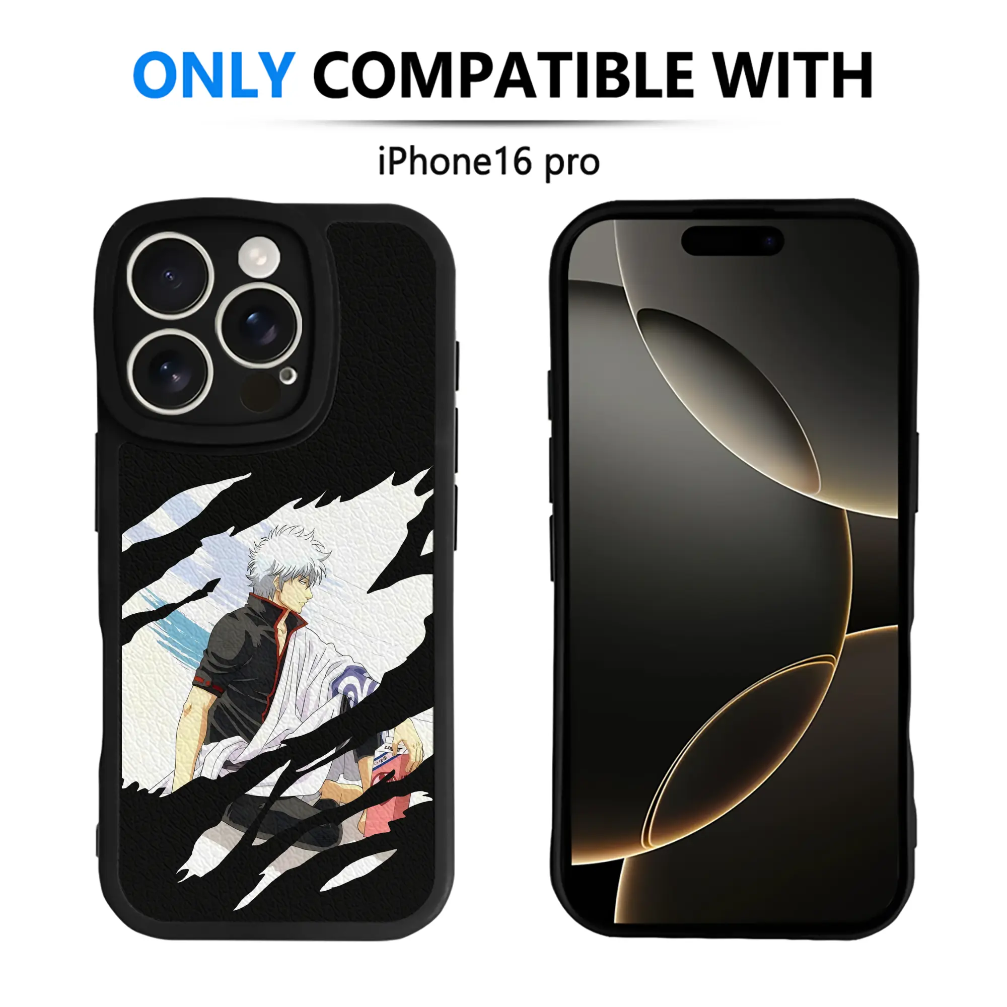 銀魂 グッズ 坂田 銀時 - IPhone 16シリーズ対応 ・ シリコンスマホケース ・ レザー調 ・ 高精度フィット ・ 耐衝撃 ・ ワイヤレス充電対応 ・ 精密カット
