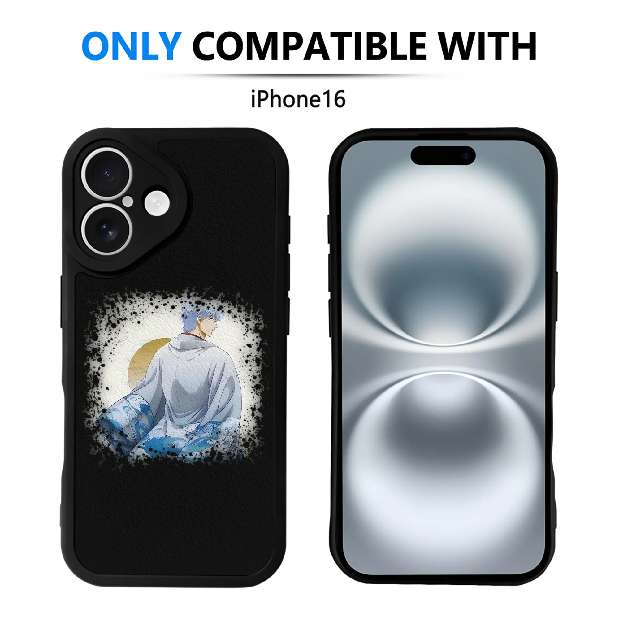 銀魂 グッズ 坂田 銀時 - IPhone 16シリーズ対応 ・ シリコンスマホケース ・ レザー調 ・ 高精度フィット ・ 耐衝撃 ・ ワイヤレス充電対応 ・ 精密カット