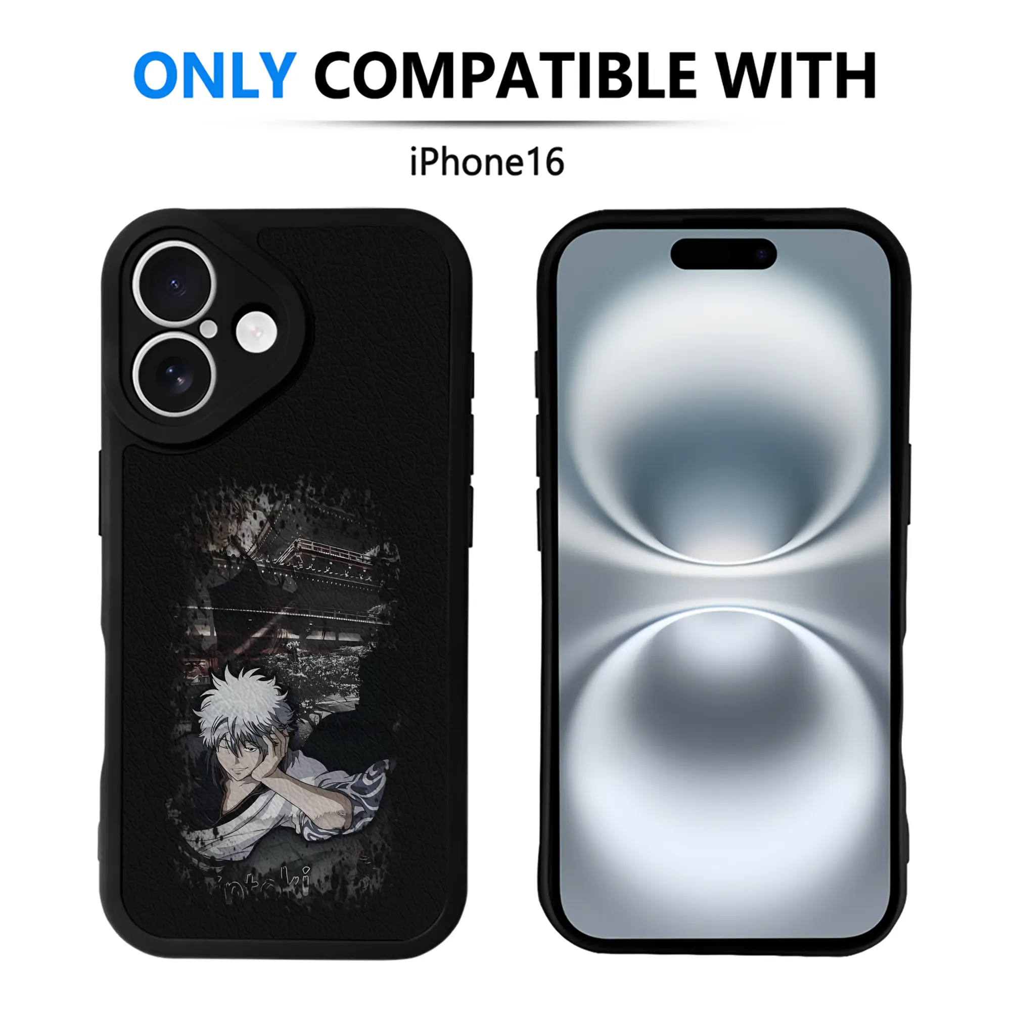 銀魂 グッズ 坂田 銀時 - IPhone 16シリーズ対応 ・ シリコンスマホケース ・ レザー調 ・ 高精度フィット ・ 耐衝撃 ・ ワイヤレス充電対応 ・ 精密カット