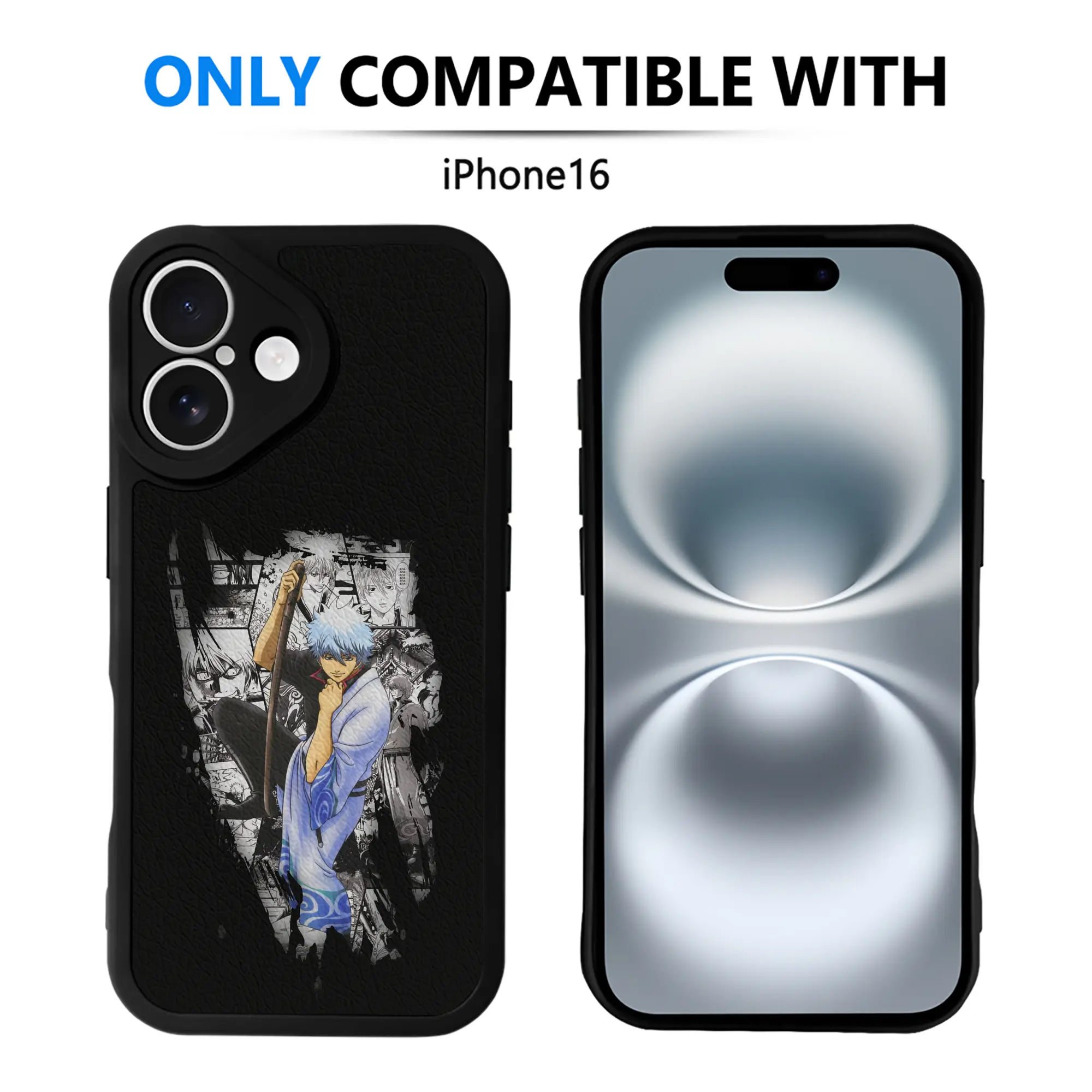 銀魂 グッズ 坂田 銀時 - IPhone 16シリーズ対応 ・ シリコンスマホケース ・ レザー調 ・ 高精度フィット ・ 耐衝撃 ・ ワイヤレス充電対応 ・ 精密カット