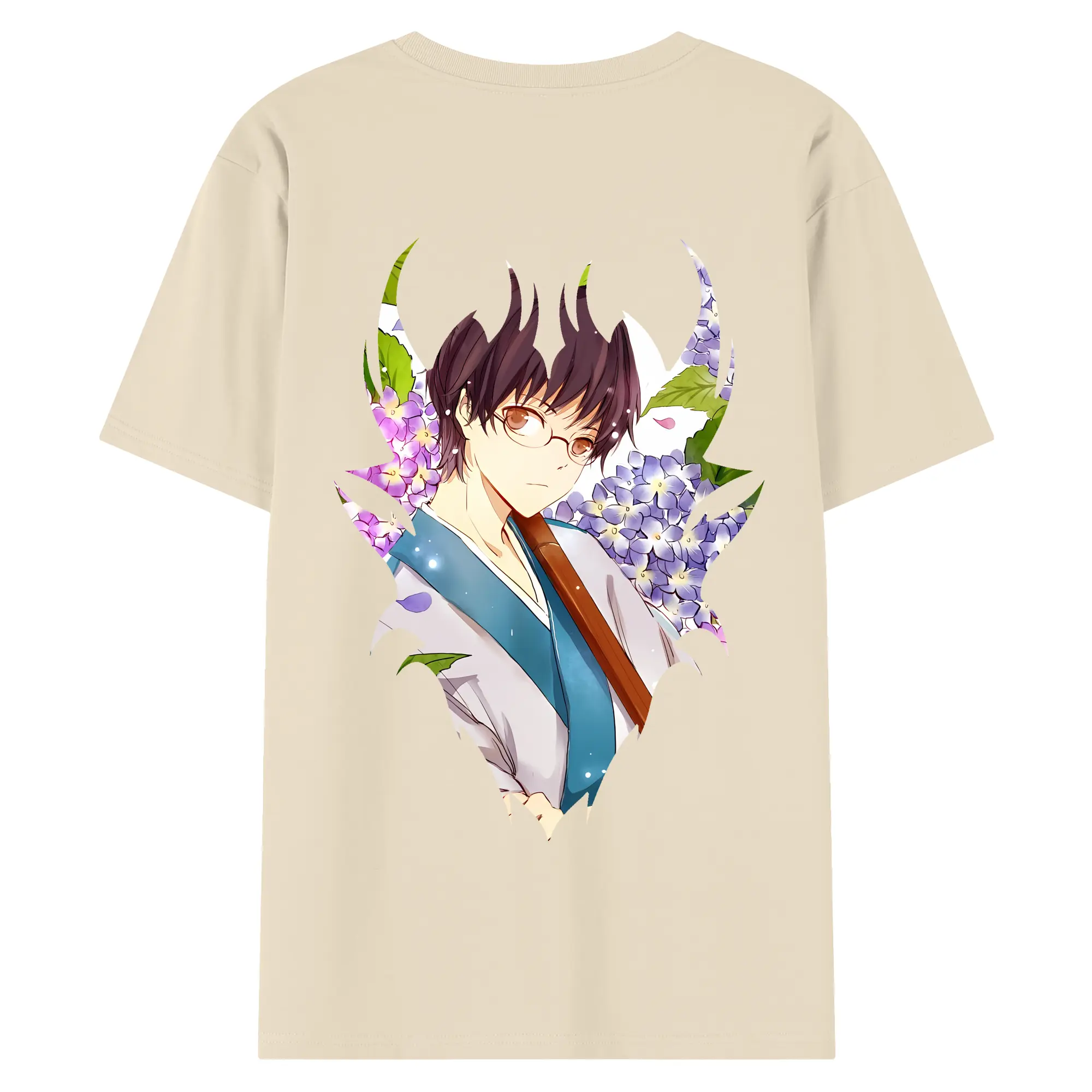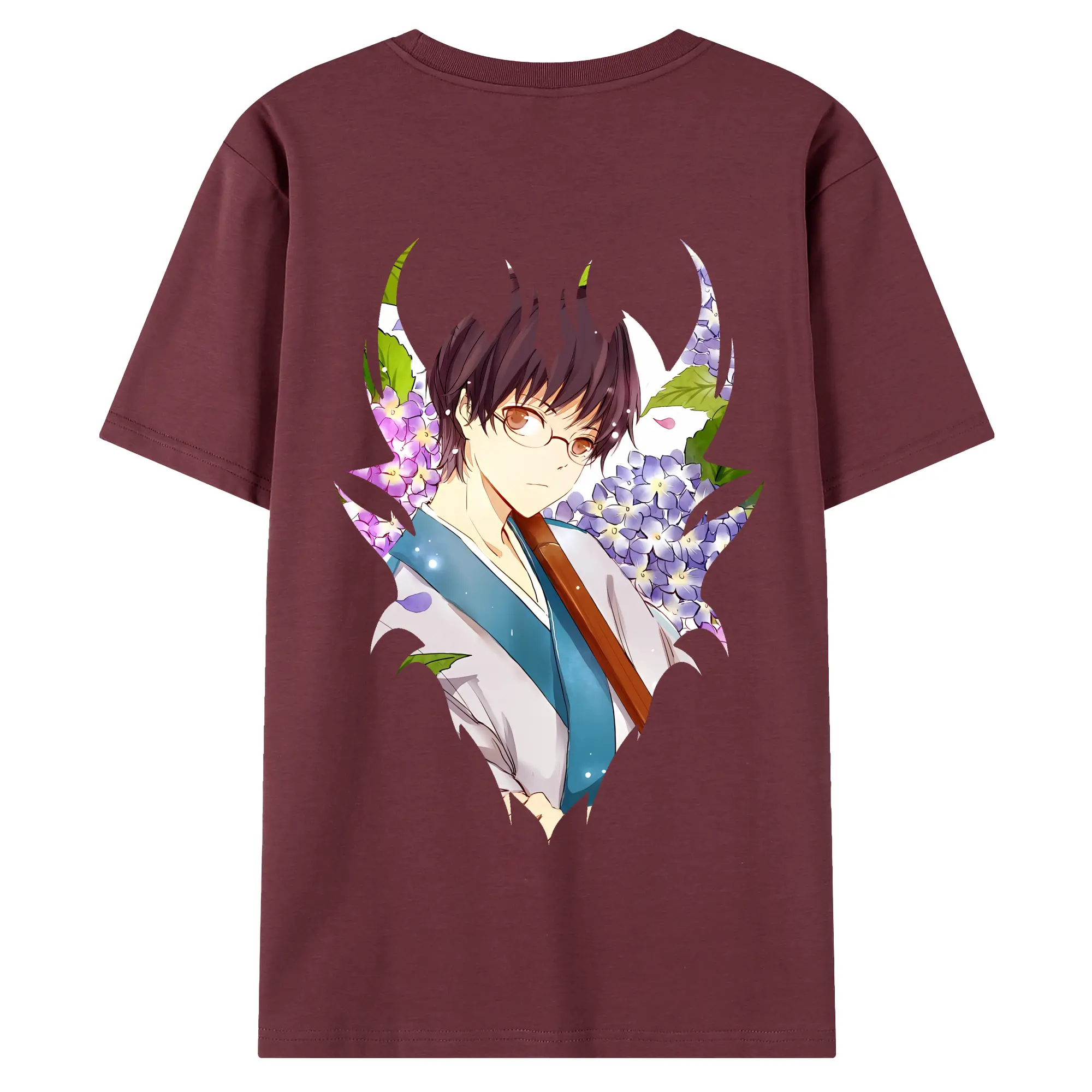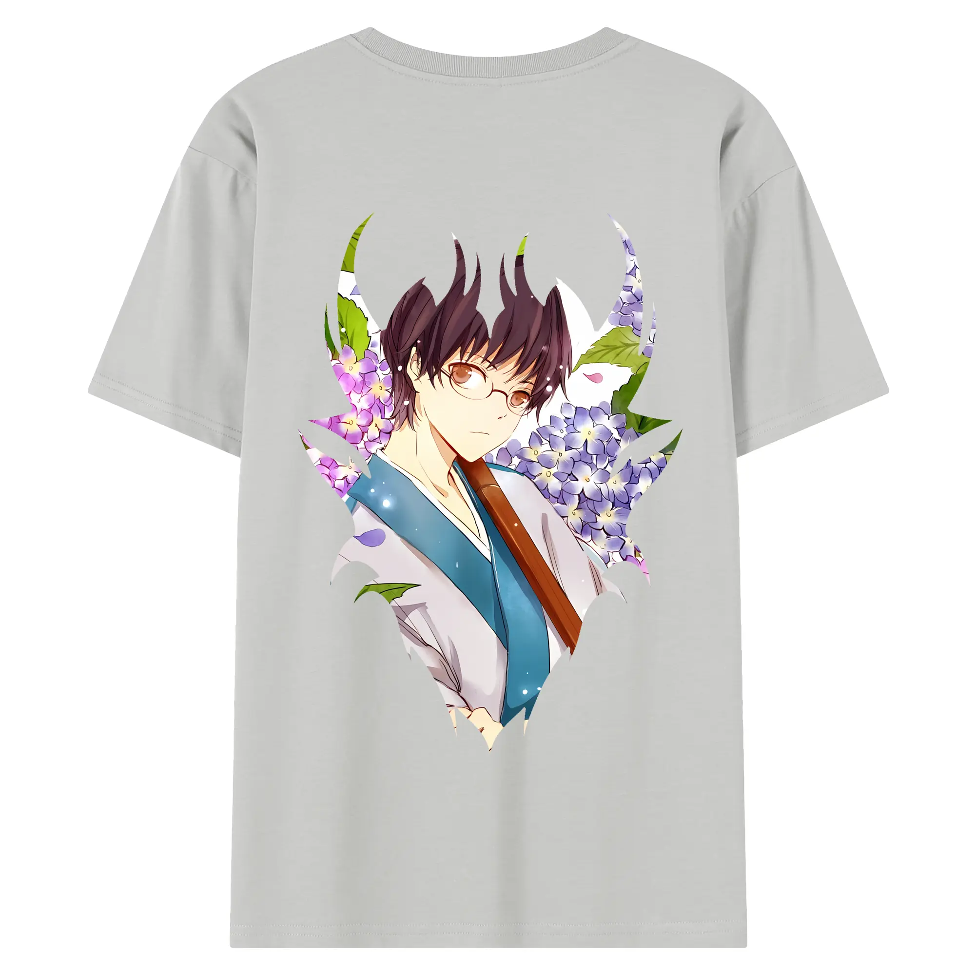 銀魂 グッズ 志村 新八 - 綿100% ヴィンテージ風 半袖Tシャツ ・ 背面プリント ・ 柔らか肌触り ・ 通気性 快適 ・ スポーツ カジュアル 外出用