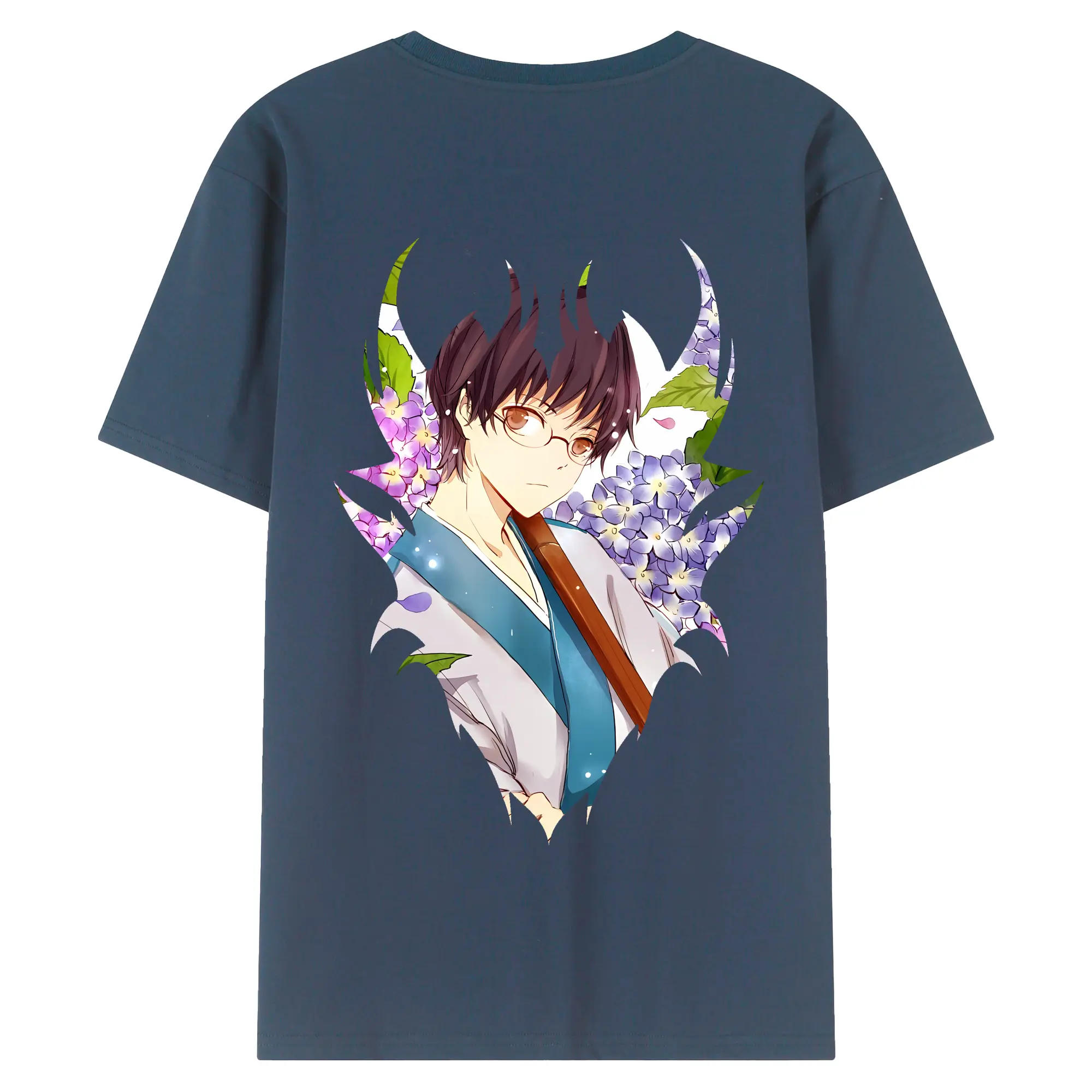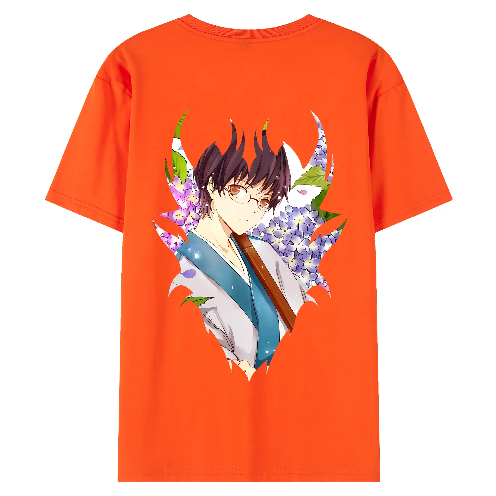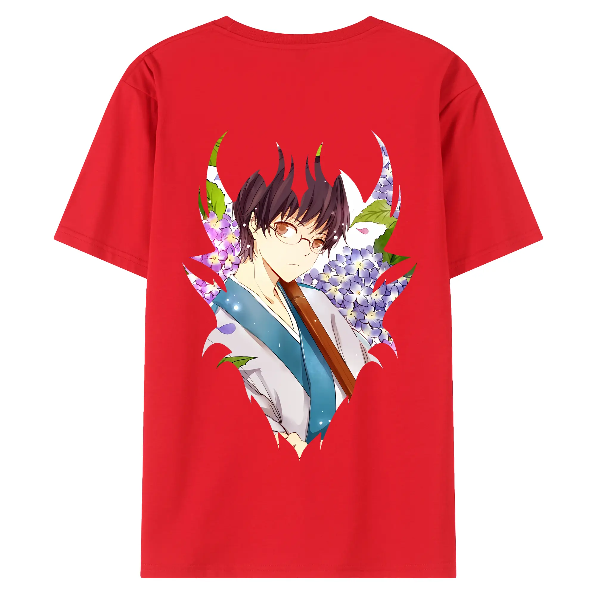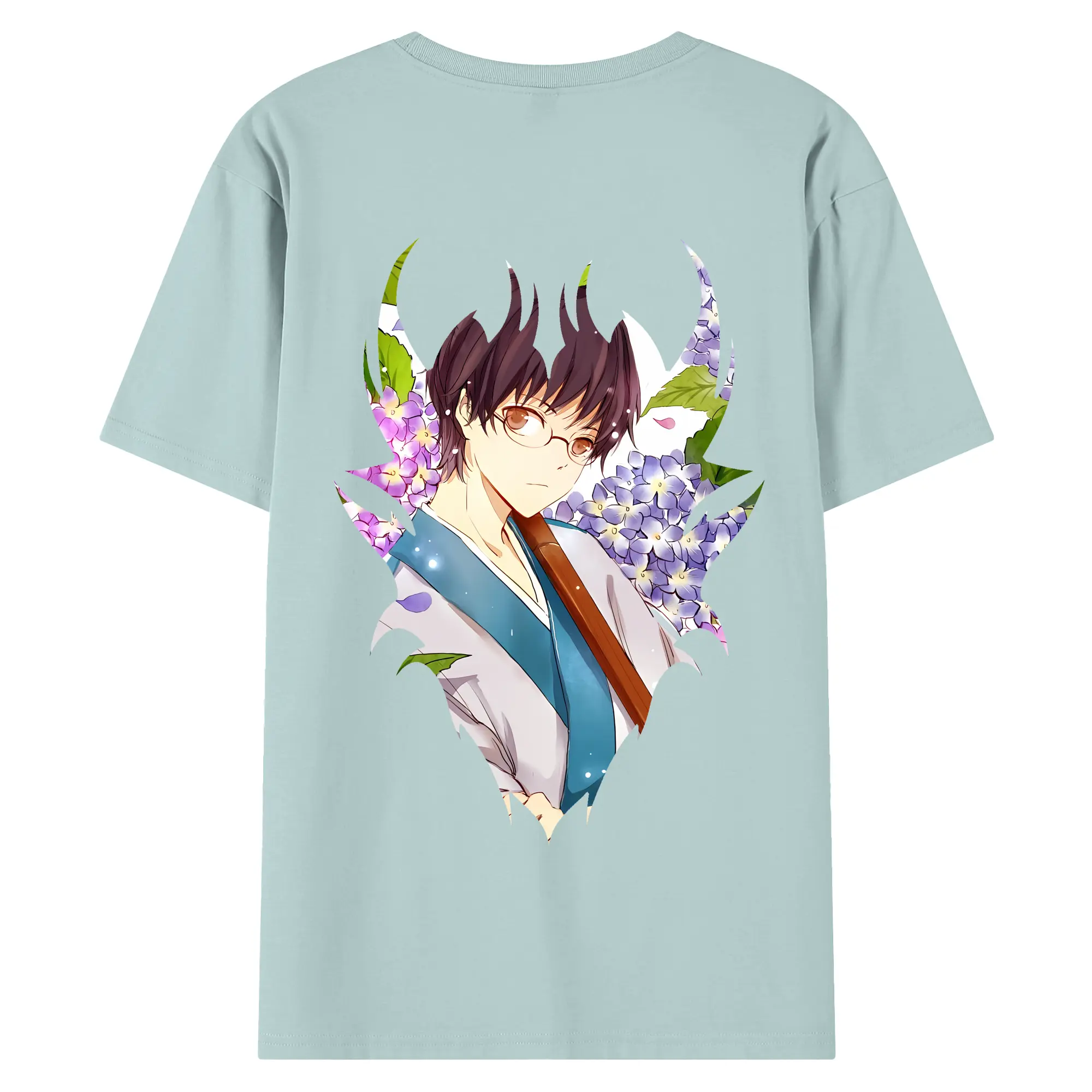 銀魂 グッズ 志村 新八 - 綿100% 半袖Tシャツ ・ フロントプリント ・ 快適 通気性 ・ 日常使い 散歩 スポーツ用