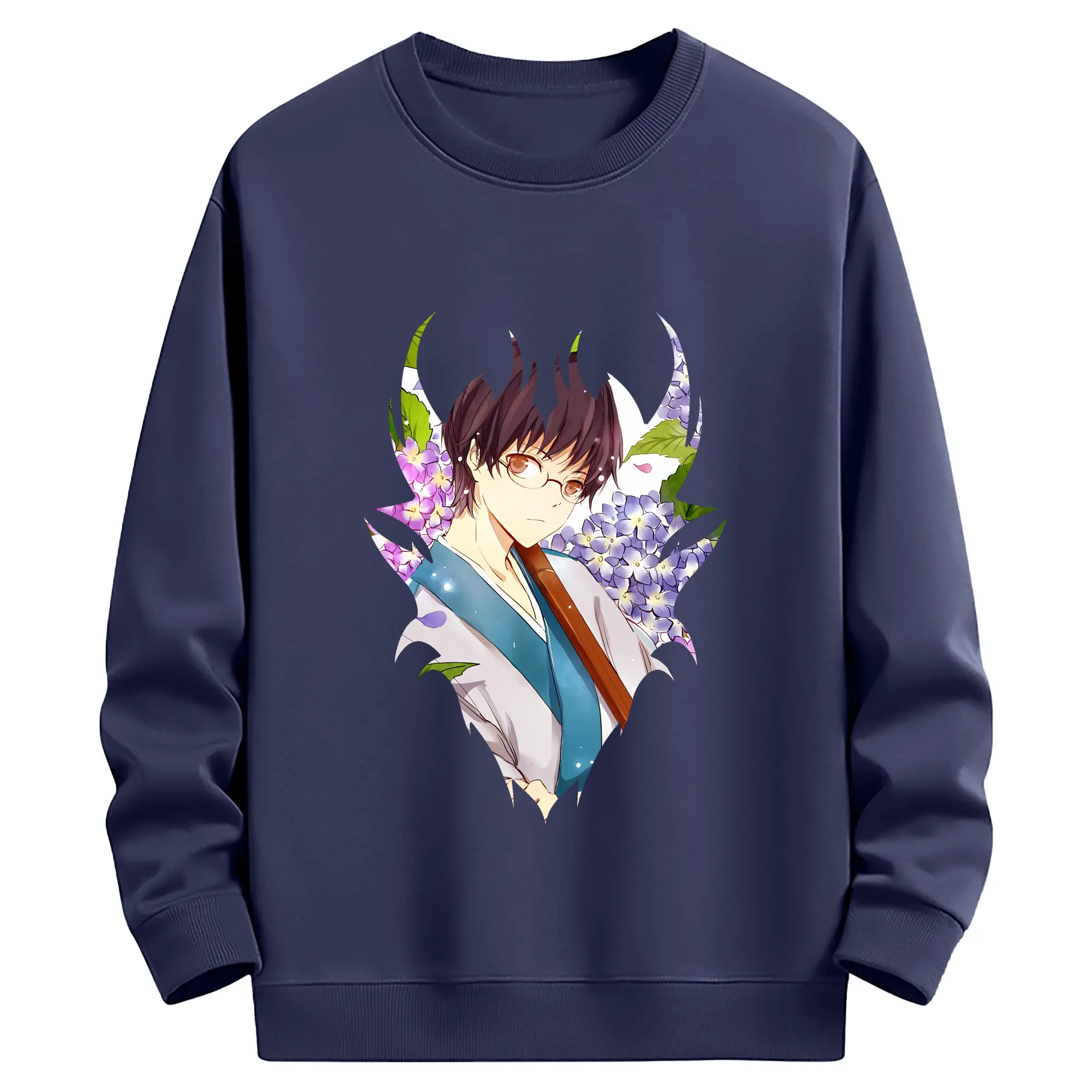 銀魂 グッズ 志村 新八 - 薄手 クルーネック スウェット 裏毛260g · ポリエステル 春秋向け カジュアル 男女兼用 · トレーナー デイリー スポーツ 散歩に最適