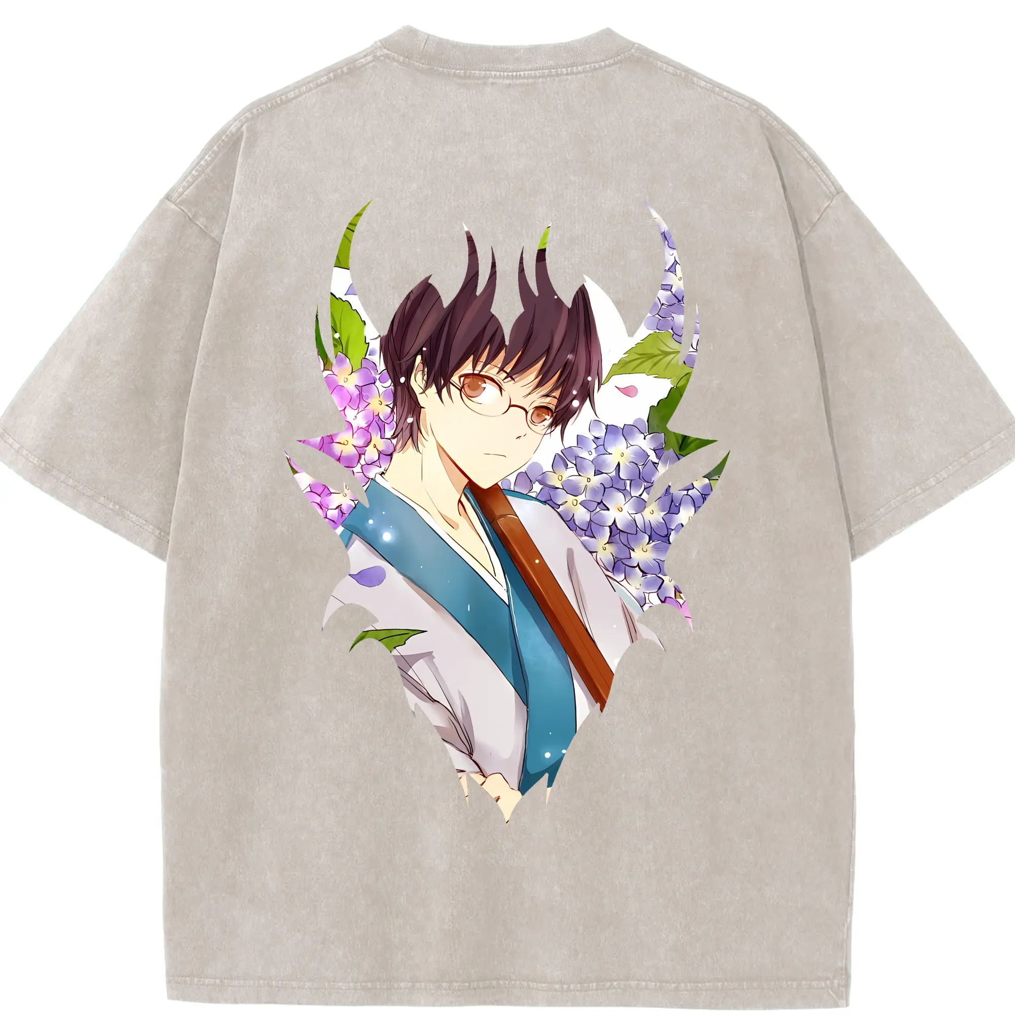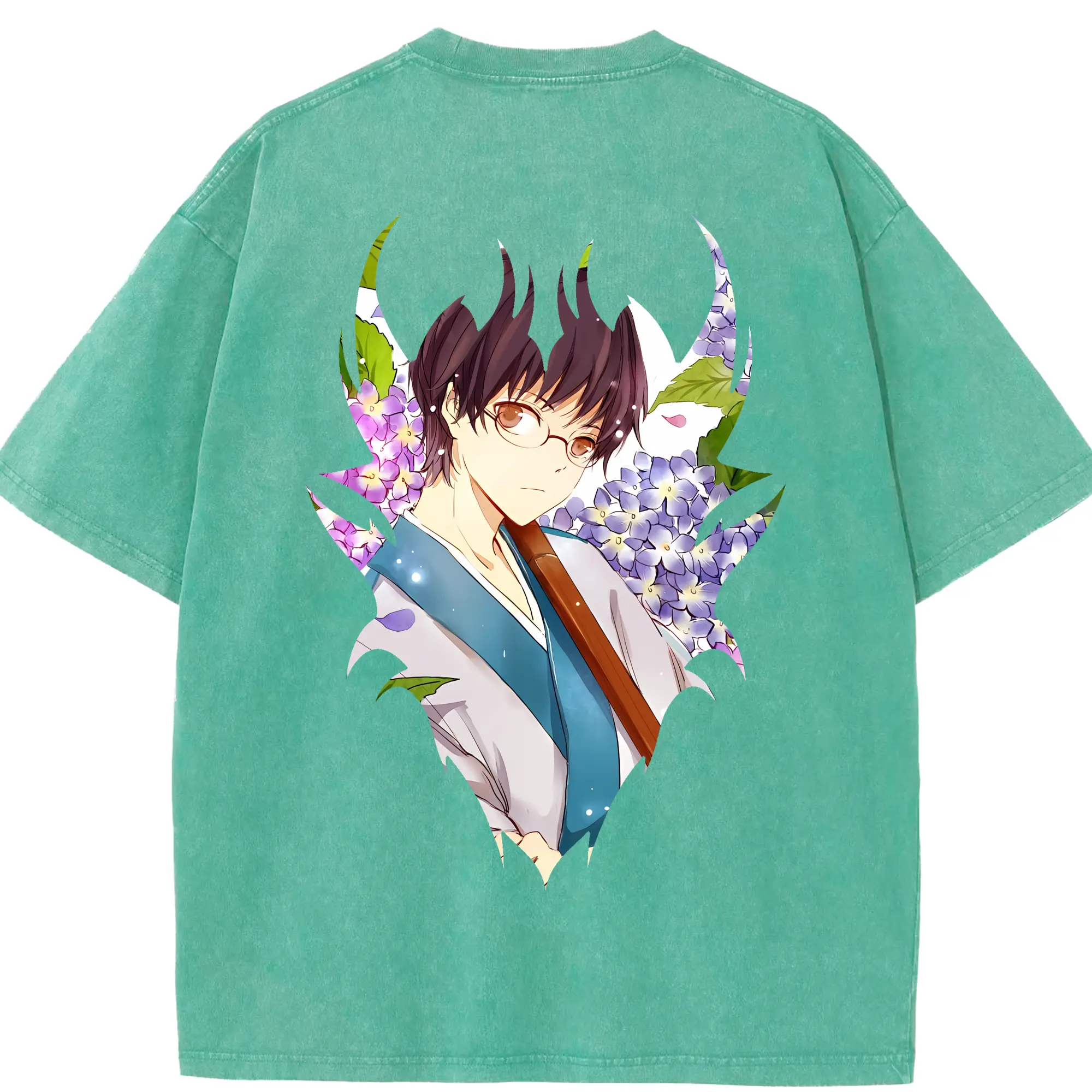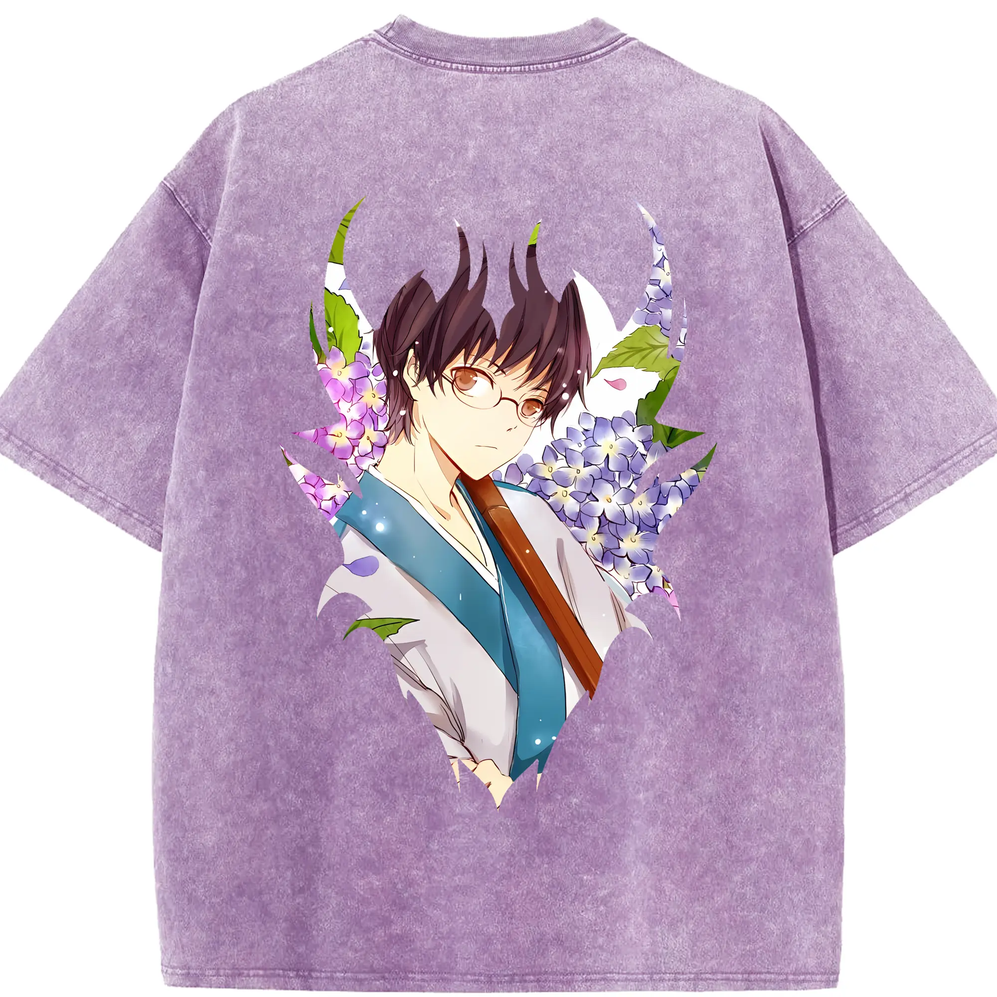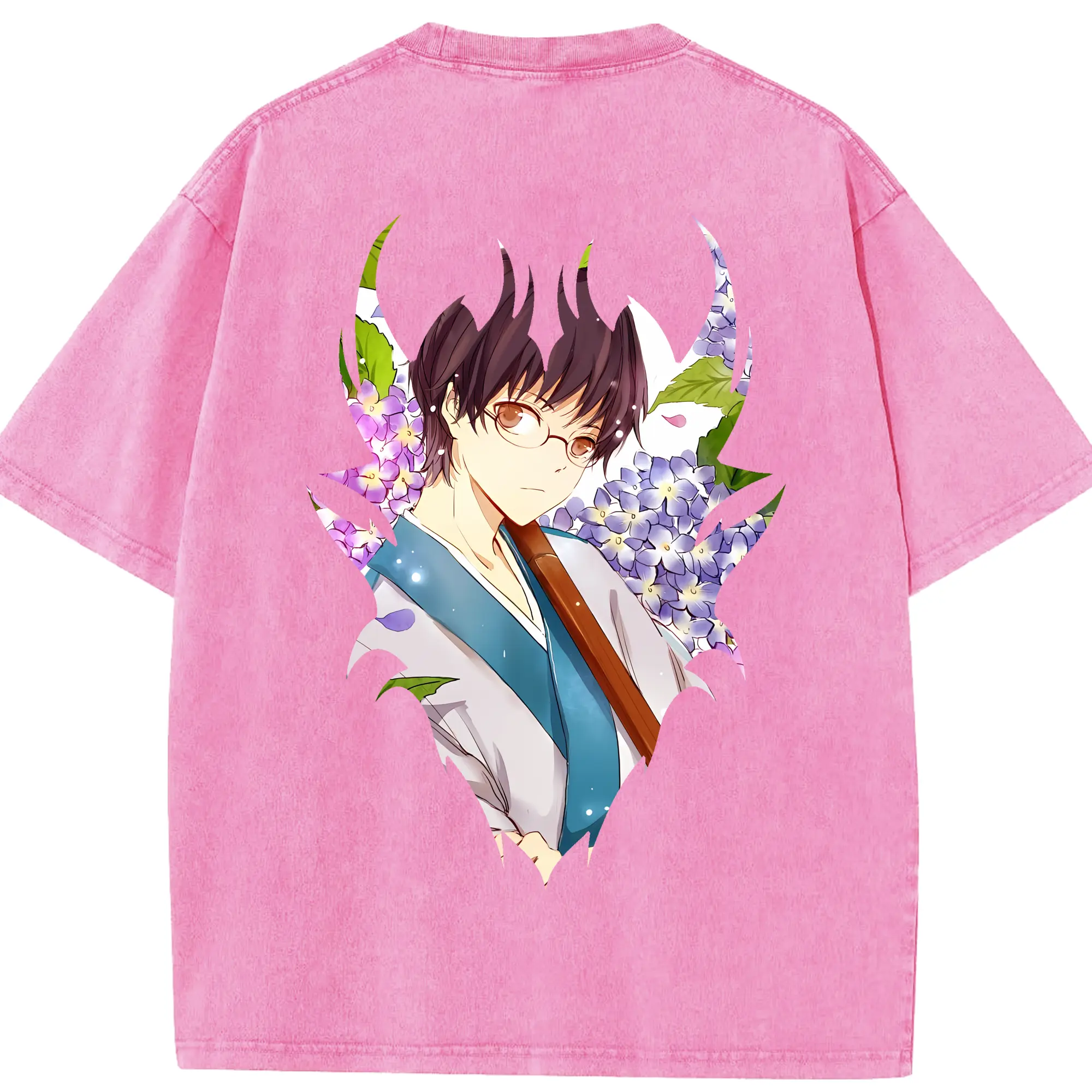 銀魂 グッズ 志村 新八 - 綿100% ヴィンテージ風 半袖Tシャツ ・ フロントプリント ・ 柔らか肌触り ・ 通気性 快適 ・ スポーツ カジュアル 外出用