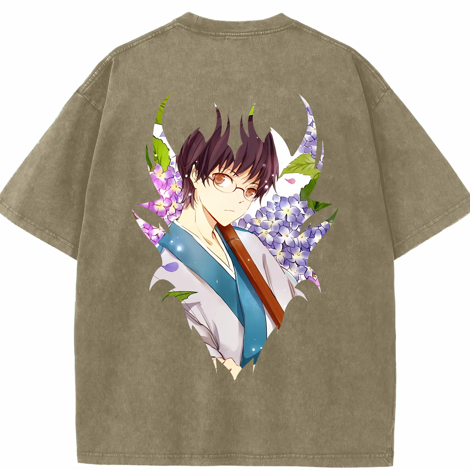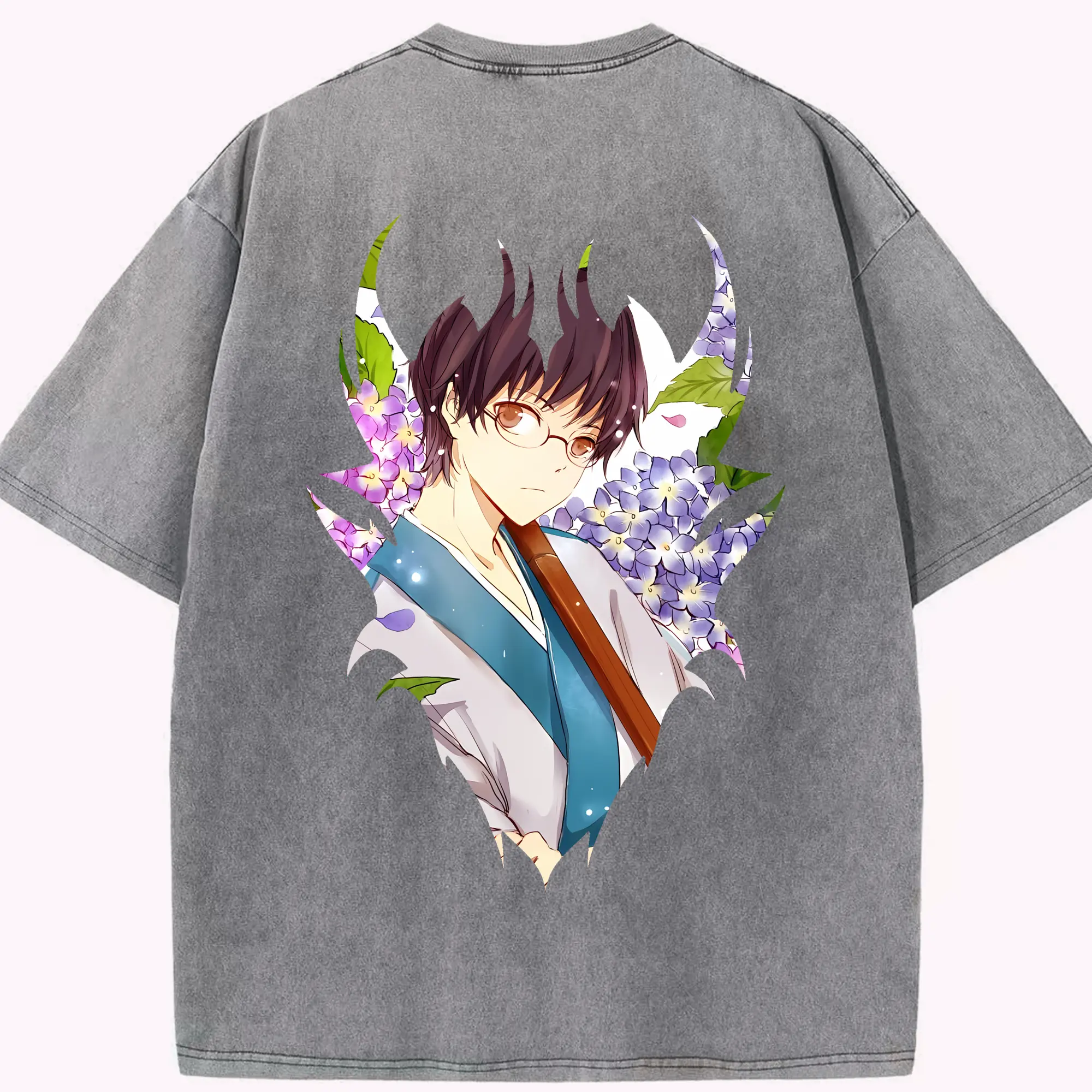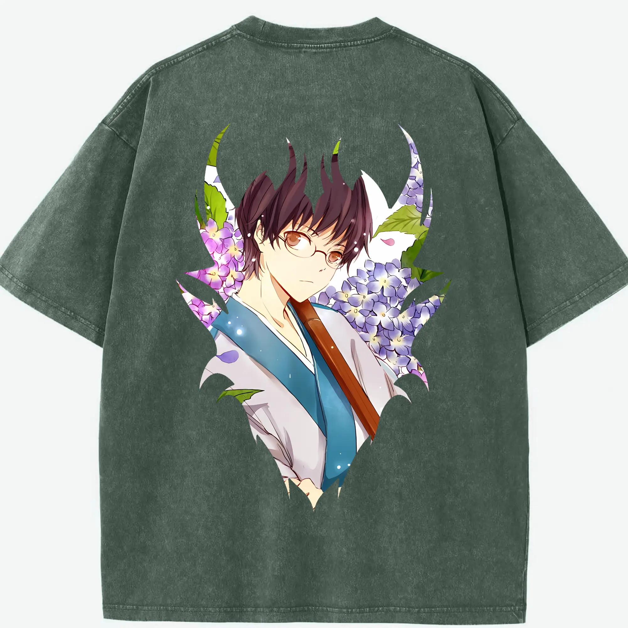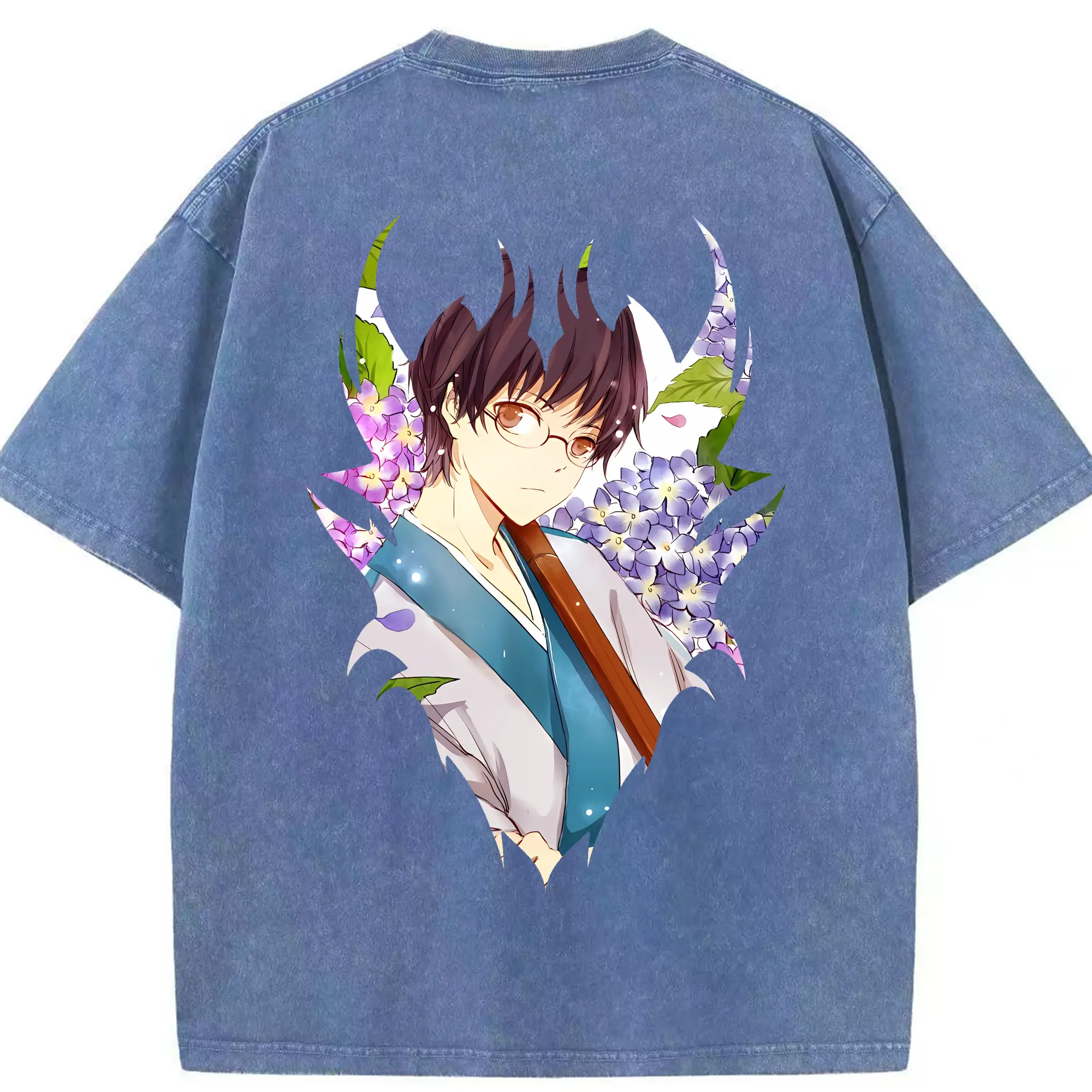 銀魂 グッズ 志村 新八 - 綿100% ヴィンテージ風 半袖Tシャツ ・ フロントプリント ・ 柔らか肌触り ・ 通気性 快適 ・ スポーツ カジュアル 外出用