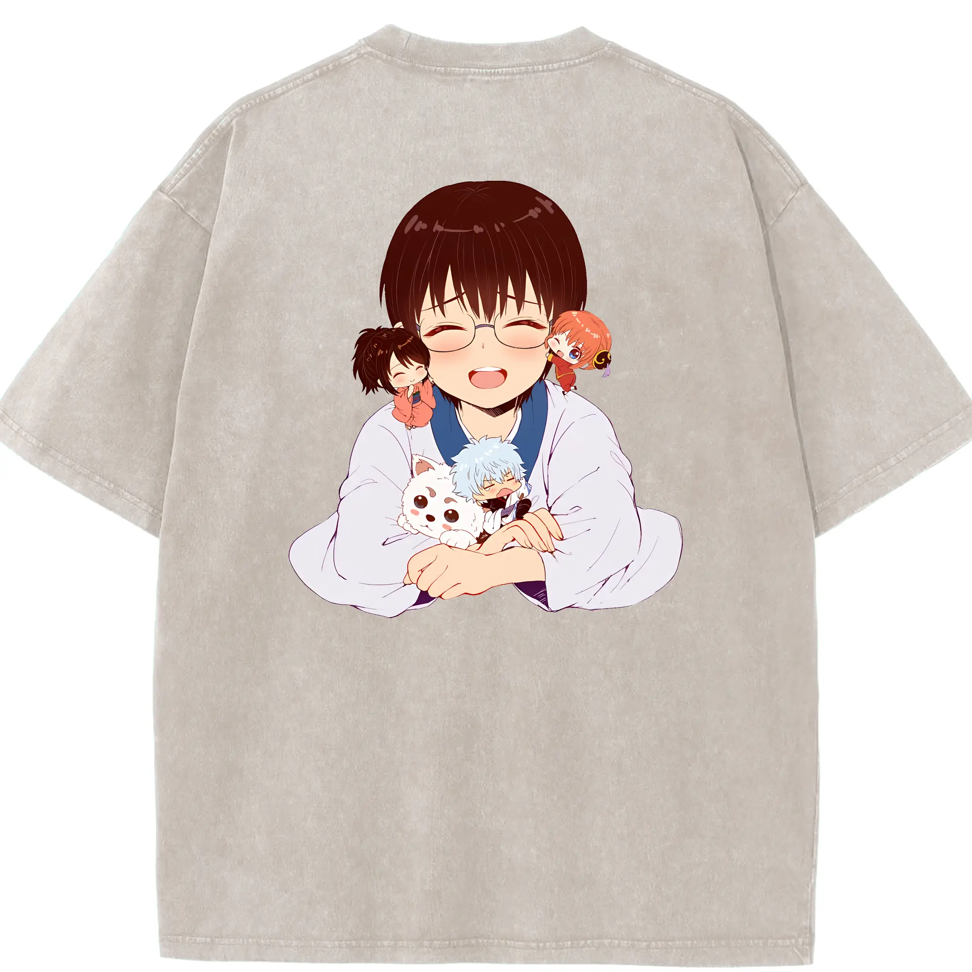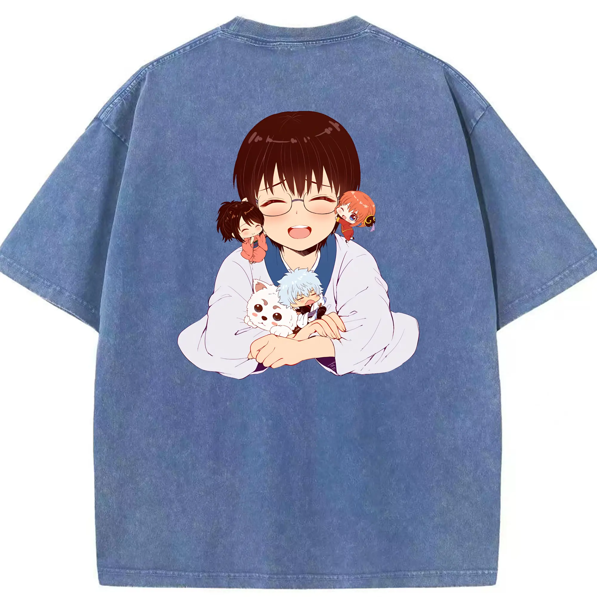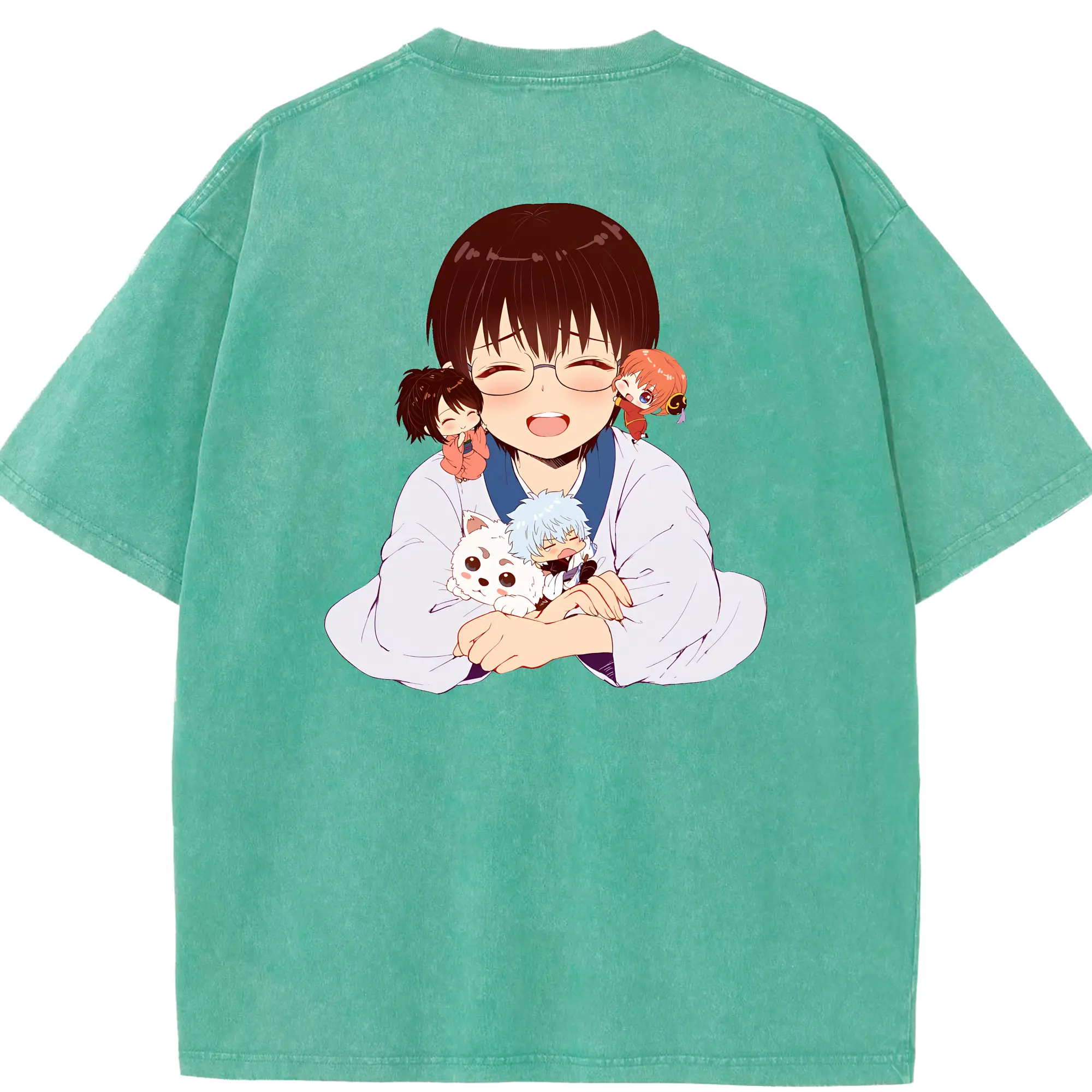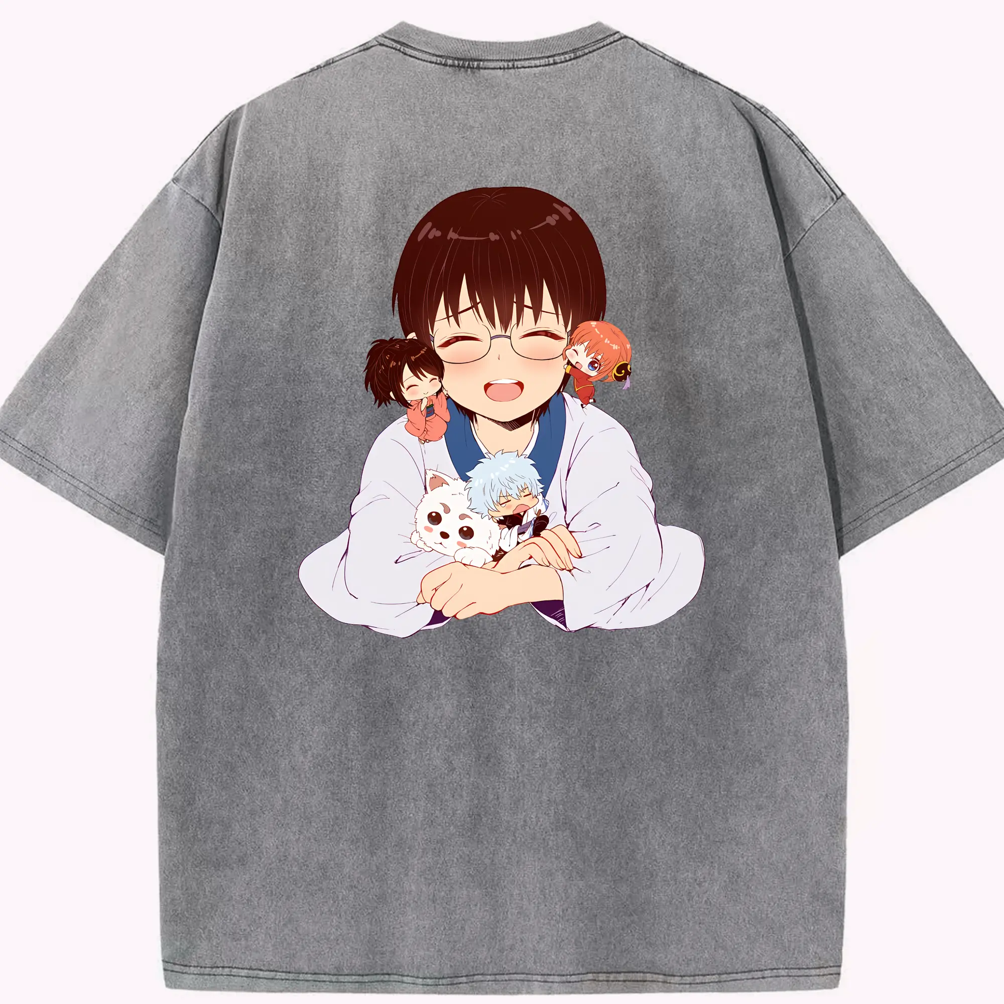 銀魂 グッズ 志村 新八 - 綿100% ヴィンテージ風 半袖Tシャツ ・ フロントプリント ・ 柔らか肌触り ・ 通気性 快適 ・ スポーツ カジュアル 外出用