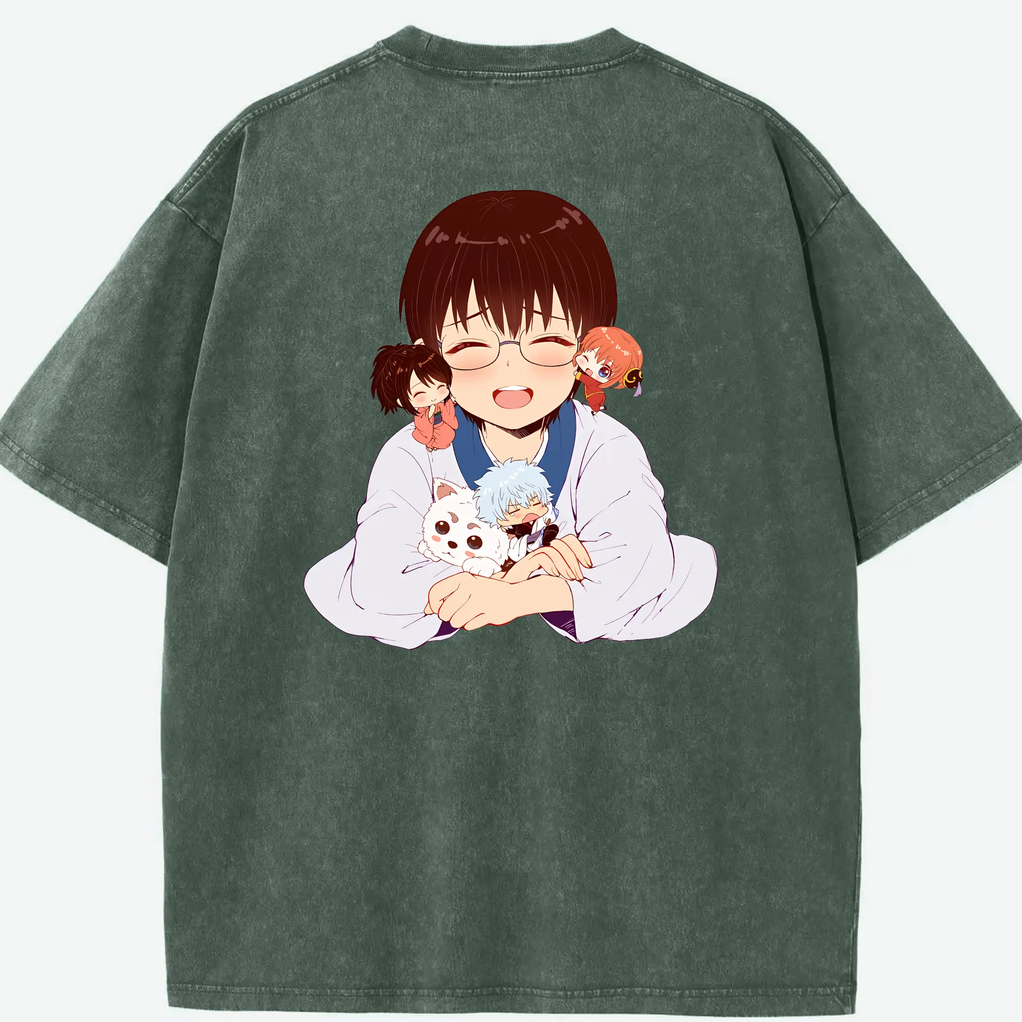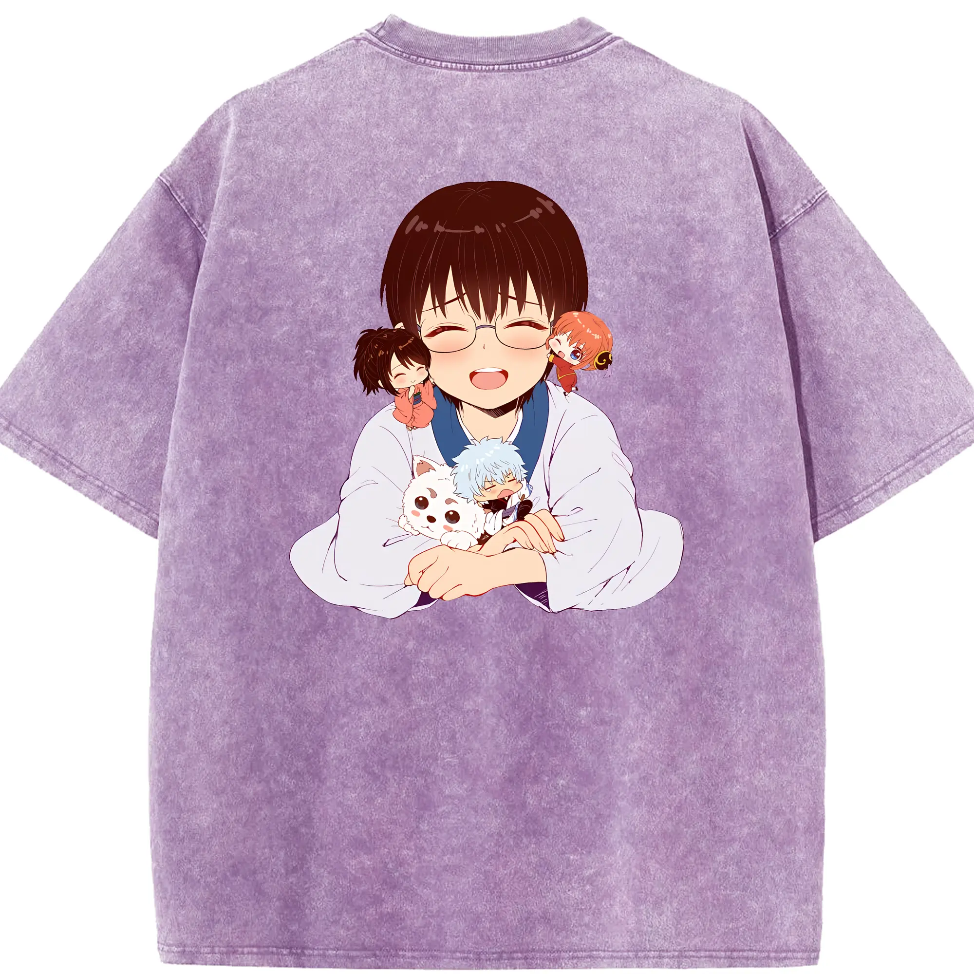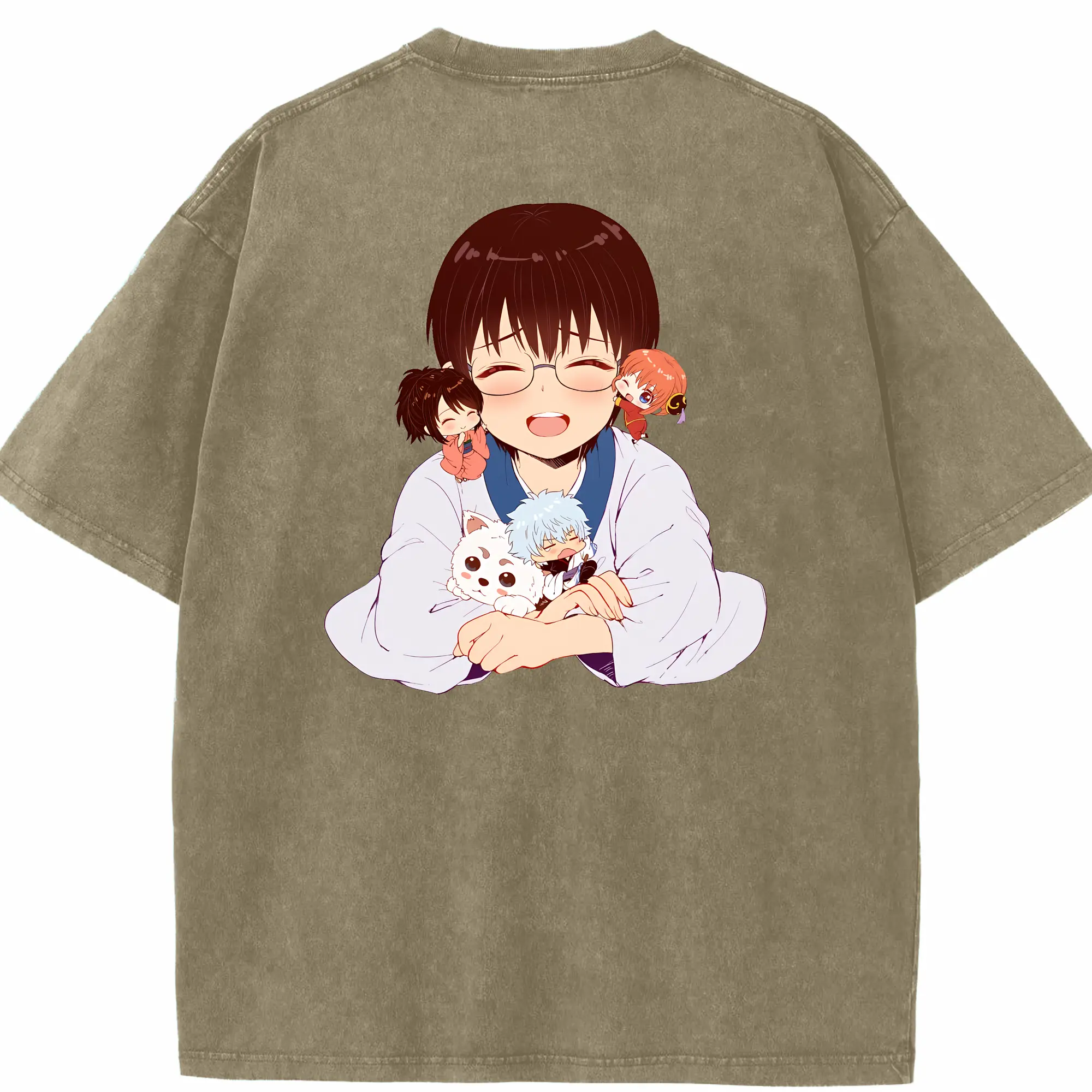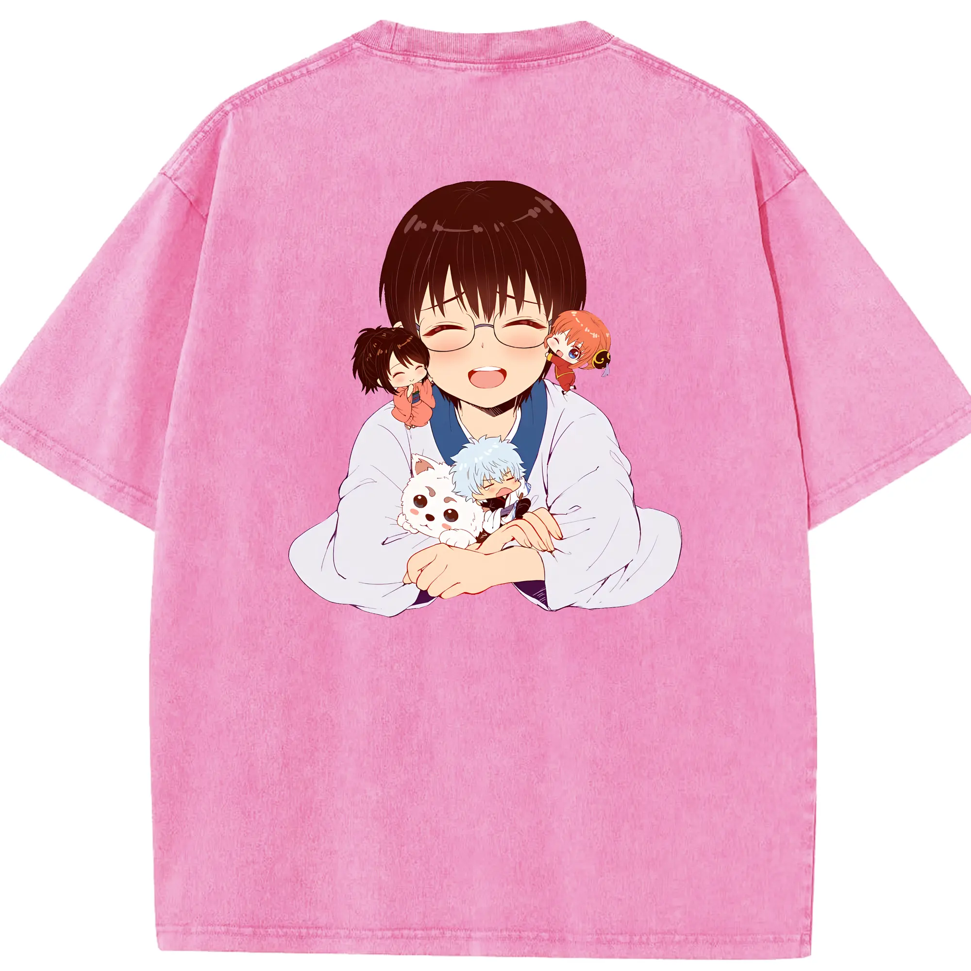 銀魂 グッズ 志村 新八 - 綿100% ヴィンテージ風 半袖Tシャツ ・ フロントプリント ・ 柔らか肌触り ・ 通気性 快適 ・ スポーツ カジュアル 外出用