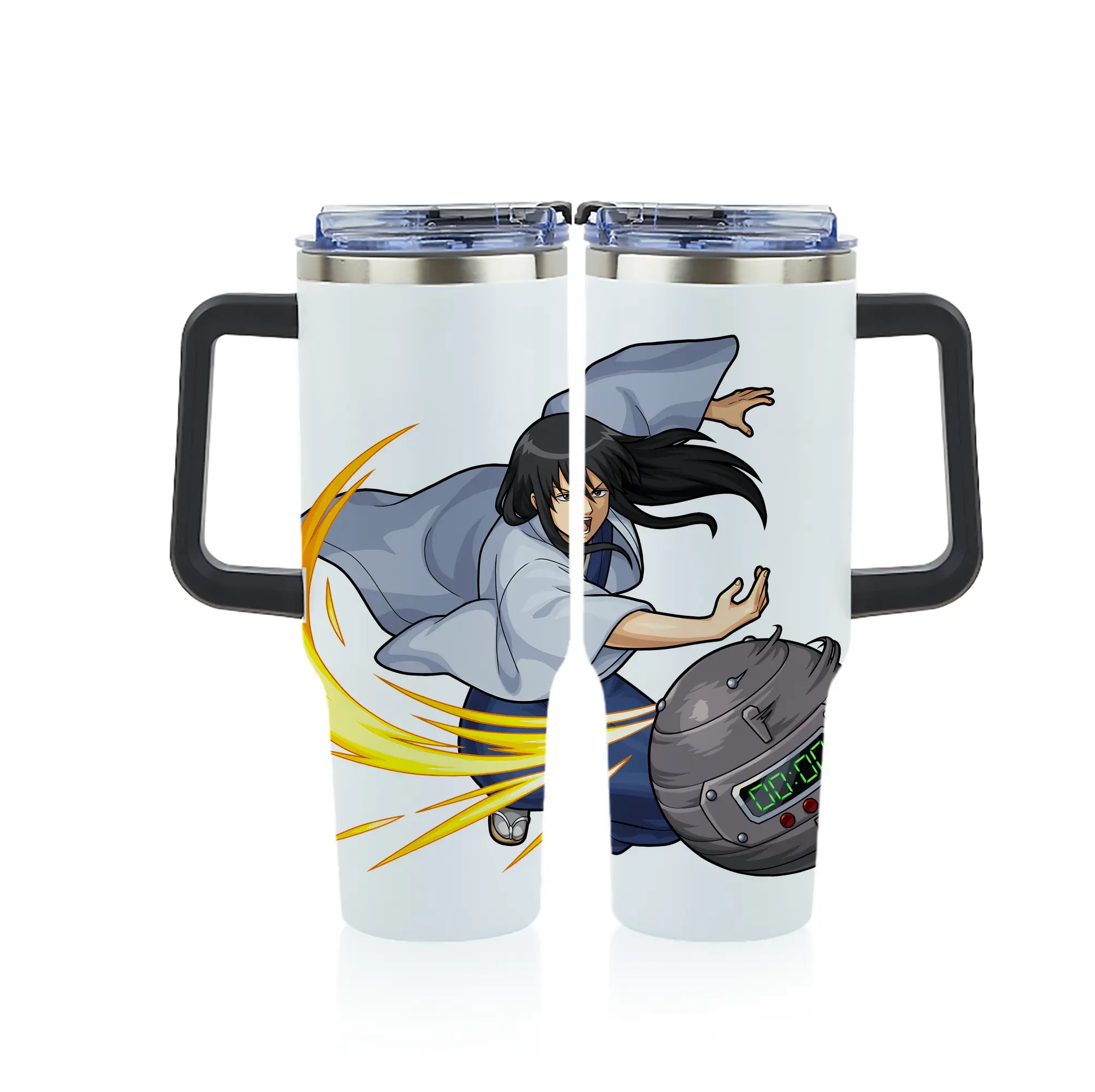 銀魂 グッズ 桂 小太郎 - 1200mL フルプリント車用タンブラー ・ 304ステンレス 内側 ・ 201ステンレス 外側 ・ 保温 保冷 ・ 通勤 ドライブ アウトドア用