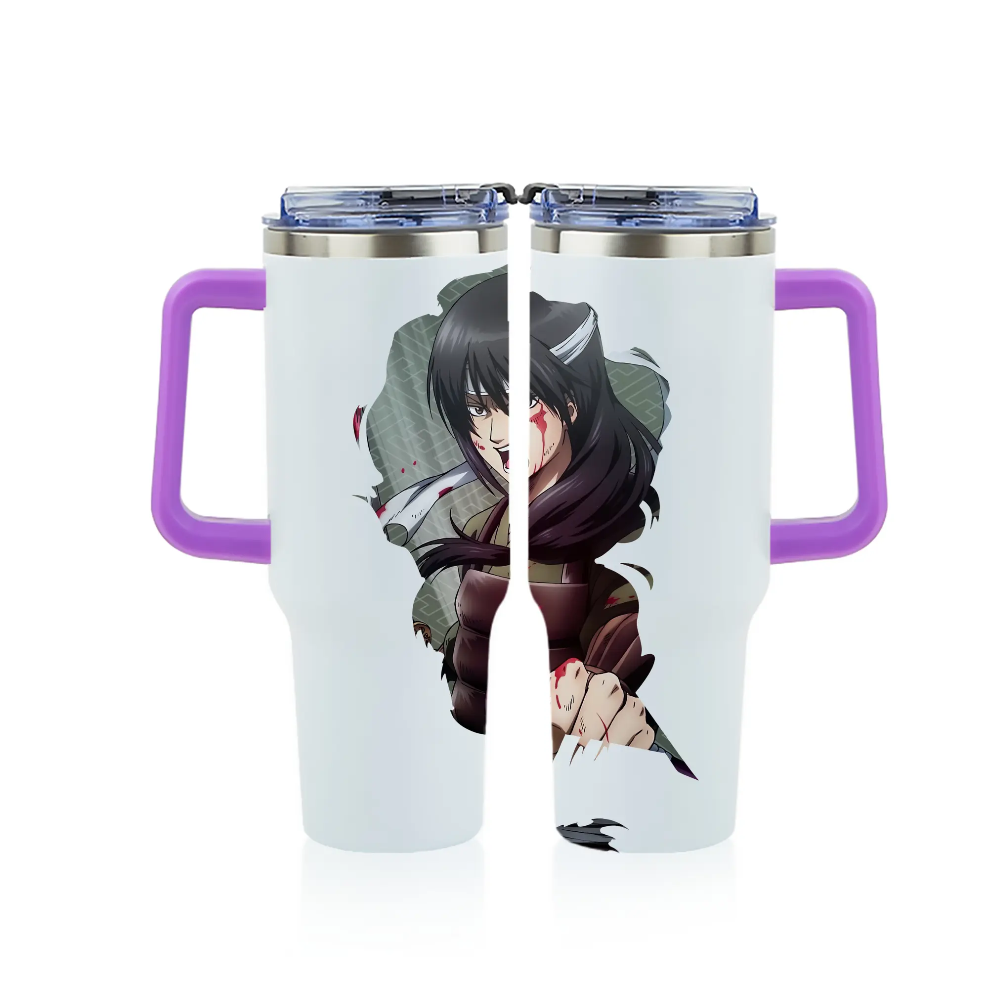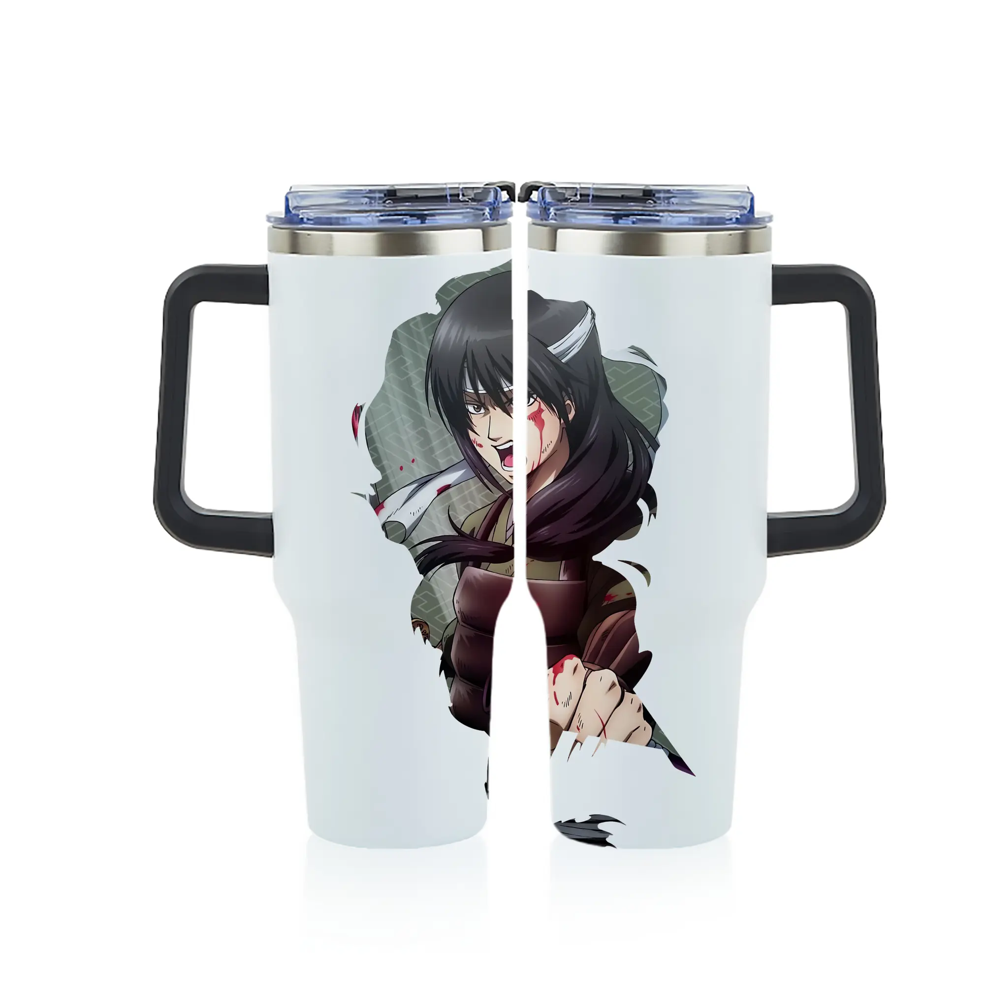 銀魂 グッズ 桂 小太郎 - 1200mL フルプリント車用タンブラー ・ 304ステンレス 内側 ・ 201ステンレス 外側 ・ 保温 保冷 ・ 通勤 ドライブ アウトドア用