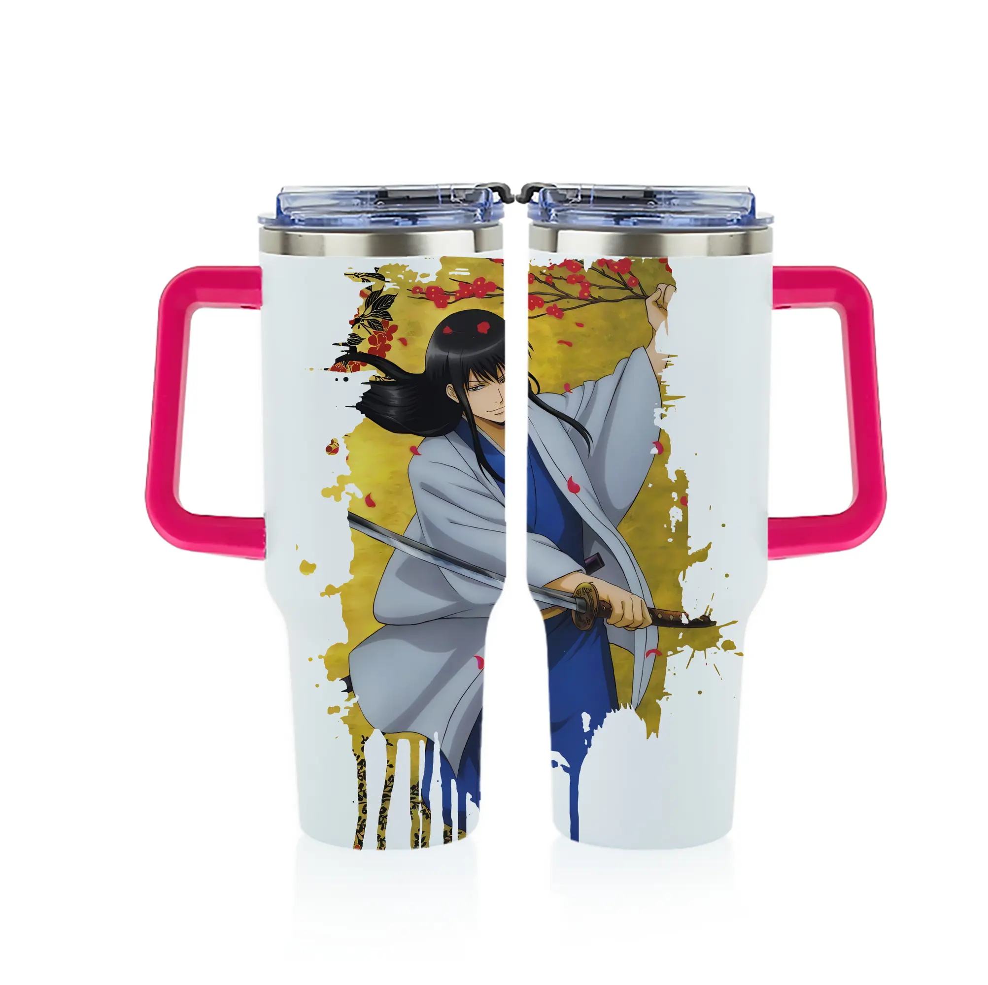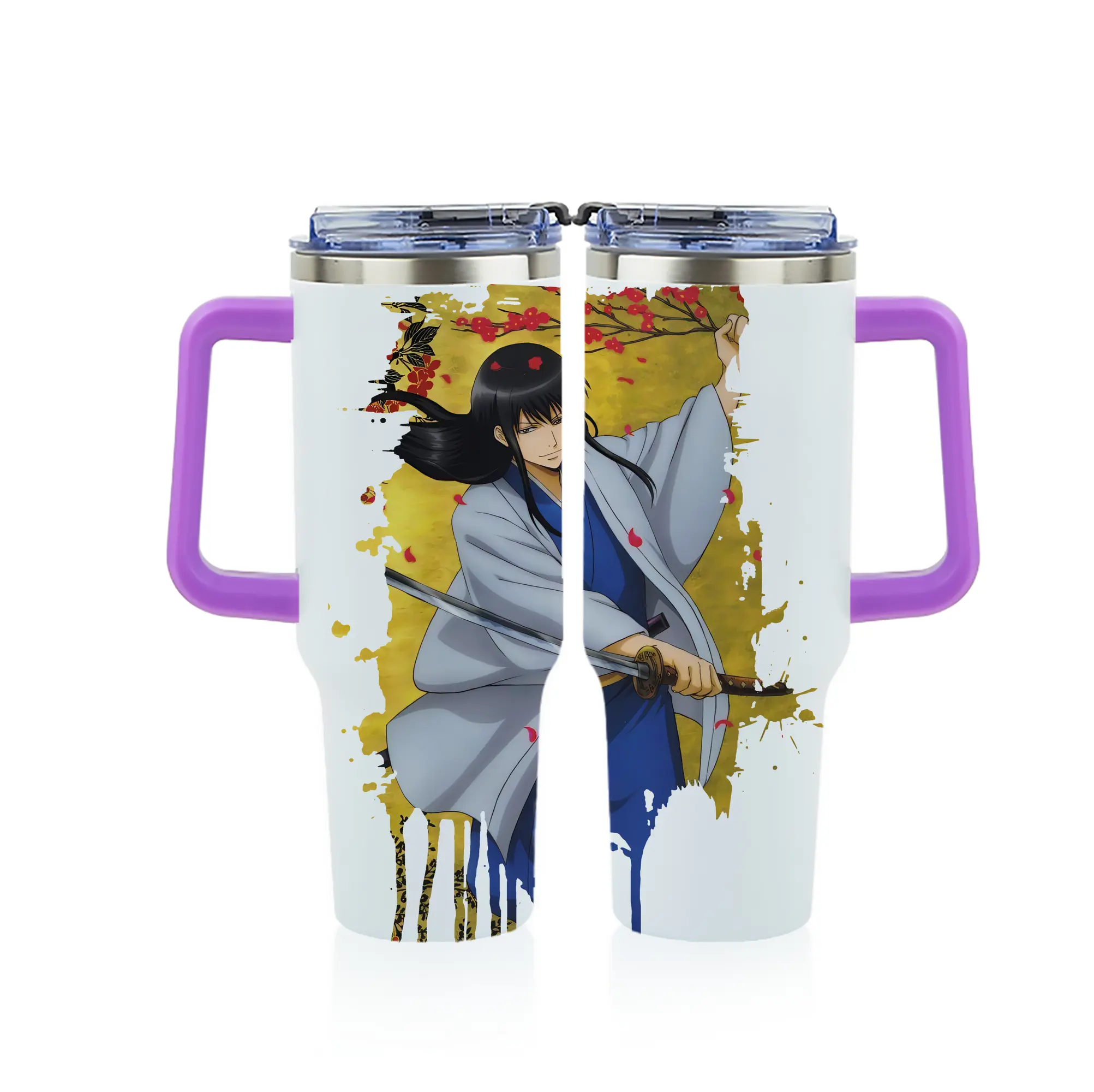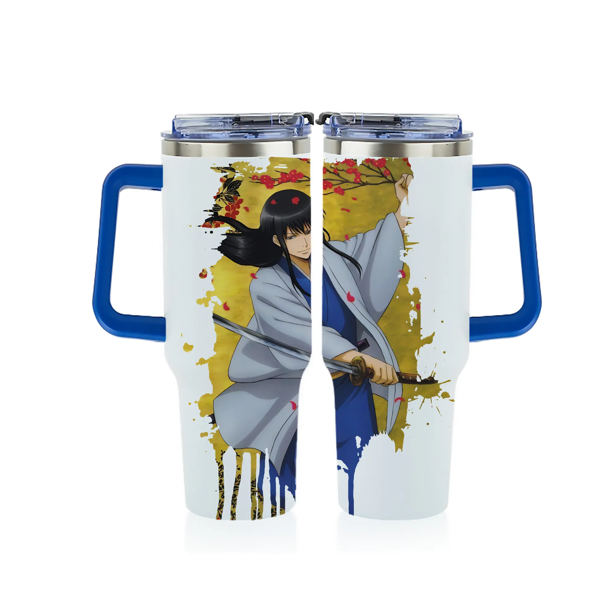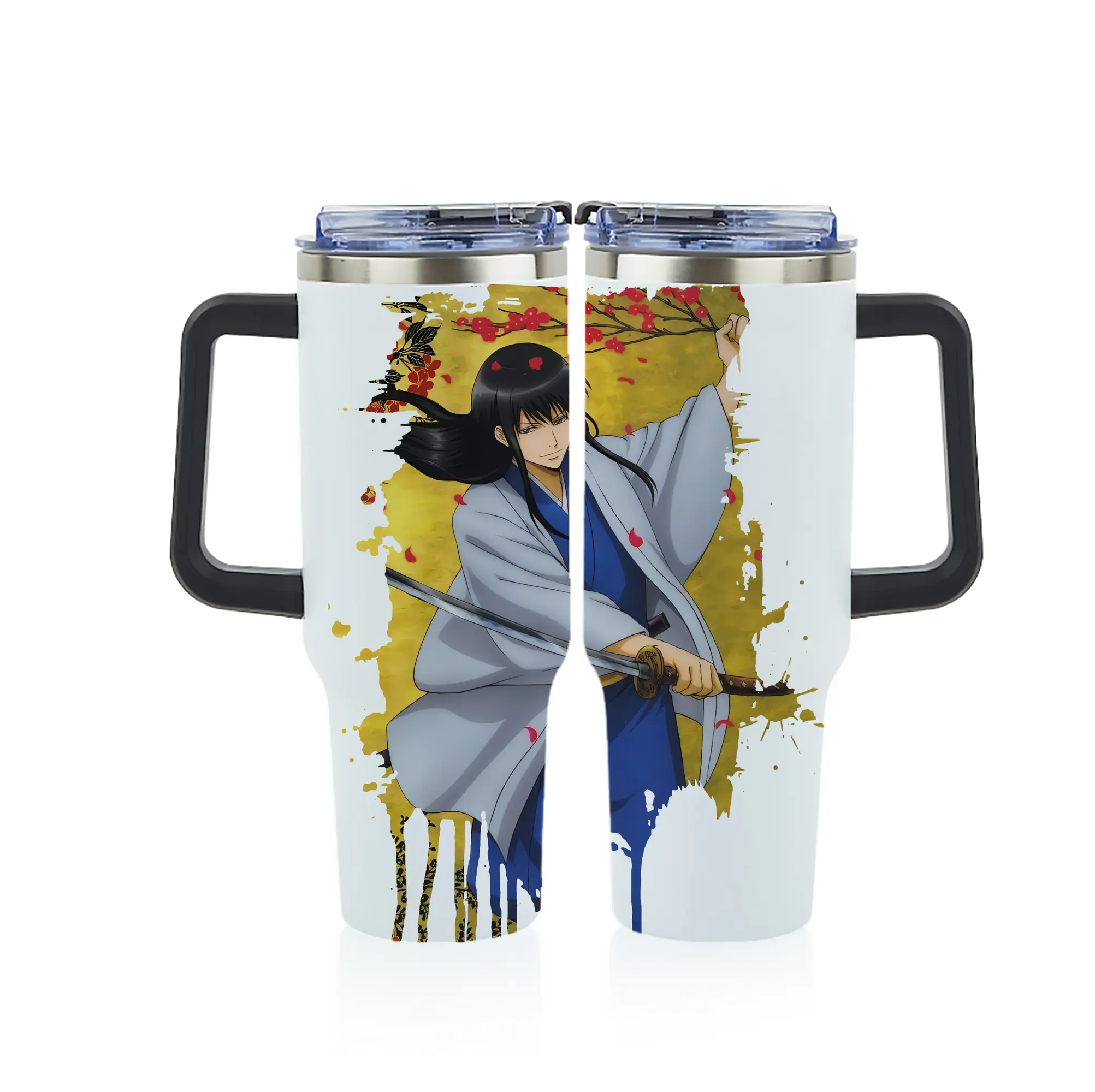 銀魂 グッズ 桂 小太郎 - 1200mL フルプリント車用タンブラー ・ 304ステンレス 内側 ・ 201ステンレス 外側 ・ 保温 保冷 ・ 通勤 ドライブ アウトドア用