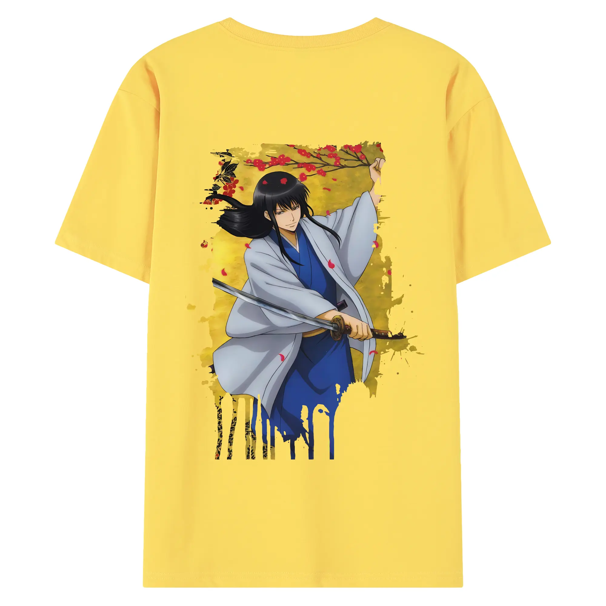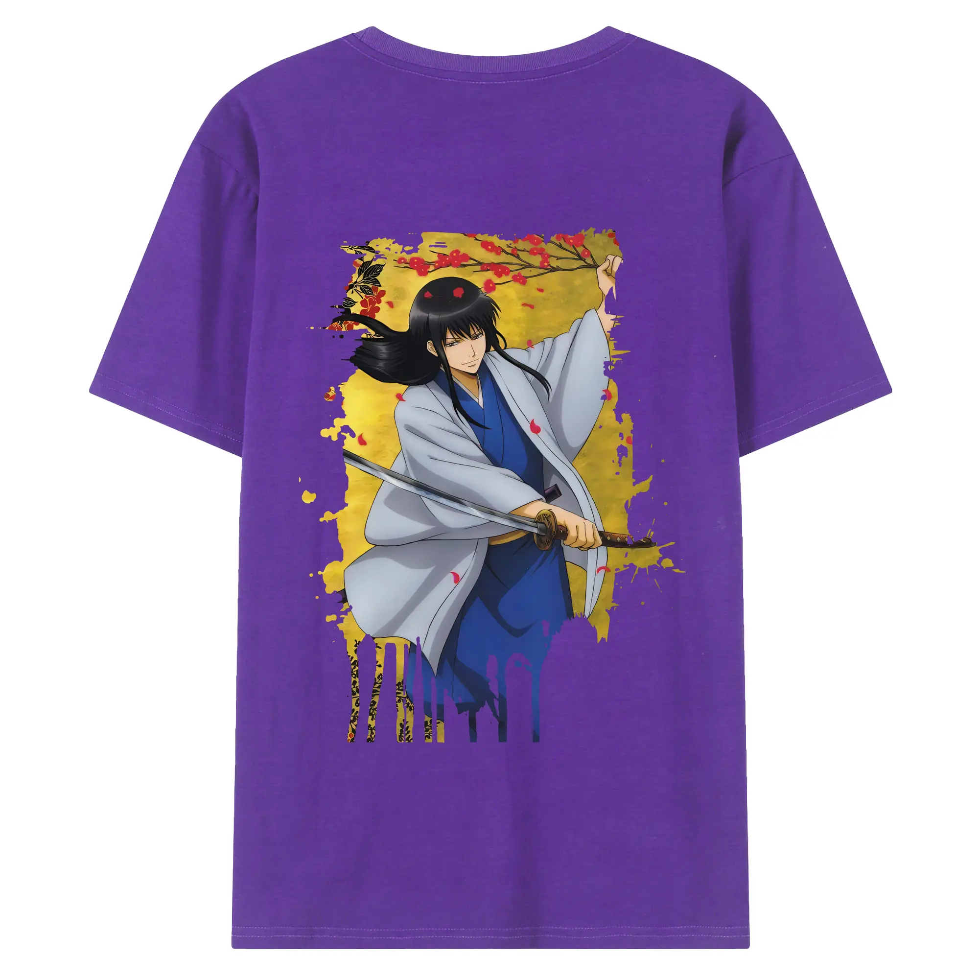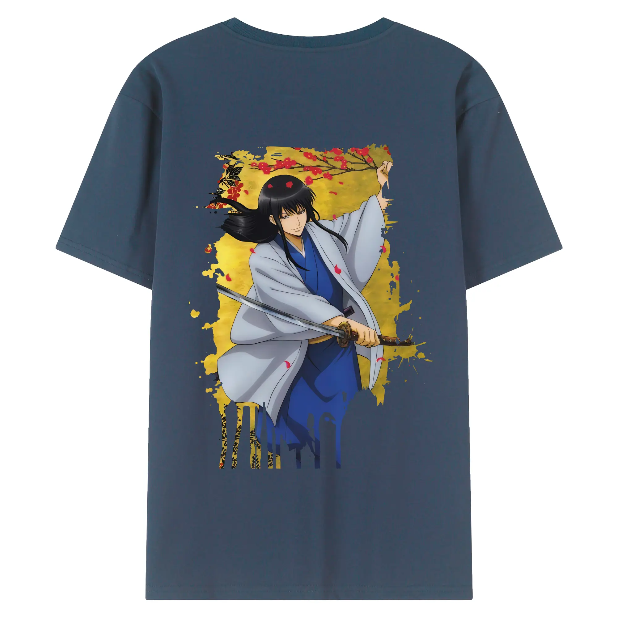 銀魂 グッズ 桂 小太郎 - 綿100% ヴィンテージ風 半袖Tシャツ ・ 背面プリント ・ 柔らか肌触り ・ 通気性 快適 ・ スポーツ カジュアル 外出用