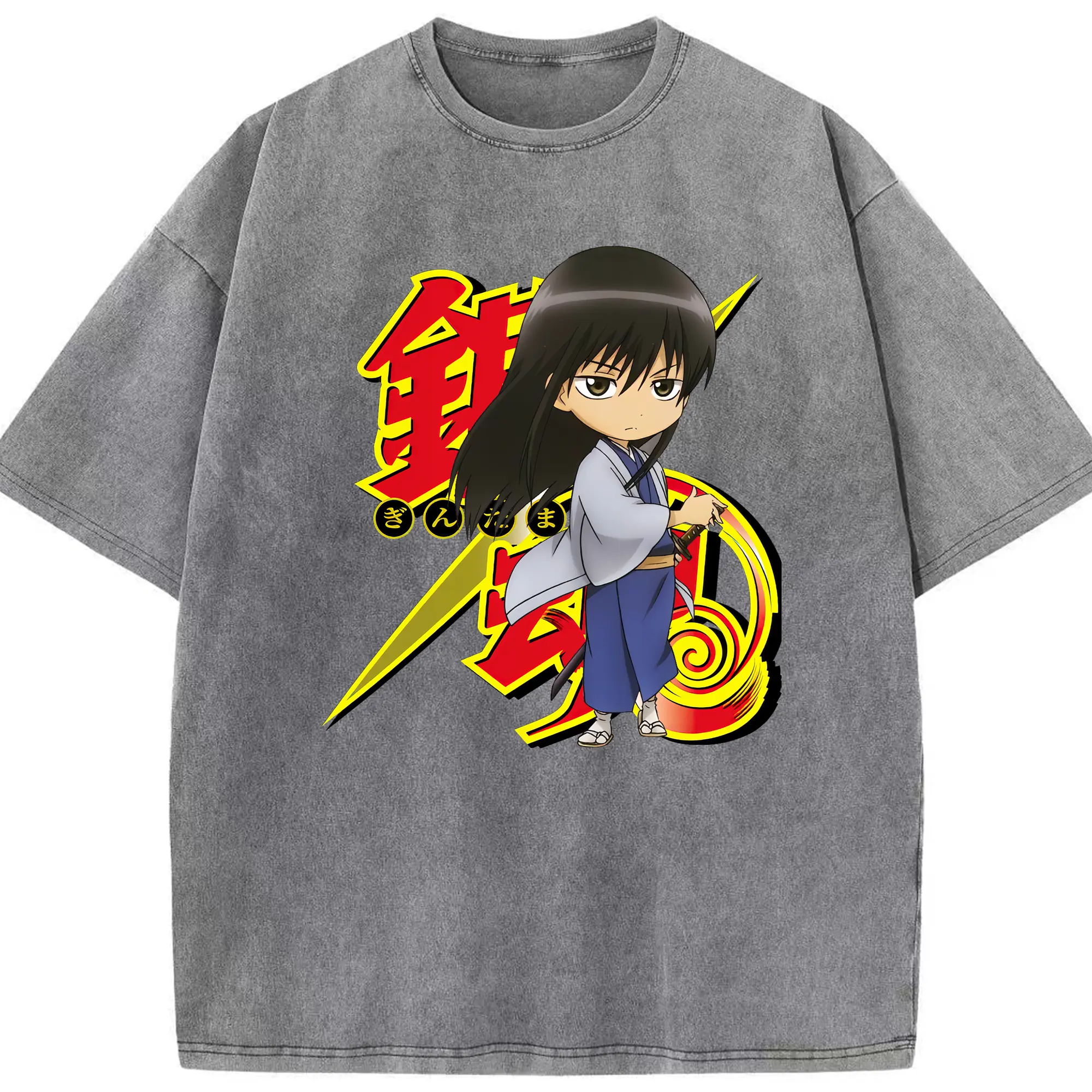 銀魂 グッズ 桂 小太郎 - 綿100% ヴィンテージ風 半袖Tシャツ ・ 背面プリント ・ 柔らか肌触り ・ 通気性 快適 ・ スポーツ カジュアル 外出用