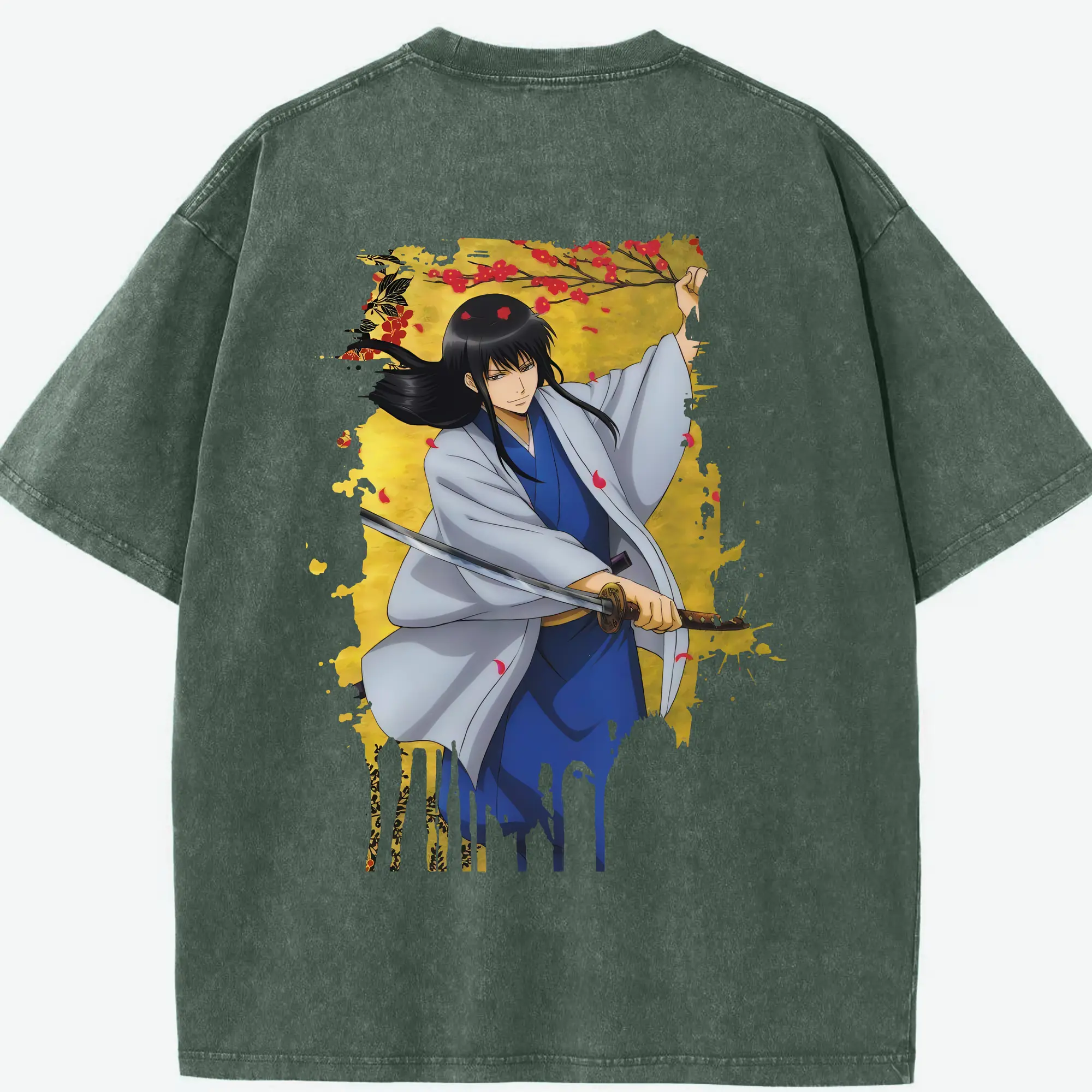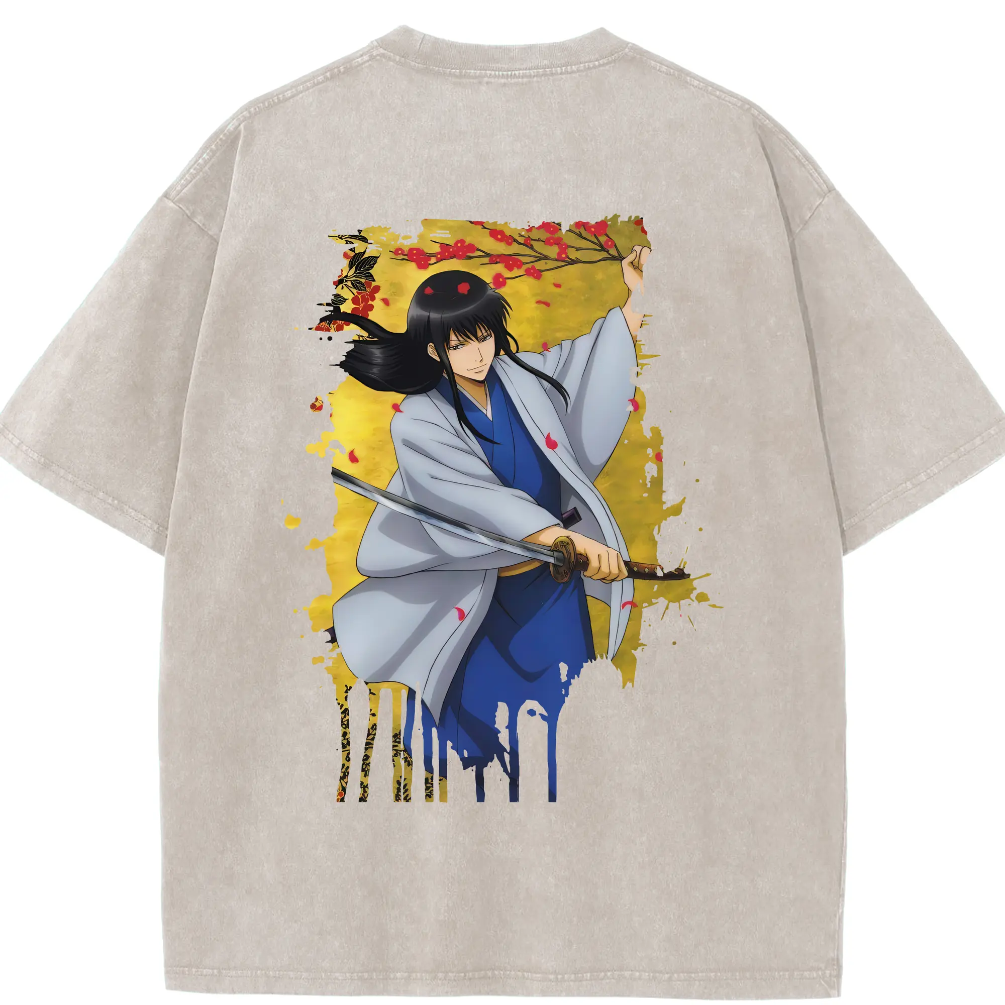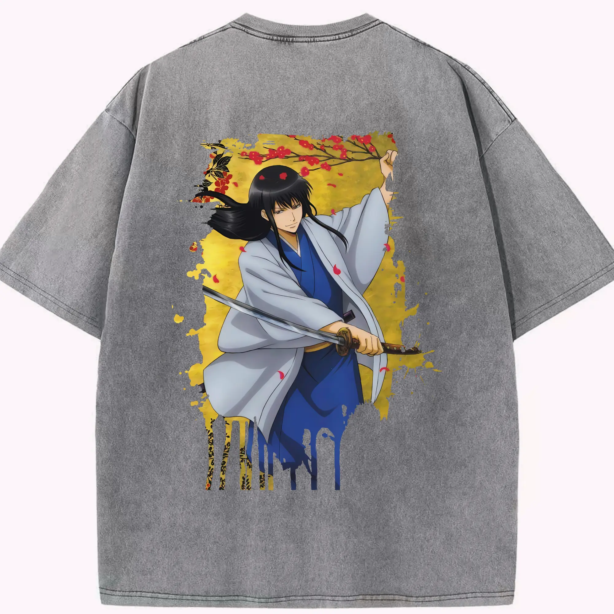 銀魂 グッズ 桂 小太郎 - 綿100% ヴィンテージ風 半袖Tシャツ ・ フロントプリント ・ 柔らか肌触り ・ 通気性 快適 ・ スポーツ カジュアル 外出用