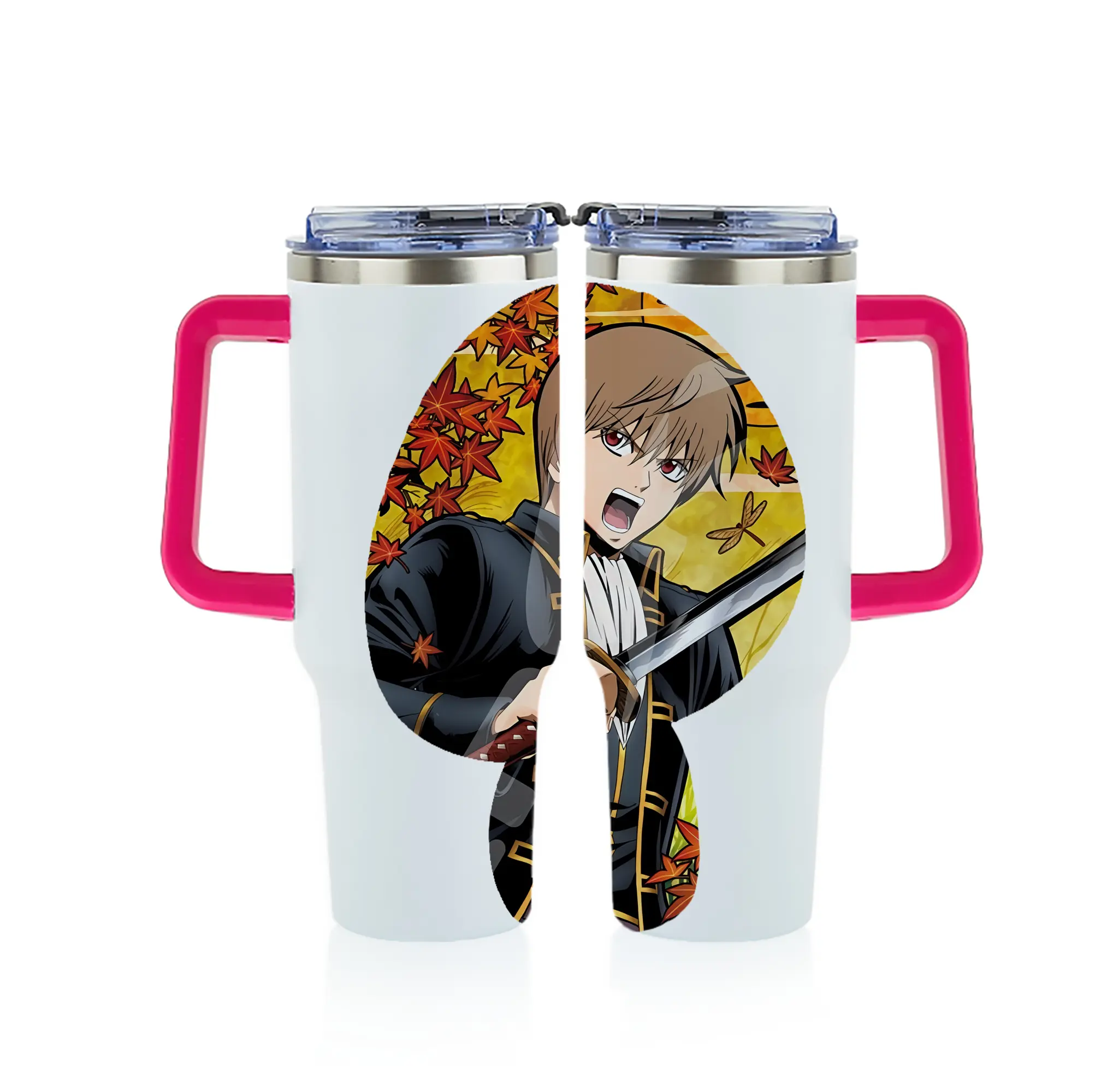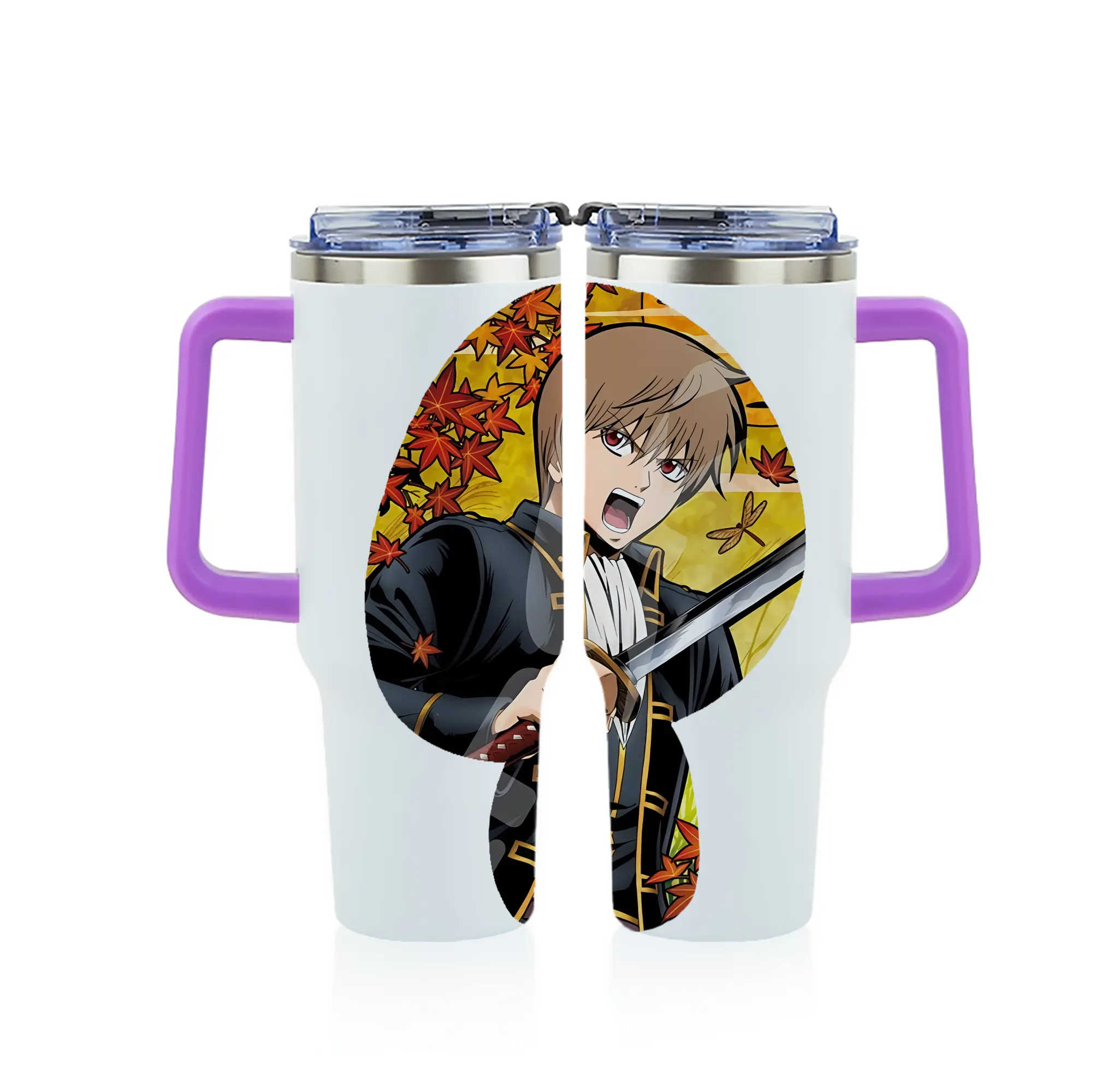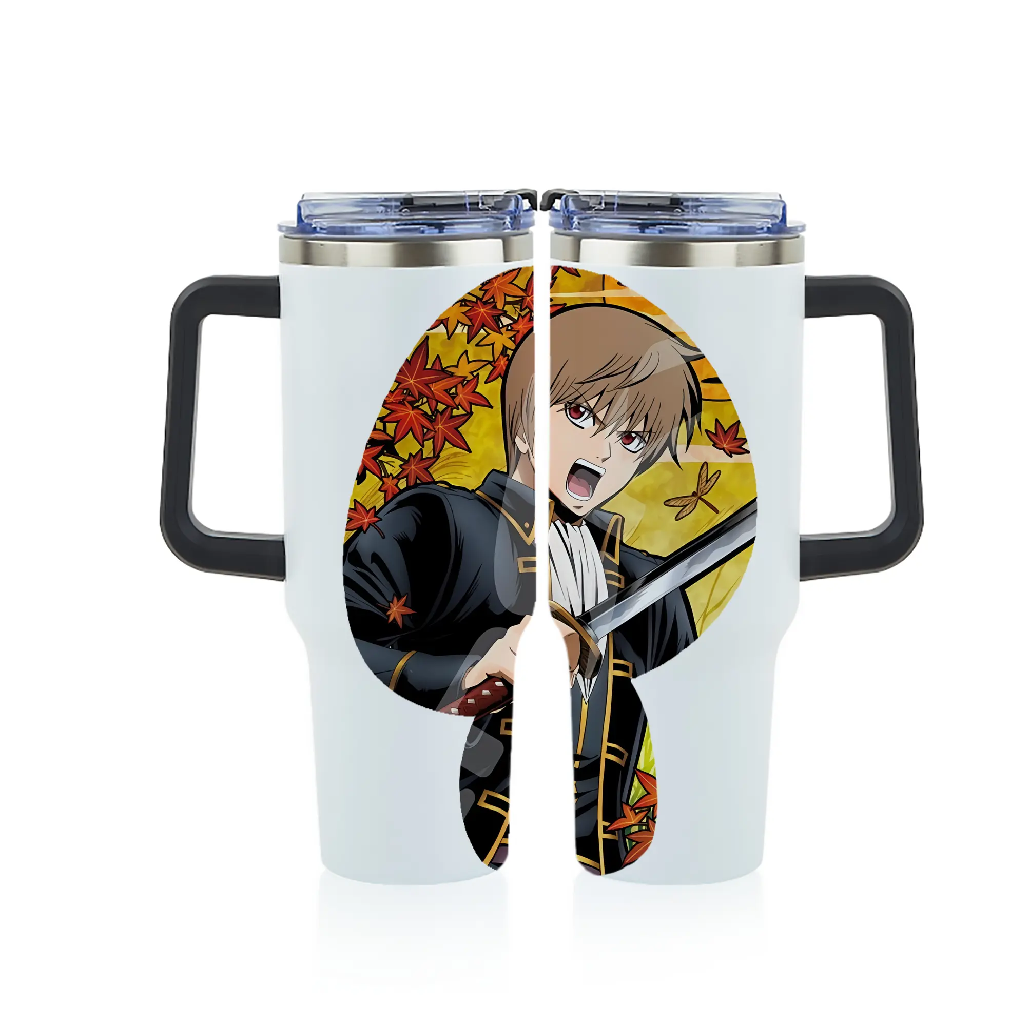 銀魂 グッズ 沖田 総悟 - 1200mL フルプリント車用タンブラー ・ 304ステンレス 内側 ・ 201ステンレス 外側 ・ 保温 保冷 ・ 通勤 ドライブ アウトドア用