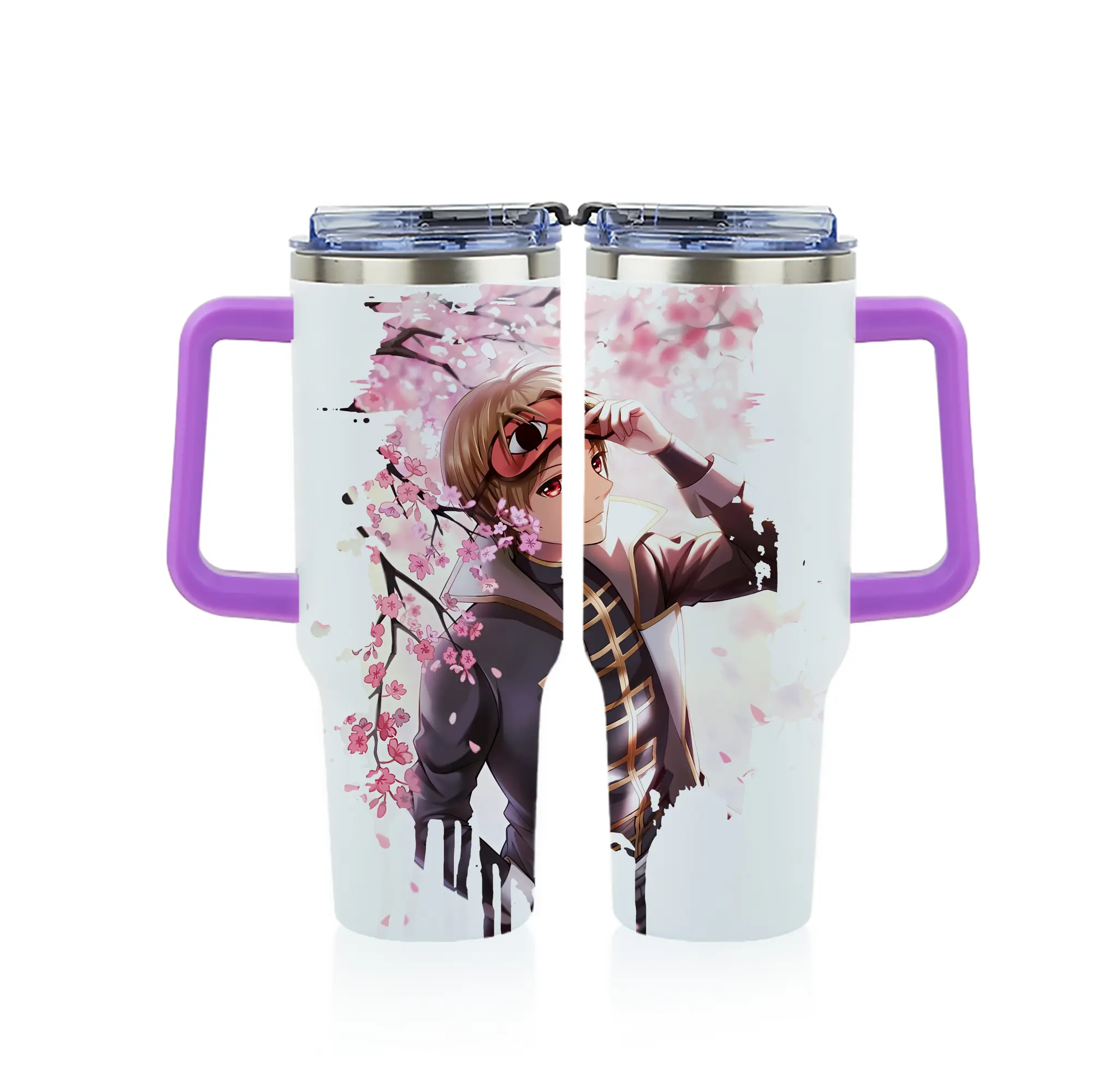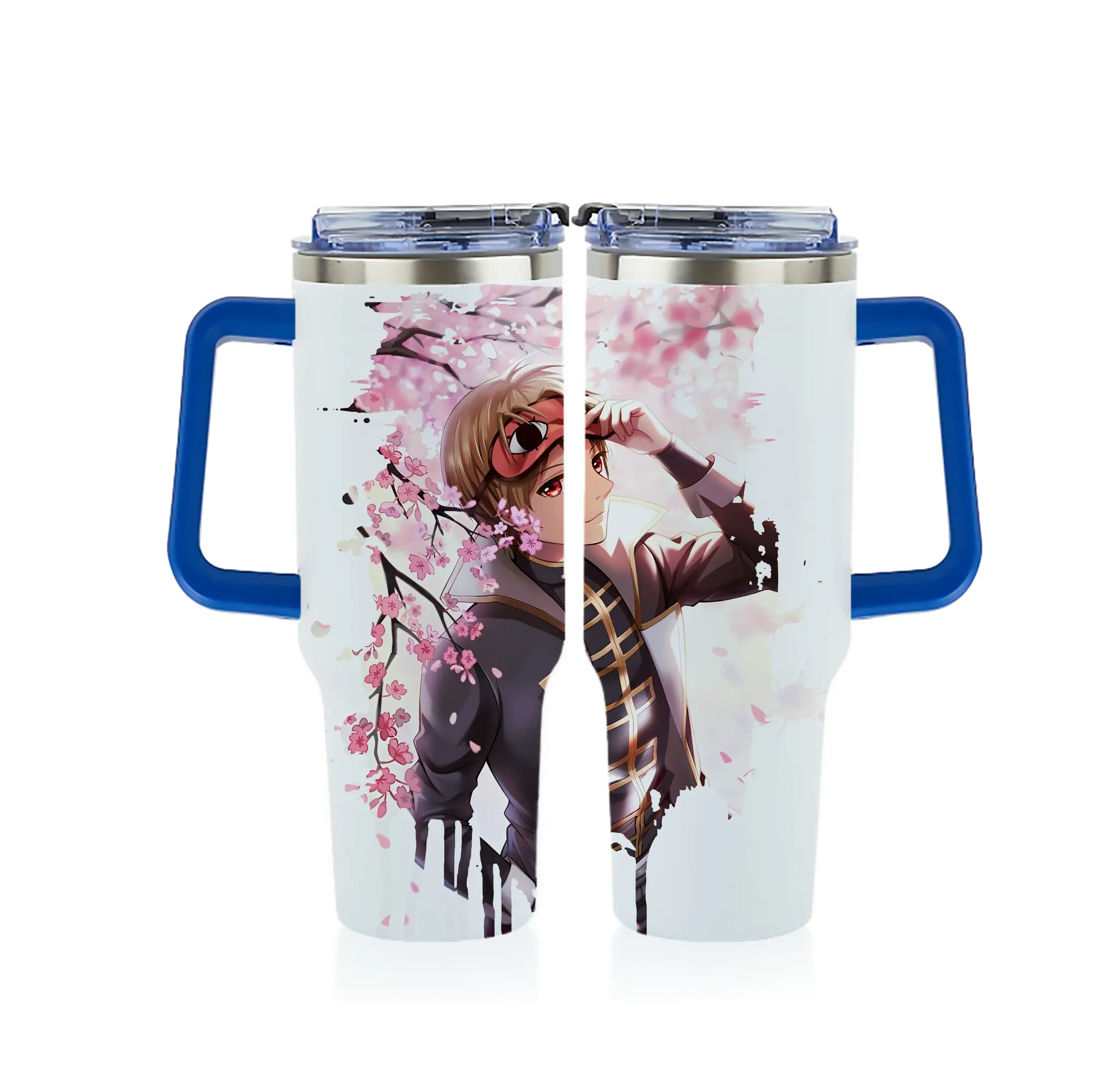 銀魂 グッズ 沖田 総悟 - 1200mL フルプリント車用タンブラー ・ 304ステンレス 内側 ・ 201ステンレス 外側 ・ 保温 保冷 ・ 通勤 ドライブ アウトドア用