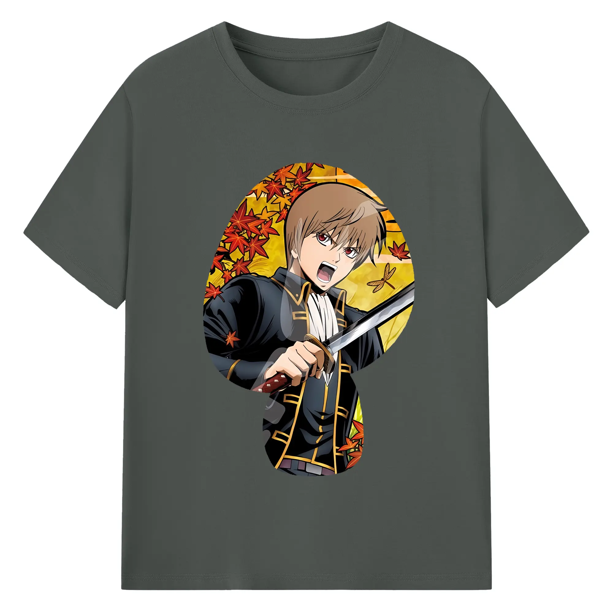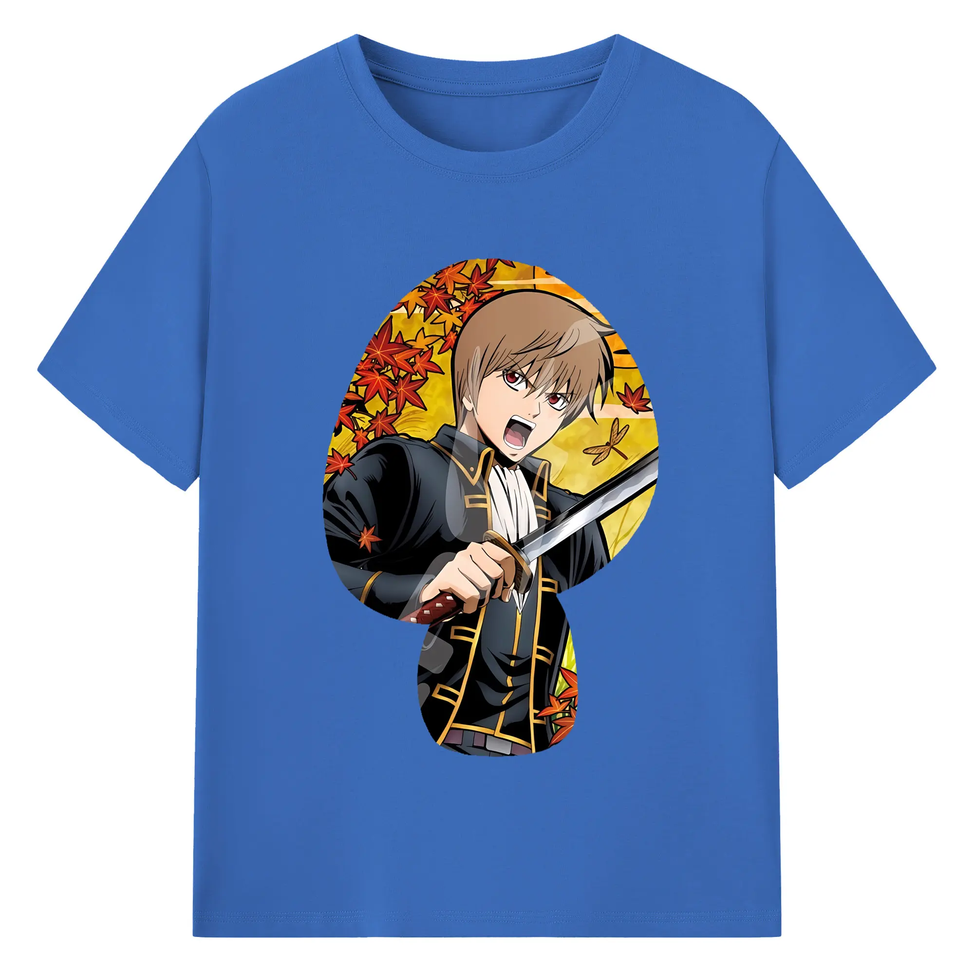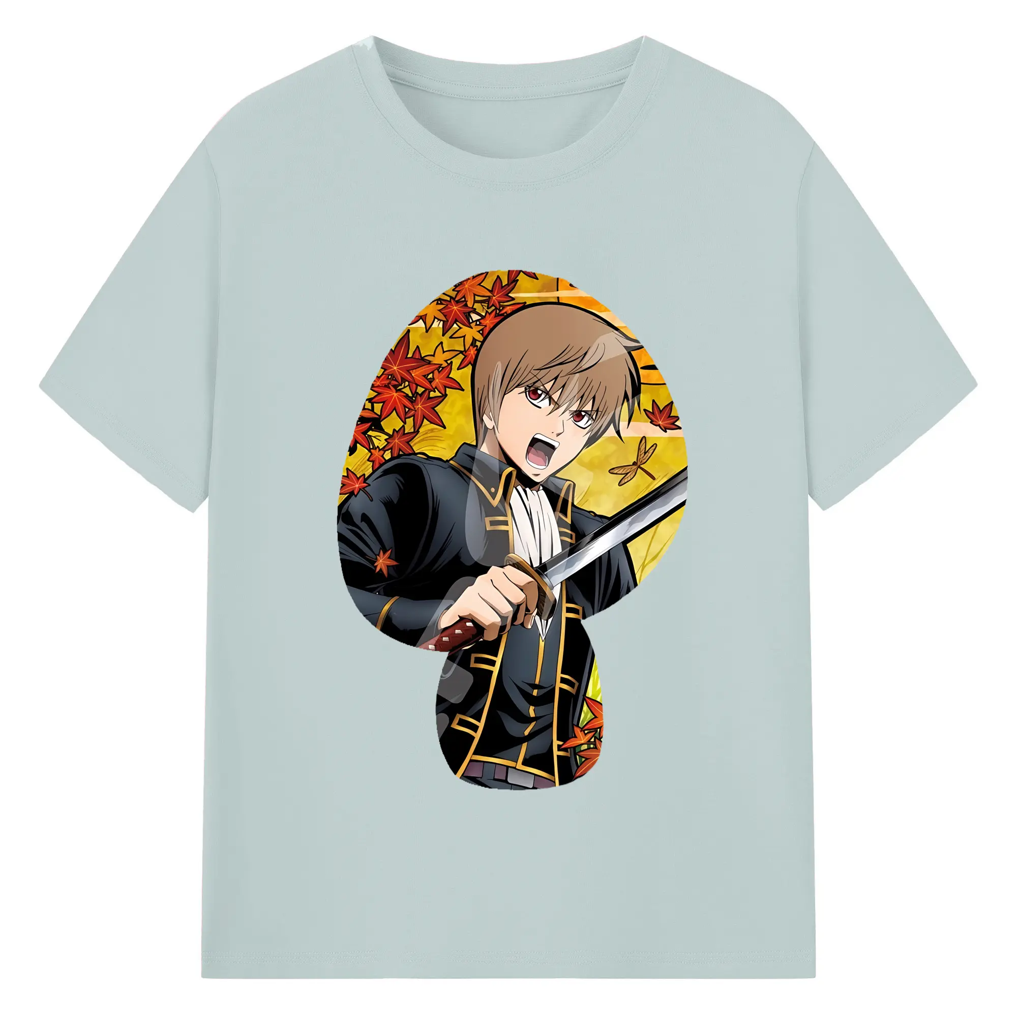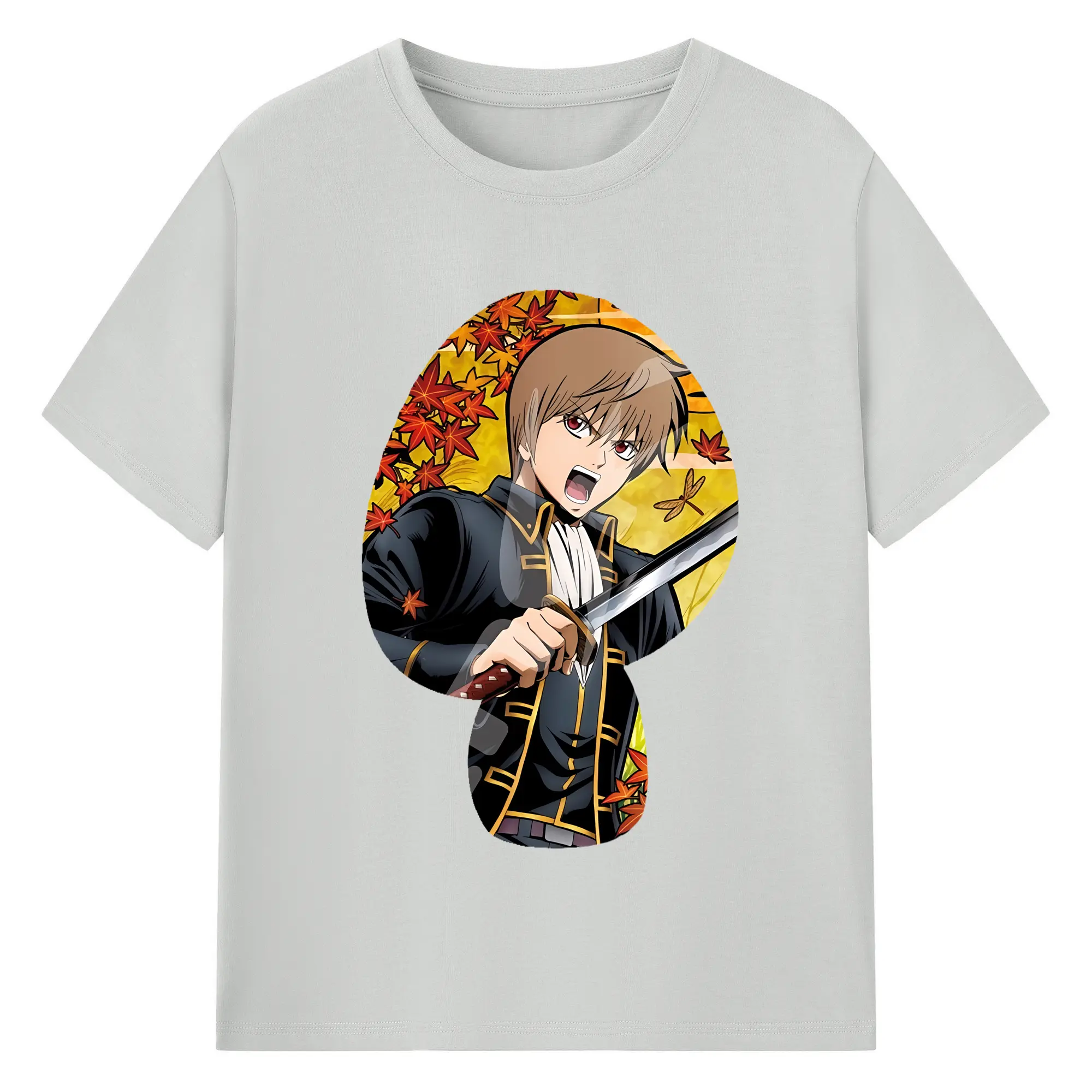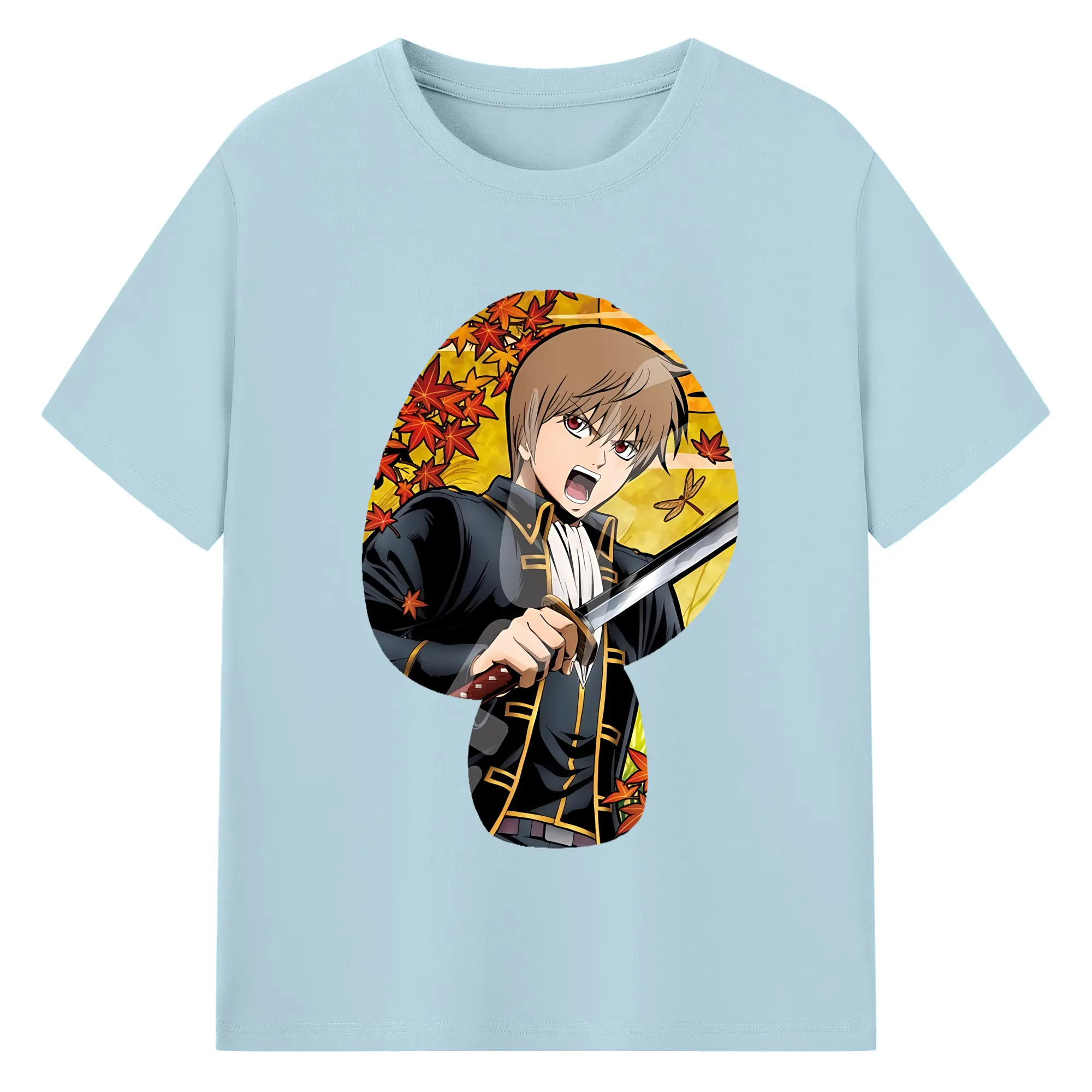 銀魂 グッズ 沖田 総悟 - 綿100% 半袖Tシャツ ・ バックプリント ・ 快適 通気性 ・ 日常使い 散歩 スポーツ用