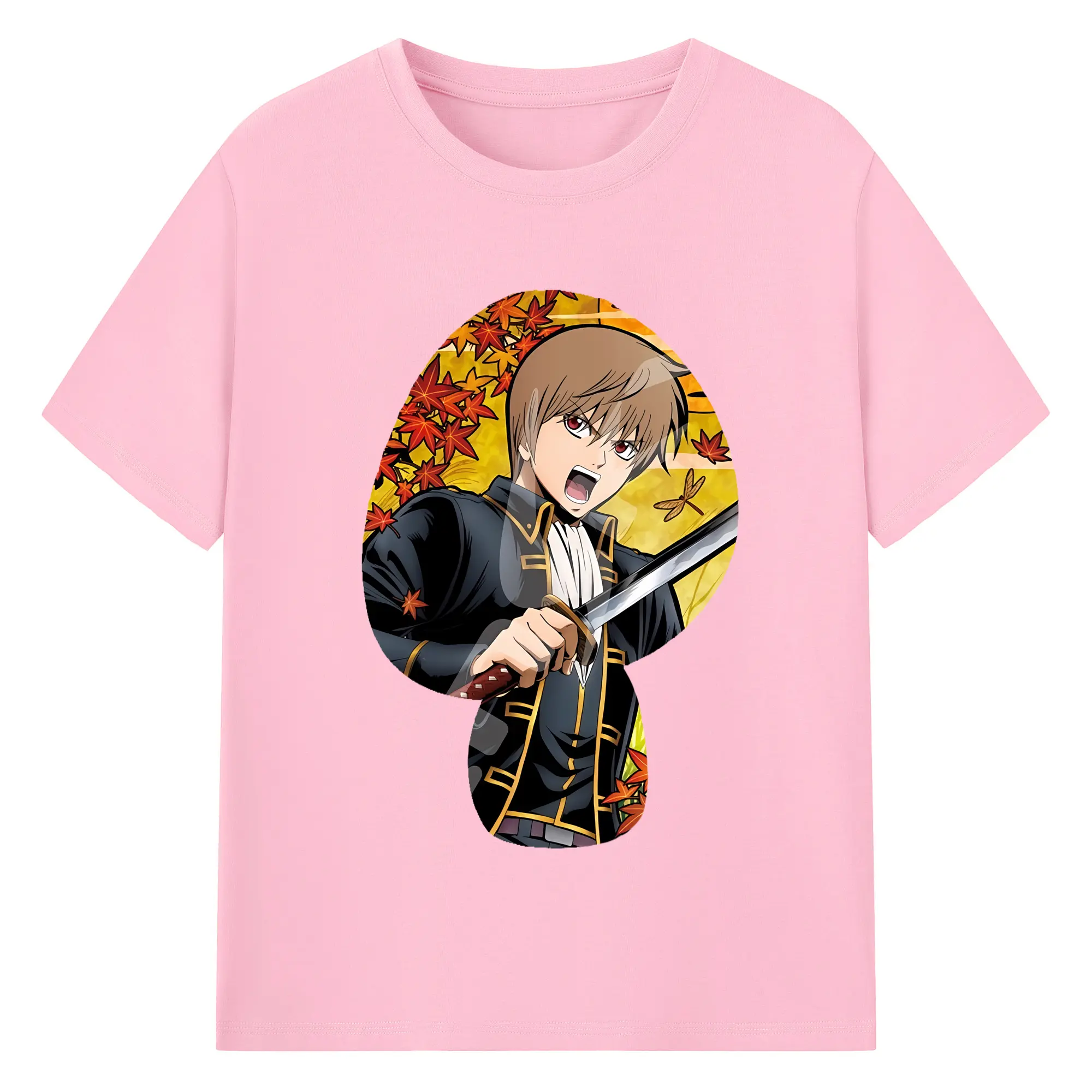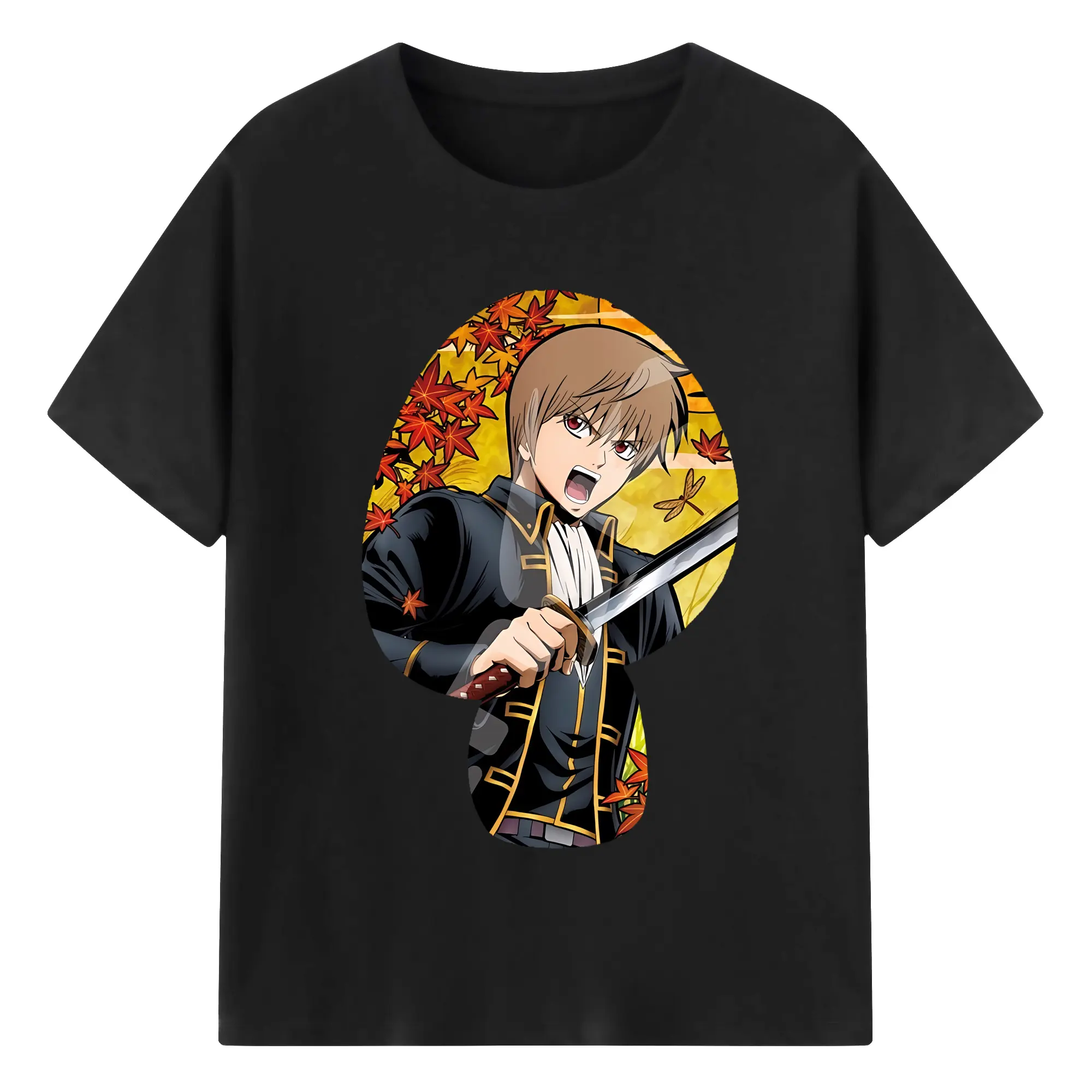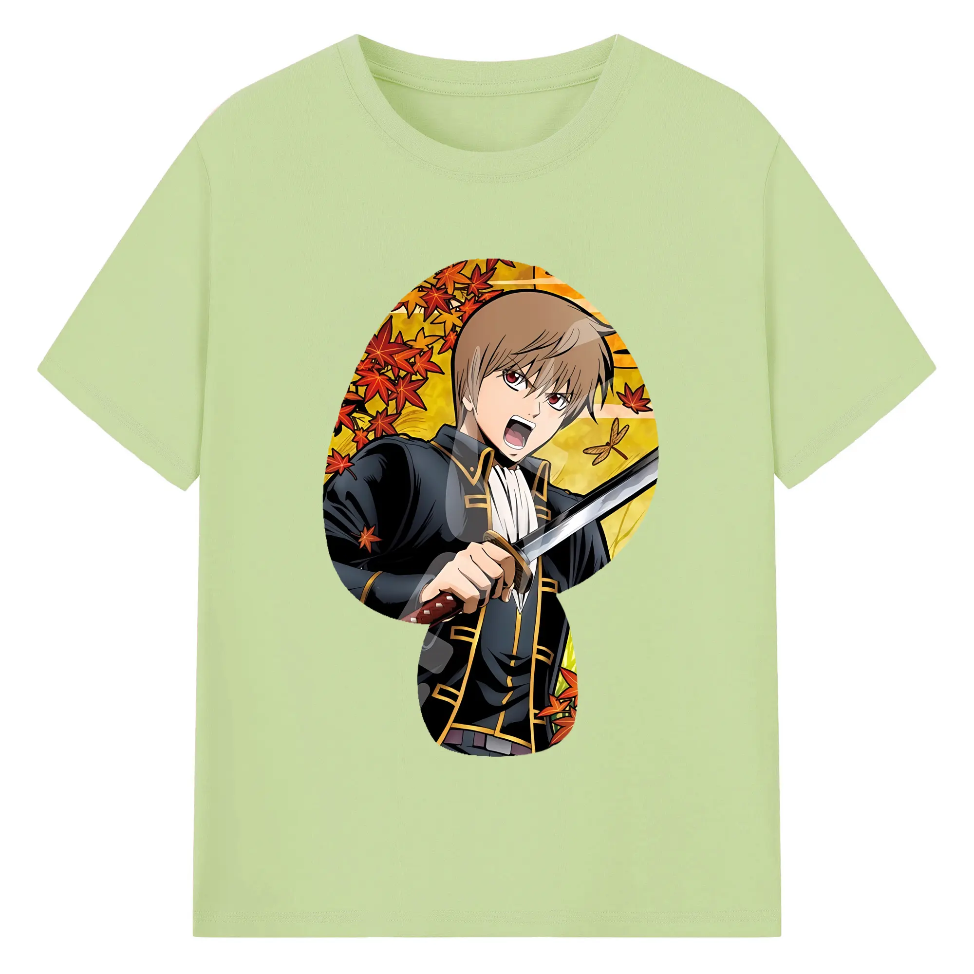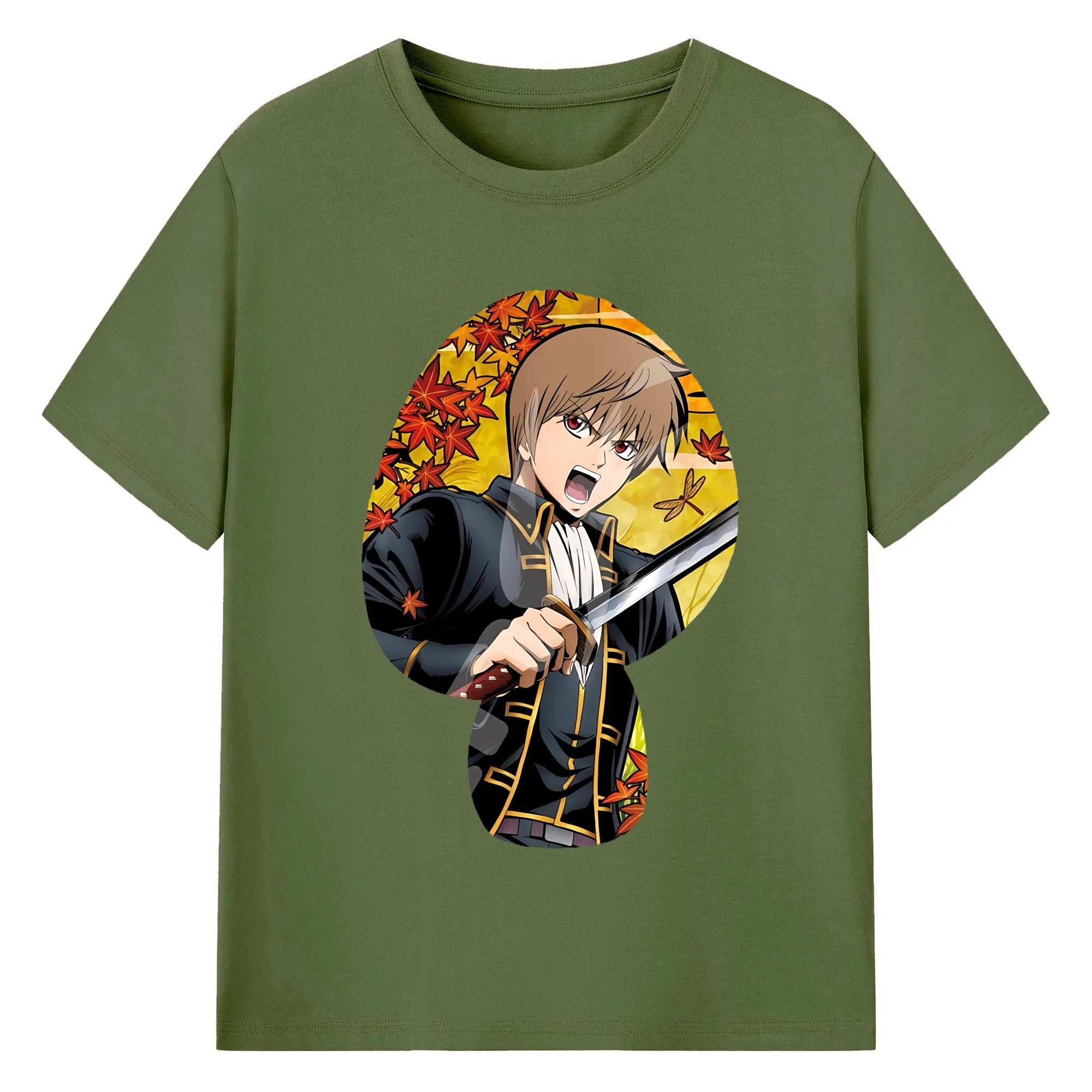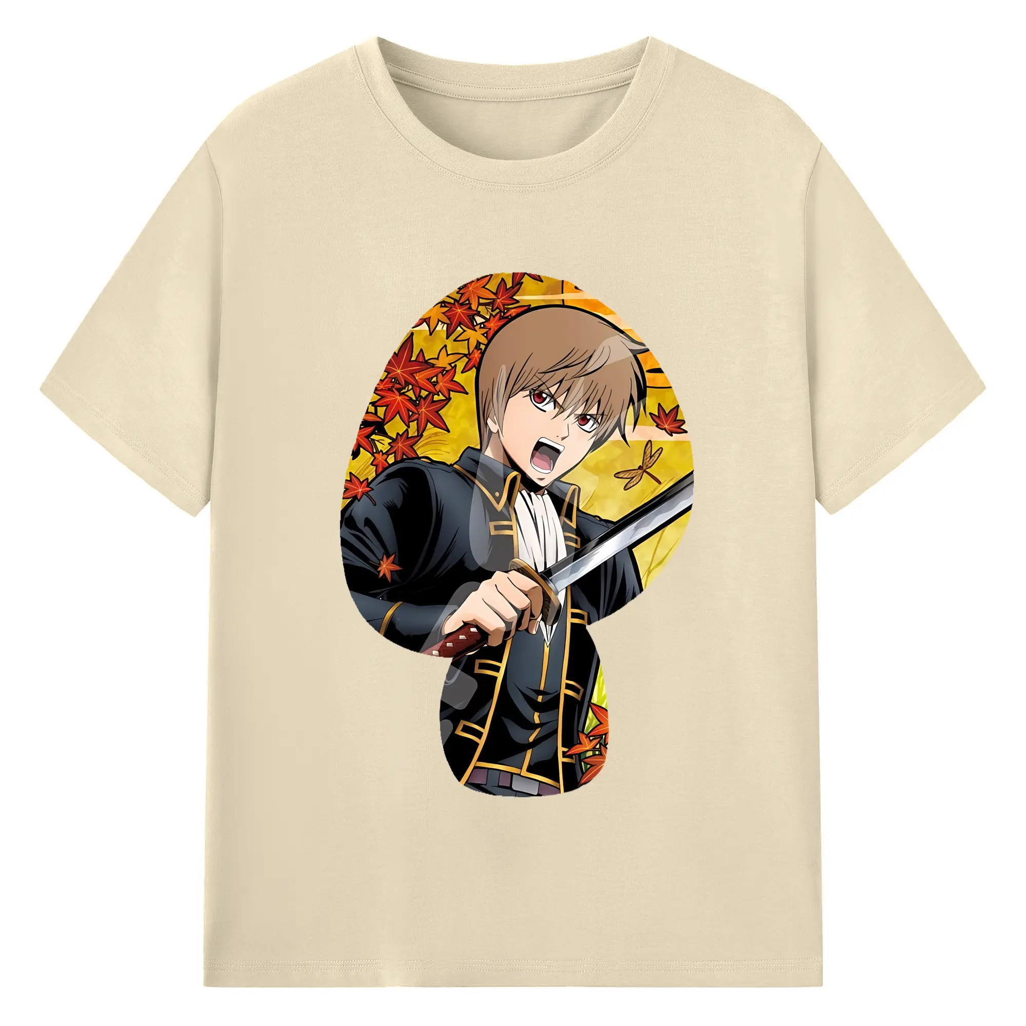 銀魂 グッズ 沖田 総悟 - 綿100% 半袖Tシャツ ・ バックプリント ・ 快適 通気性 ・ 日常使い 散歩 スポーツ用