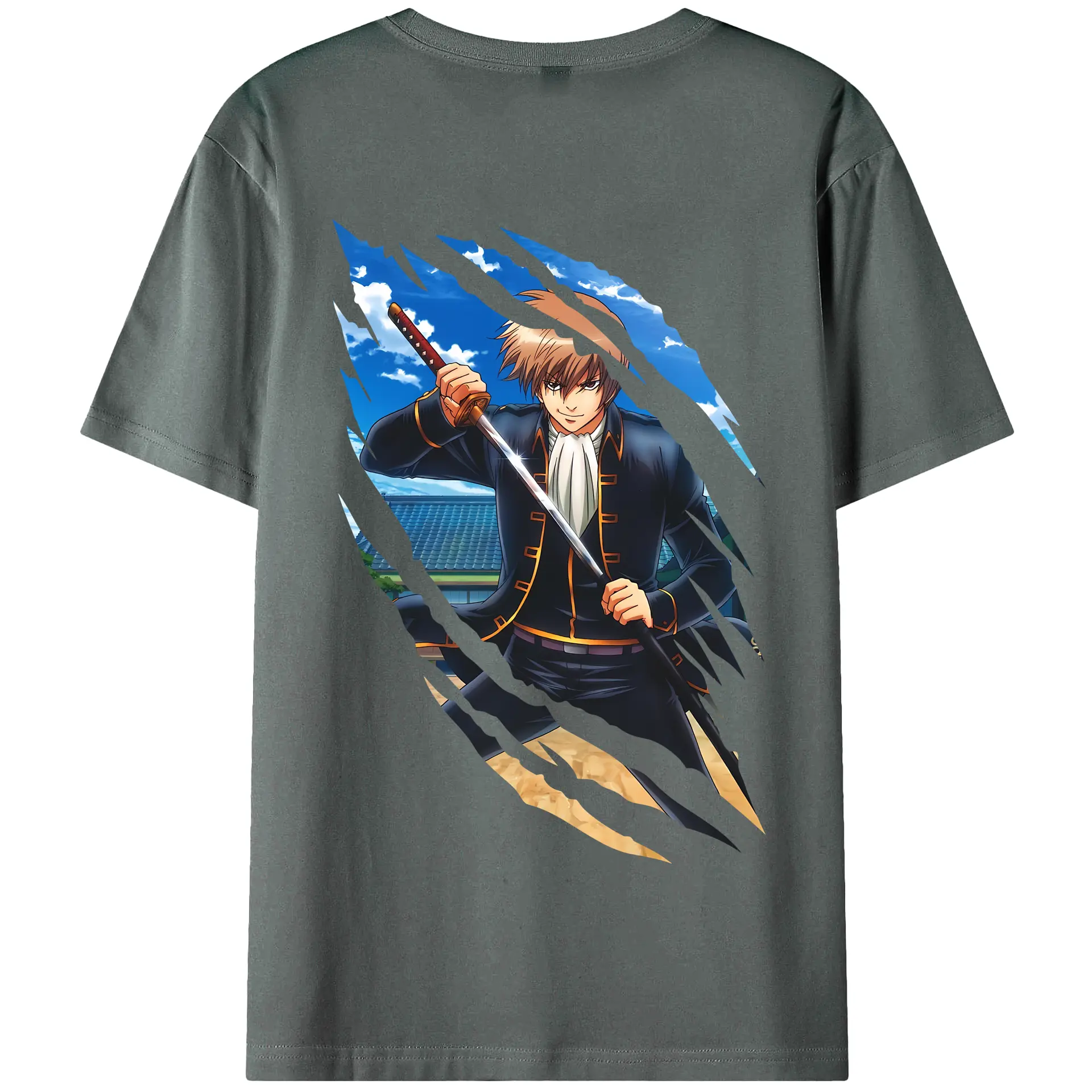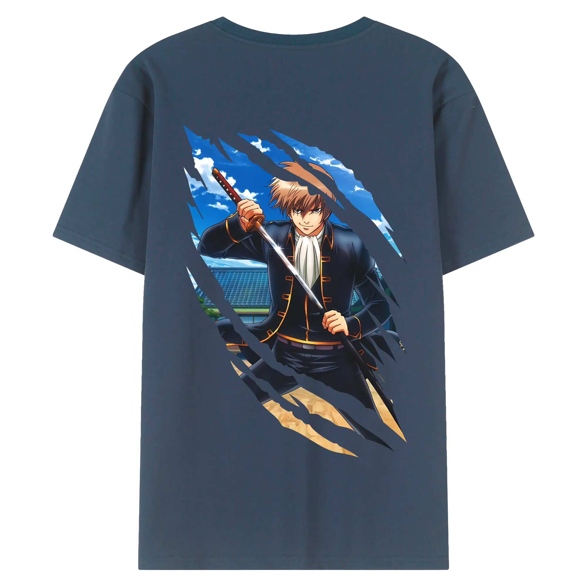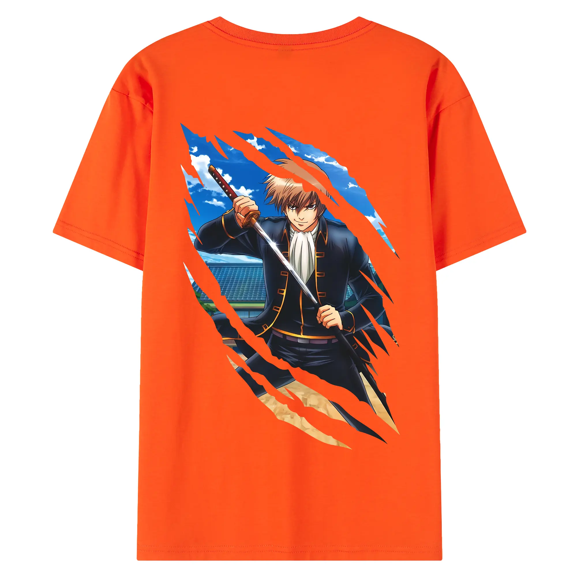 銀魂 グッズ 沖田 総悟 - 綿100% ヴィンテージ風 半袖Tシャツ ・ 背面プリント ・ 柔らか肌触り ・ 通気性 快適 ・ スポーツ カジュアル 外出用