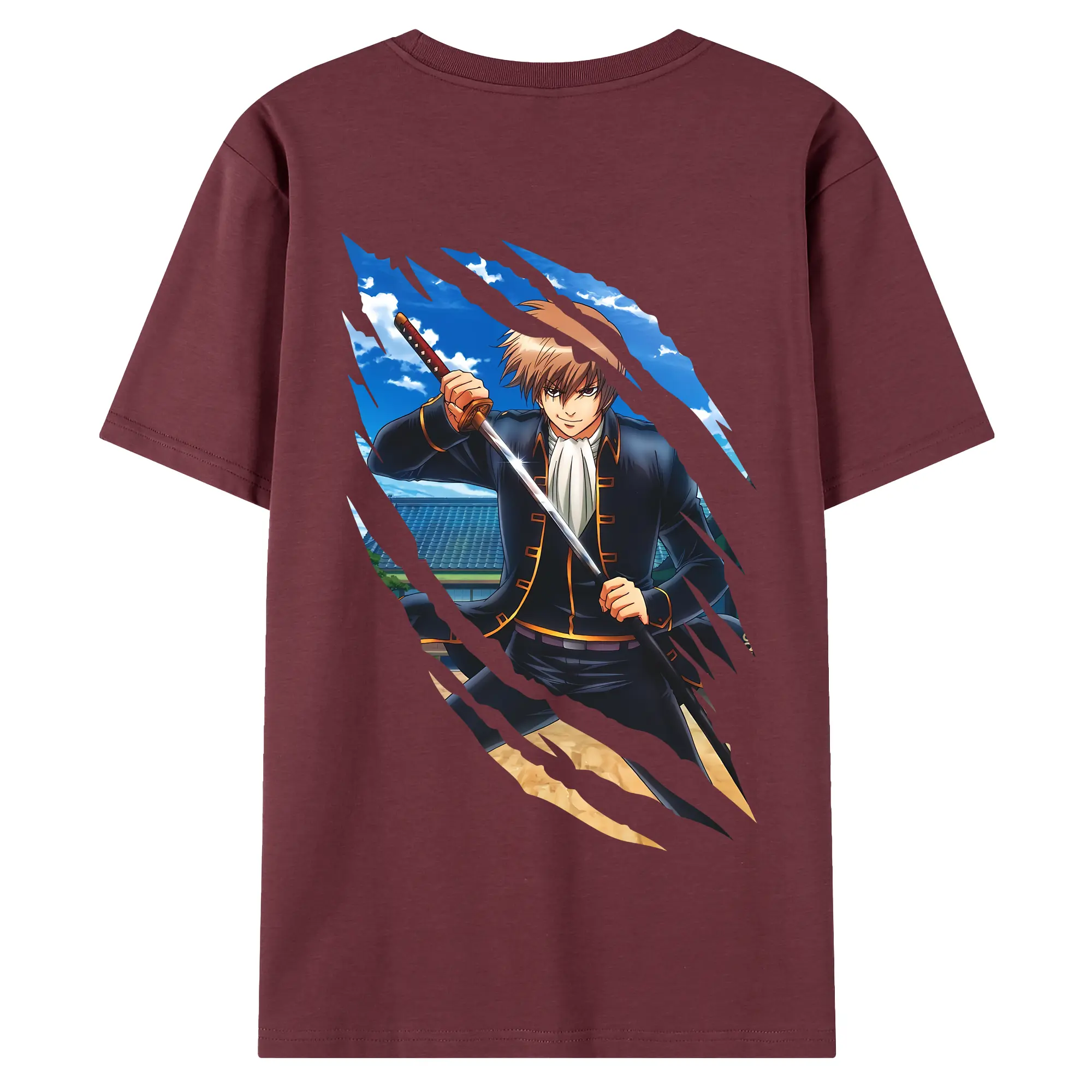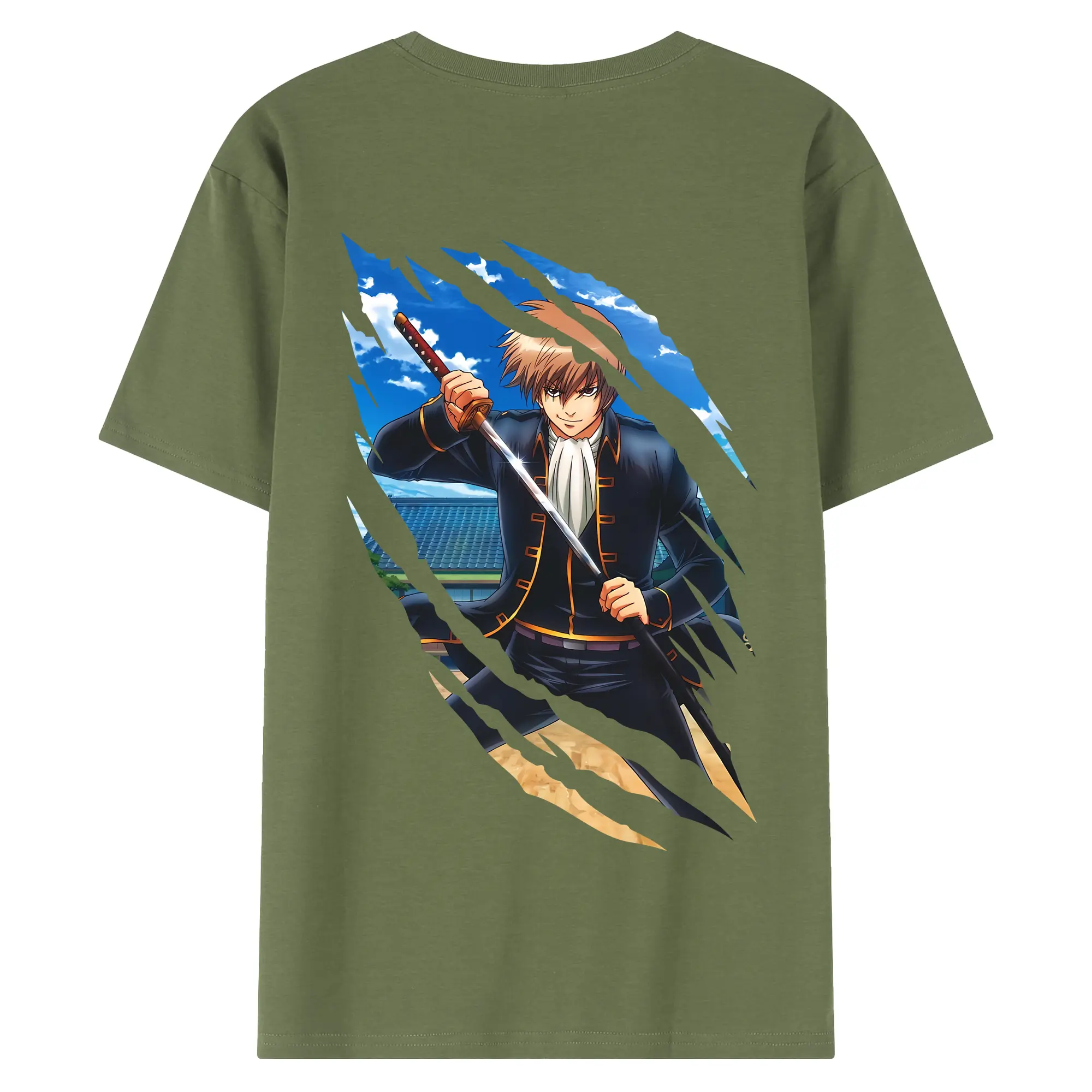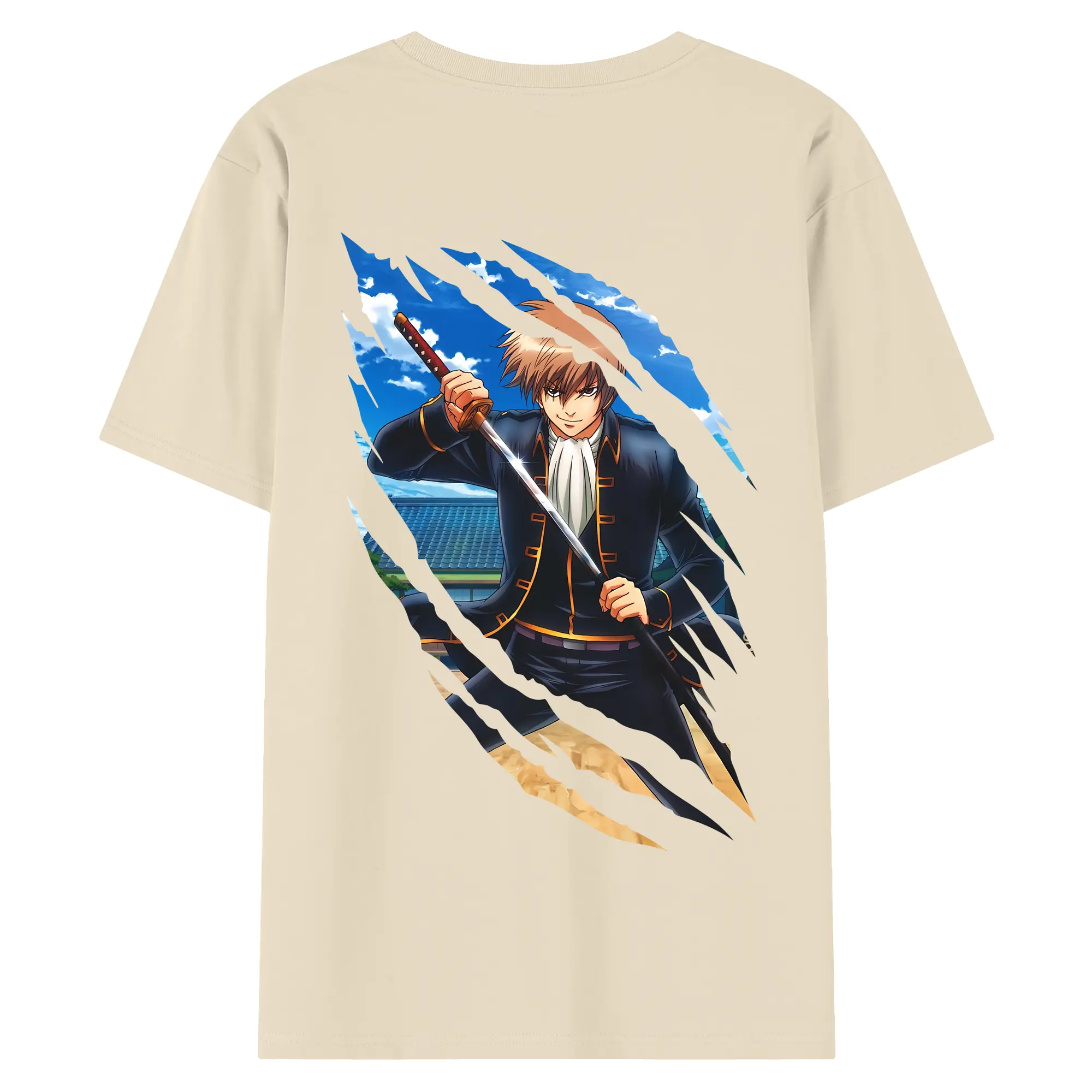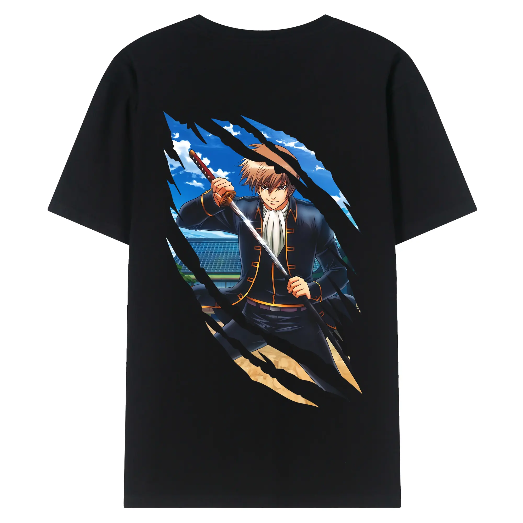 銀魂 グッズ 沖田 総悟 - 綿100% ヴィンテージ風 半袖Tシャツ ・ 背面プリント ・ 柔らか肌触り ・ 通気性 快適 ・ スポーツ カジュアル 外出用