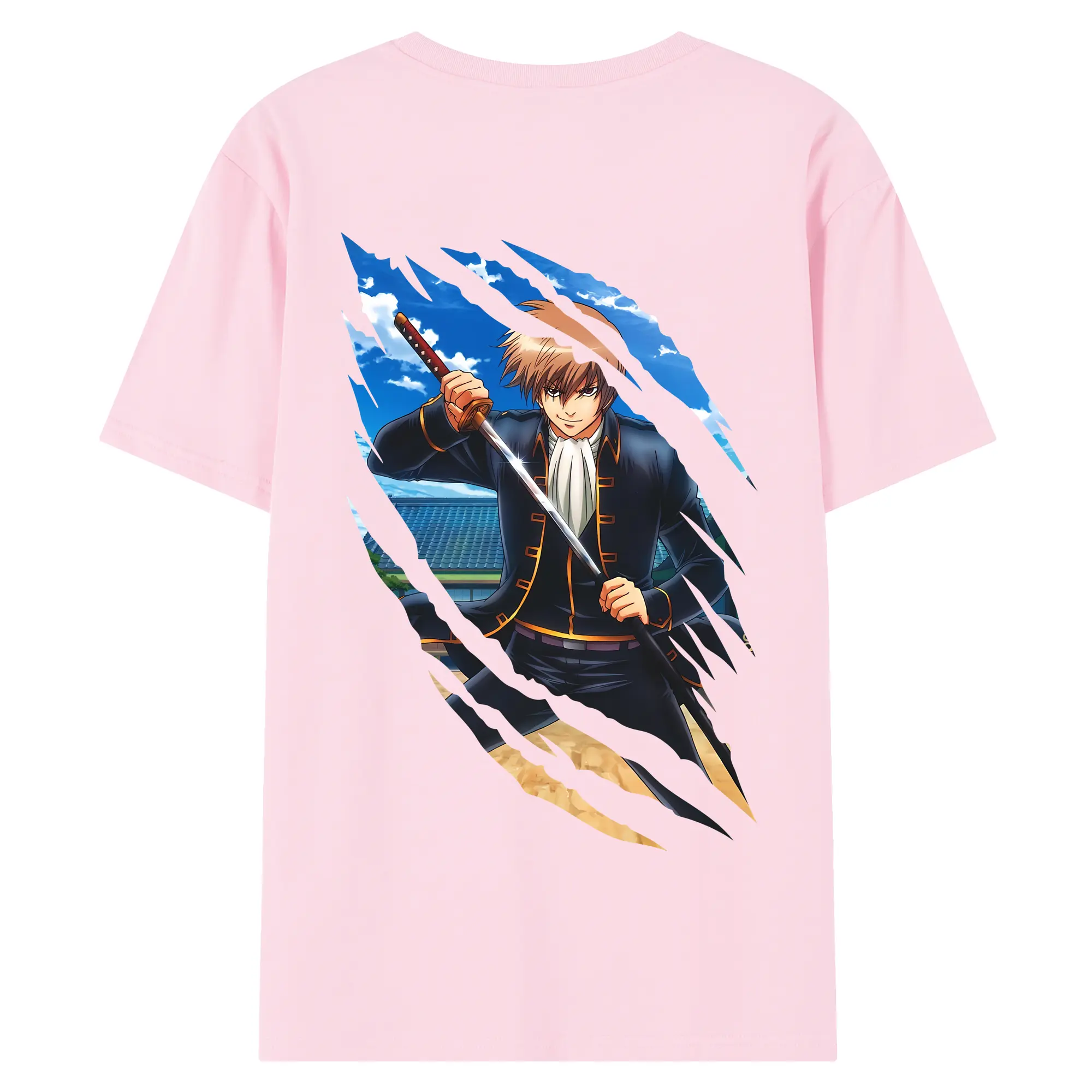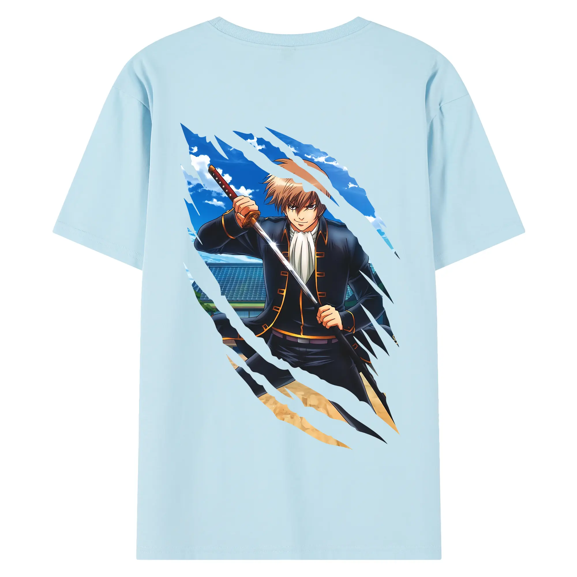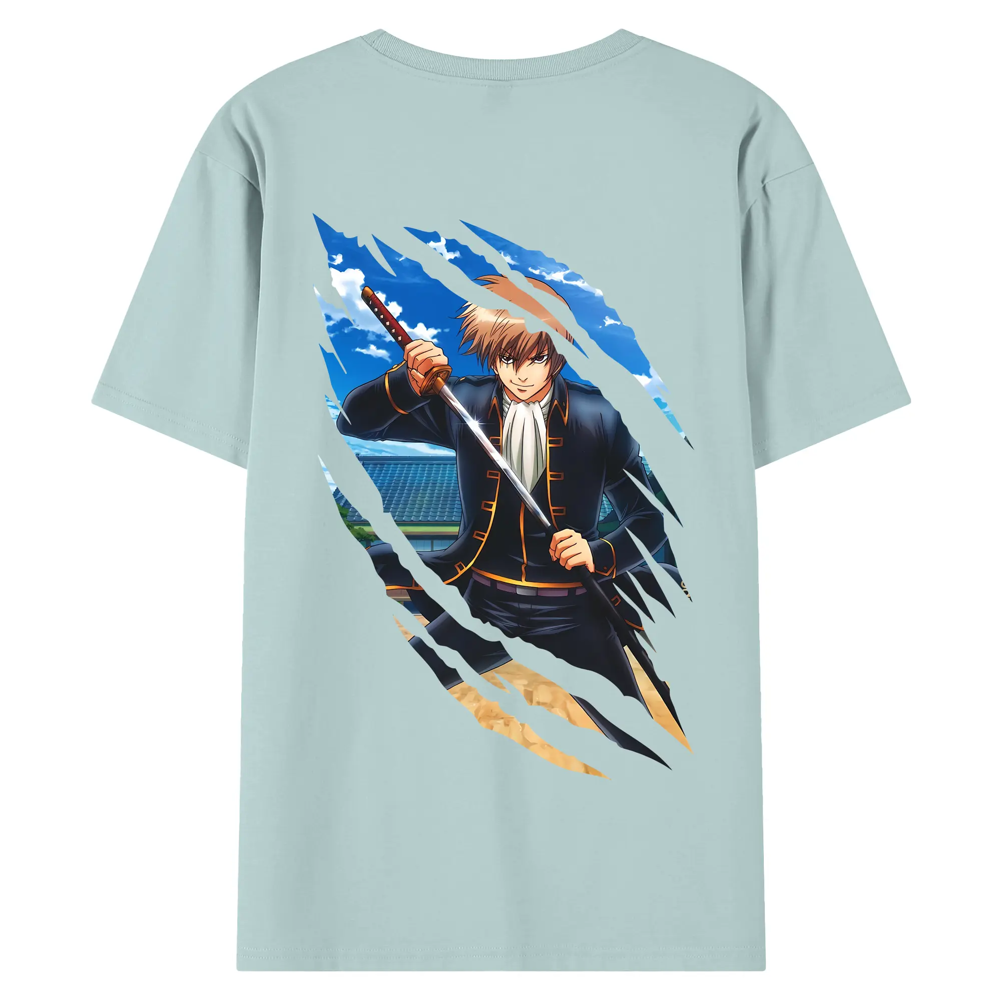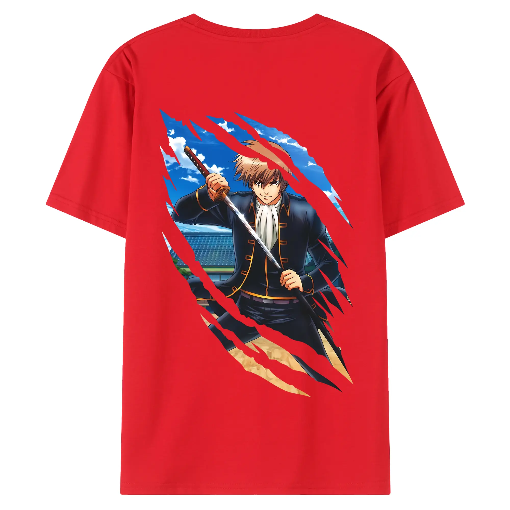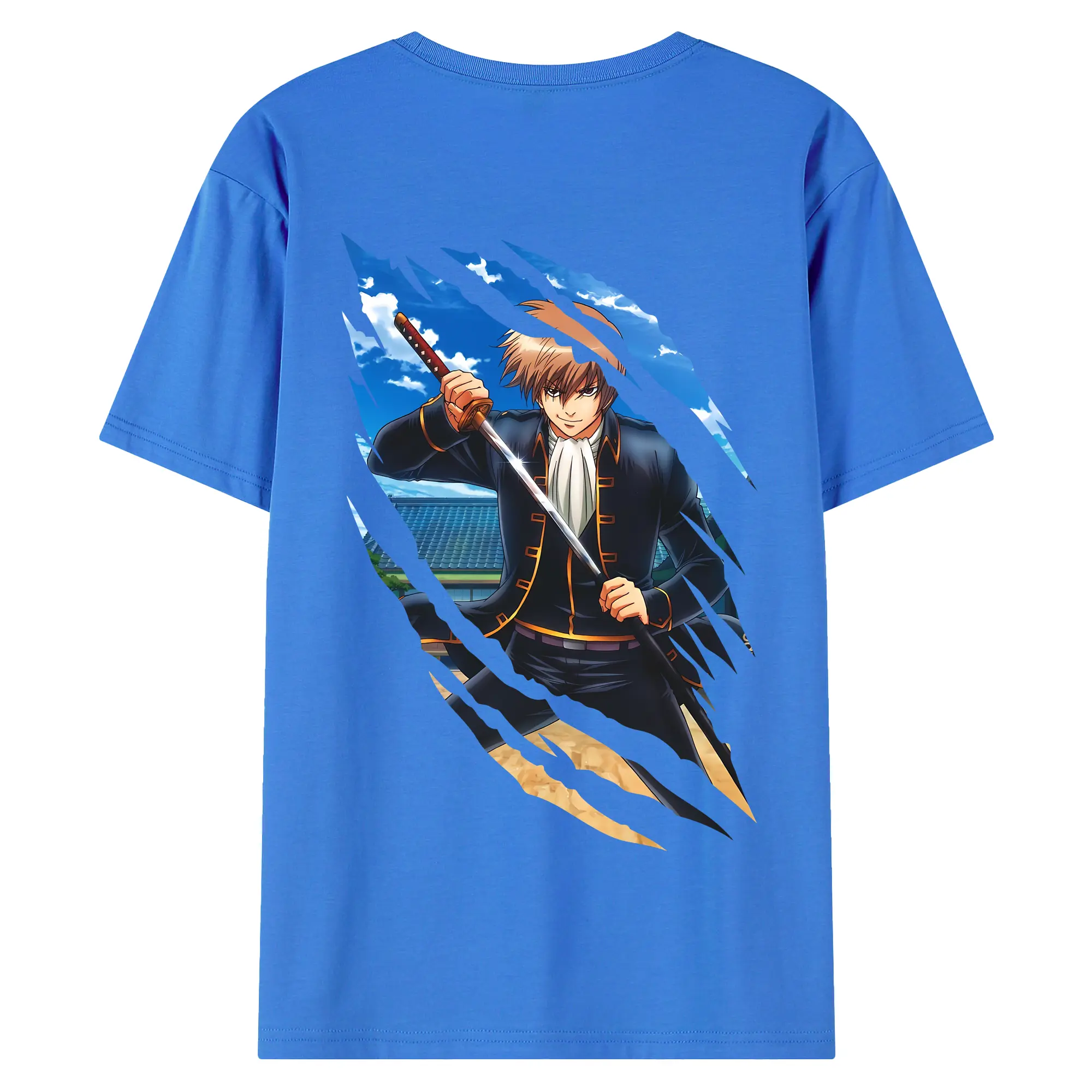 銀魂 グッズ 沖田 総悟 - 綿100% 半袖Tシャツ ・ フロントプリント ・ 快適 通気性 ・ 日常使い 散歩 スポーツ用