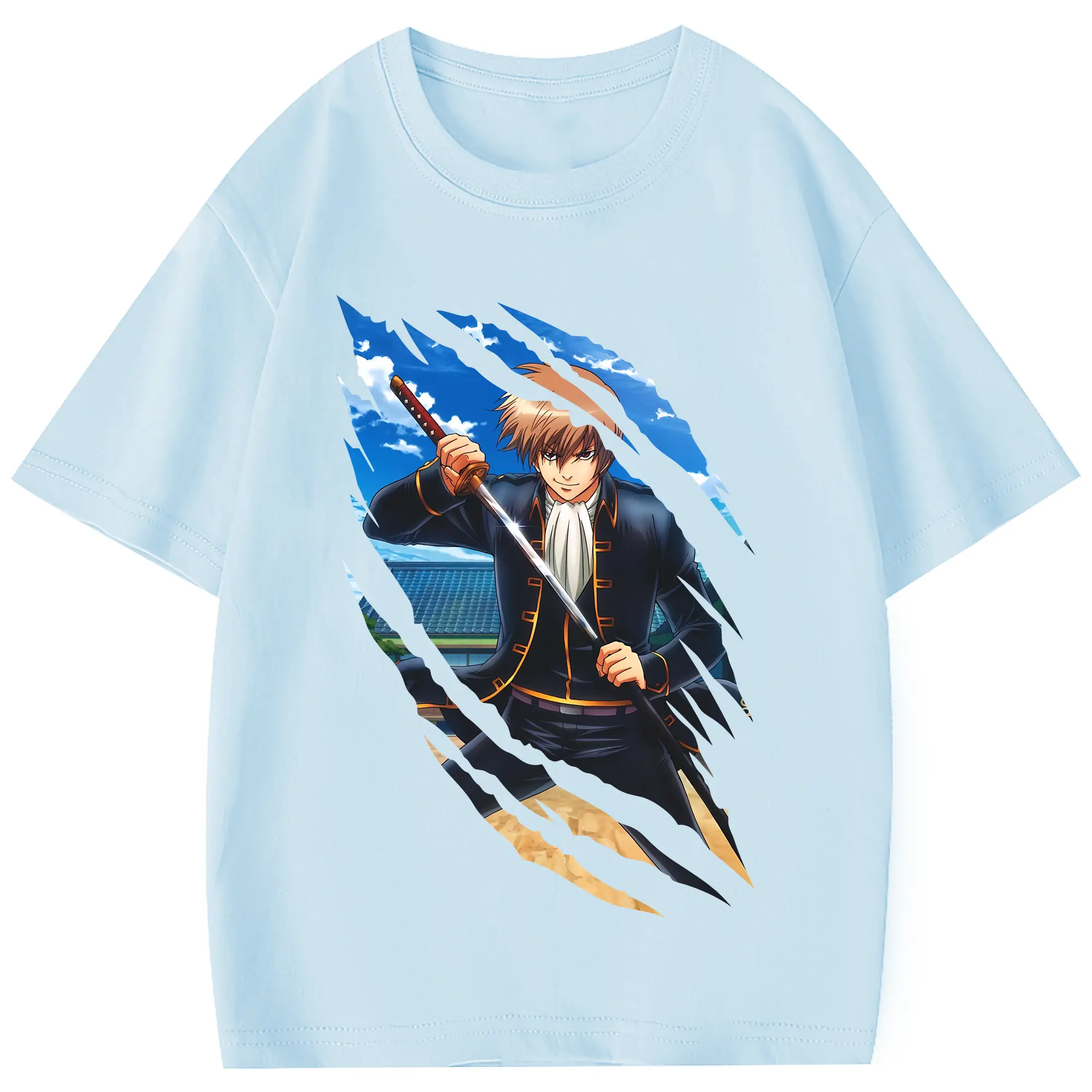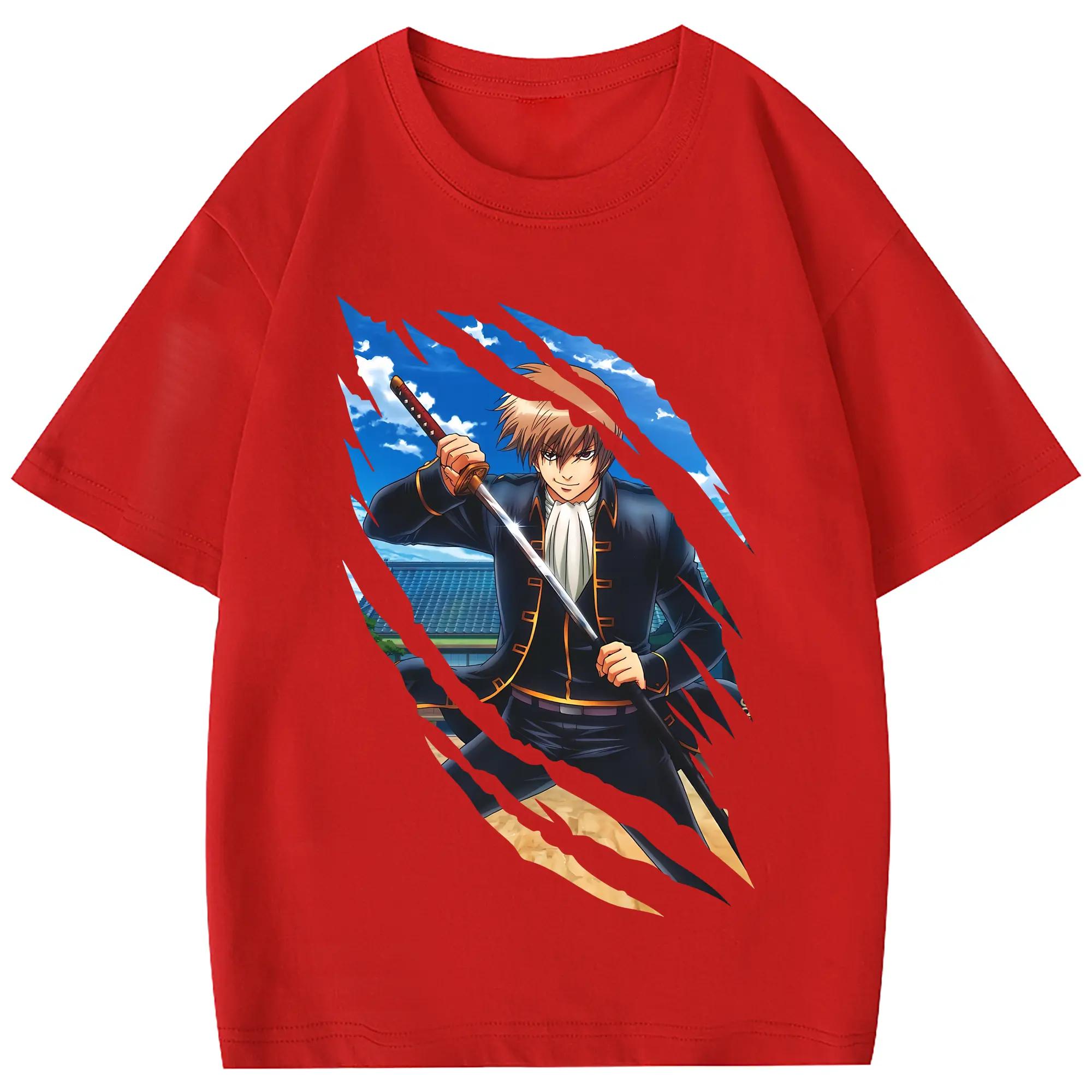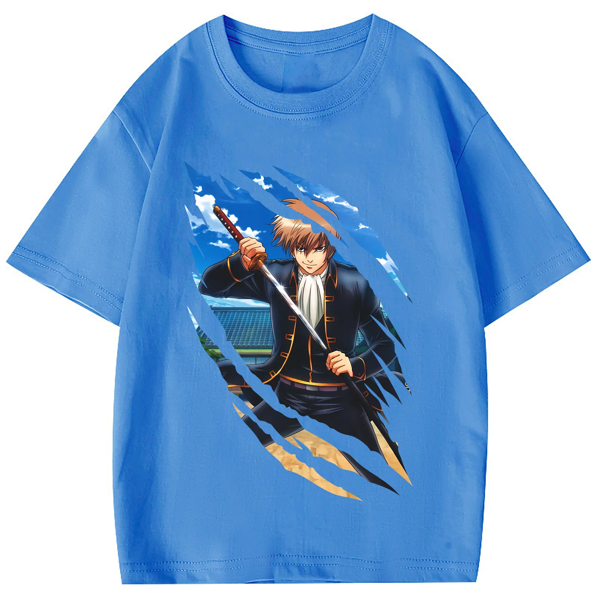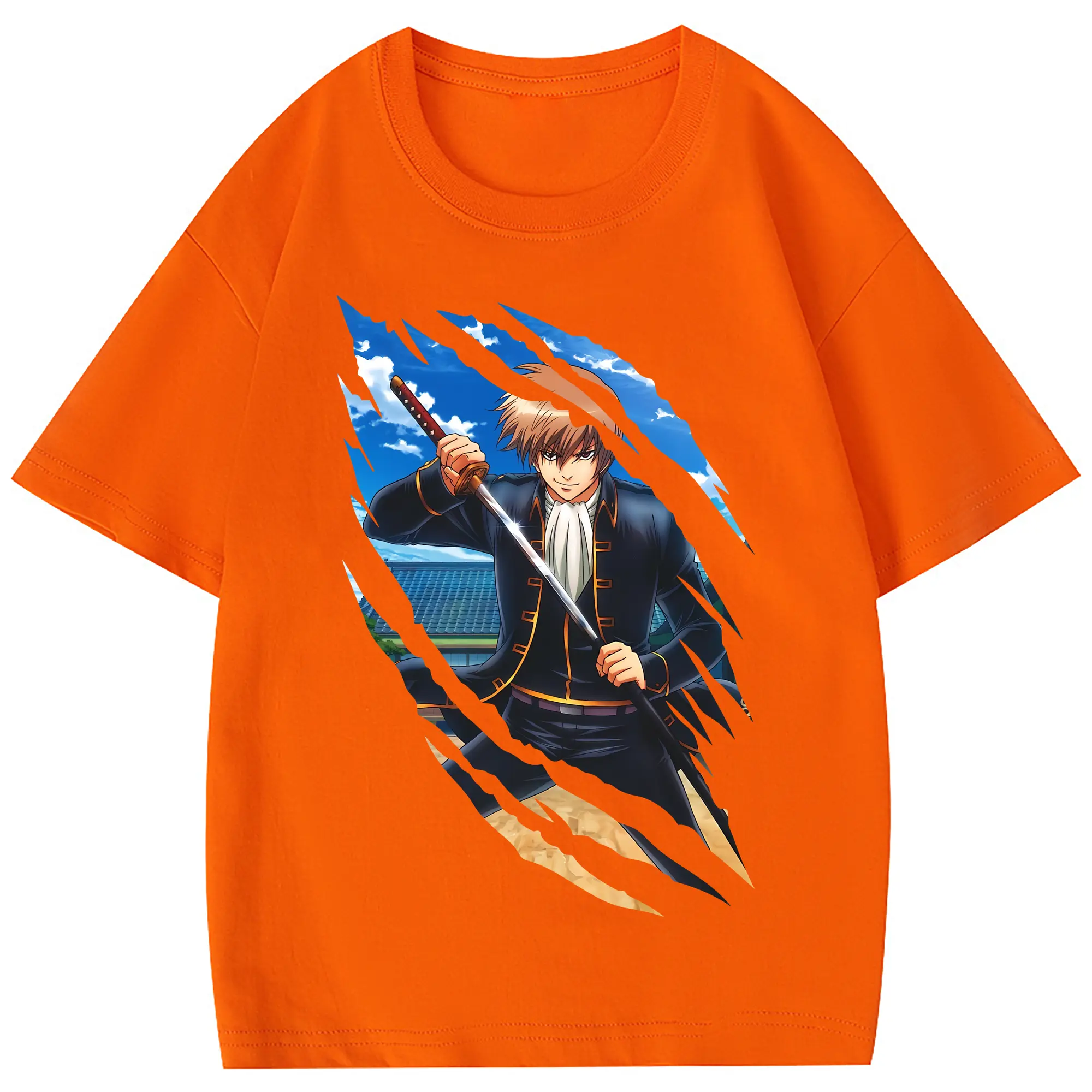銀魂 グッズ 沖田 総悟 - 綿100% 半袖Tシャツ ・ フロントプリント ・ 快適 通気性 ・ 日常使い 散歩 スポーツ用