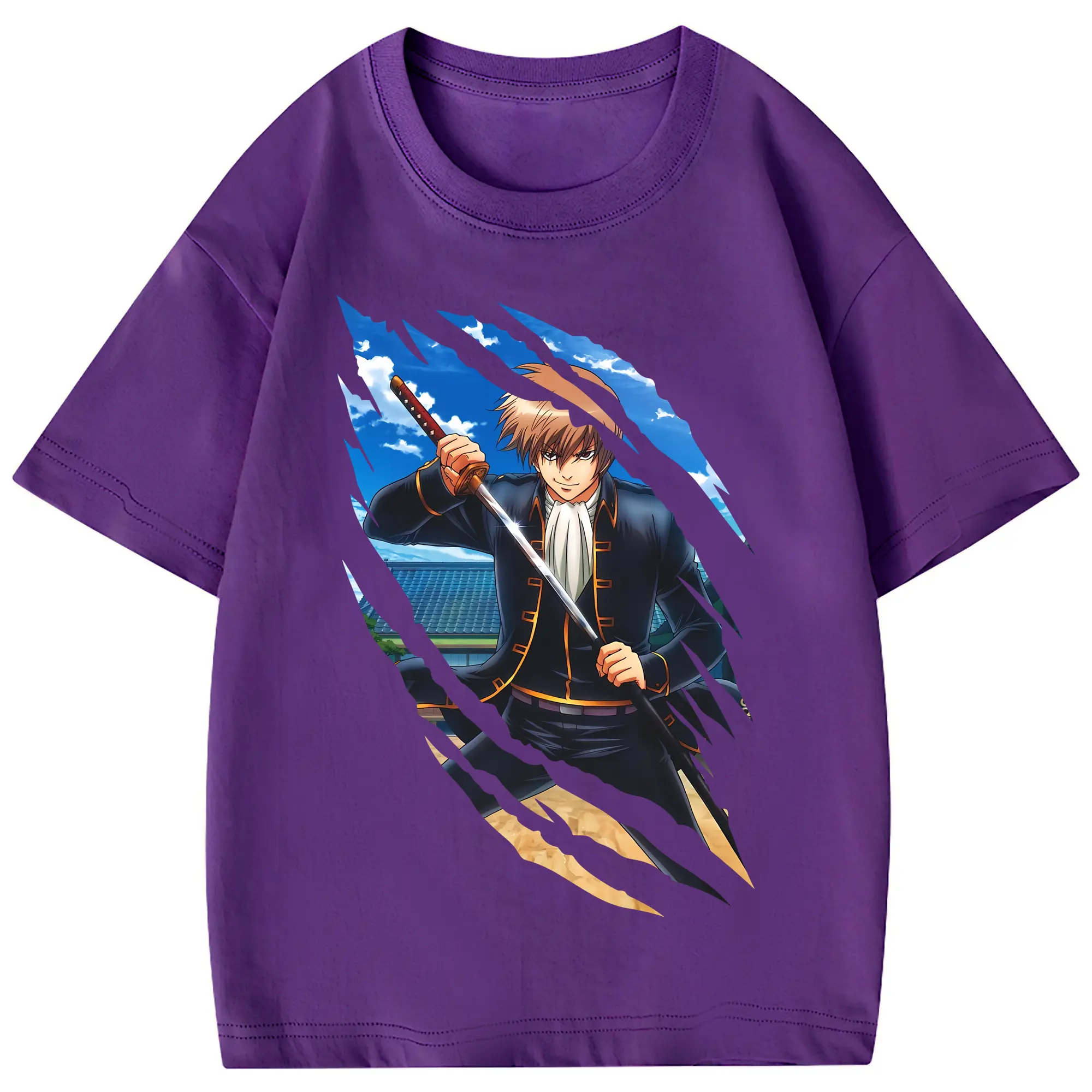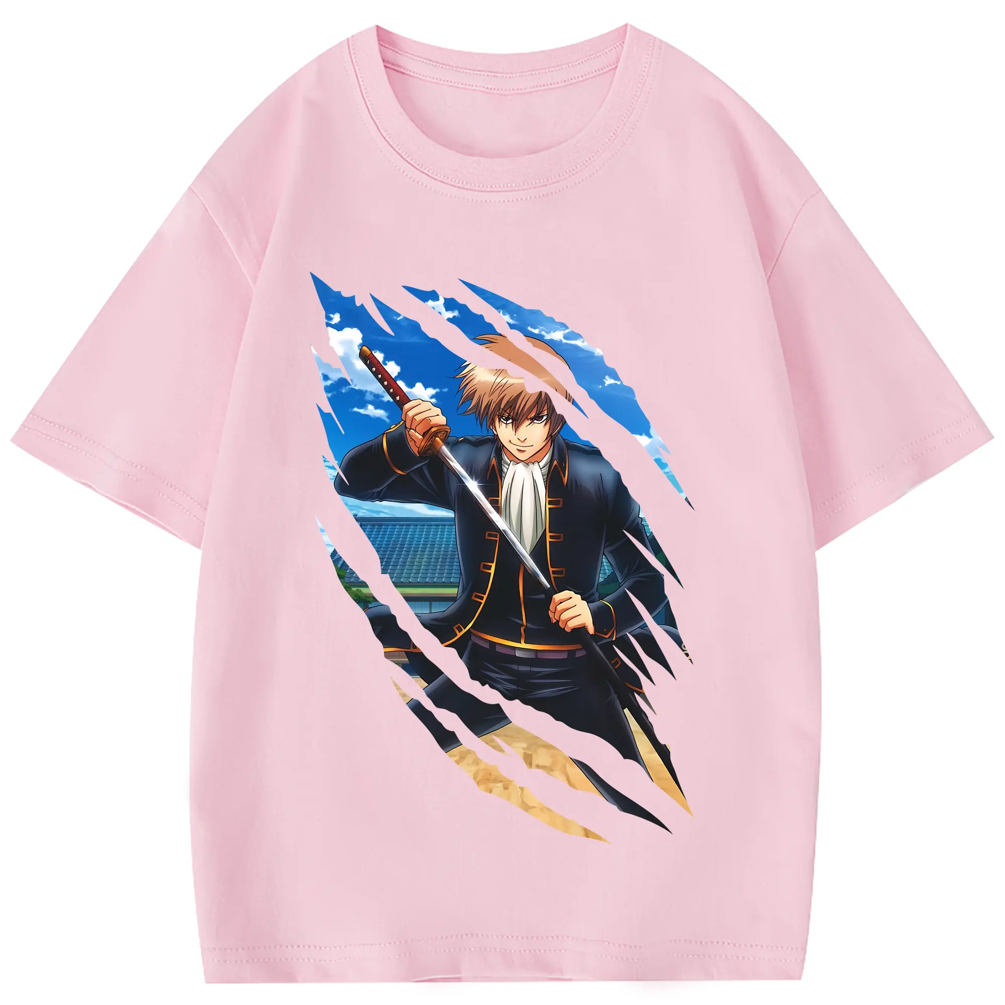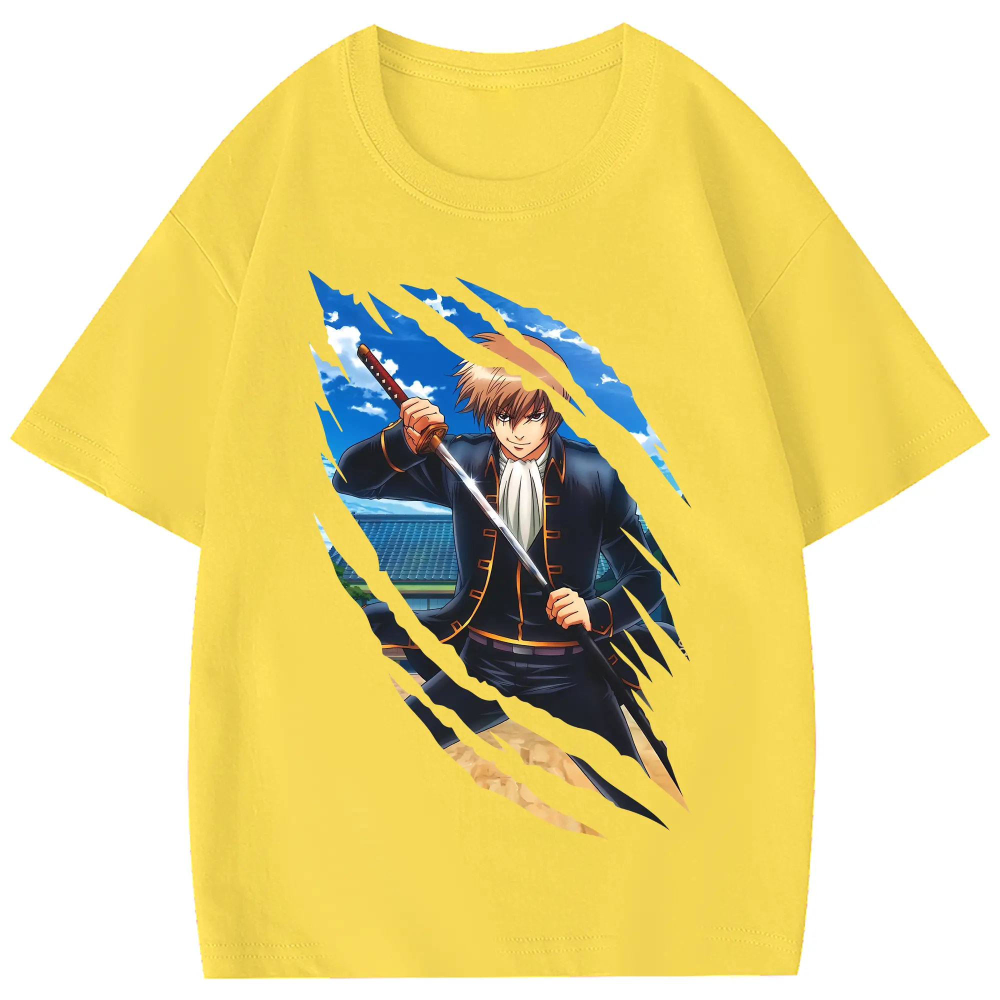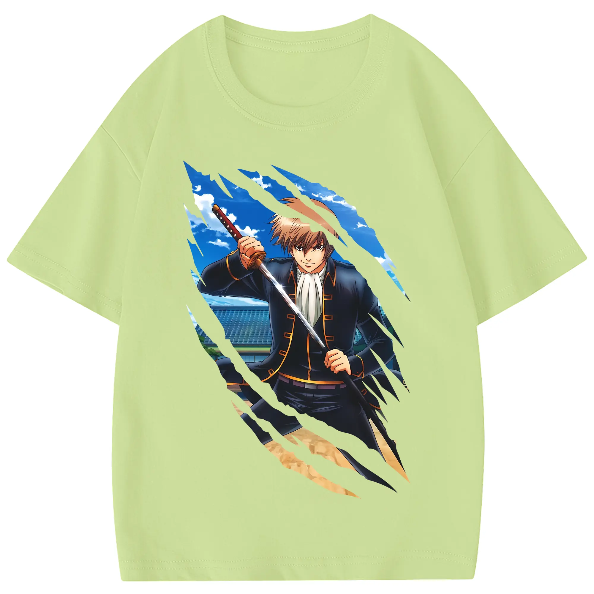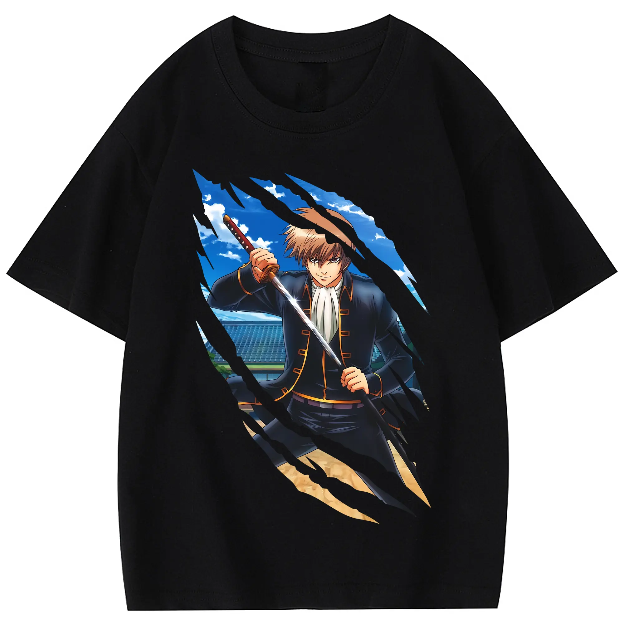 銀魂 グッズ 沖田 総悟 - 綿100% 半袖Tシャツ ・ フロントプリント ・ 快適 通気性 ・ 日常使い 散歩 スポーツ用