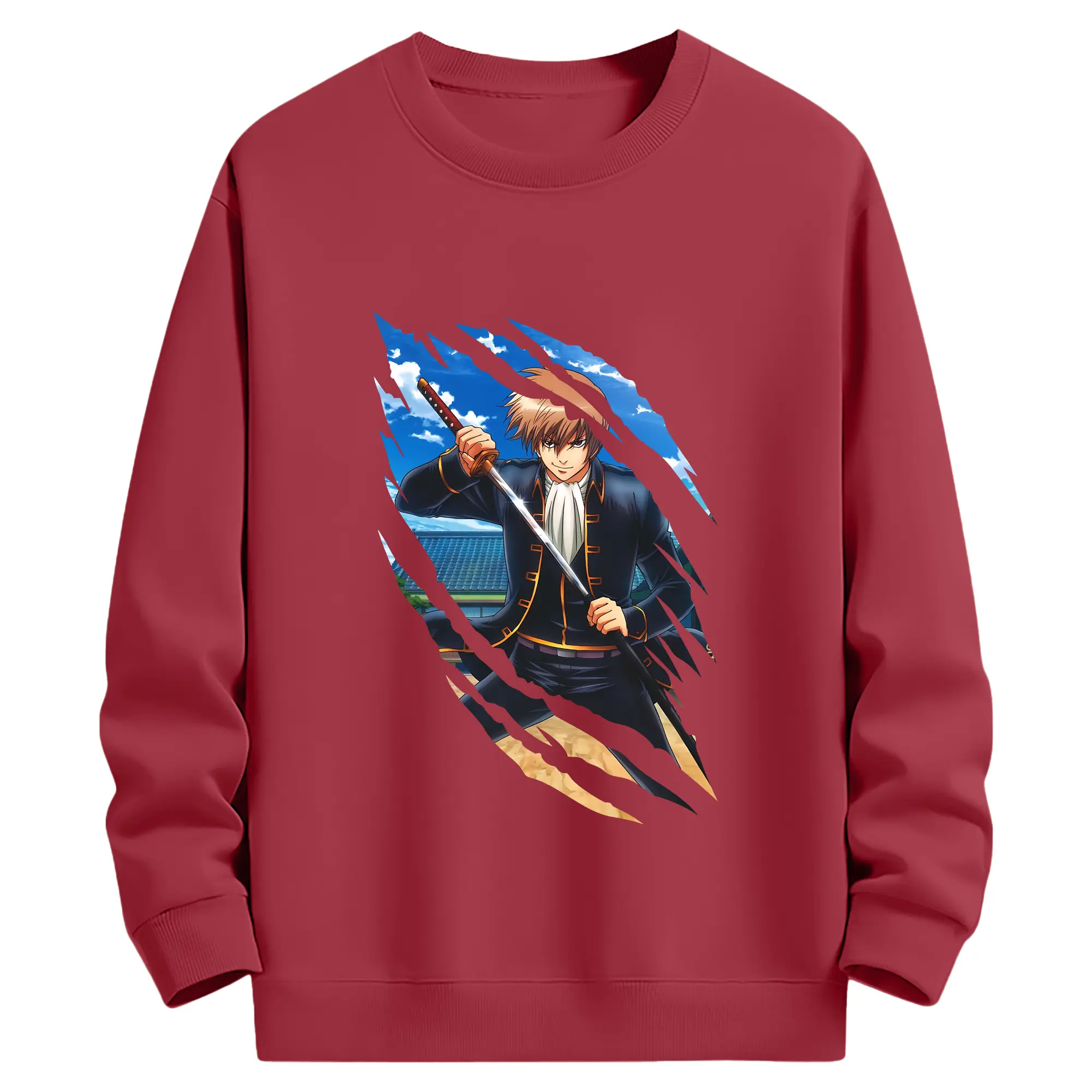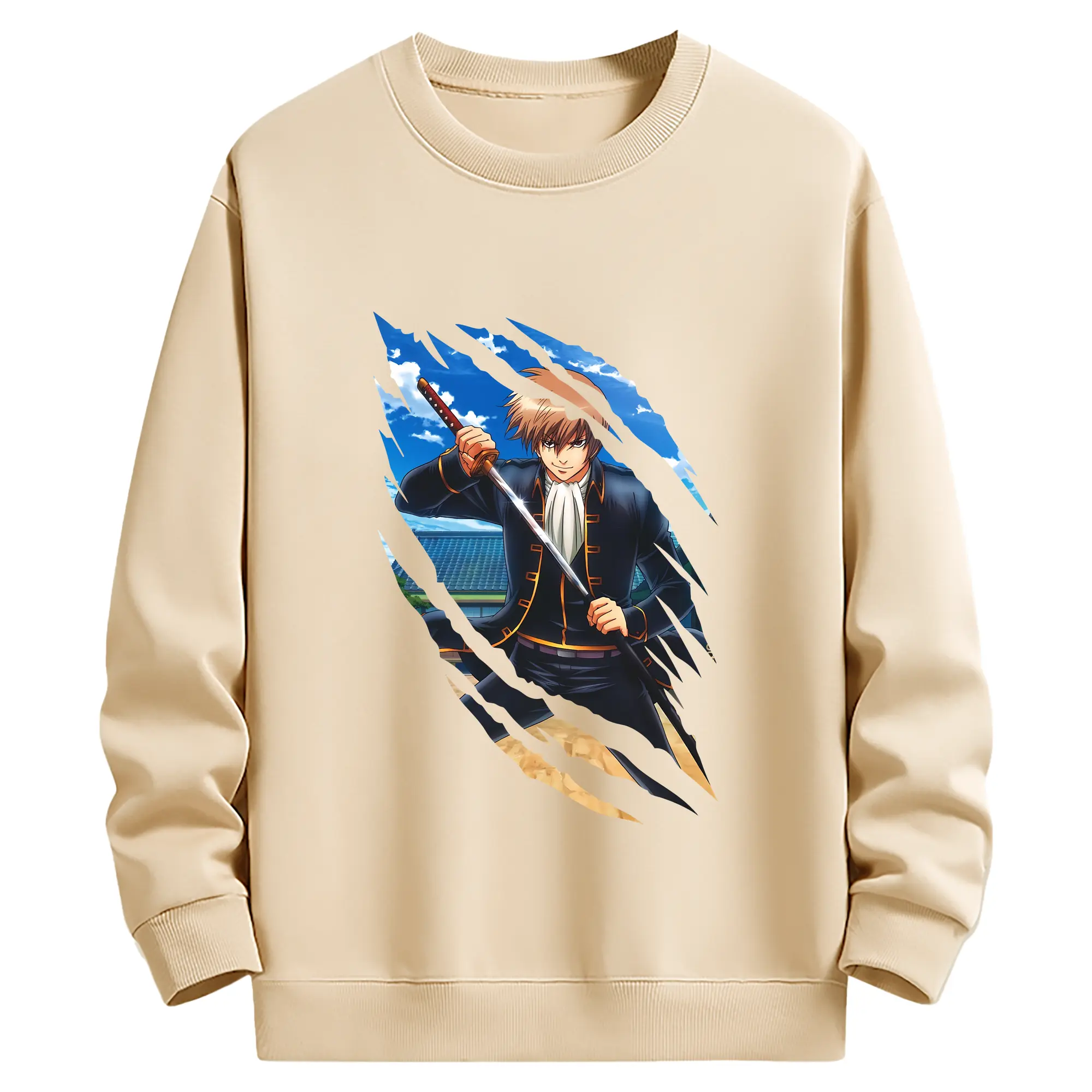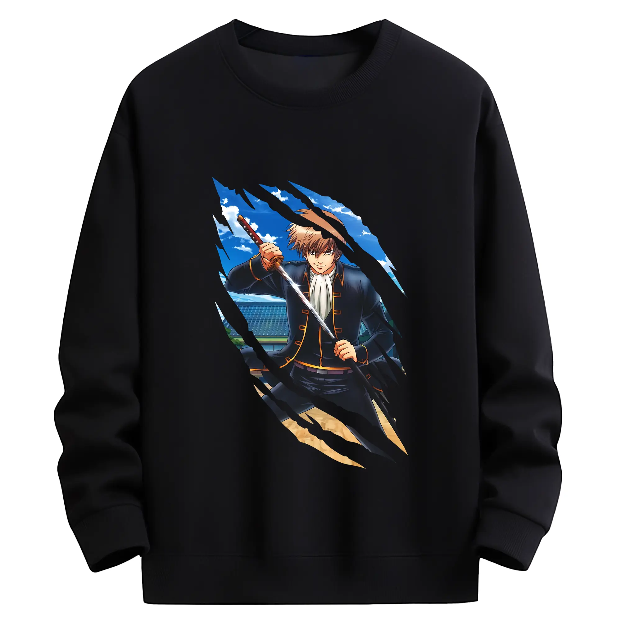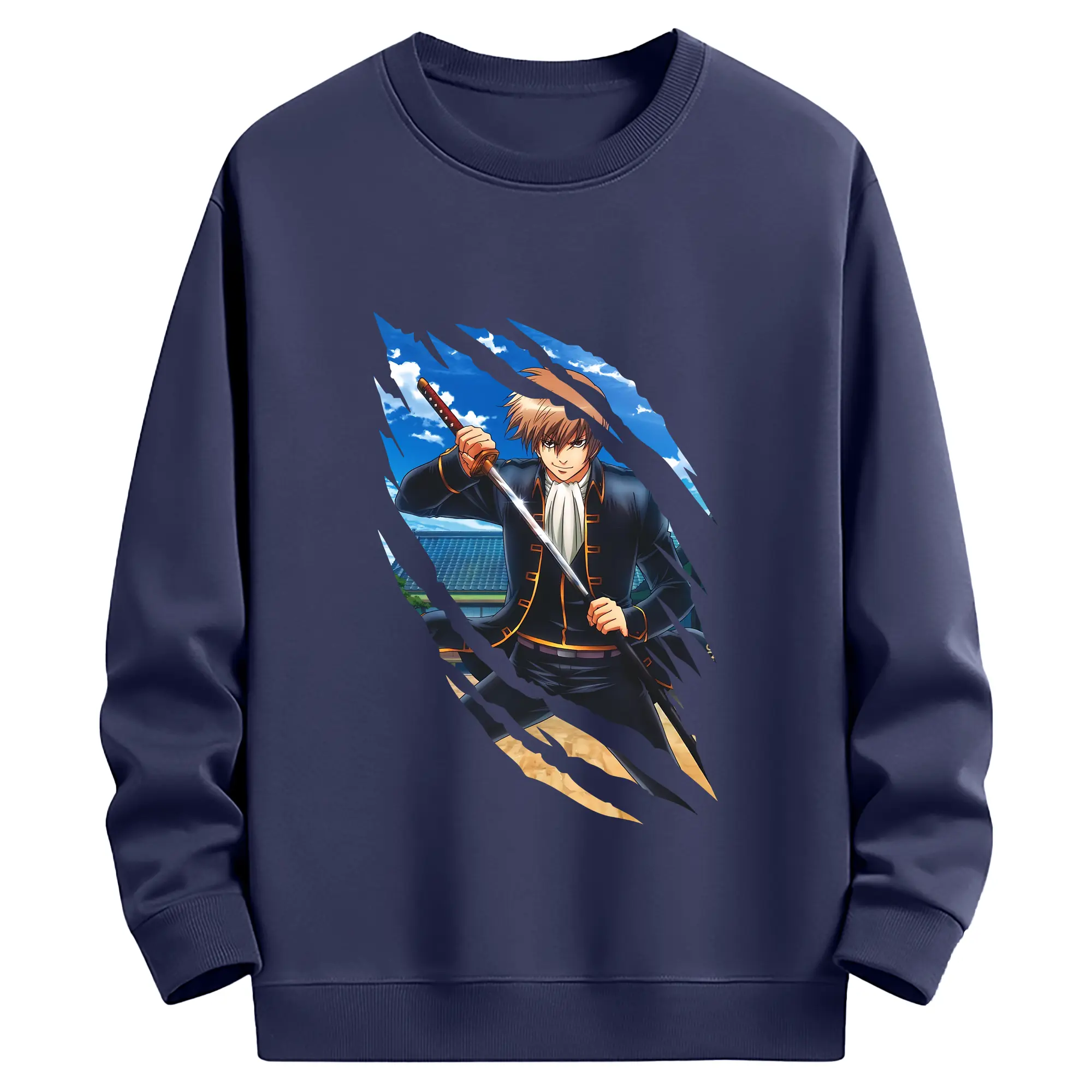 銀魂 グッズ 沖田 総悟 - 薄手 クルーネック スウェット 裏毛260g · ポリエステル 春秋向け カジュアル 男女兼用 · トレーナー デイリー スポーツ 散歩に最適
