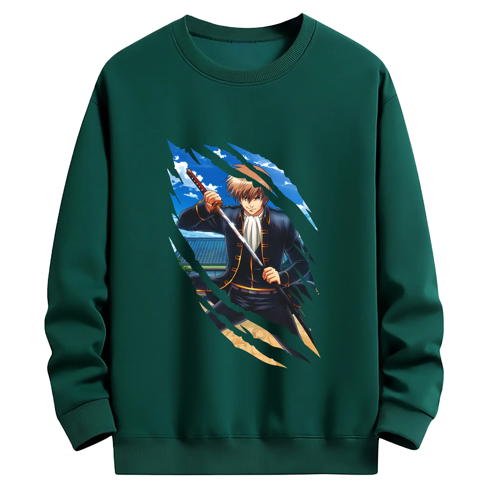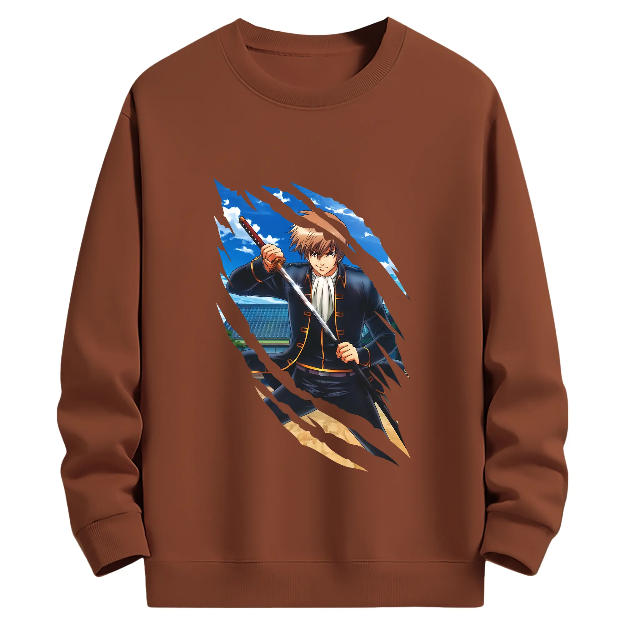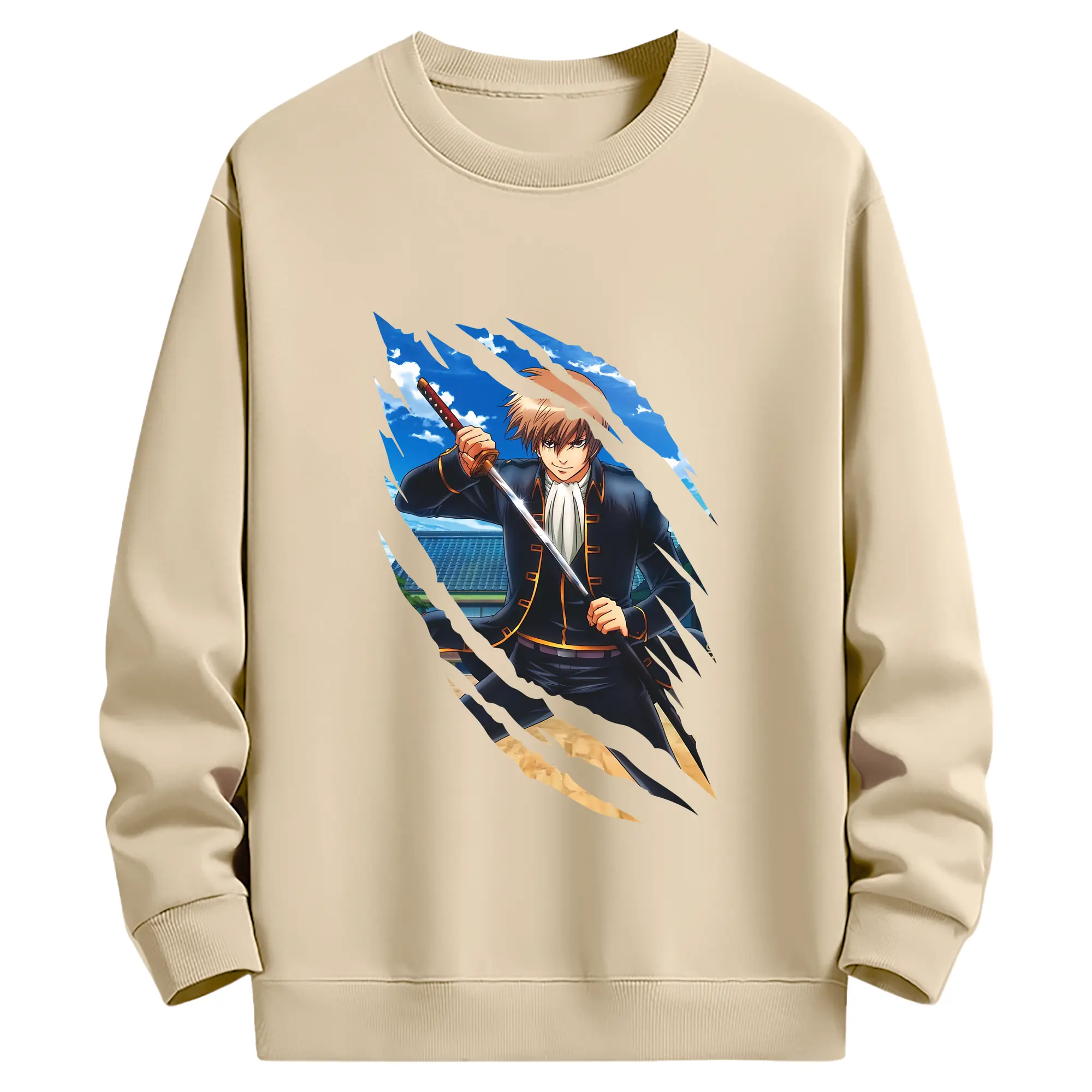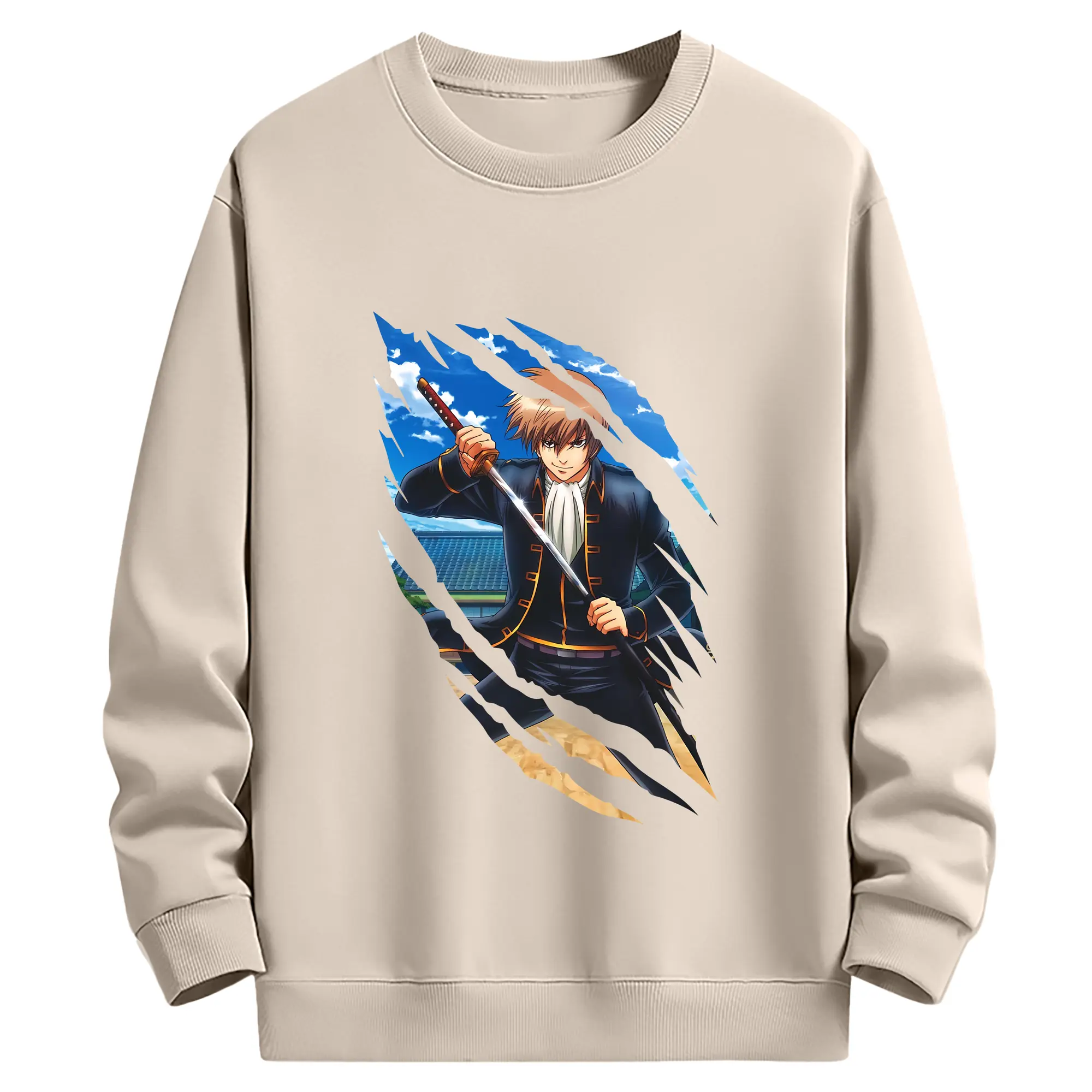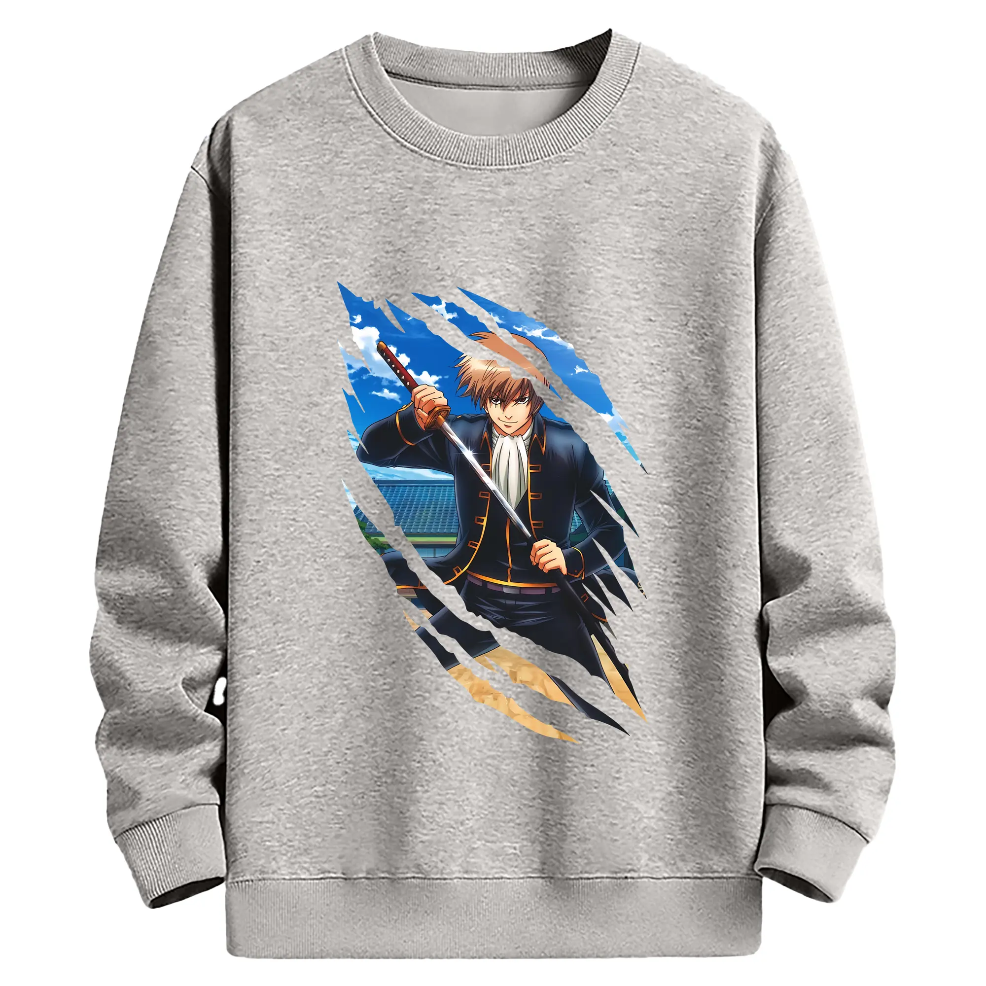銀魂 グッズ 沖田 総悟 - 薄手 クルーネック スウェット 裏毛260g · ポリエステル 春秋向け カジュアル 男女兼用 · トレーナー デイリー スポーツ 散歩に最適